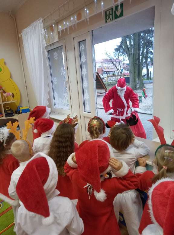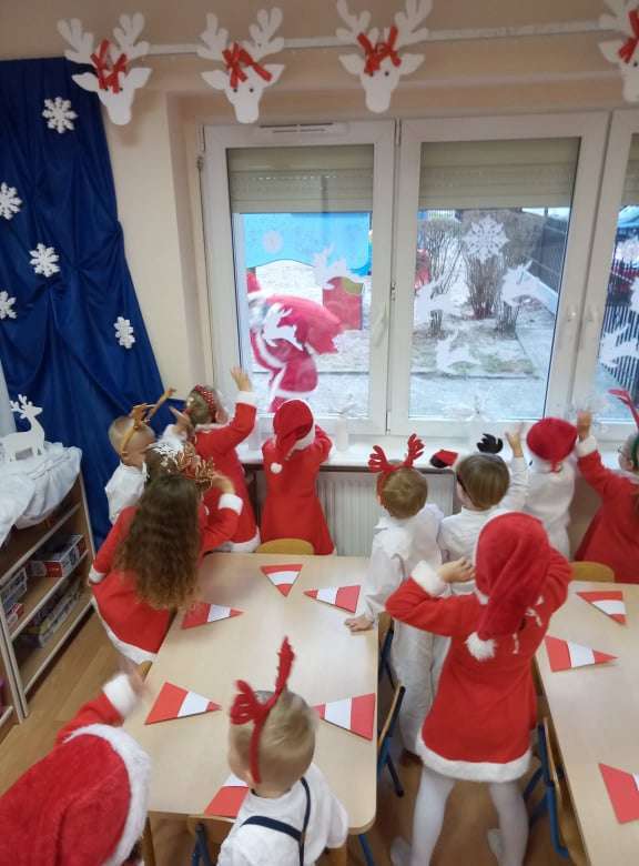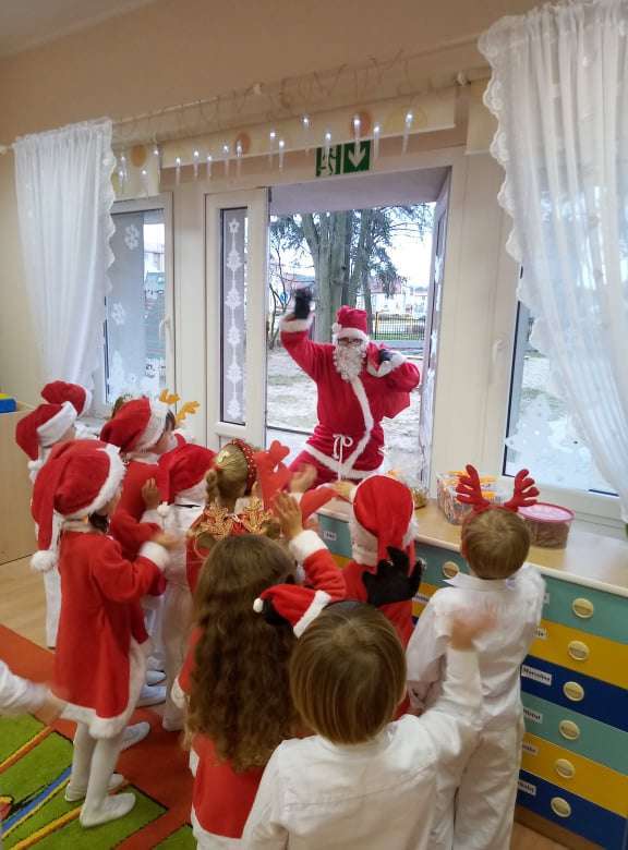 W tym roku Święty Mikołaj zapukał w okna sal przedszkolnych. W okienkach zobaczył grzeczne dzieci pochłonięte wykonywaniem Mikołajkowych zadań, śpiewaniem piosenek i recytowaniem wierszy dla Mikołaja. Oczywiście bardzo spodobał mu się taki widok
