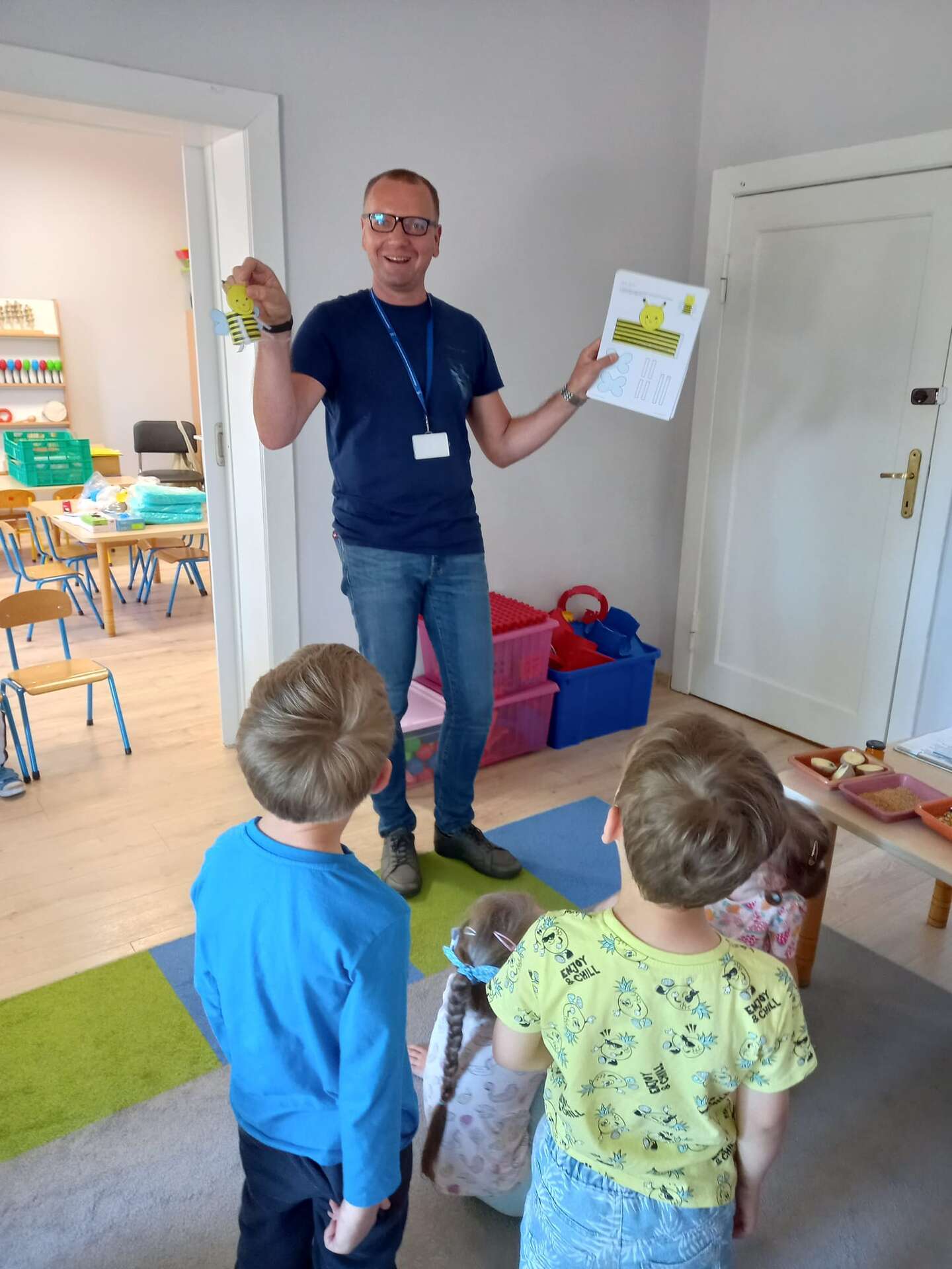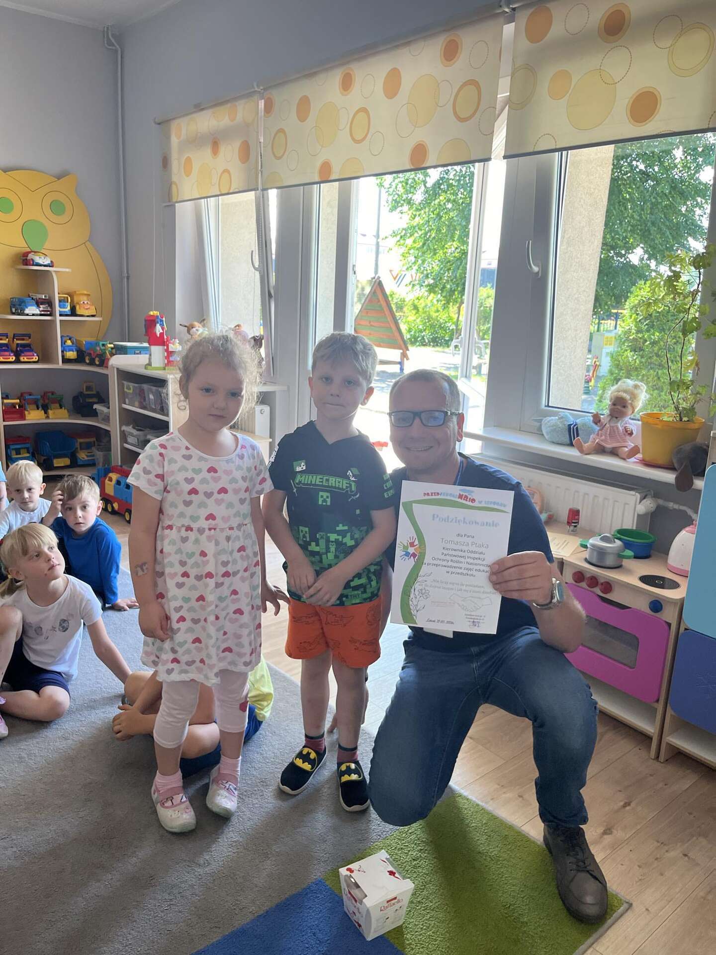 Na koniec wszystkie dzieci otrzymały pszczółkę do samodzielnego sklejenia, zasłużoną legitymację Małego Inspektora oraz słodką niespodziankę.