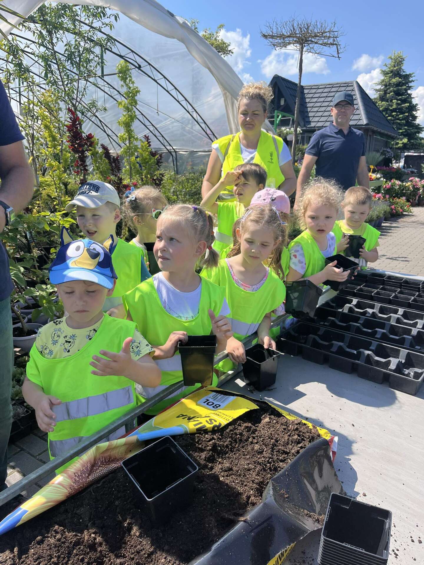 Następnie wszyscy udali się na wycieczkę do Centrum Ogrodniczego "NIWA", gdzie właściciel opowiedział, w jaki sposób dba o swoje rośliny oraz przygotował stanowisko, przy którym dzieci samodzielnie zasadziły kwiatki.