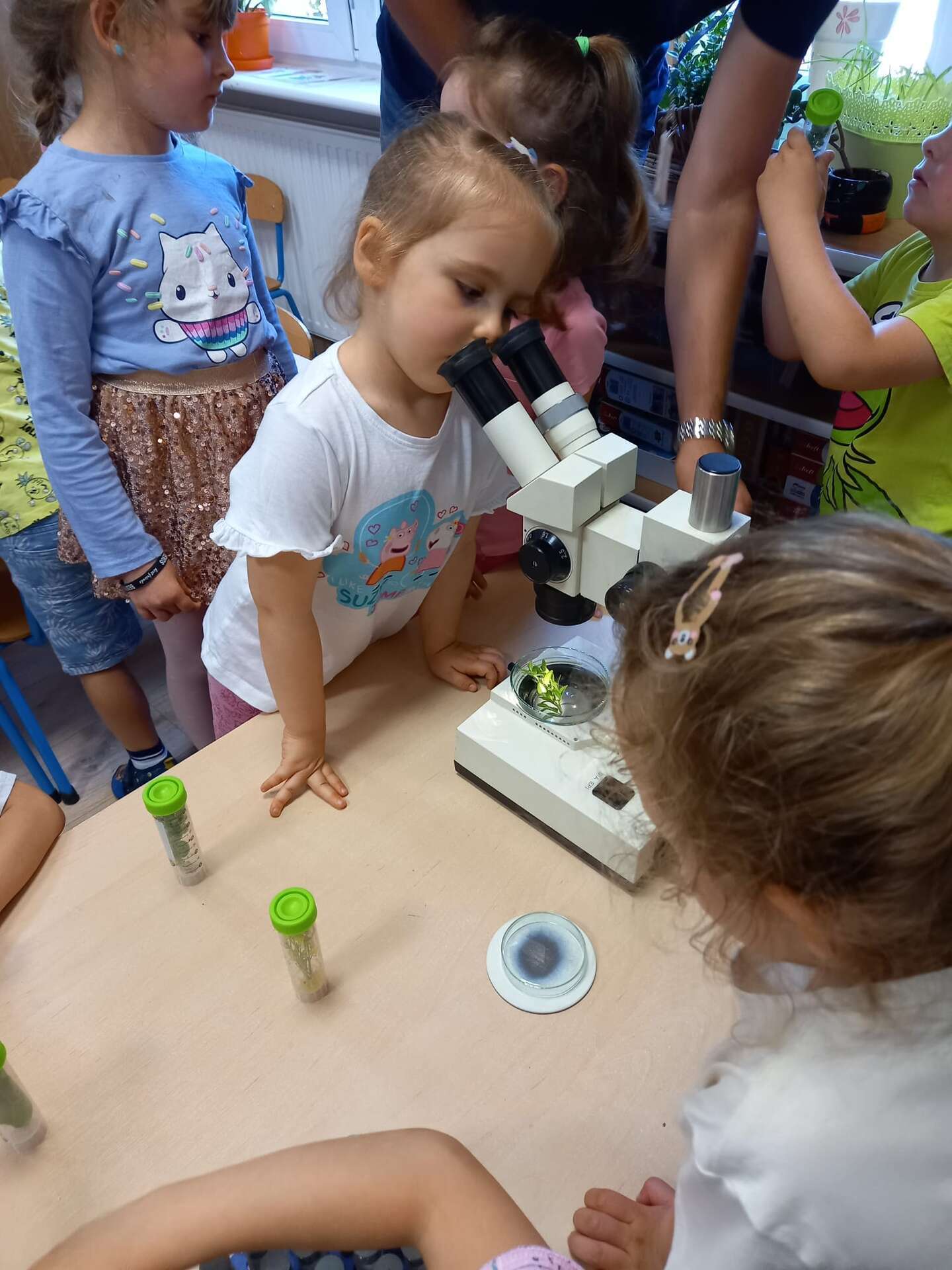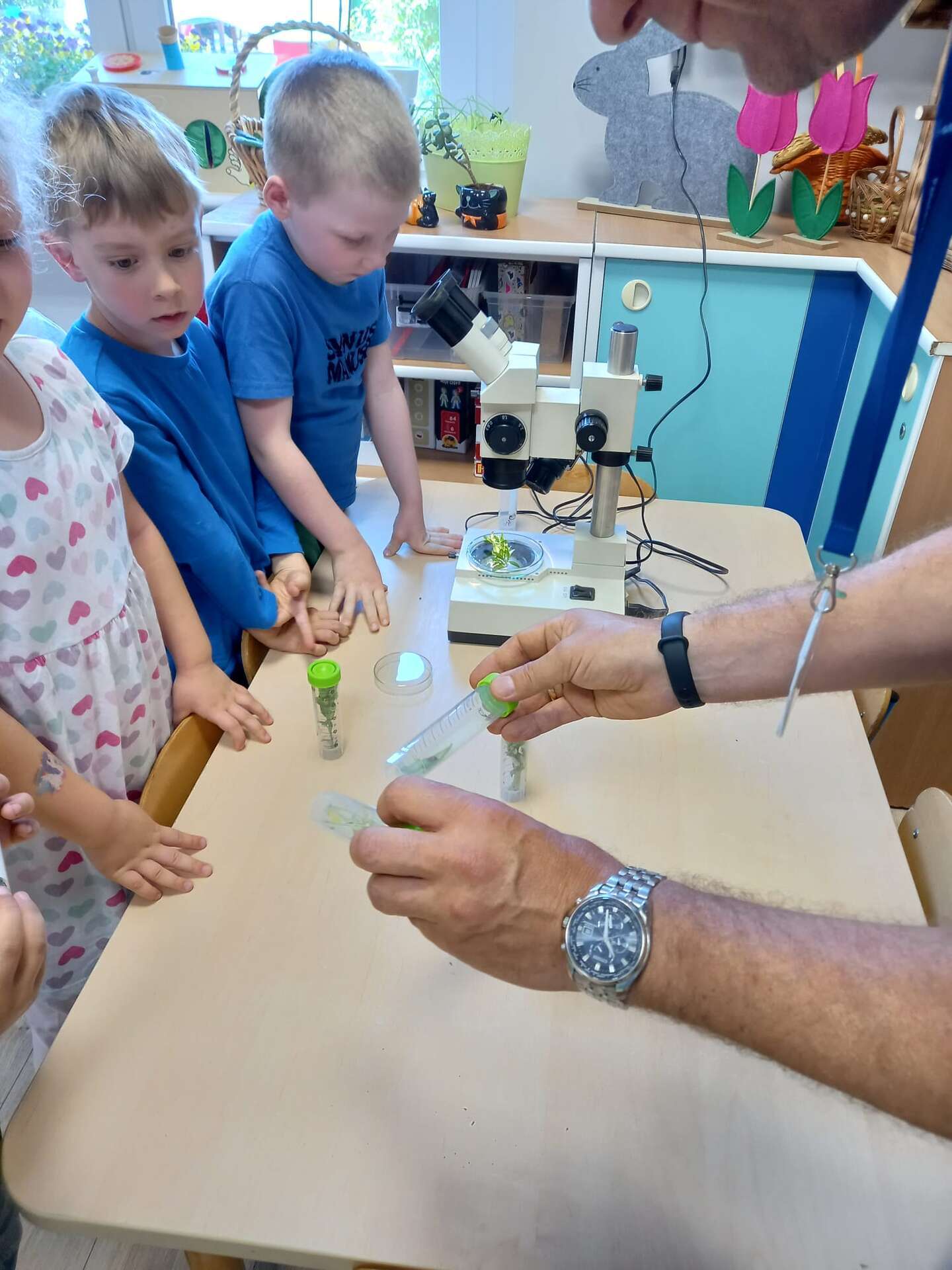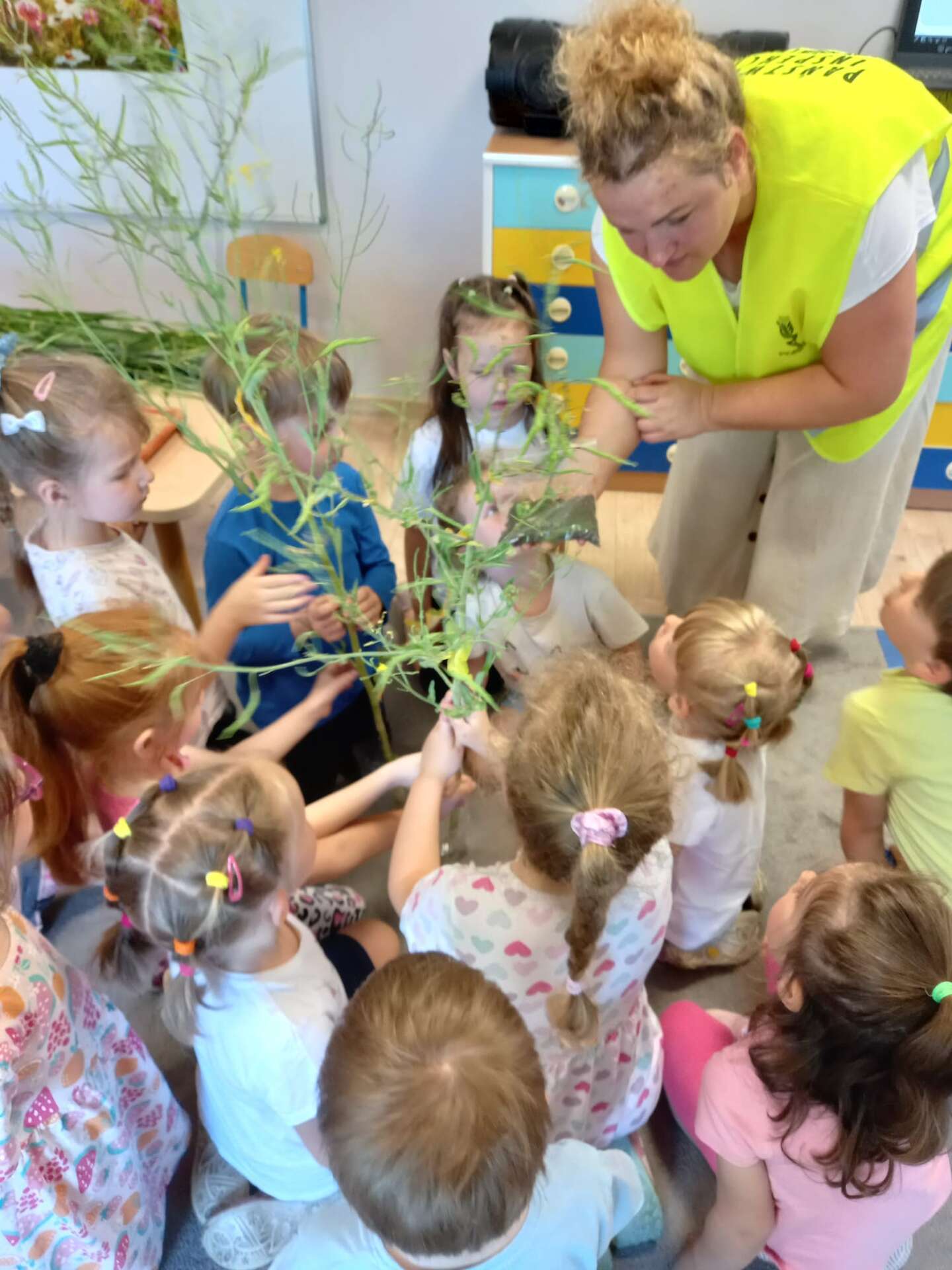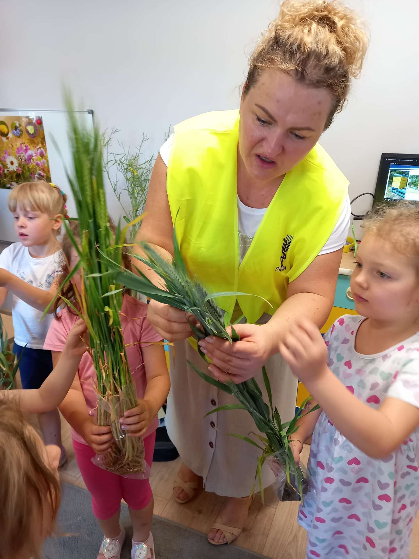Przedszkolaki dowiedziały się z prezentacji na czym polega praca Inspektora. Największy entuzjazm wywołały zajęcia praktyczne. Dzieci mogły dowiedzieć się, jak ważna jest rola pszczół, zobaczyć i dotknąć różnych gatunków roślin uprawowych oraz ich nasion. Miały również okazję przyjrzeć się szkodnikom roślin za pomocą mikroskopu oraz przebrać się w ubranie jednorazowego użytku i "pobrać próby roślin".
