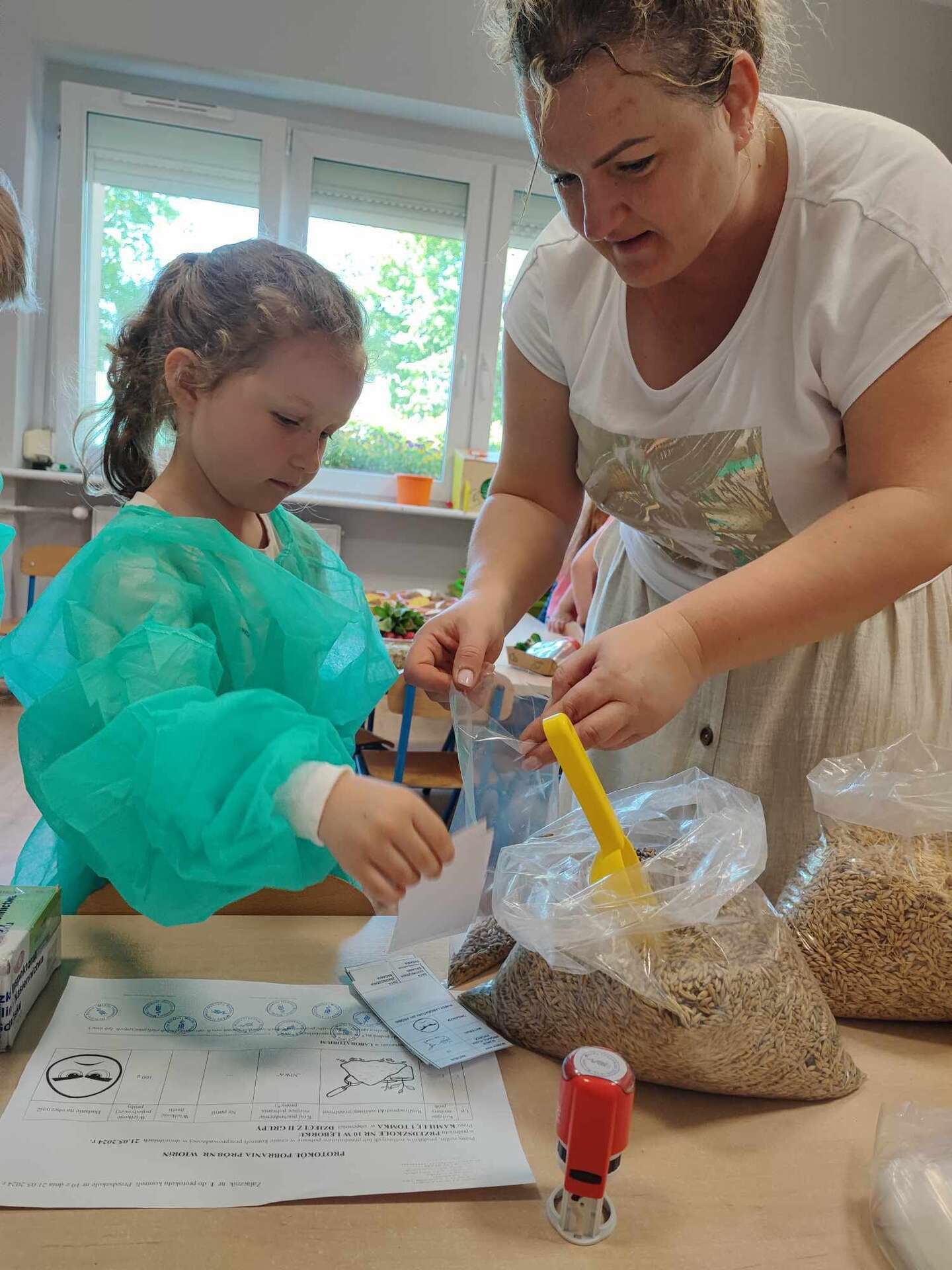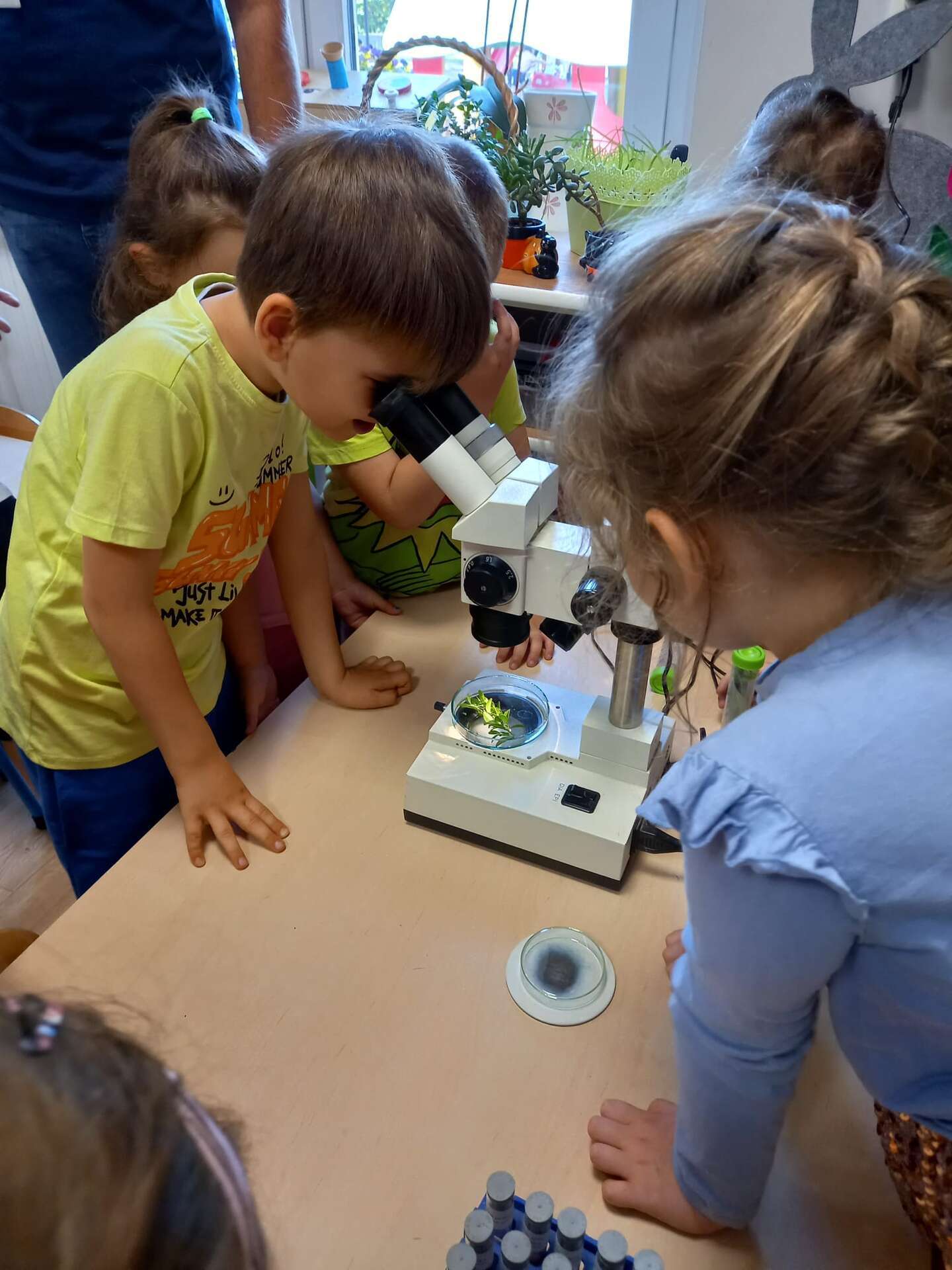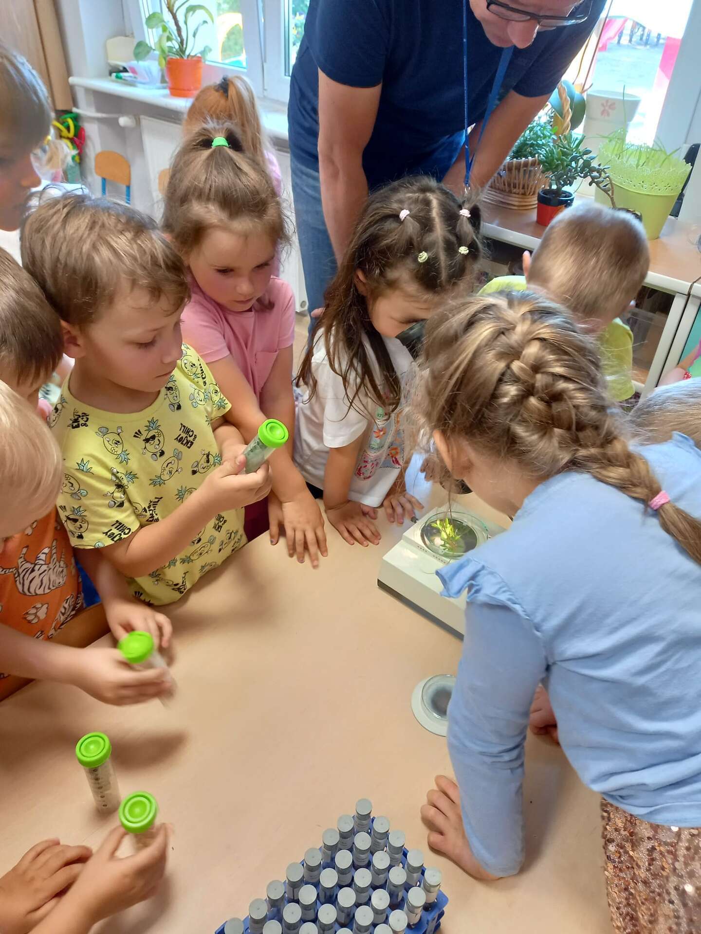 Przedszkolaki dowiedziały się z prezentacji na czym polega praca Inspektora. Największy entuzjazm wywołały zajęcia praktyczne. Dzieci mogły dowiedzieć się, jak ważna jest rola pszczół, zobaczyć i dotknąć różnych gatunków roślin uprawowych oraz ich nasion. Miały również okazję przyjrzeć się szkodnikom roślin za pomocą mikroskopu oraz przebrać się w ubranie jednorazowego użytku i "pobrać próby roślin".
