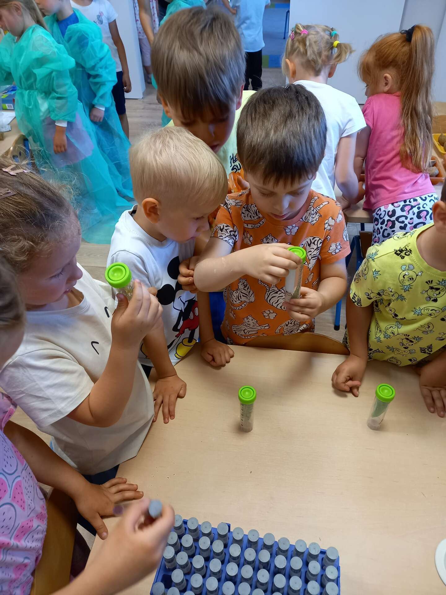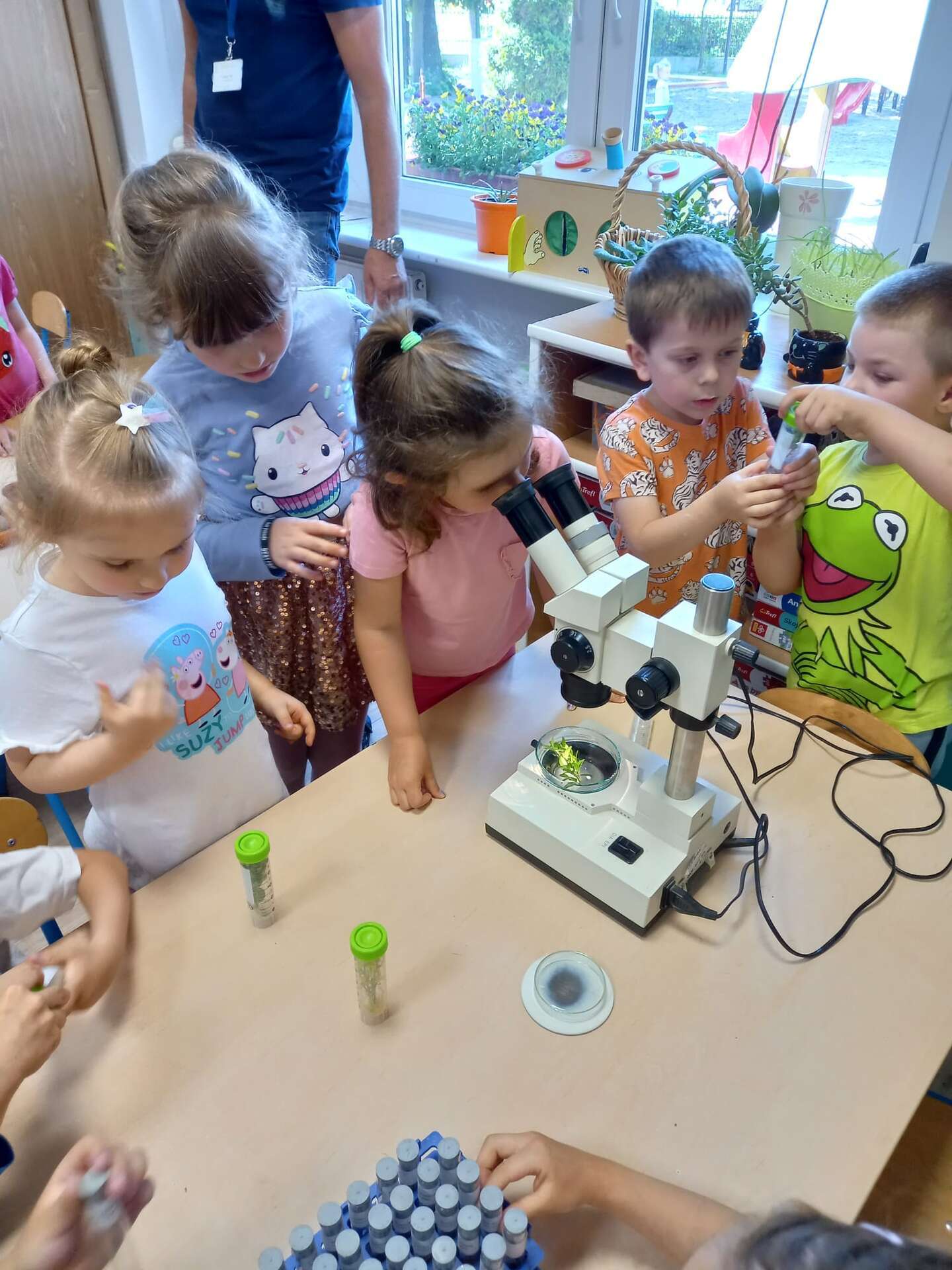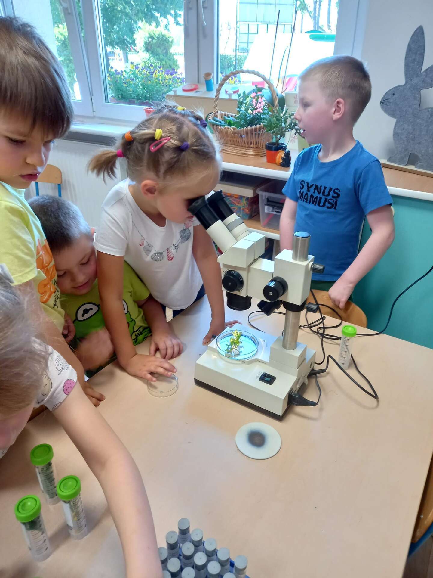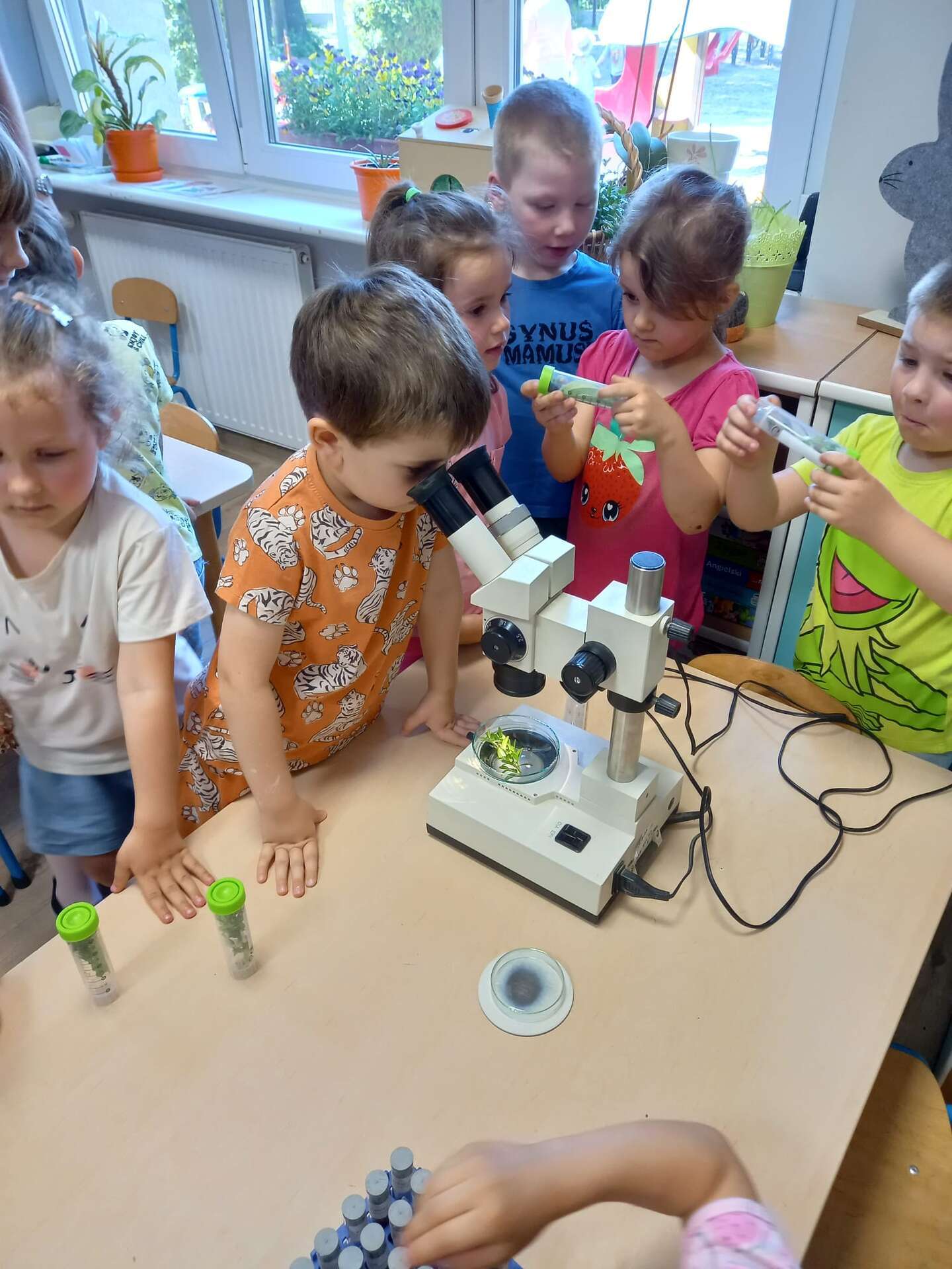 Przedszkolaki dowiedziały się z prezentacji na czym polega praca Inspektora. Największy entuzjazm wywołały zajęcia praktyczne. Dzieci mogły dowiedzieć się, jak ważna jest rola pszczół, zobaczyć i dotknąć różnych gatunków roślin uprawowych oraz ich nasion. Miały również okazję przyjrzeć się szkodnikom roślin za pomocą mikroskopu oraz przebrać się w ubranie jednorazowego użytku i "pobrać próby roślin".