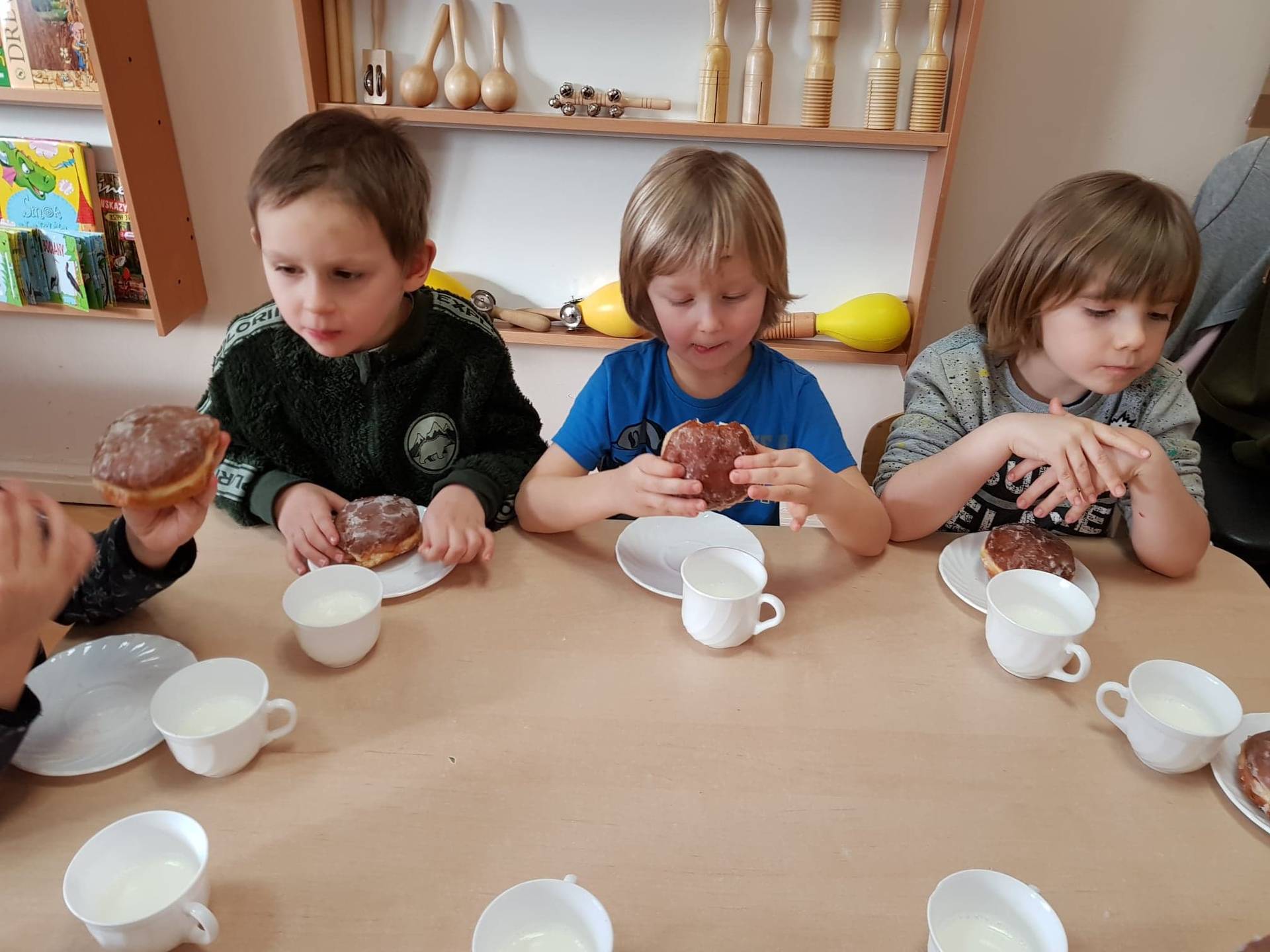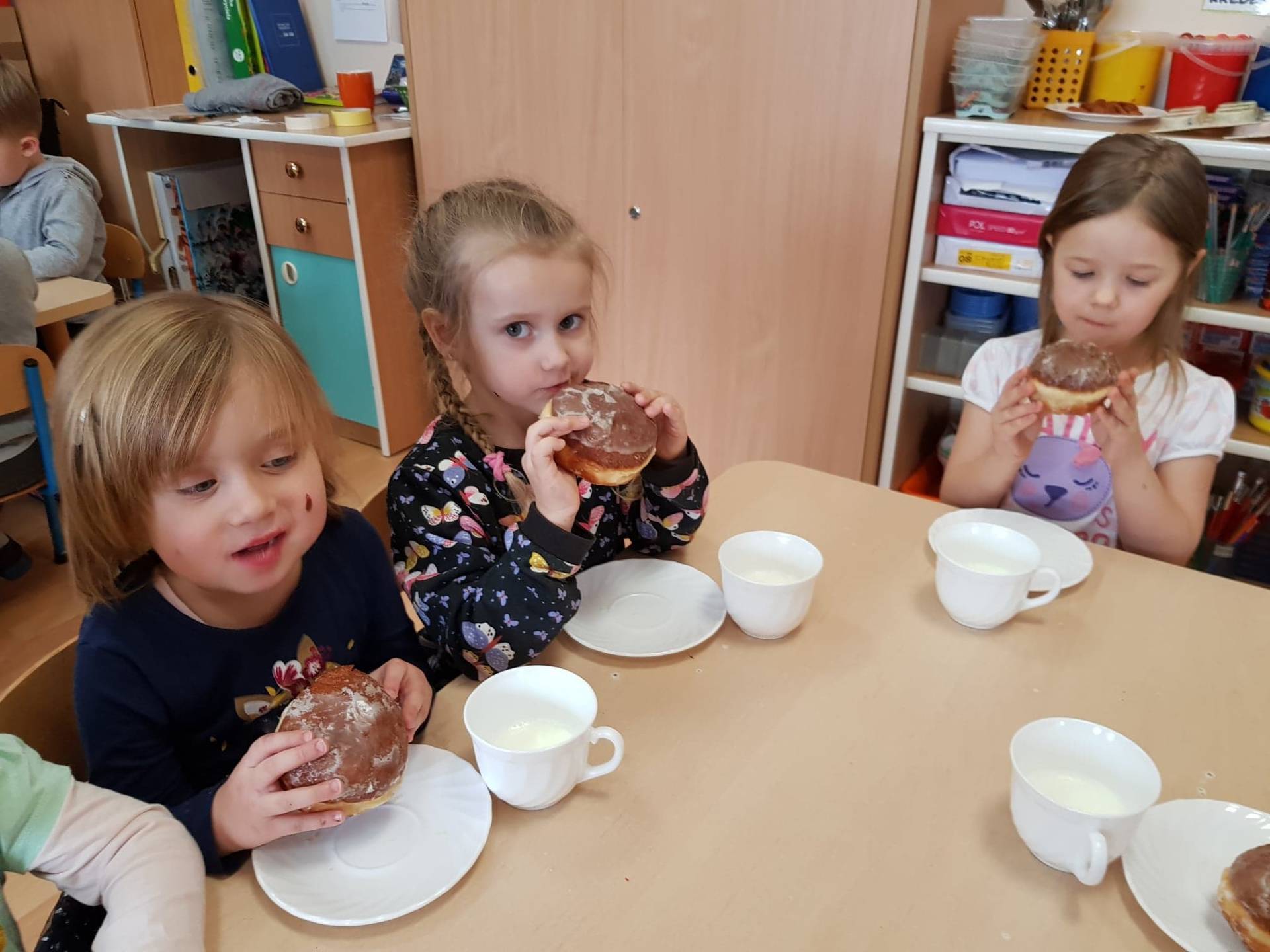Nasza Pani Kucharka to prawdziwa czarodziejka , ostatnio pizzę a dziś nasze papierowe pączki zamieniła na prawdziwe. Mniam