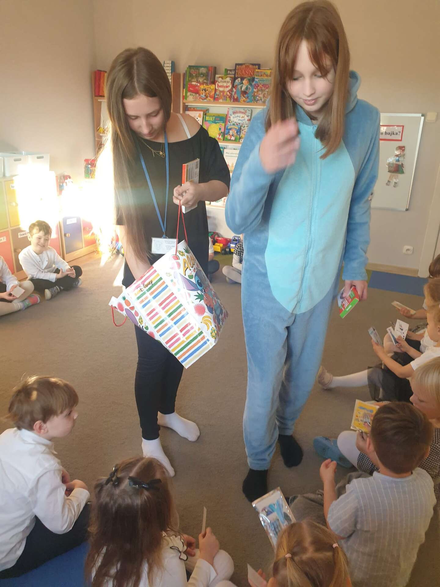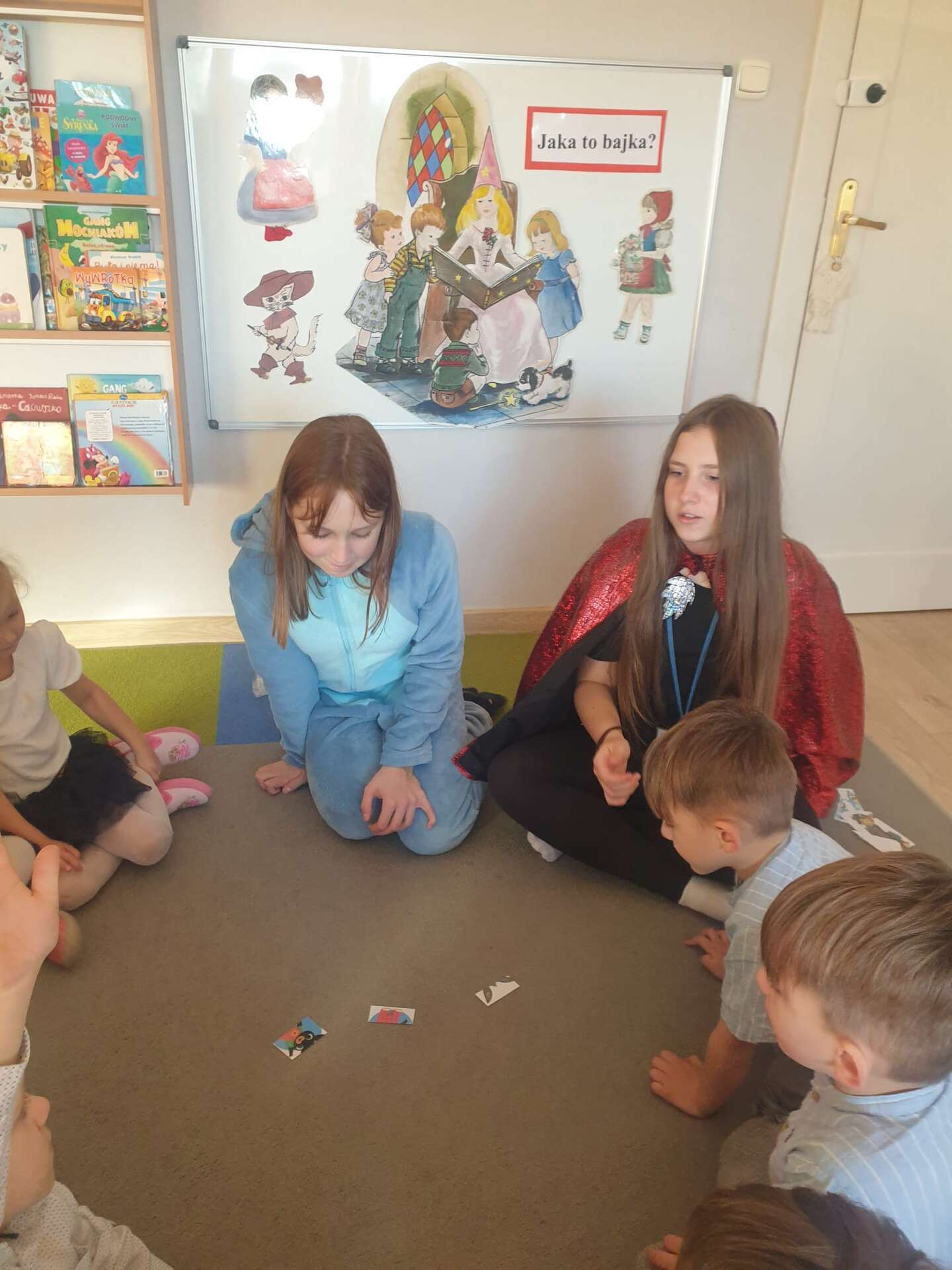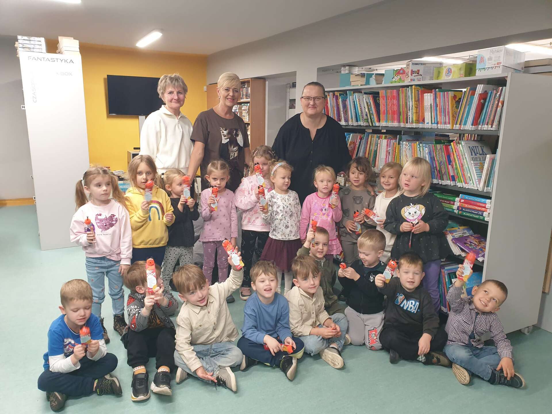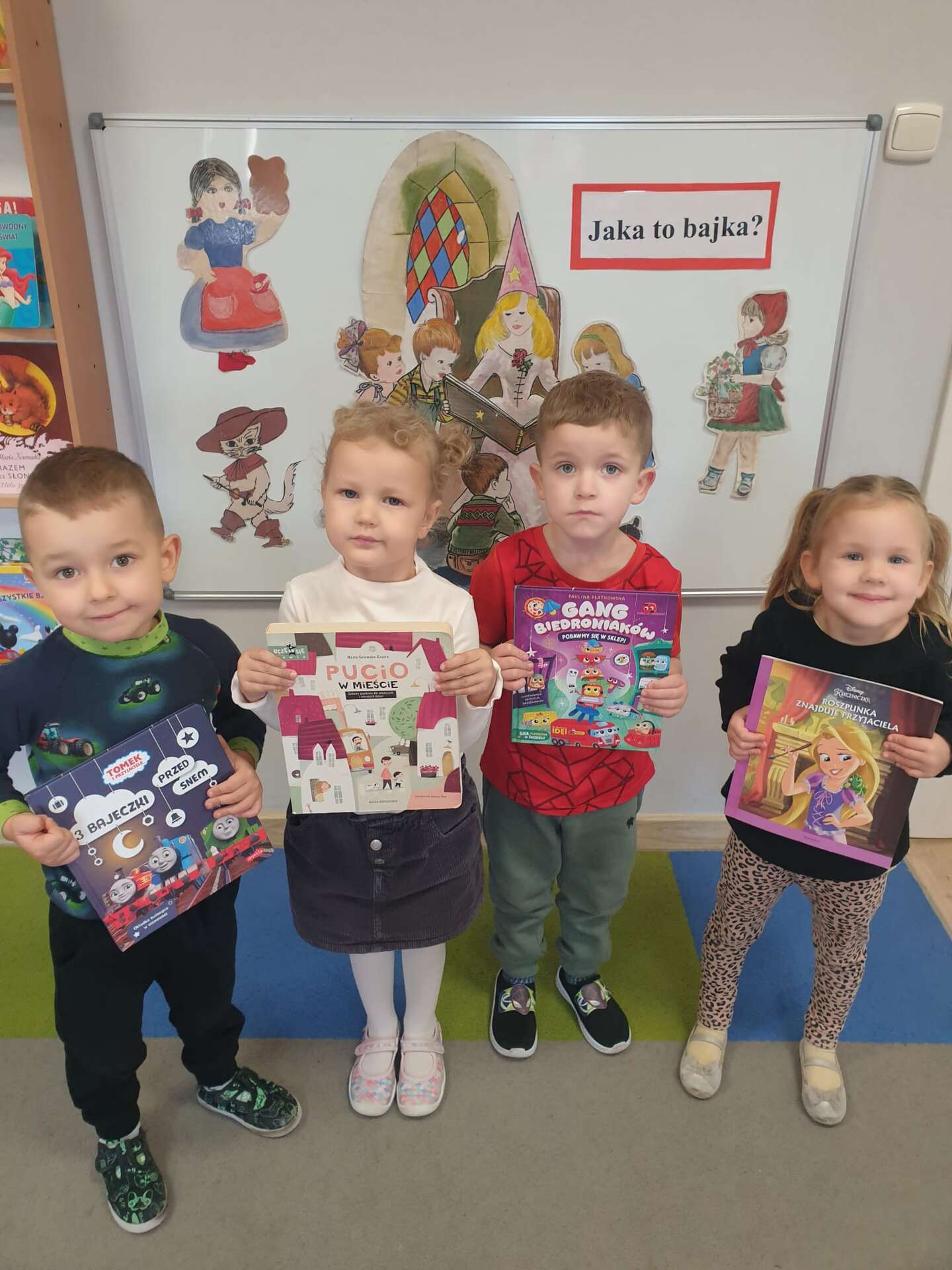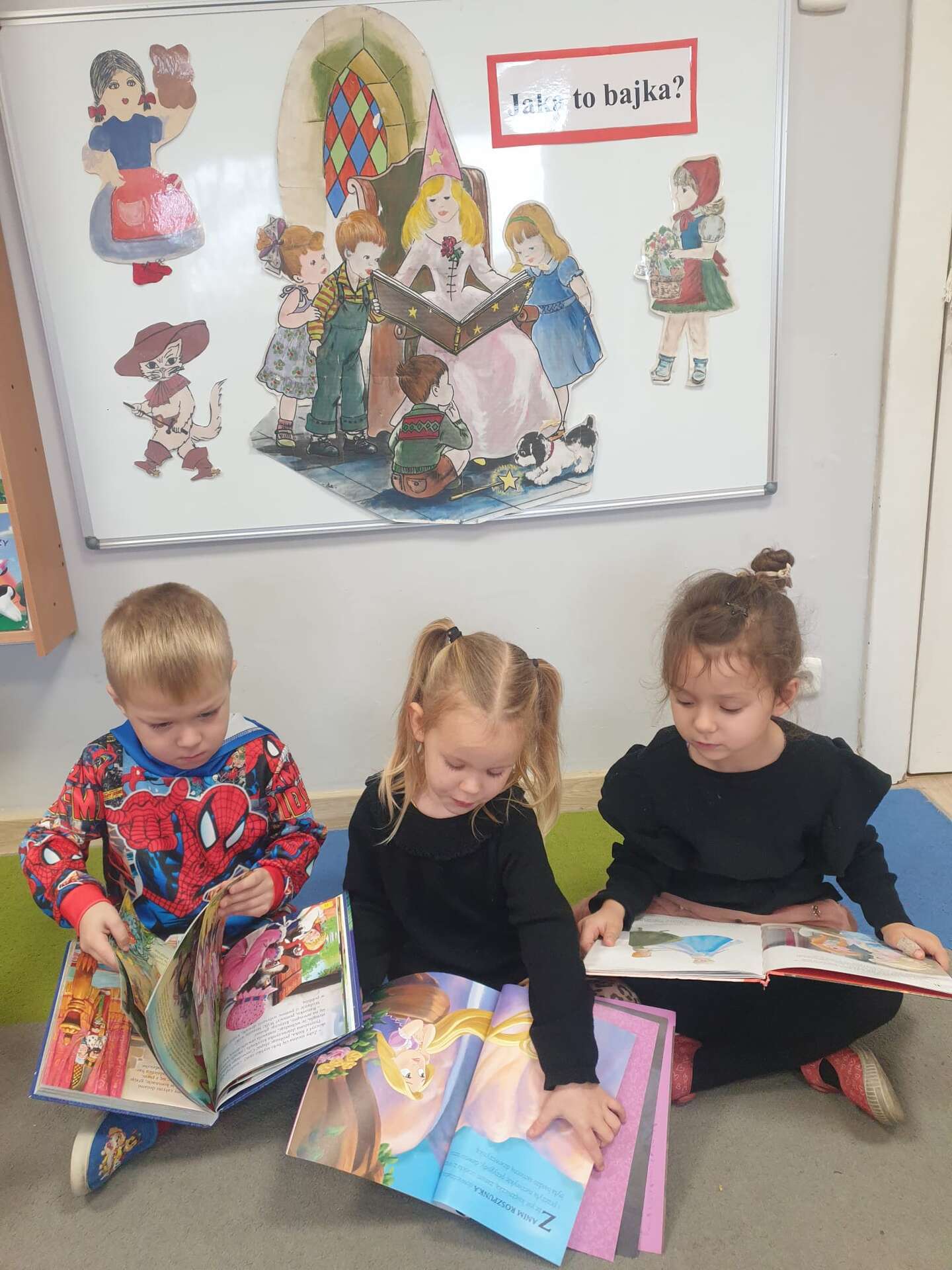 Dużym wydarzeniem tygodnia była wizyta w Miejskiej Bibliotece Publicznej, gdzie dzieci z wielkim zaciekawieniem wysłuchały bajki opowiedzianej przez panią bibliotekarkę. Każde dziecko otrzymało zakładkę do książki oraz kartę czytelniczą zachęcającą do pierwszych, samodzielnych wizyt w bibliotece z rodzicami. Nie zabrakło również wyjątkowego spotkania z absolwentką naszego przedszkola – Alą, która przeczytała dzieciom bajkę o wilku. Był to bardzo miły i wzruszający moment – dzieci słuchały z dużym skupieniem i zainteresowaniem. Tydzień zakończyły bajkowe zabawy zorganizowane przez wolontariuszki – pełne śmiechu, ruchu i kreatywnych aktywności, które pozwoliły dzieciom wcielić się w role bohaterów znanych baśni. Tydzień „W świecie bajek” dostarczył dzieciom wielu emocji, pobudził wyobraźnię, wzbogacił słownictwo i – co najważniejsze – rozbudził zainteresowanie książką i czytaniem. Był to czas pełen radości, wspólnej zabawy i nauki poprzez literaturę dziecięcą.