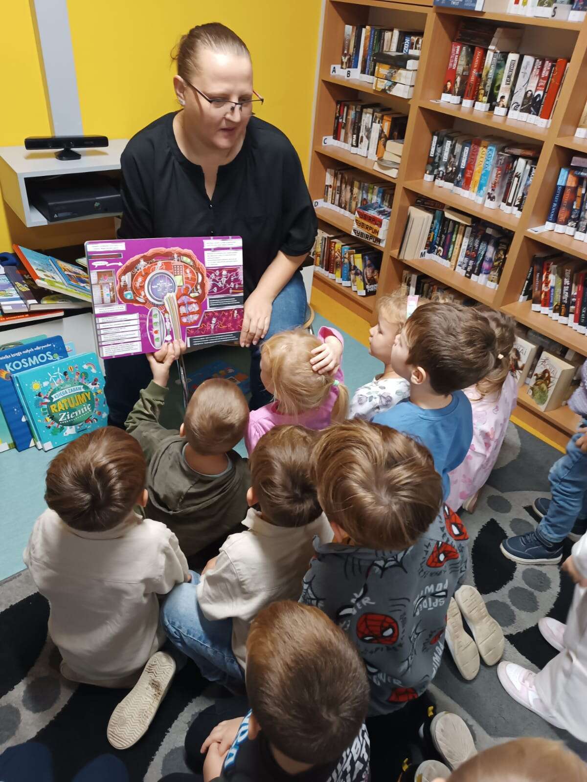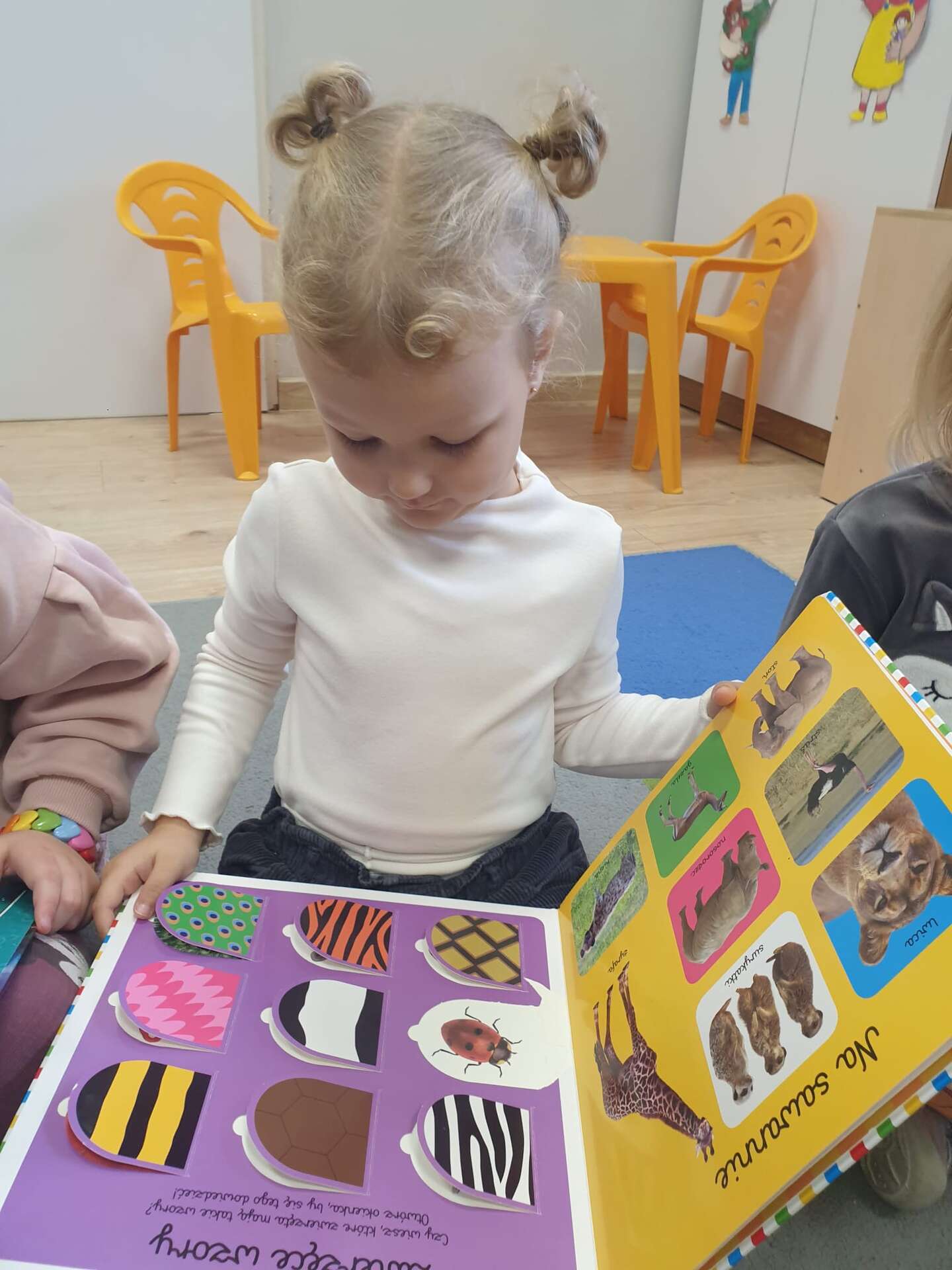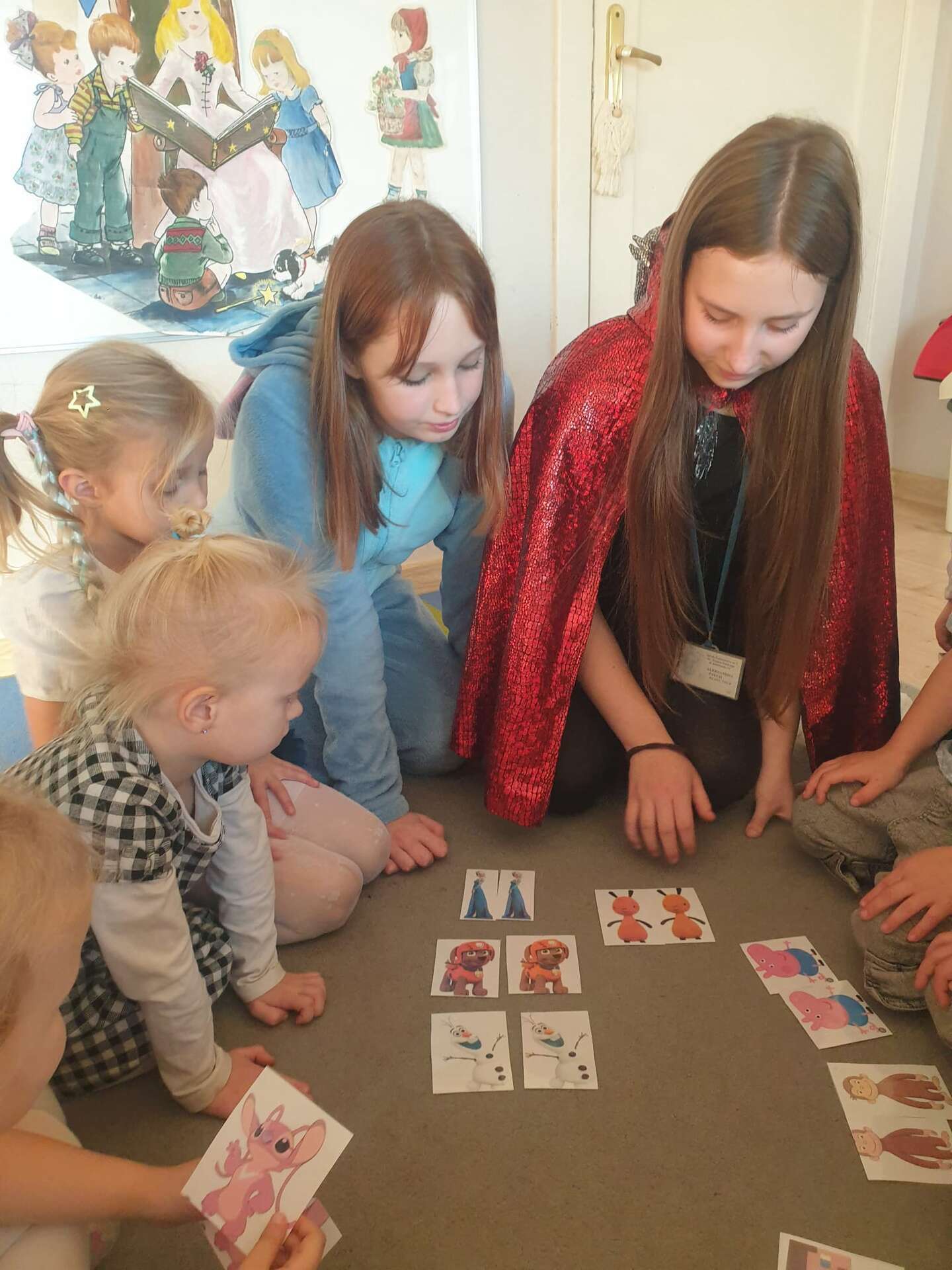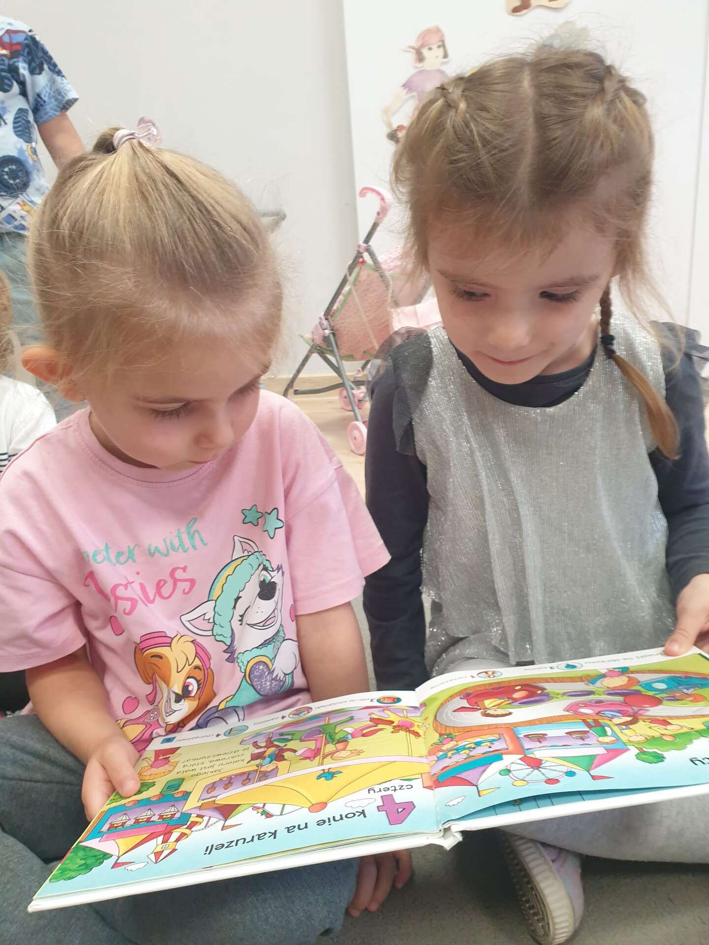 Dużym wydarzeniem tygodnia była wizyta w Miejskiej Bibliotece Publicznej, gdzie dzieci z wielkim zaciekawieniem wysłuchały bajki opowiedzianej przez panią bibliotekarkę. Każde dziecko otrzymało zakładkę do książki oraz kartę czytelniczą zachęcającą do pierwszych, samodzielnych wizyt w bibliotece z rodzicami. Nie zabrakło również wyjątkowego spotkania z absolwentką naszego przedszkola – Alą, która przeczytała dzieciom bajkę o wilku. Był to bardzo miły i wzruszający moment – dzieci słuchały z dużym skupieniem i zainteresowaniem. Tydzień zakończyły bajkowe zabawy zorganizowane przez wolontariuszki – pełne śmiechu, ruchu i kreatywnych aktywności, które pozwoliły dzieciom wcielić się w role bohaterów znanych baśni. Tydzień „W świecie bajek” dostarczył dzieciom wielu emocji, pobudził wyobraźnię, wzbogacił słownictwo i – co najważniejsze – rozbudził zainteresowanie książką i czytaniem. Był to czas pełen radości, wspólnej zabawy i nauki poprzez literaturę dziecięcą.