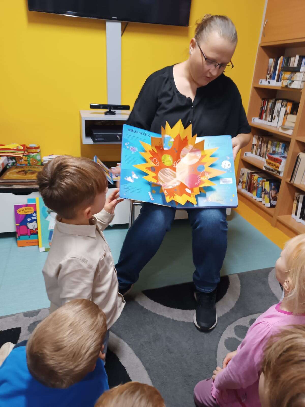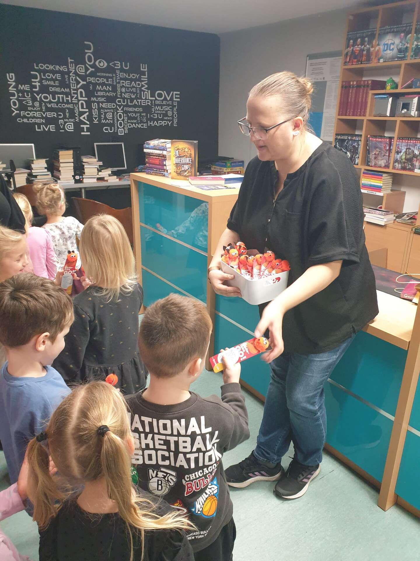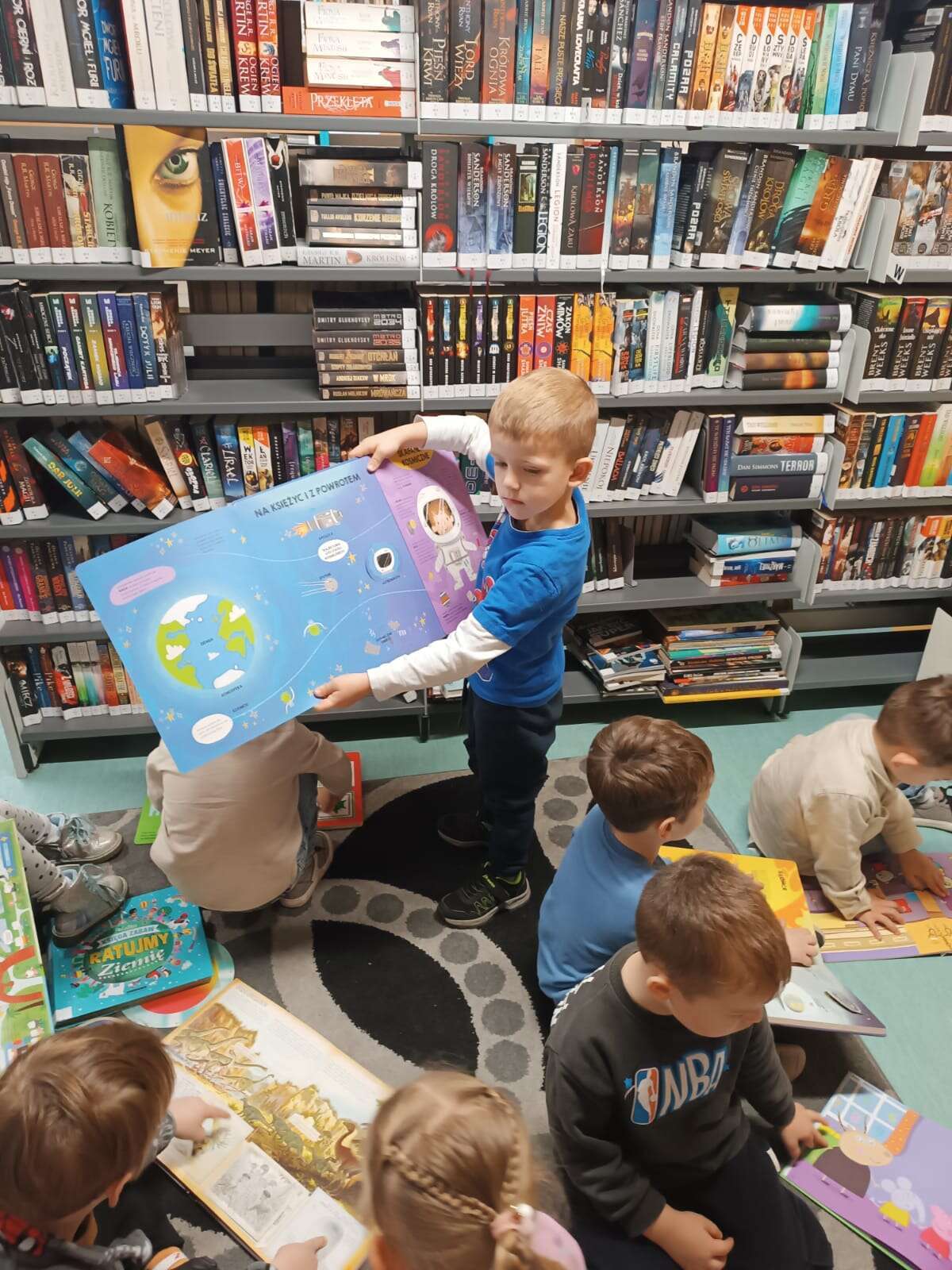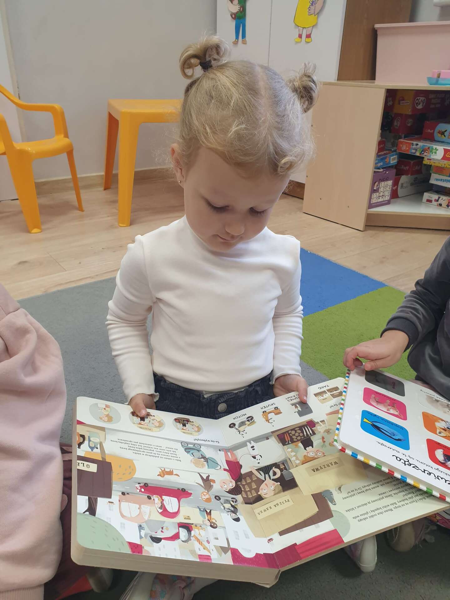Dużym wydarzeniem tygodnia była wizyta w Miejskiej Bibliotece Publicznej, gdzie dzieci z wielkim zaciekawieniem wysłuchały bajki opowiedzianej przez panią bibliotekarkę. Każde dziecko otrzymało zakładkę do książki oraz kartę czytelniczą zachęcającą do pierwszych, samodzielnych wizyt w bibliotece z rodzicami. Nie zabrakło również wyjątkowego spotkania z absolwentką naszego przedszkola – Alą, która przeczytała dzieciom bajkę o wilku. Był to bardzo miły i wzruszający moment – dzieci słuchały z dużym skupieniem i zainteresowaniem. Tydzień zakończyły bajkowe zabawy zorganizowane przez wolontariuszki – pełne śmiechu, ruchu i kreatywnych aktywności, które pozwoliły dzieciom wcielić się w role bohaterów znanych baśni. Tydzień „W świecie bajek” dostarczył dzieciom wielu emocji, pobudził wyobraźnię, wzbogacił słownictwo i – co najważniejsze – rozbudził zainteresowanie książką i czytaniem. Był to czas pełen radości, wspólnej zabawy i nauki poprzez literaturę dziecięcą.