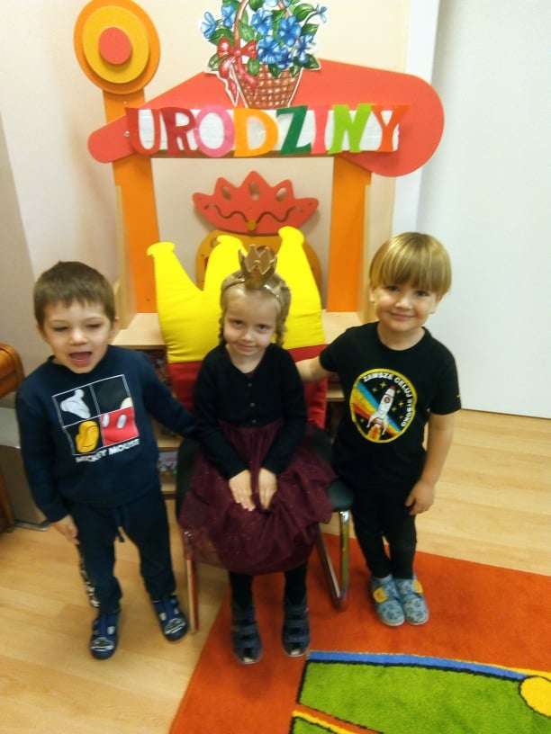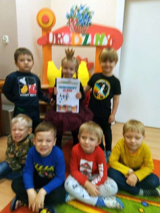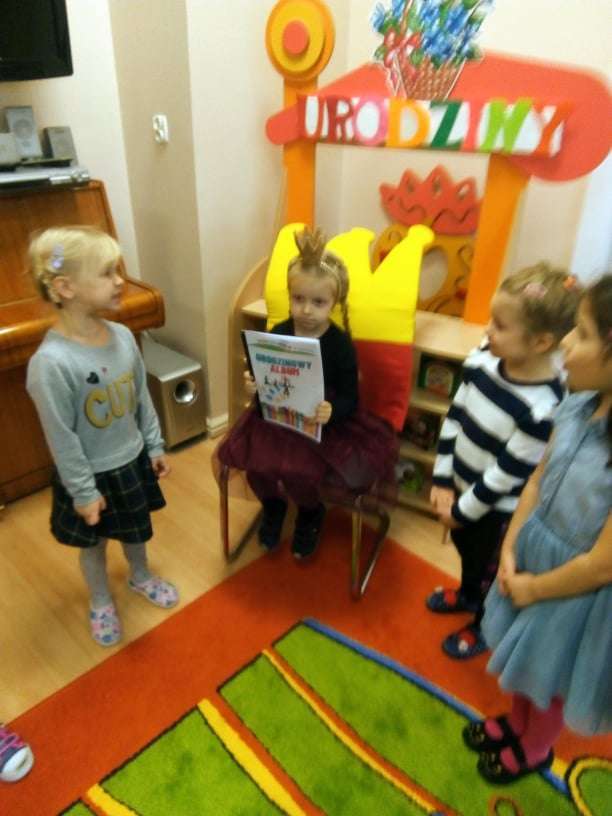 Idzie misio, idzie konik, małpka, piesek no i słonik. Wszyscy razem z balonami, z najlepszymi życzeniami. Bo to dzień radosny wielce -masz już jeden roczek więcej!