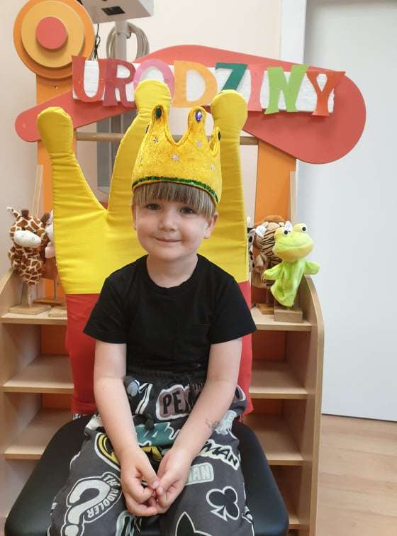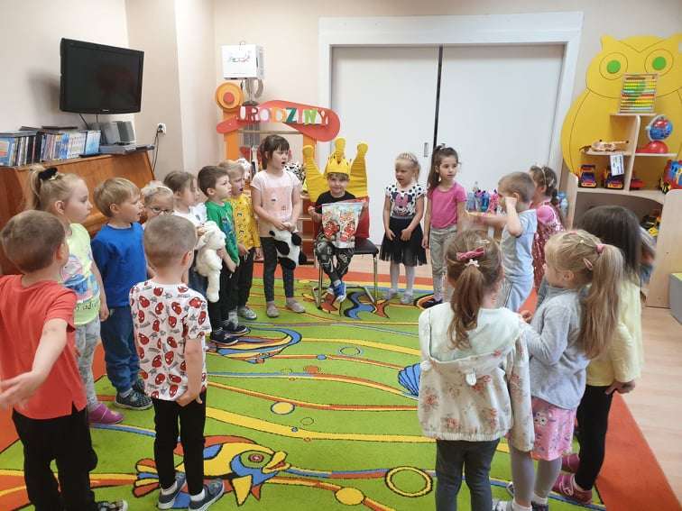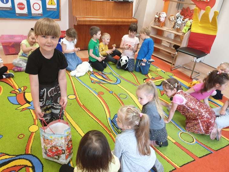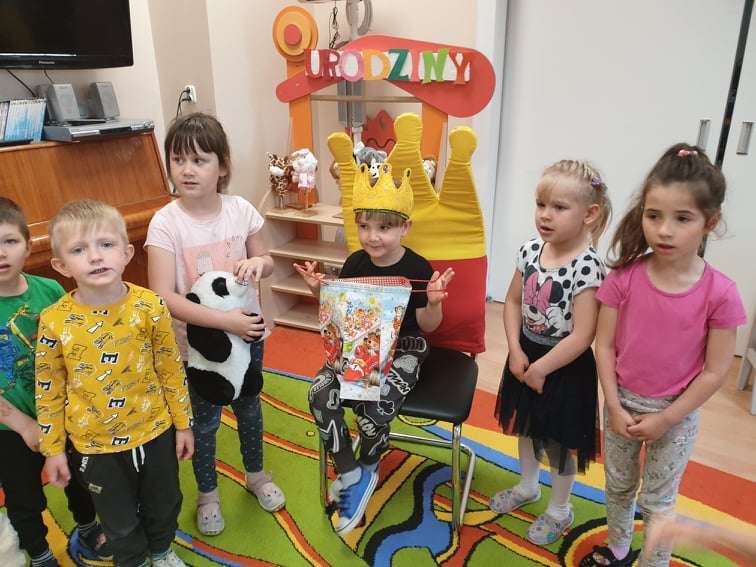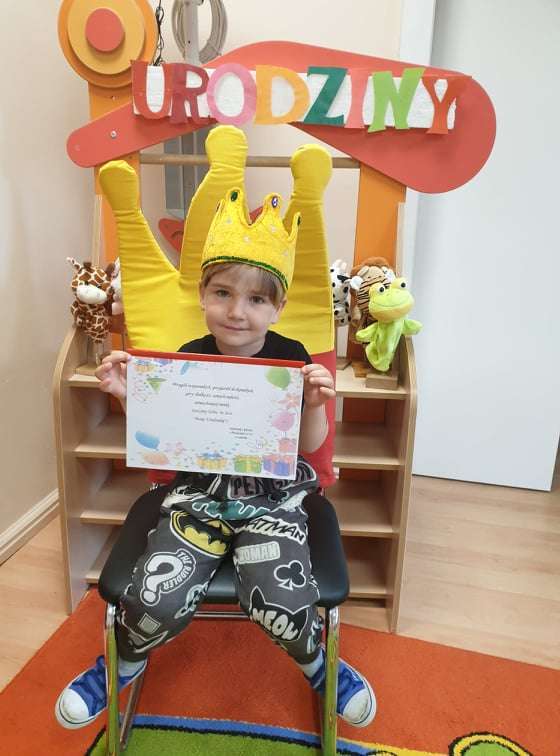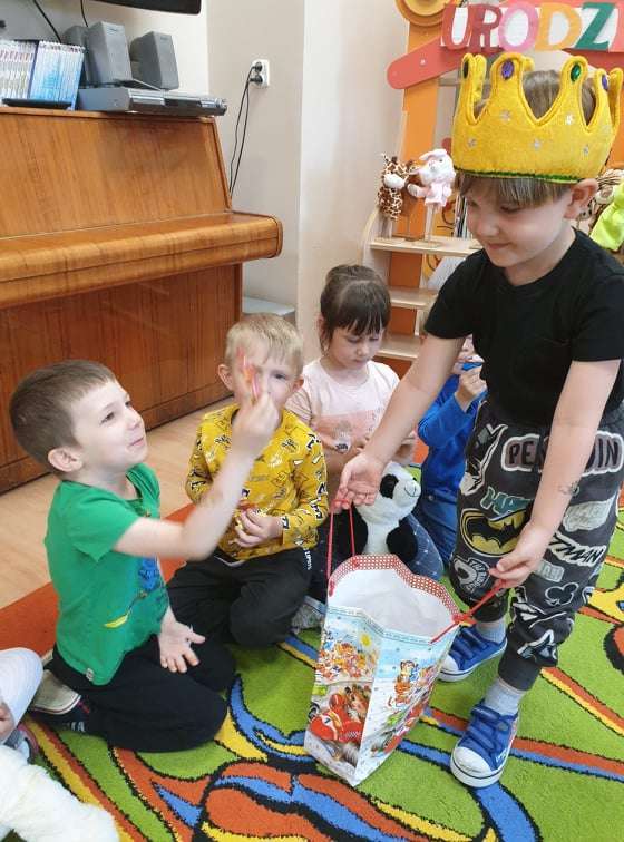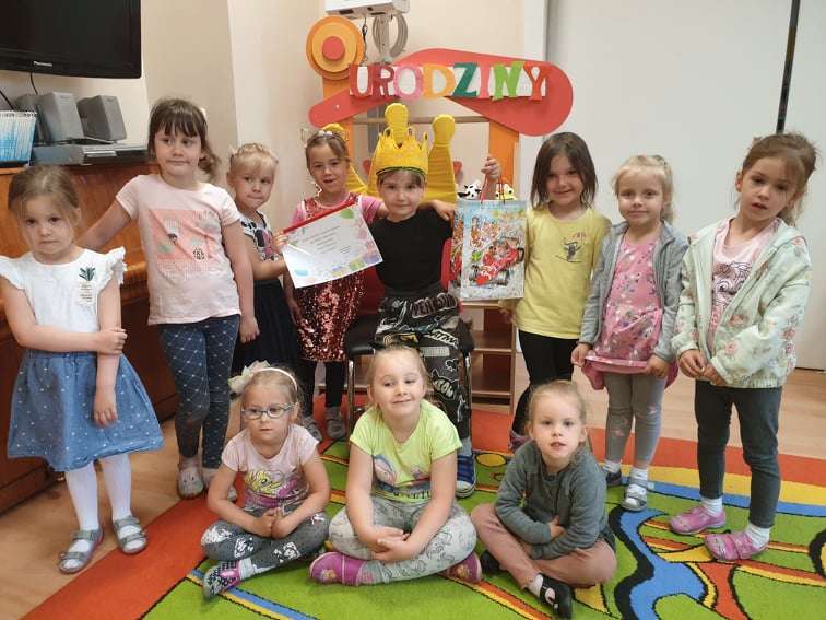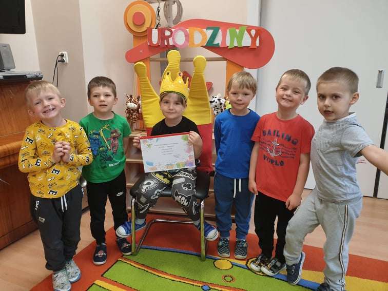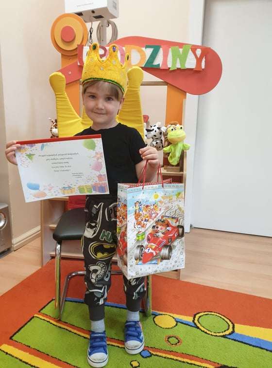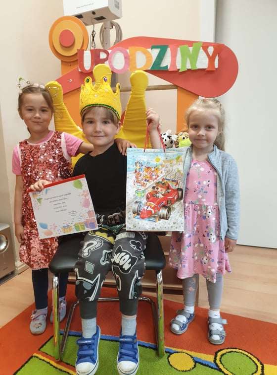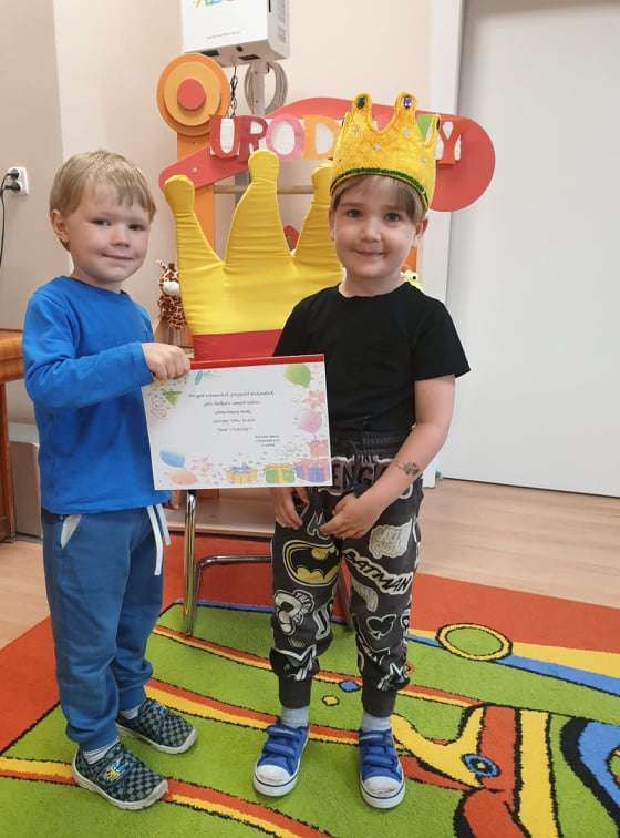 Idzie misio, idzie konik, małpka, piesek no i słonik. Wszyscy razem z balonami, z najlepszymi życzeniami. Bo to dzień radosny wielce -masz już jeden roczek więcej!
