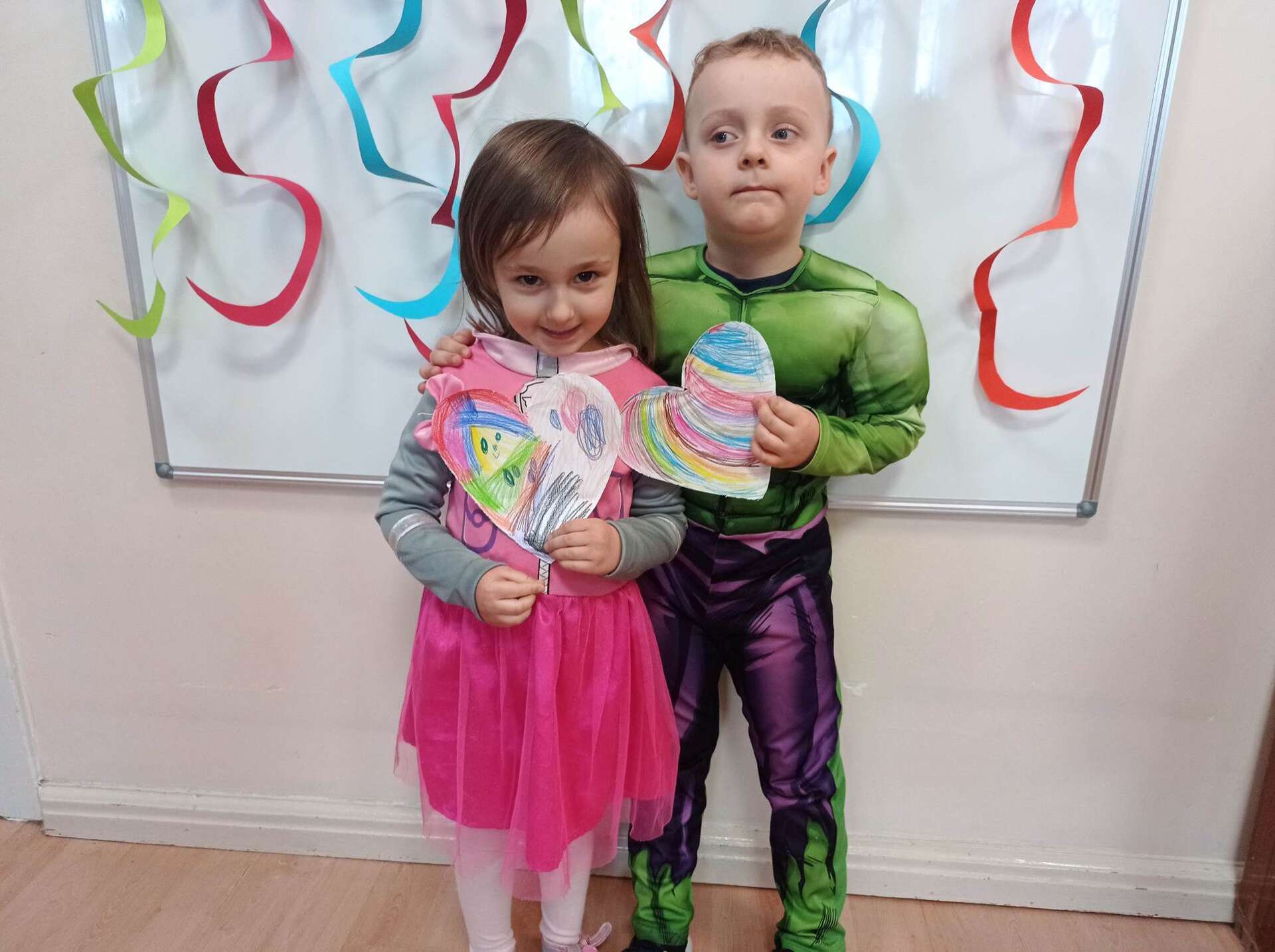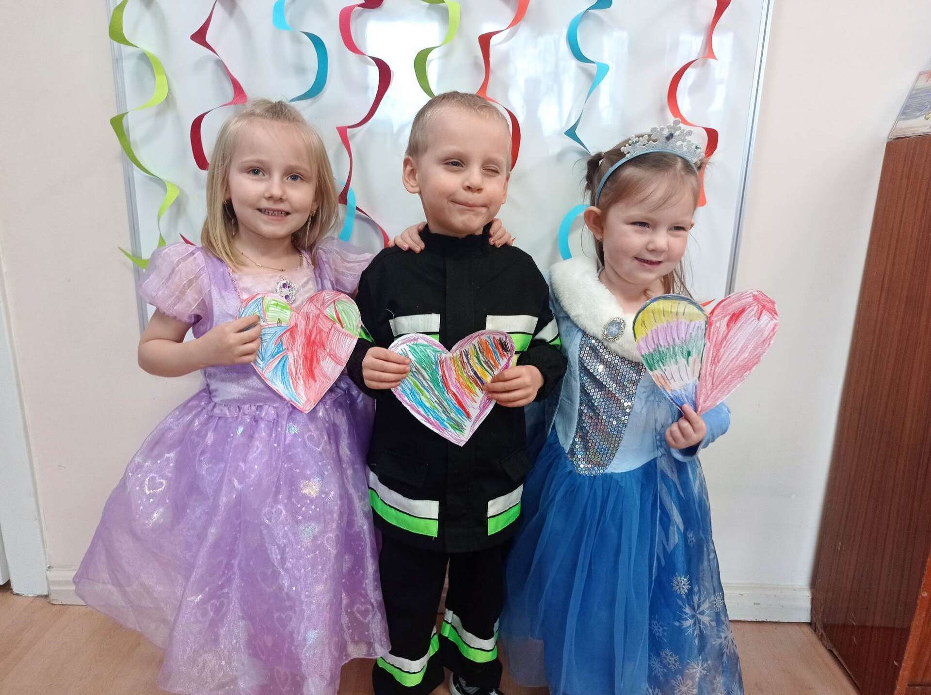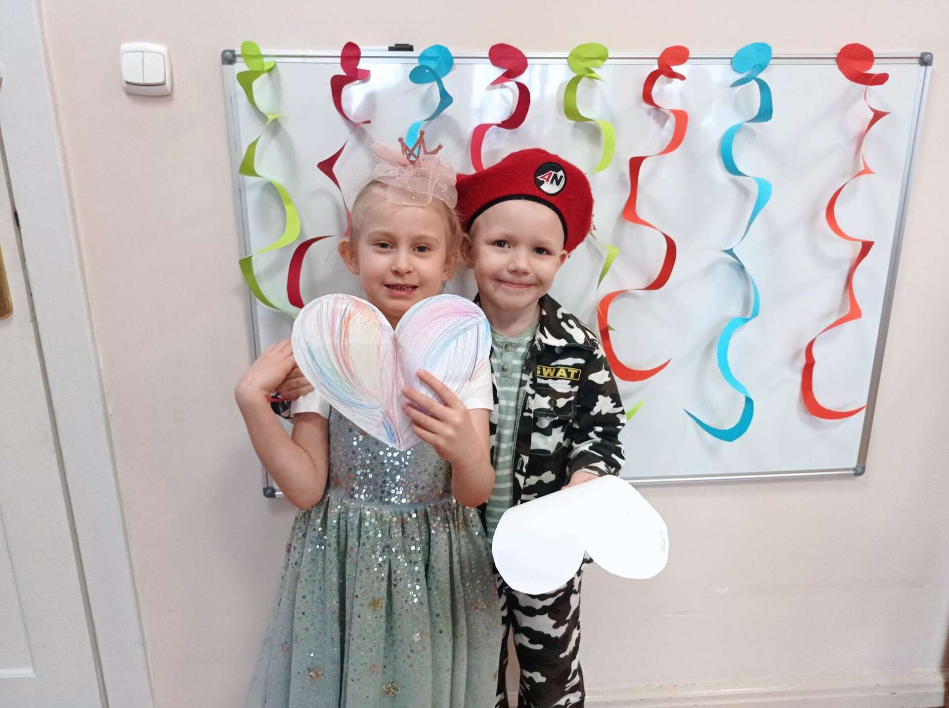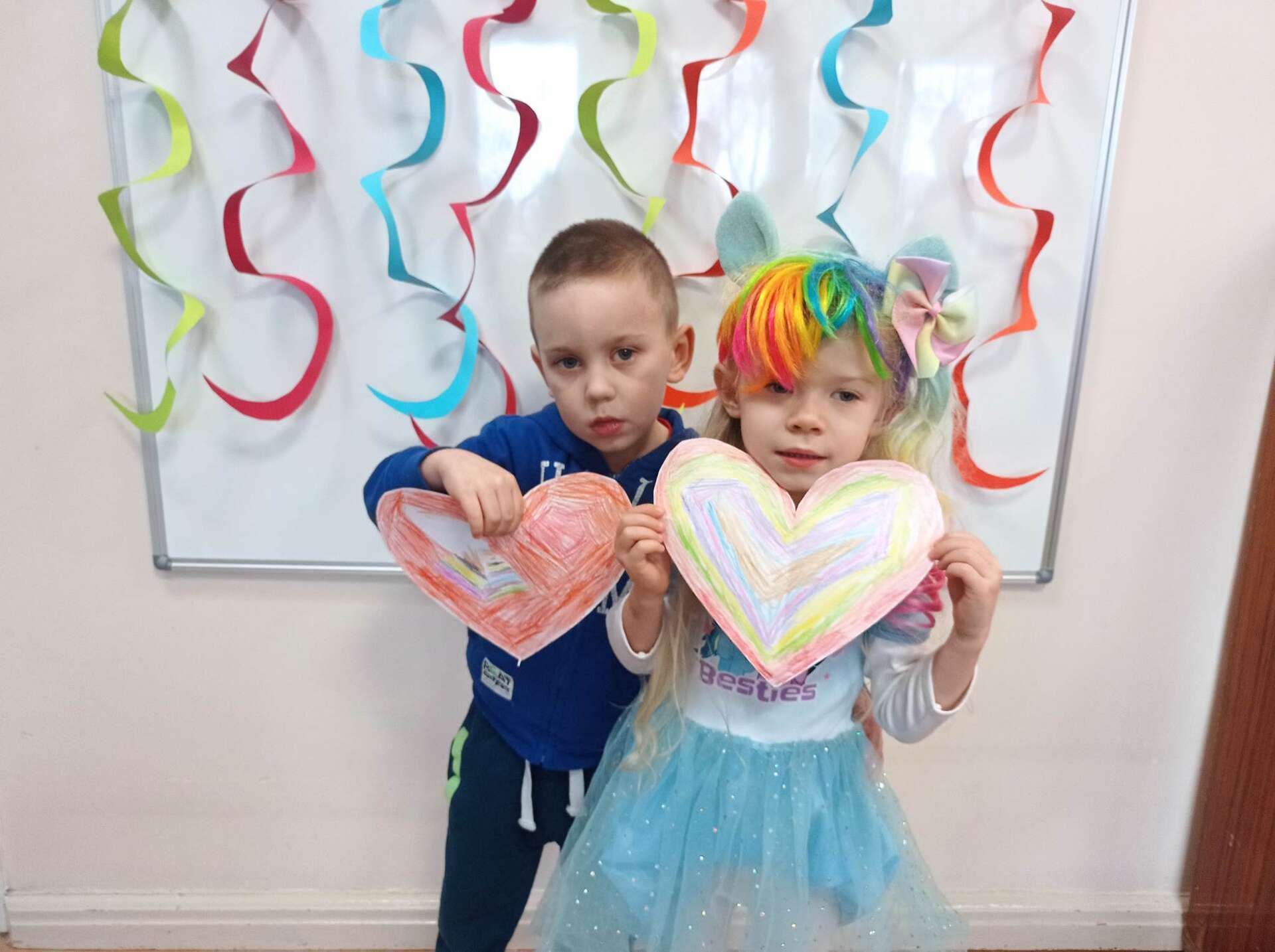 Dzieci ustawione są do wspólnego zdjęcia walentynkowego