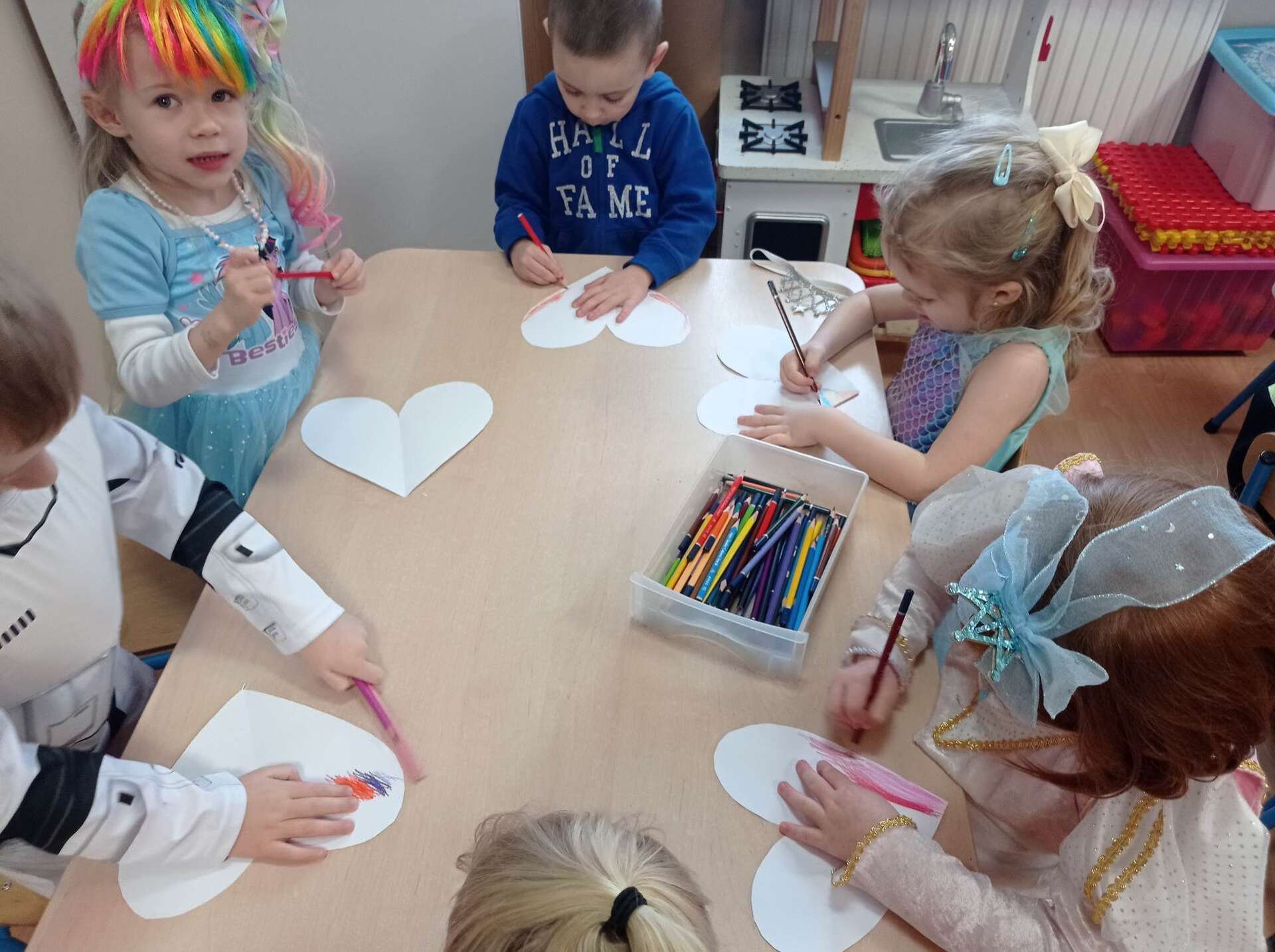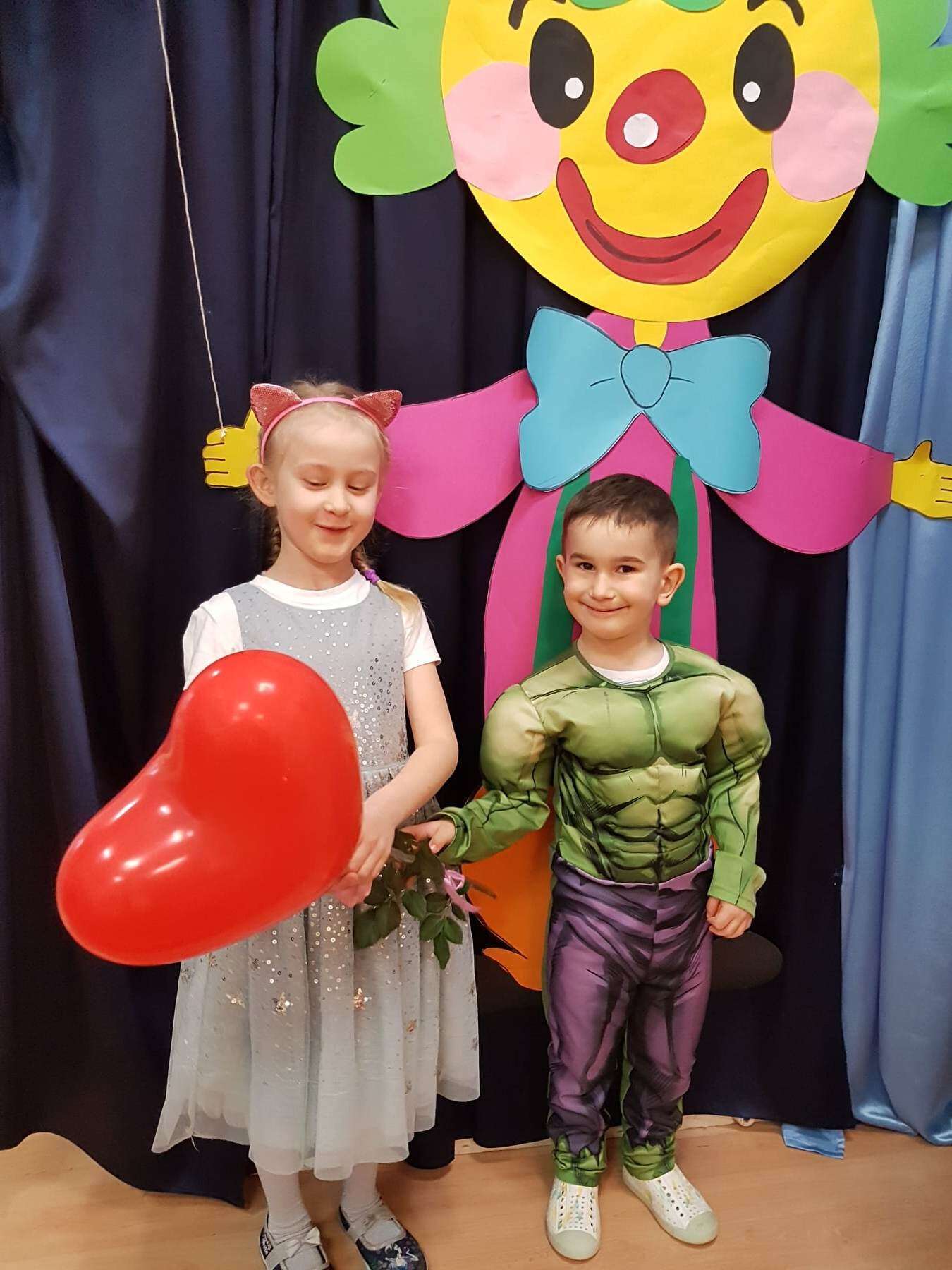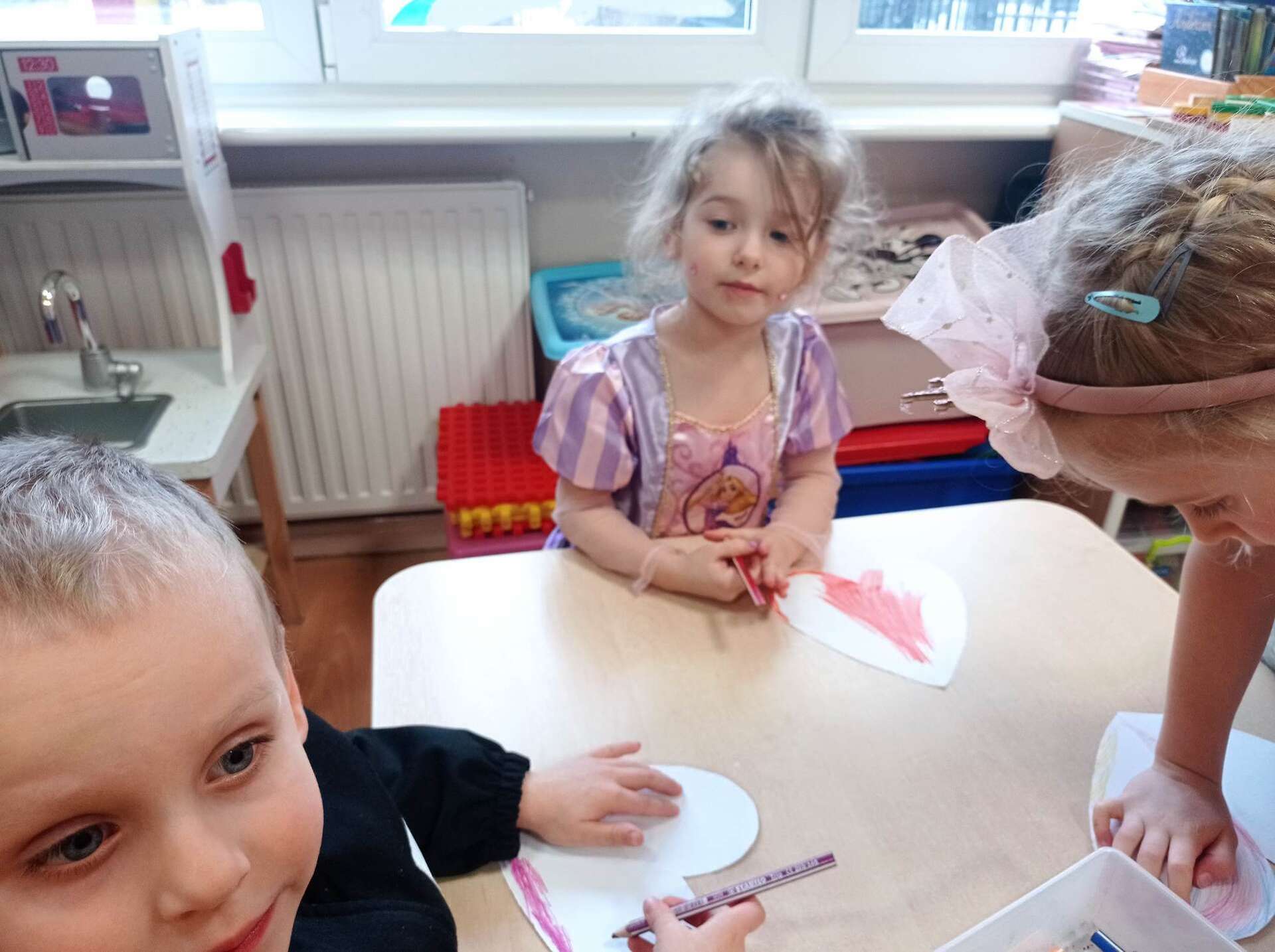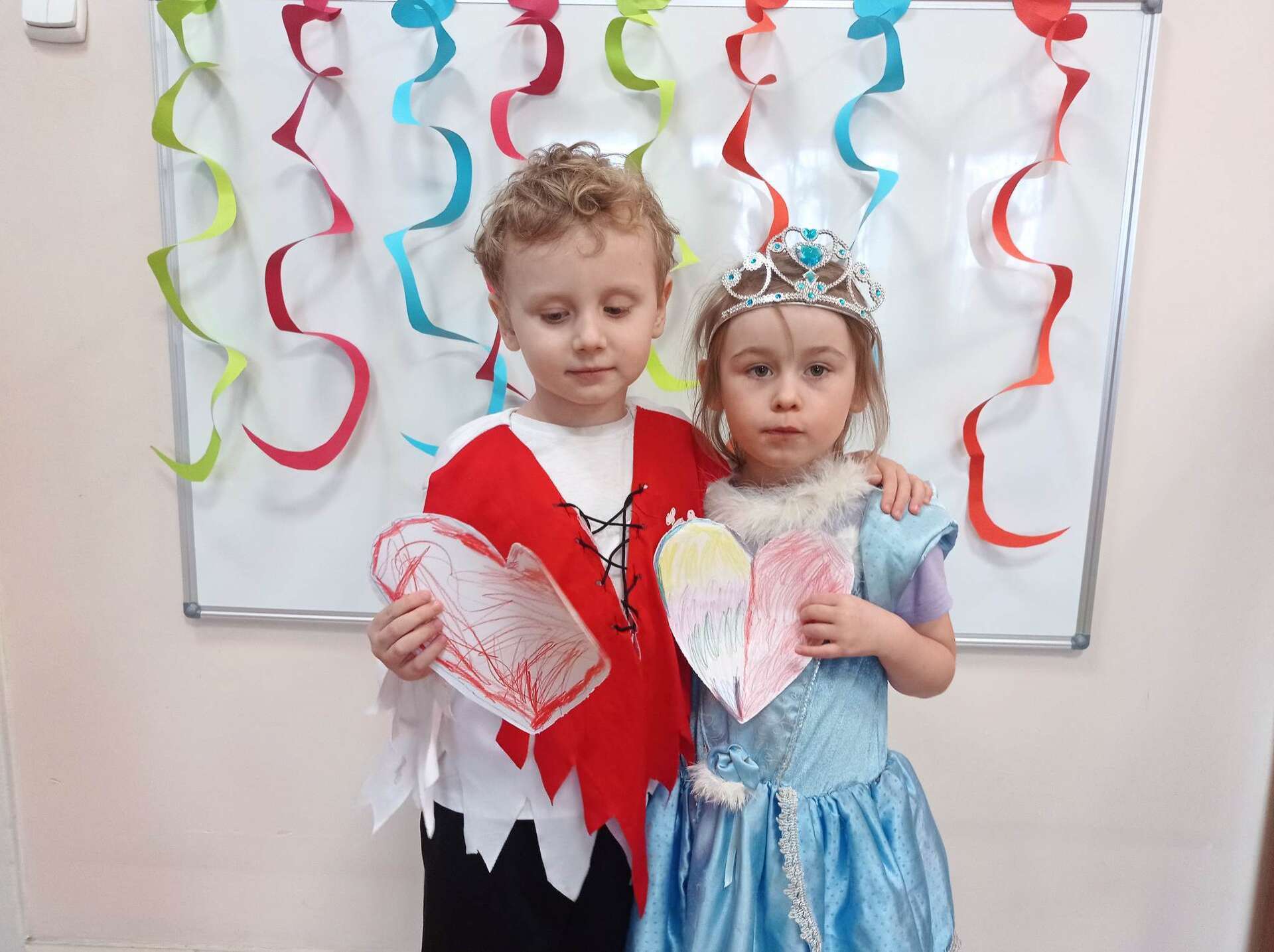 Dzieci ustawione są do wspólnego zdjęcia walentynkowego