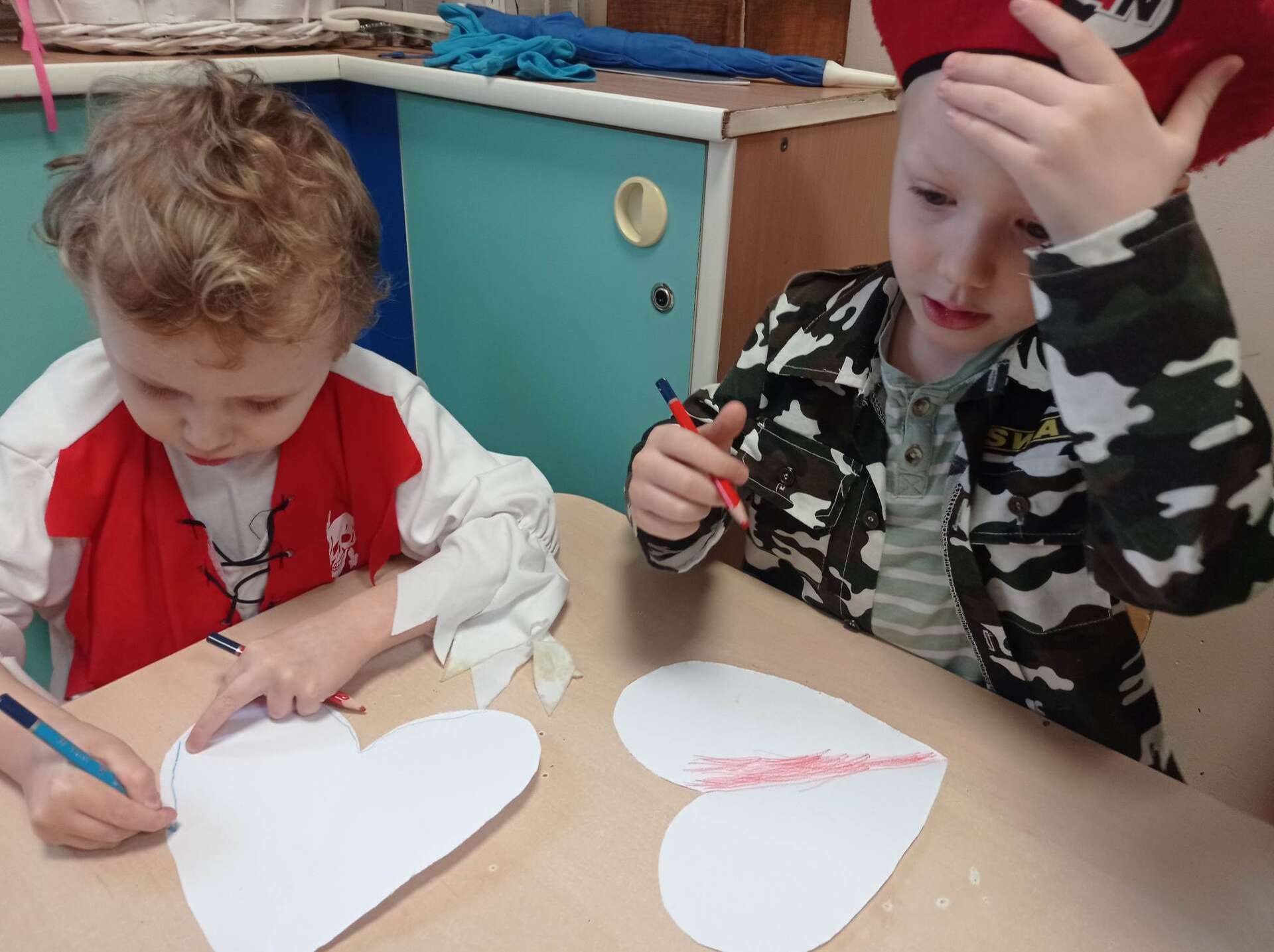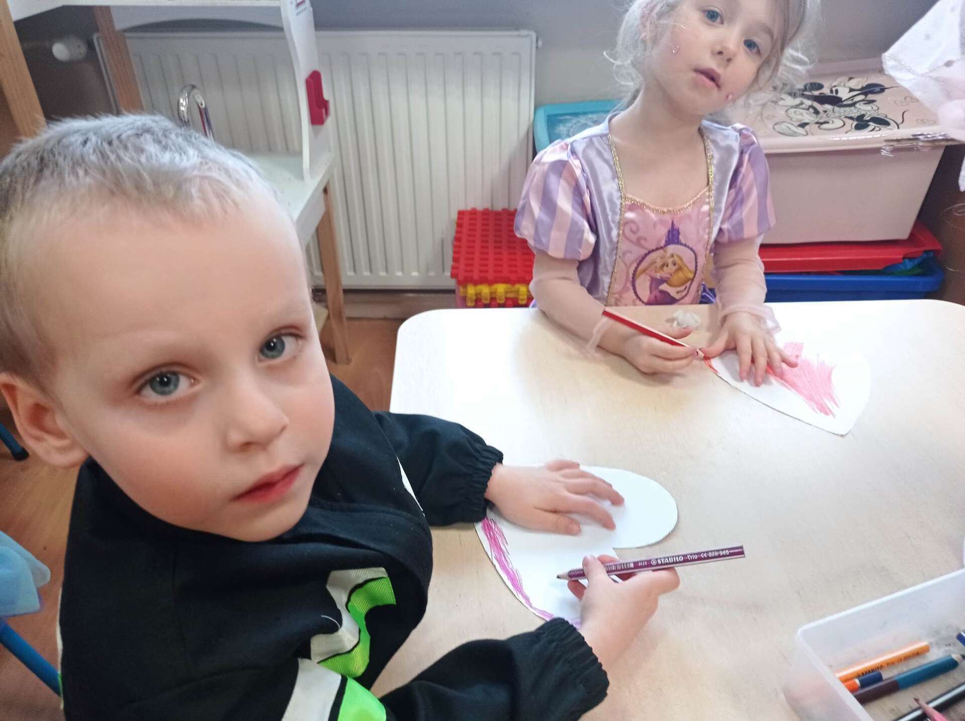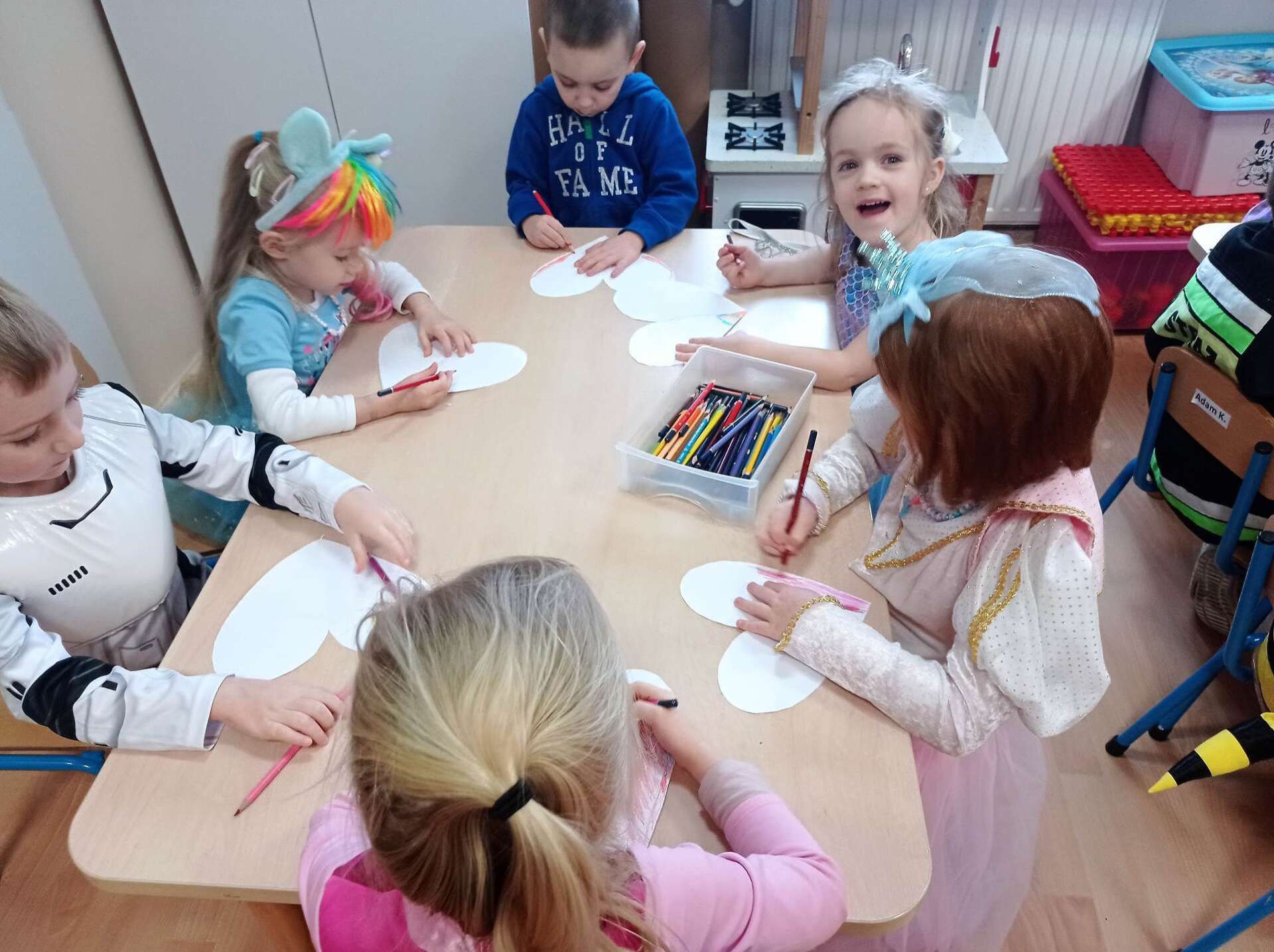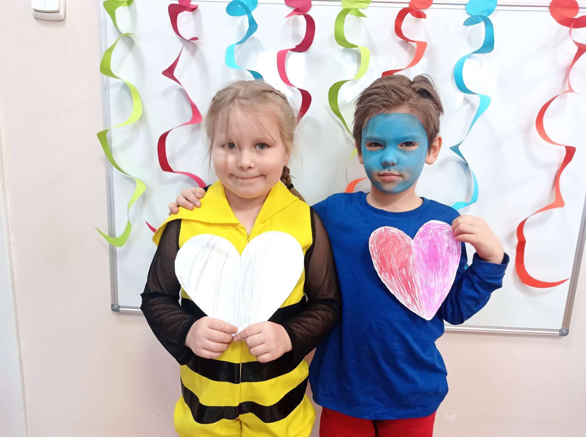 Dzieci ustawione są do wspólnego zdjęcia walentynkowego