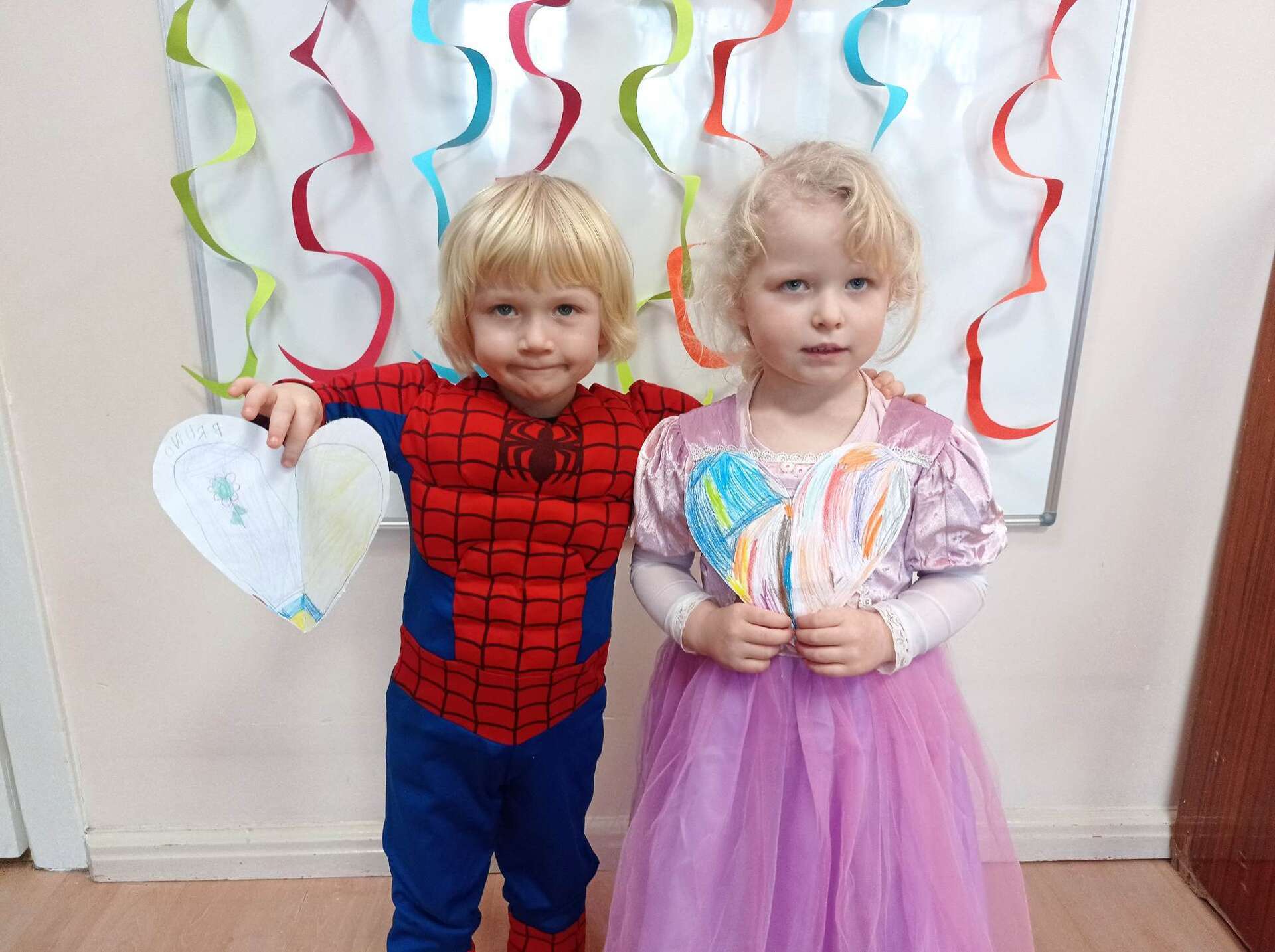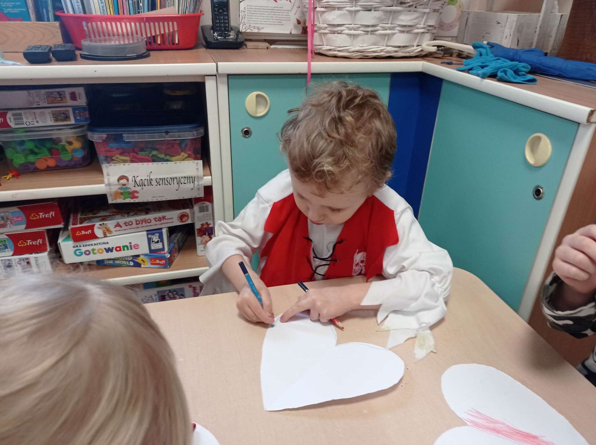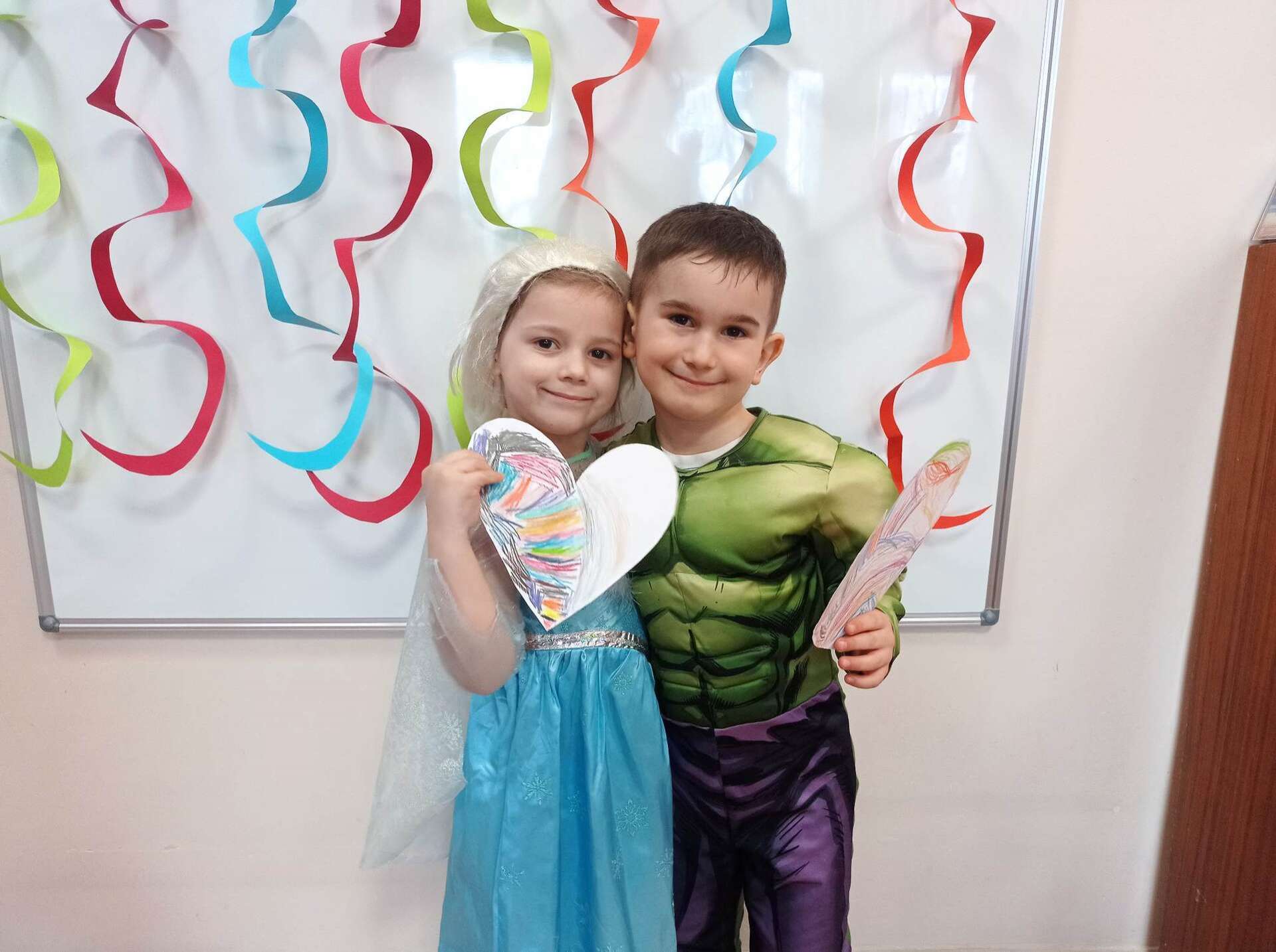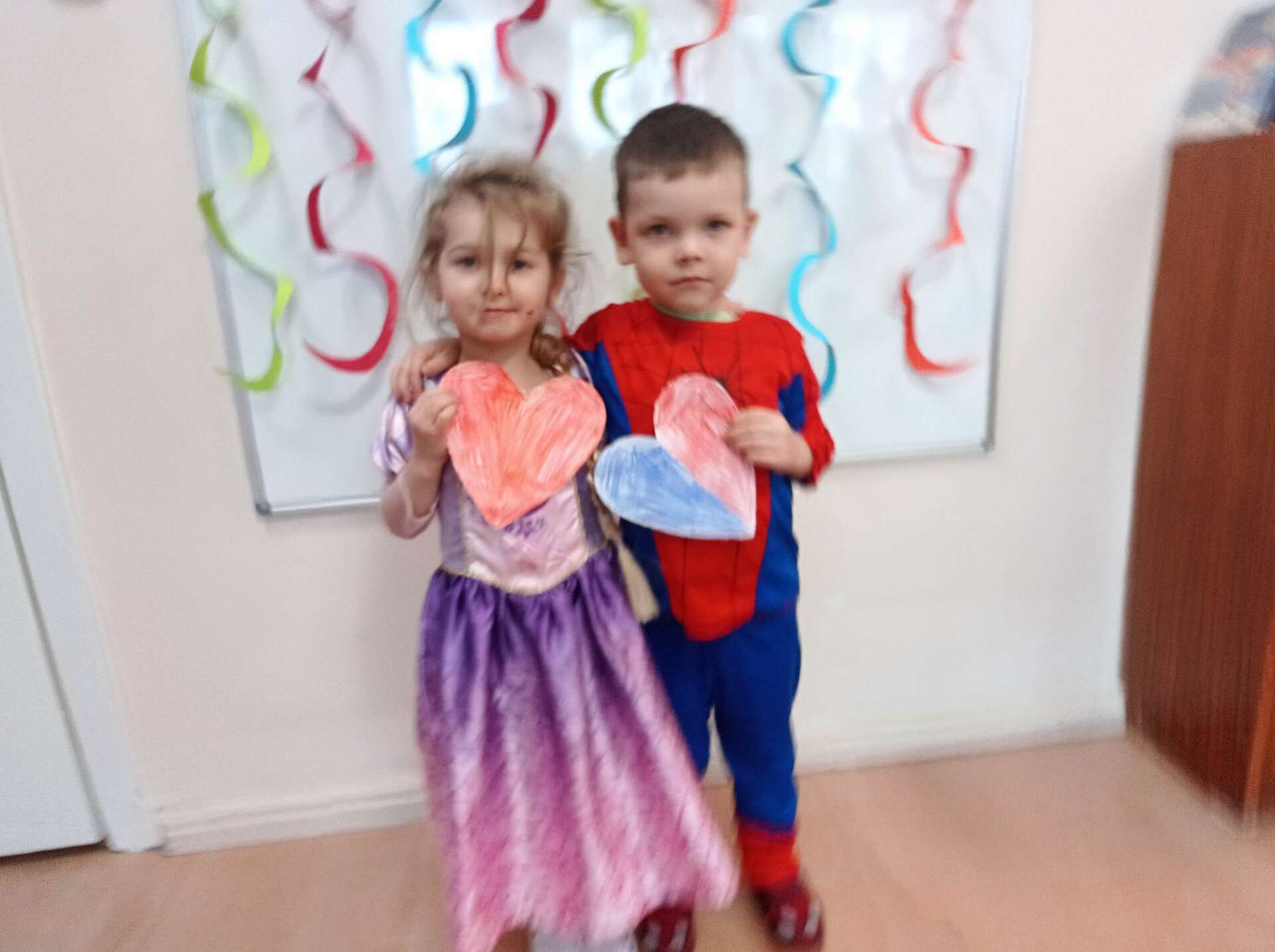 Dzieci ustawione są do wspólnego zdjęcia walentynkowego