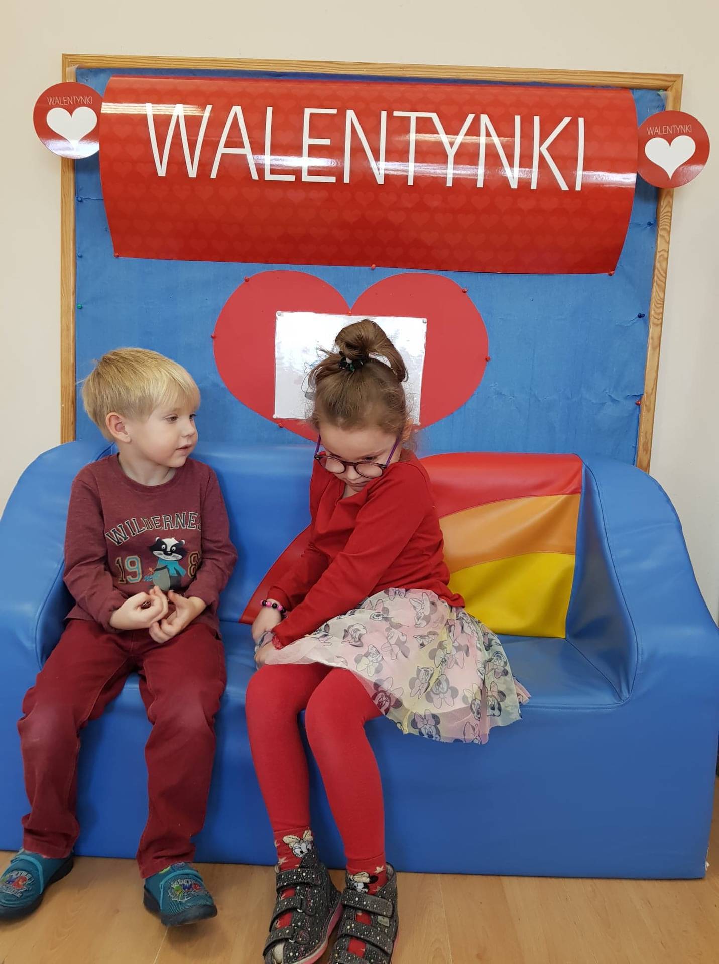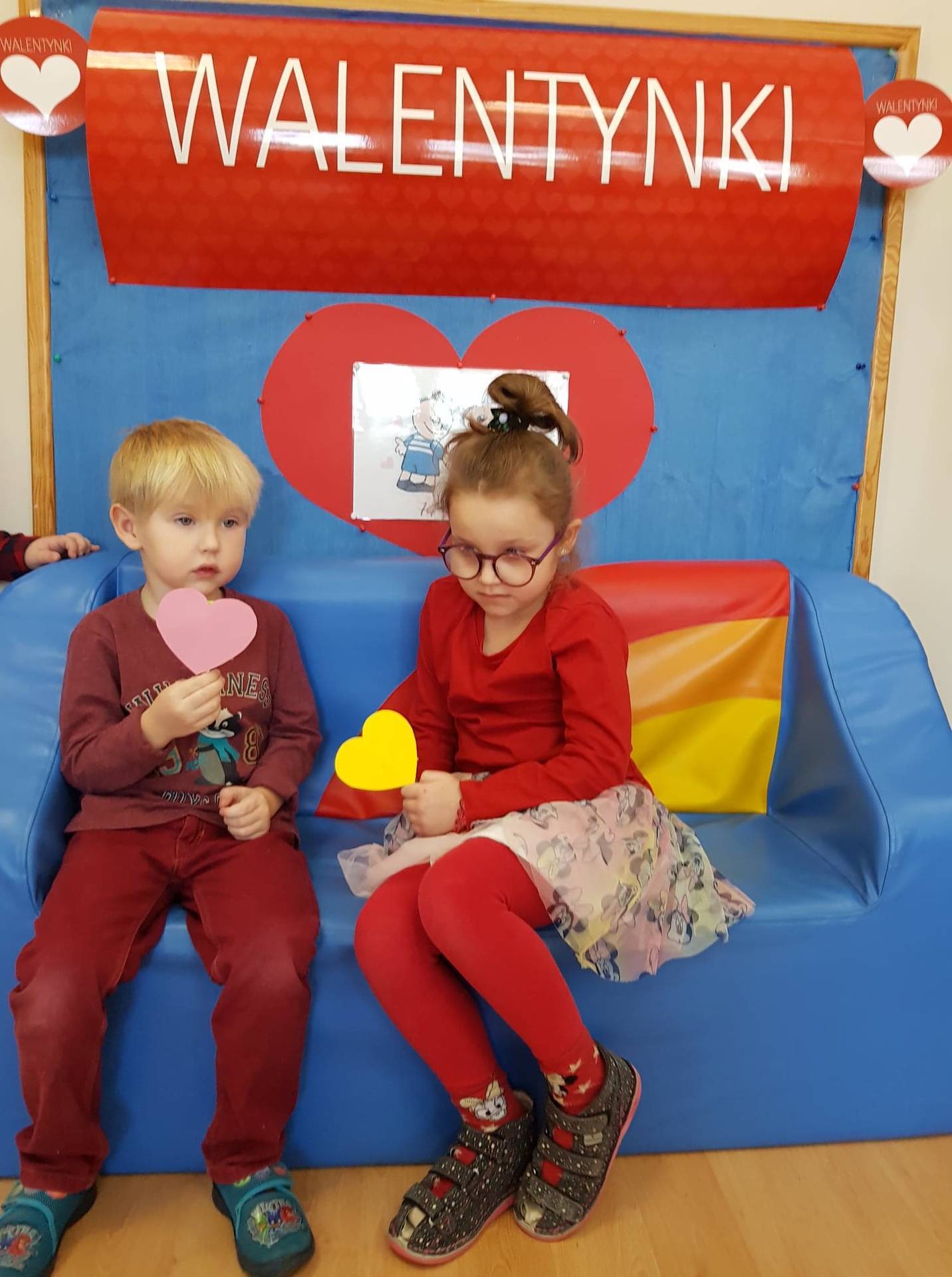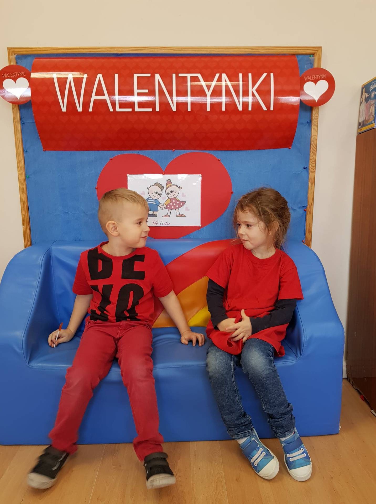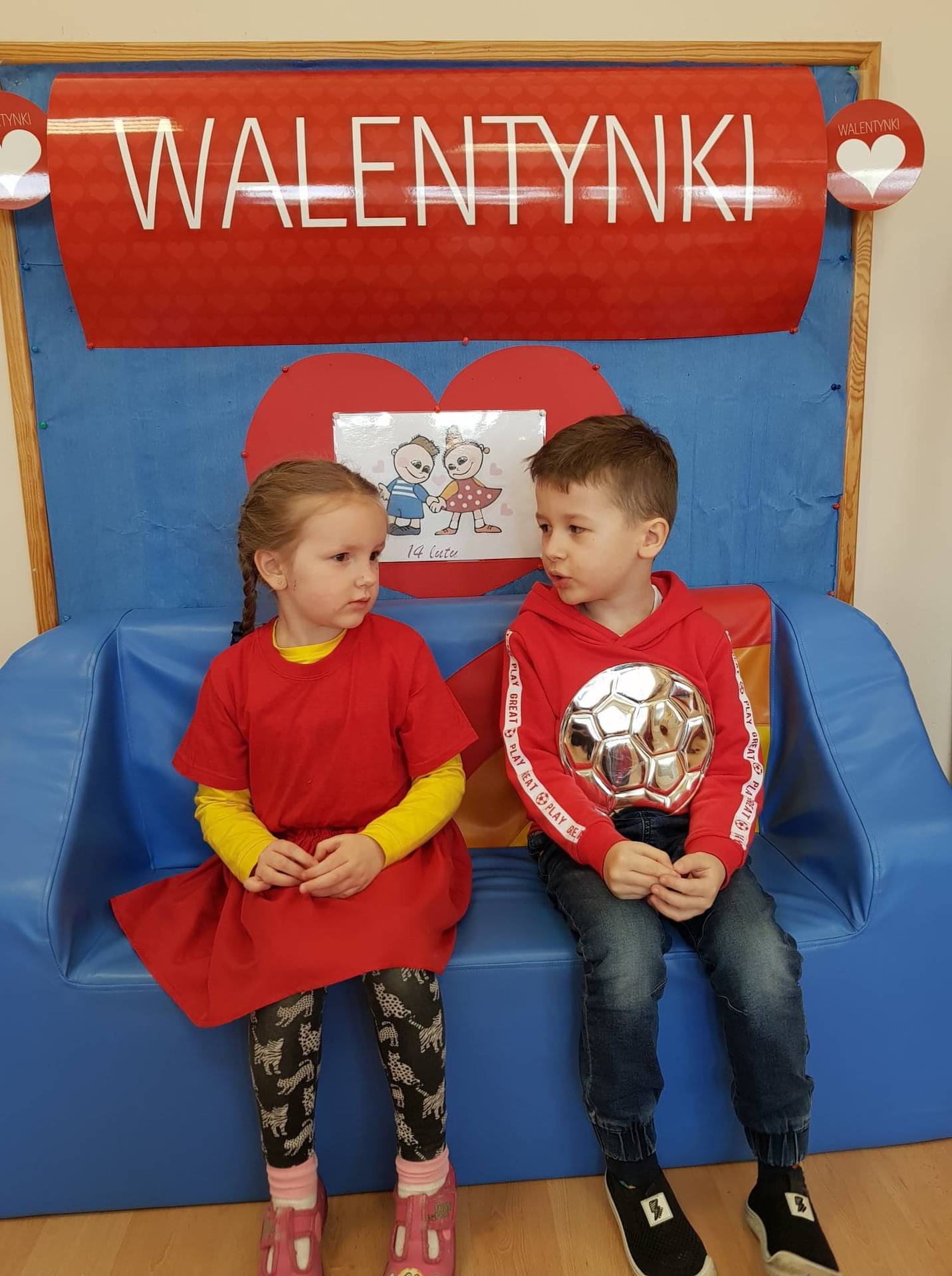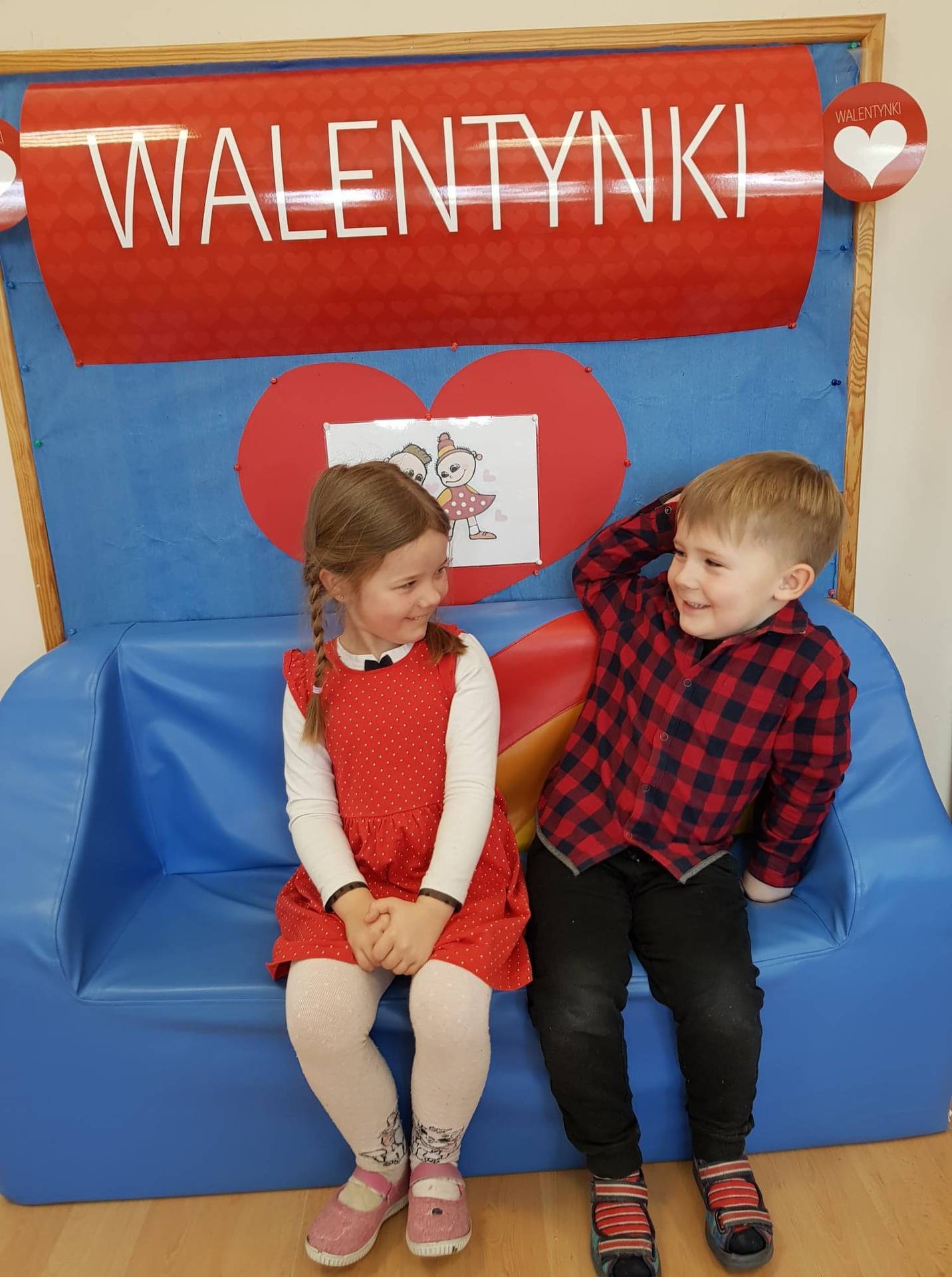 Zadaniem dzieci było samodzielnie dobrać się w pary i na "ławeczce zakochanych" powiedzieć drugiej osobie coś miłego. Stąd na niektórych twarzach zawstydzenie.......