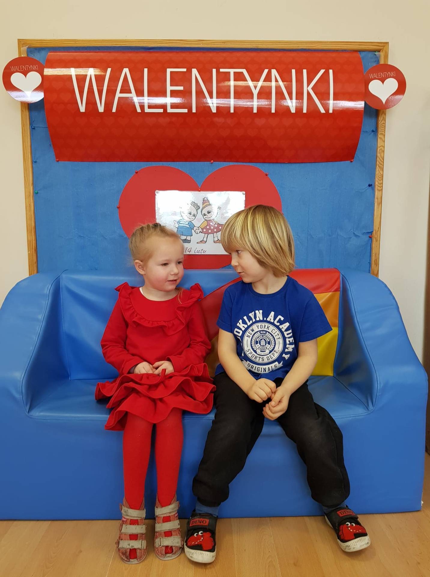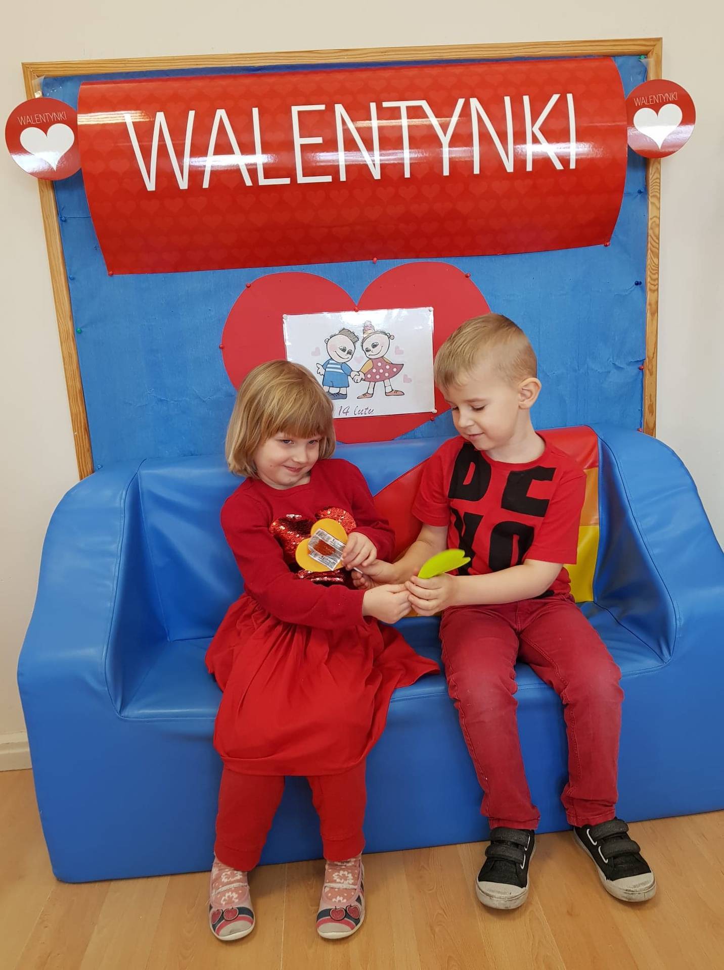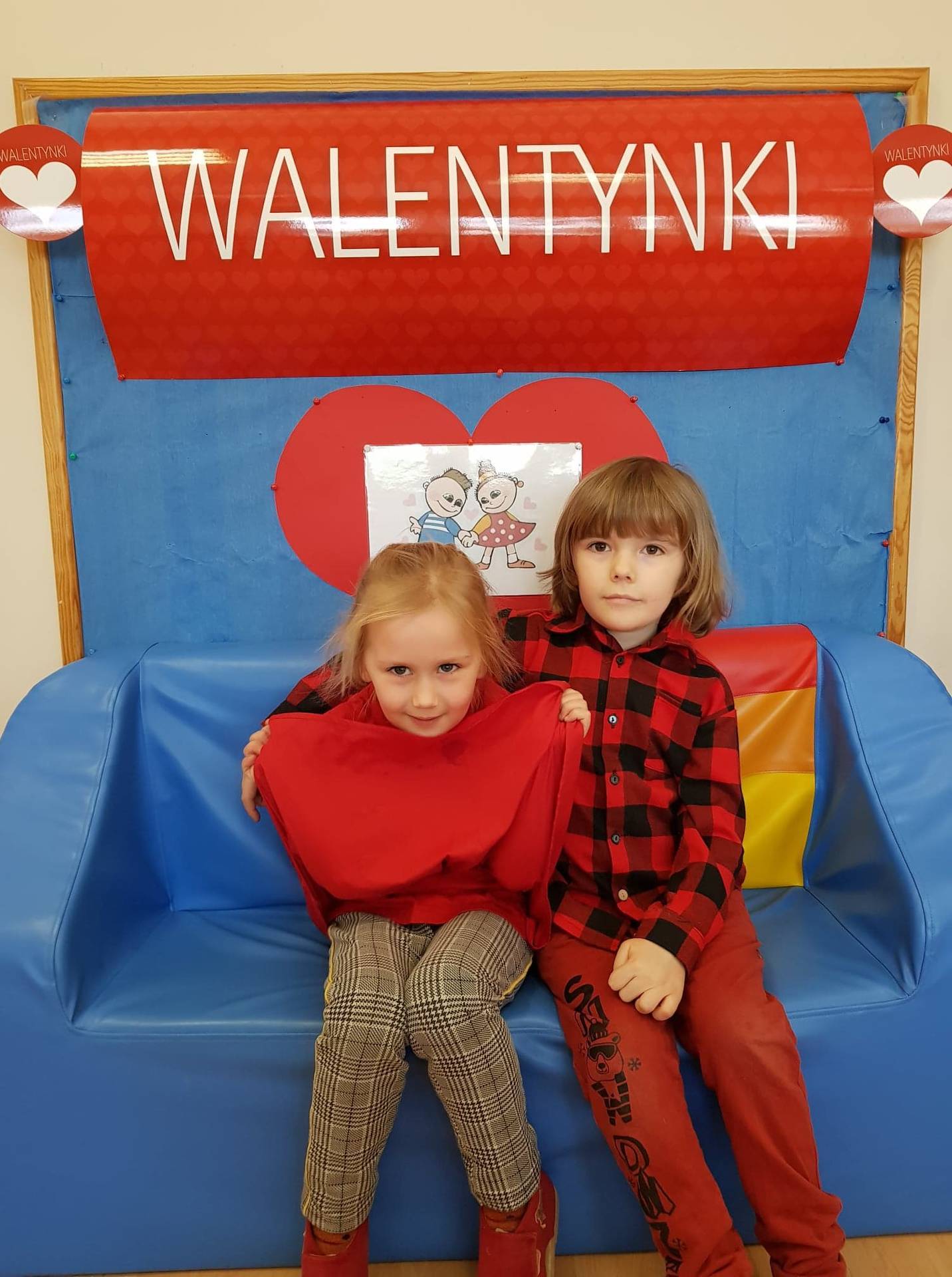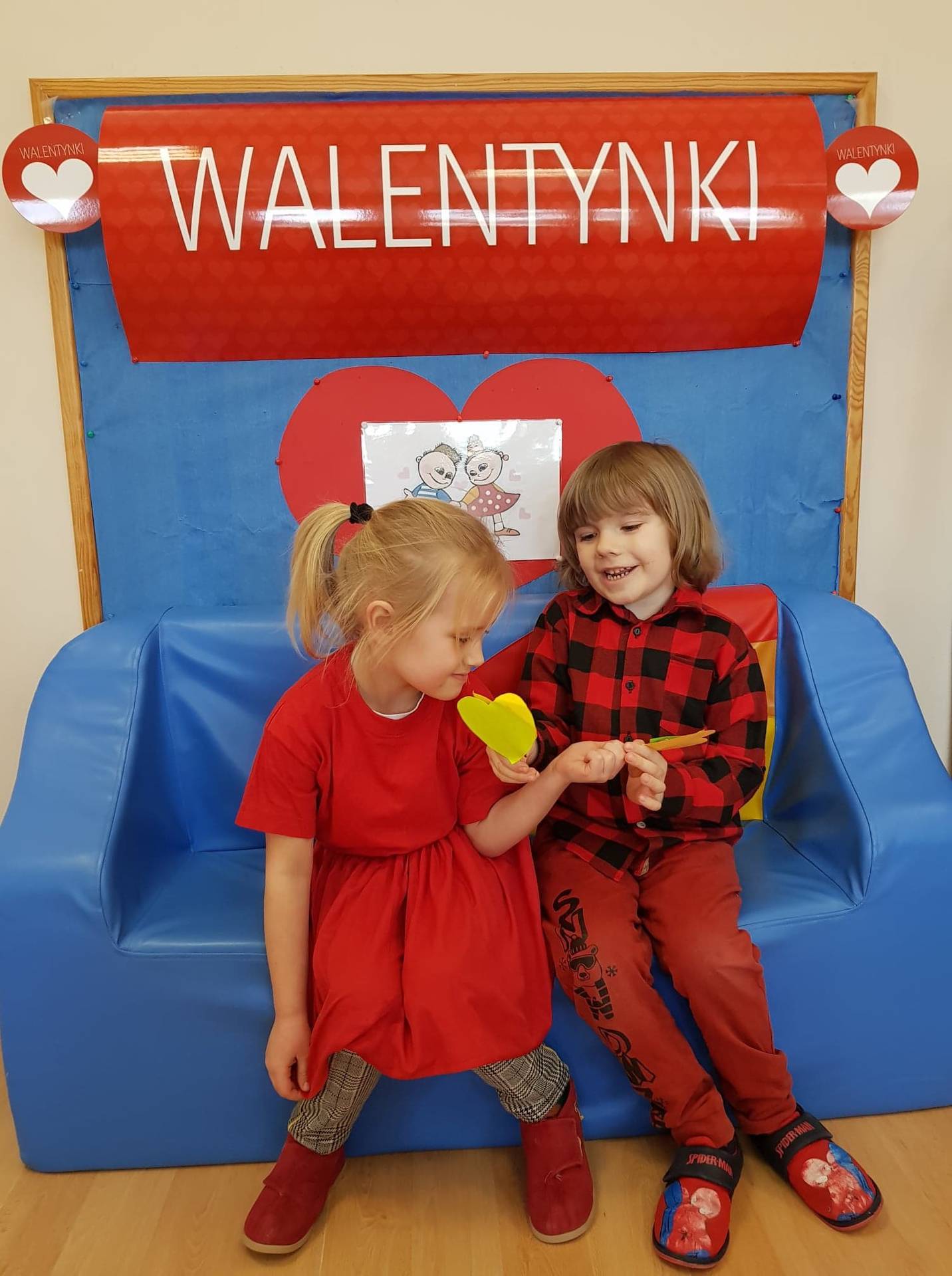 Zadaniem dzieci było samodzielnie dobrać się w pary i na "ławeczce zakochanych" powiedzieć drugiej osobie coś miłego. Stąd na niektórych twarzach zawstydzenie.......