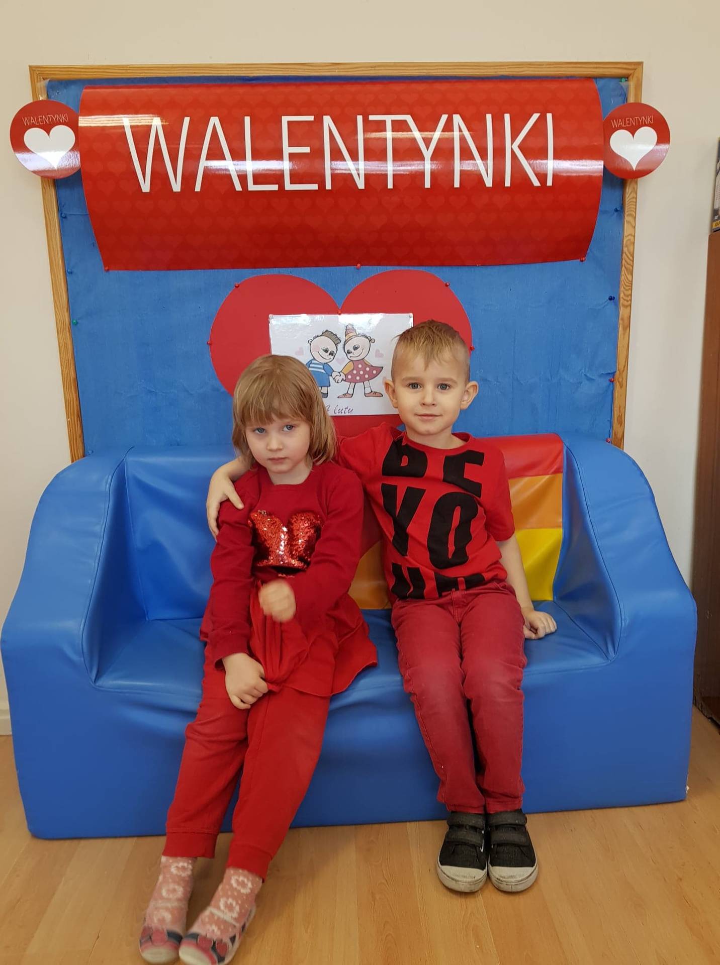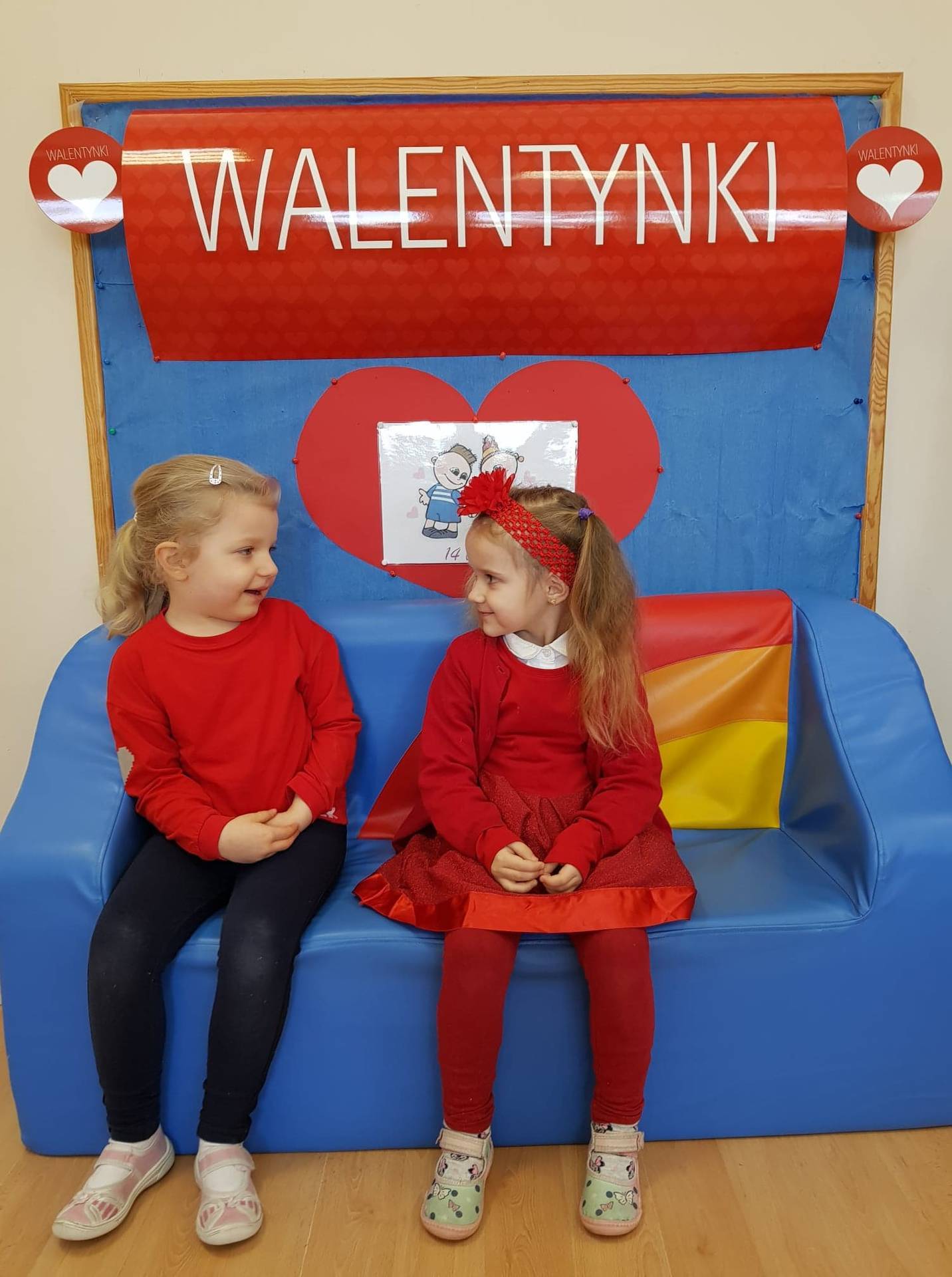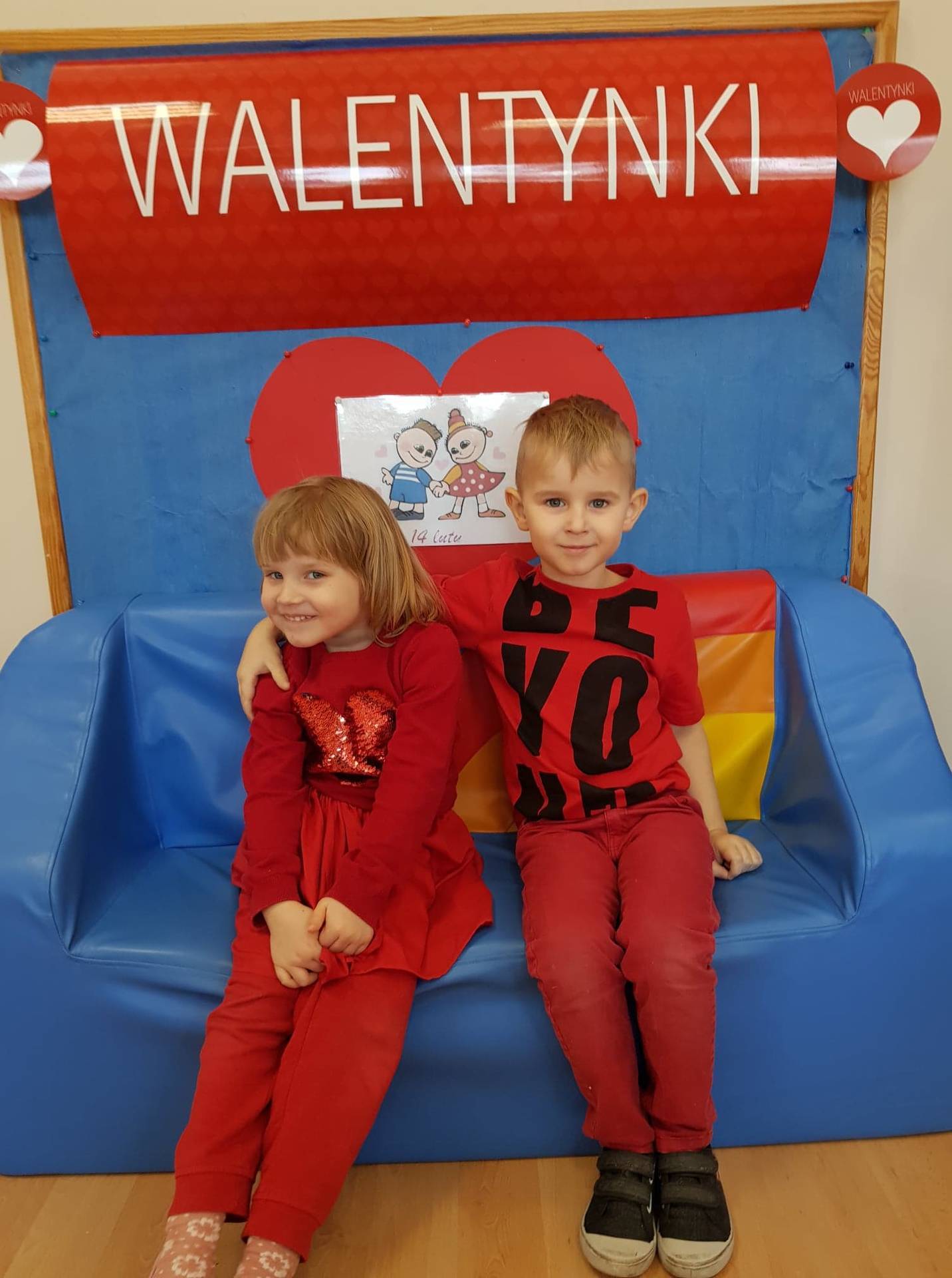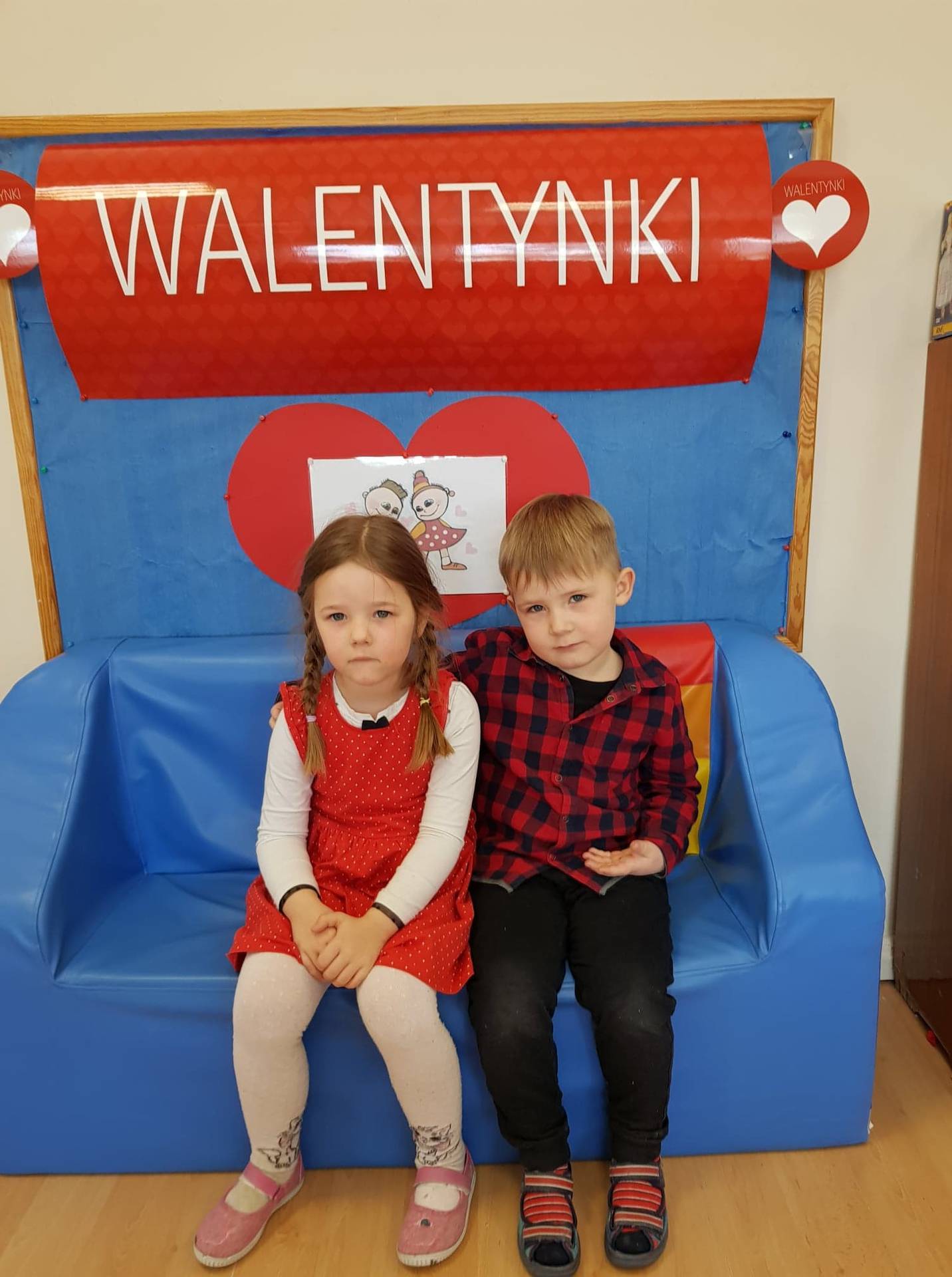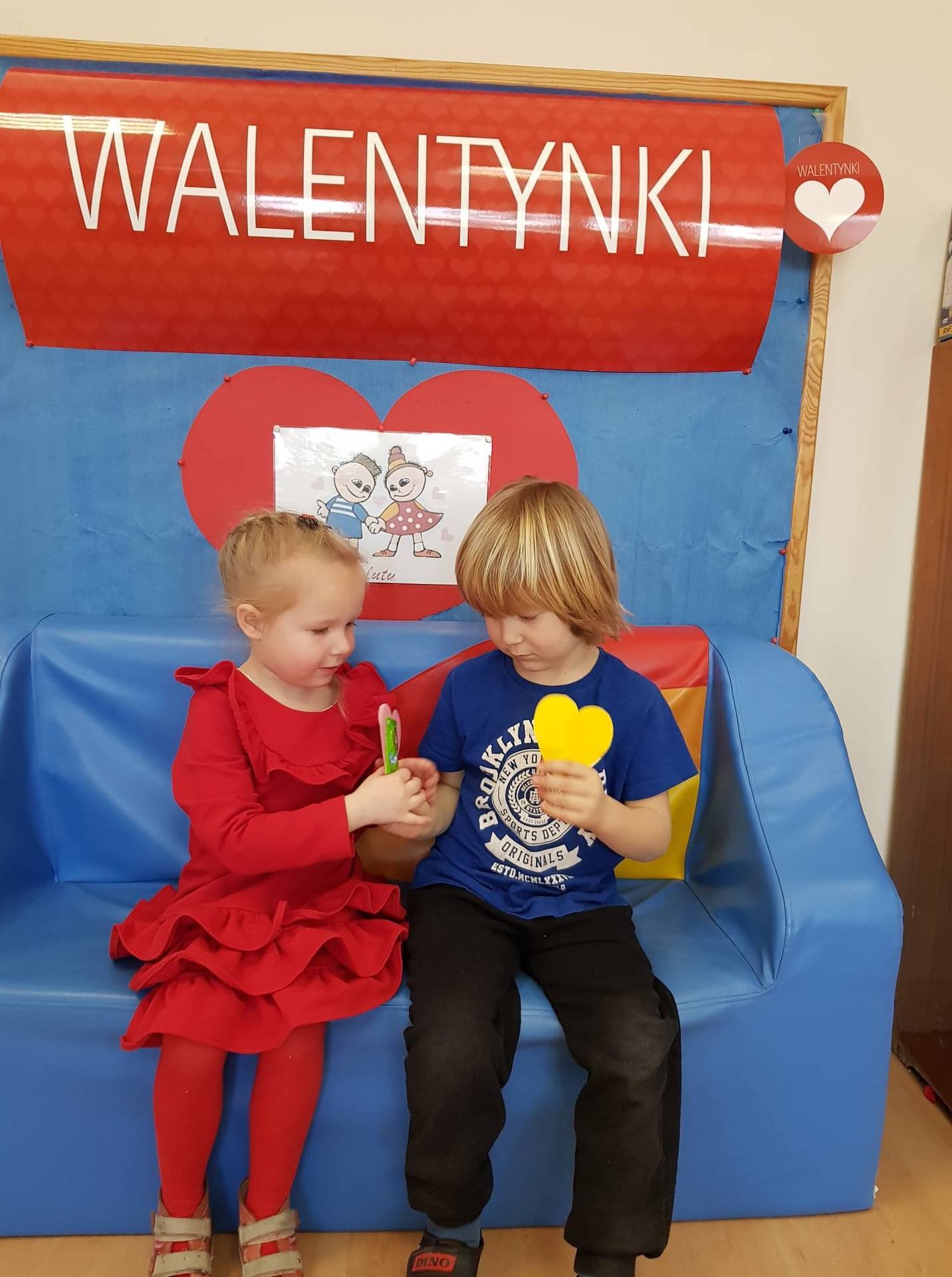Zadaniem dzieci było samodzielnie dobrać się w pary i na "ławeczce zakochanych" powiedzieć drugiej osobie coś miłego. Stąd na niektórych twarzach zawstydzenie.......