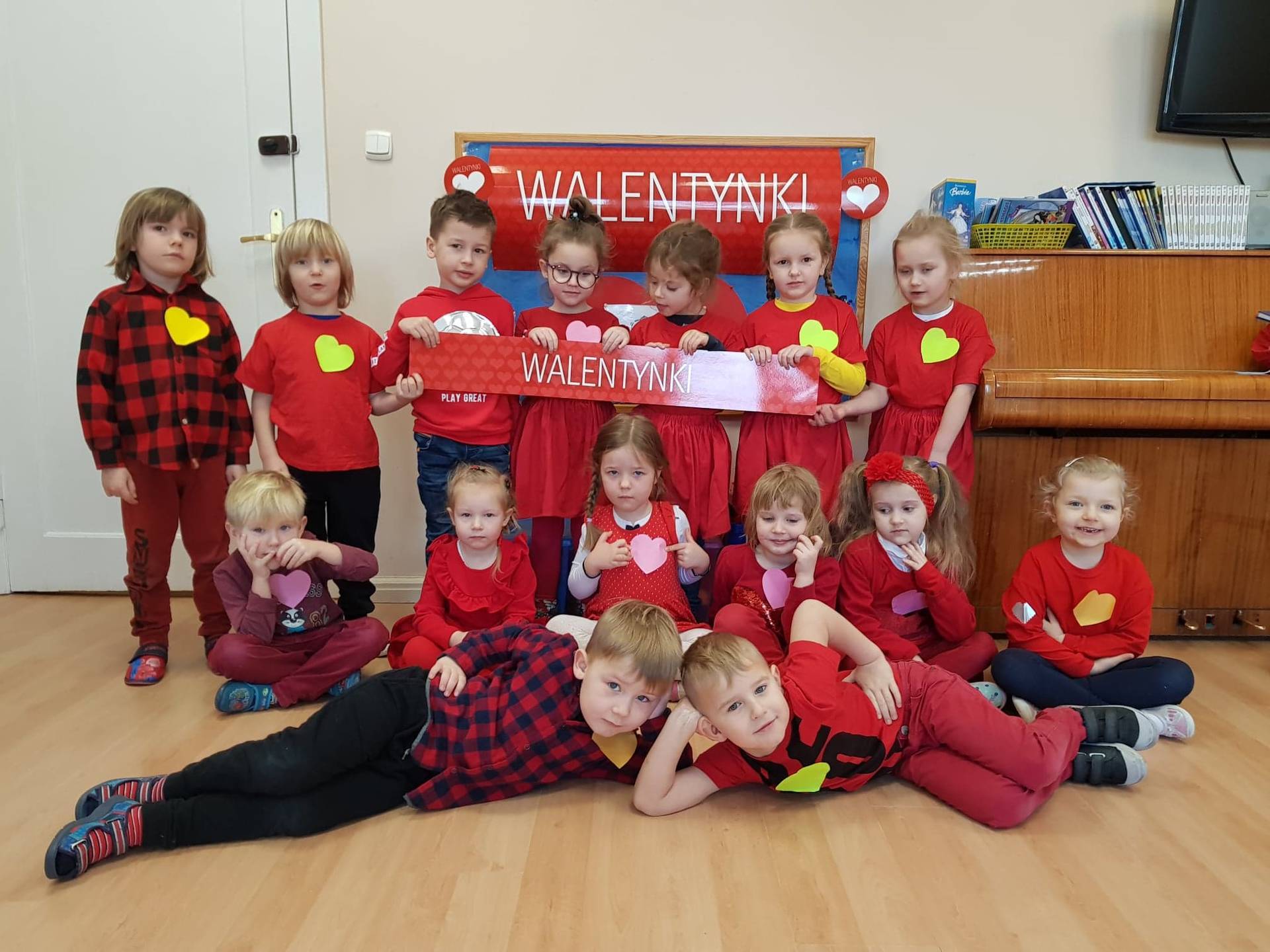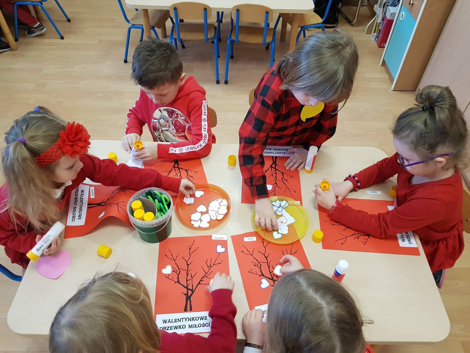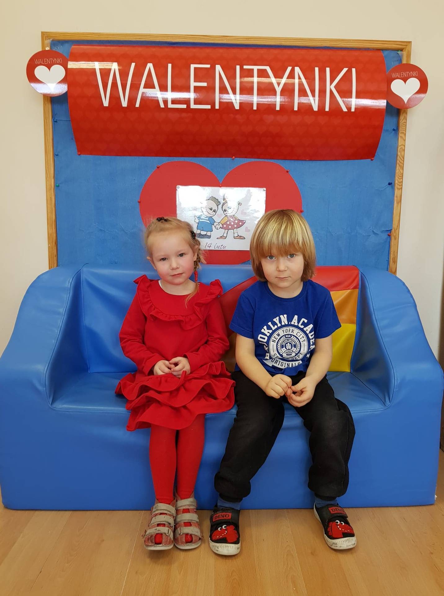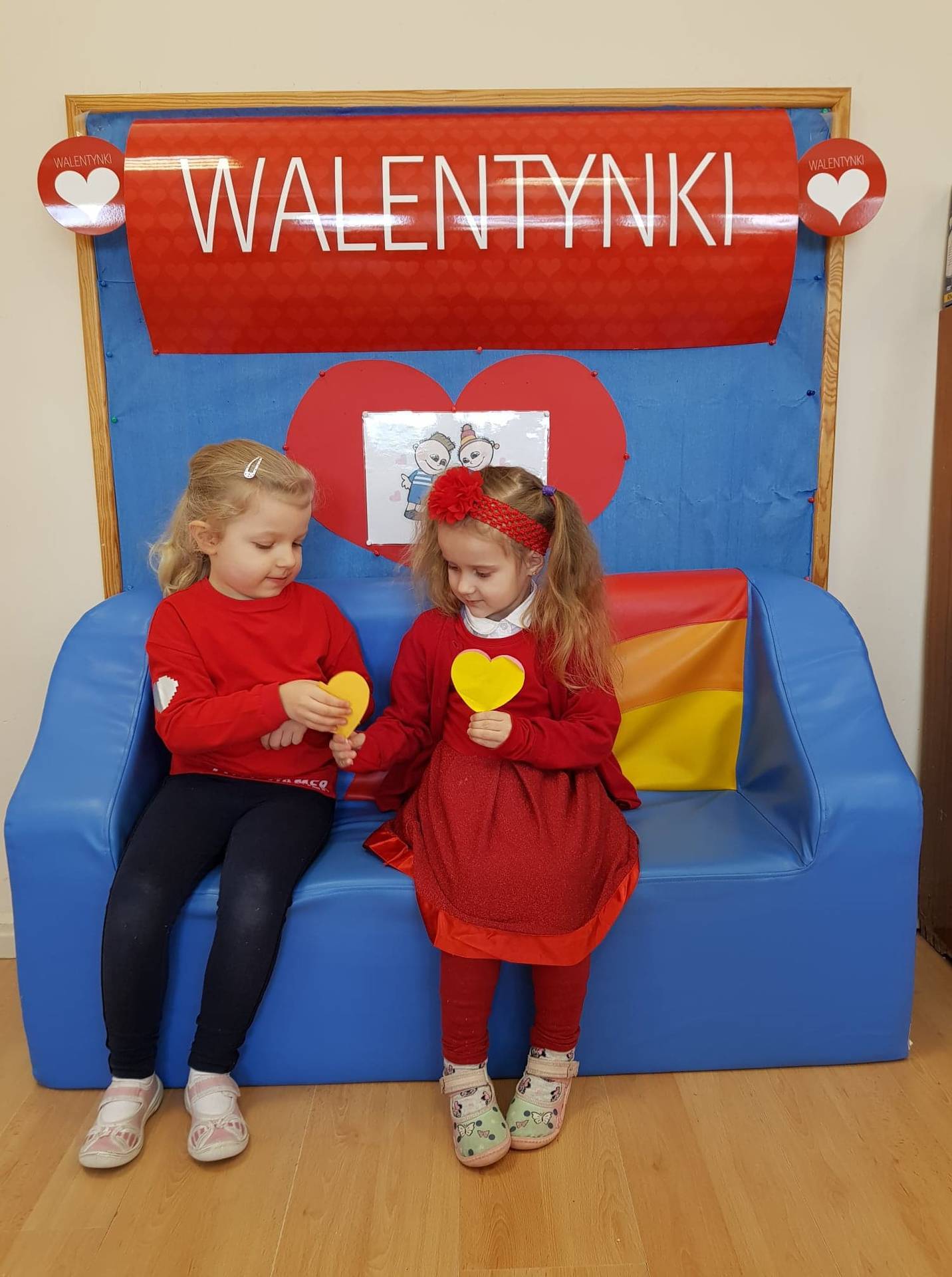 Zadaniem dzieci było samodzielnie dobrać się w pary i na "ławeczce zakochanych" powiedzieć drugiej osobie coś miłego. Stąd na niektórych twarzach zawstydzenie.......