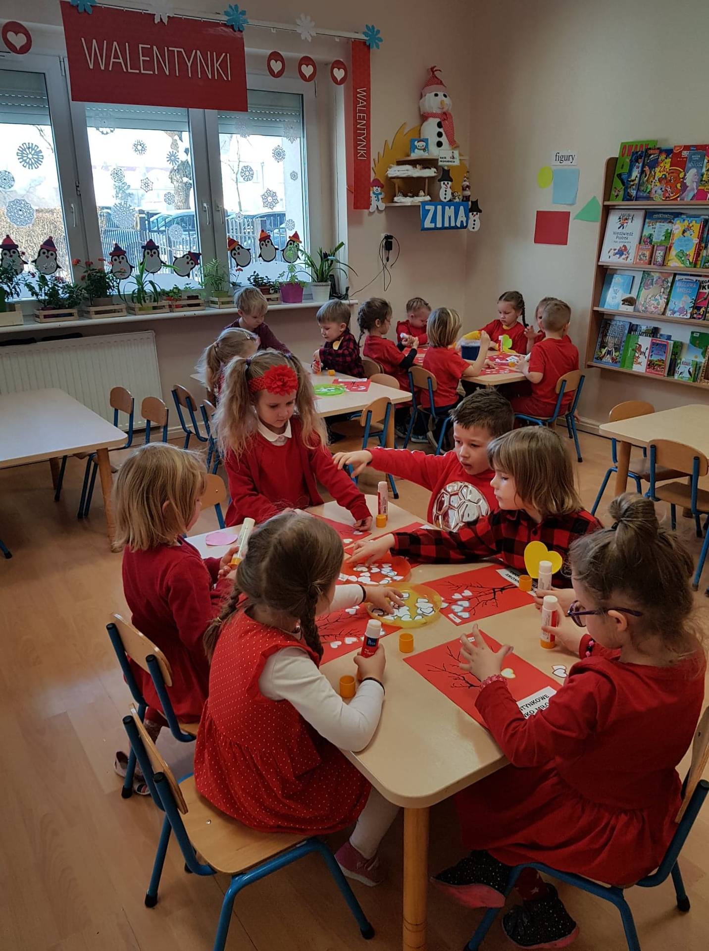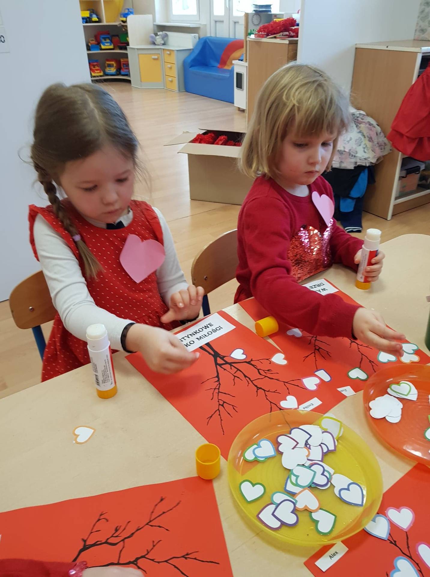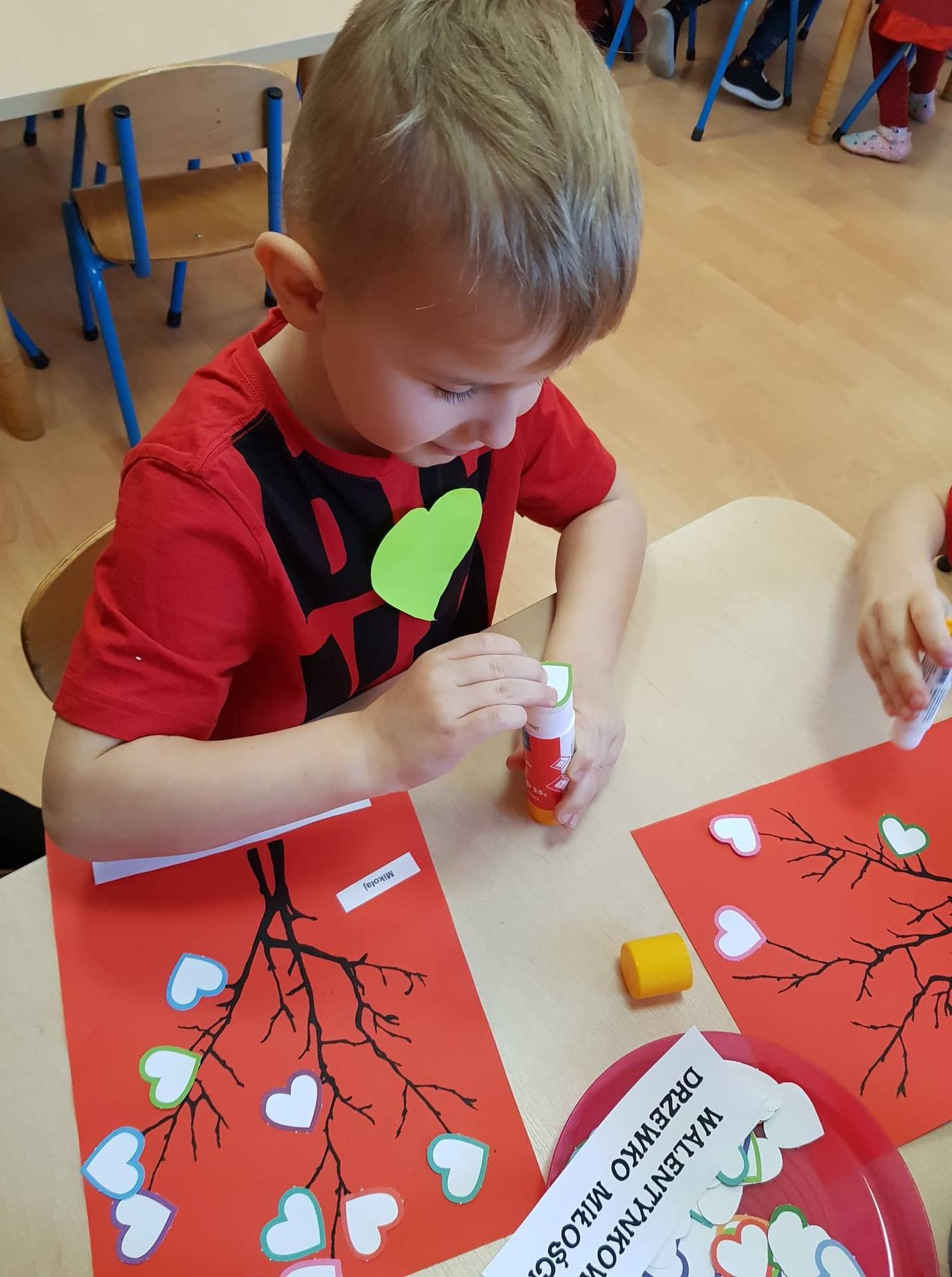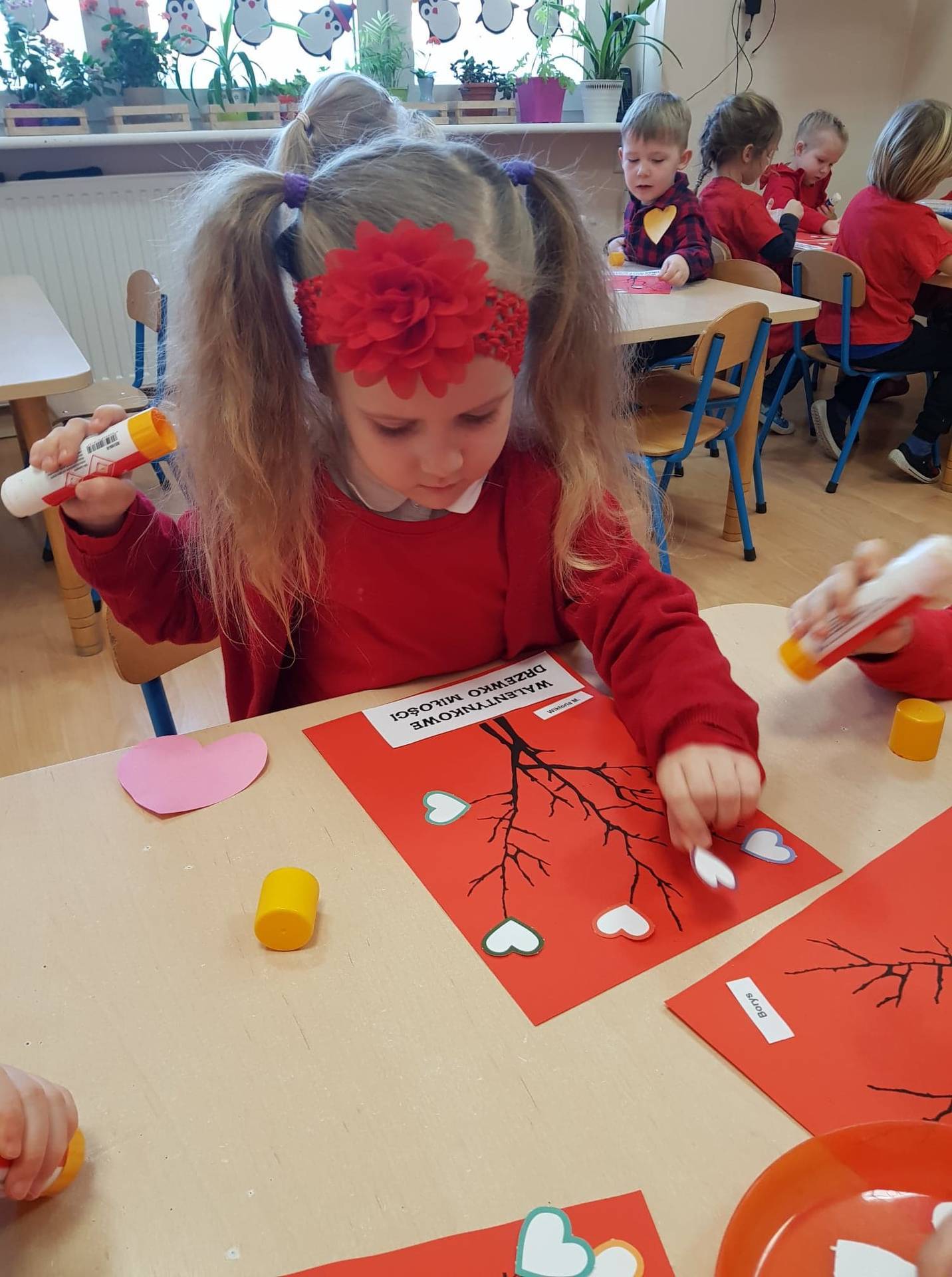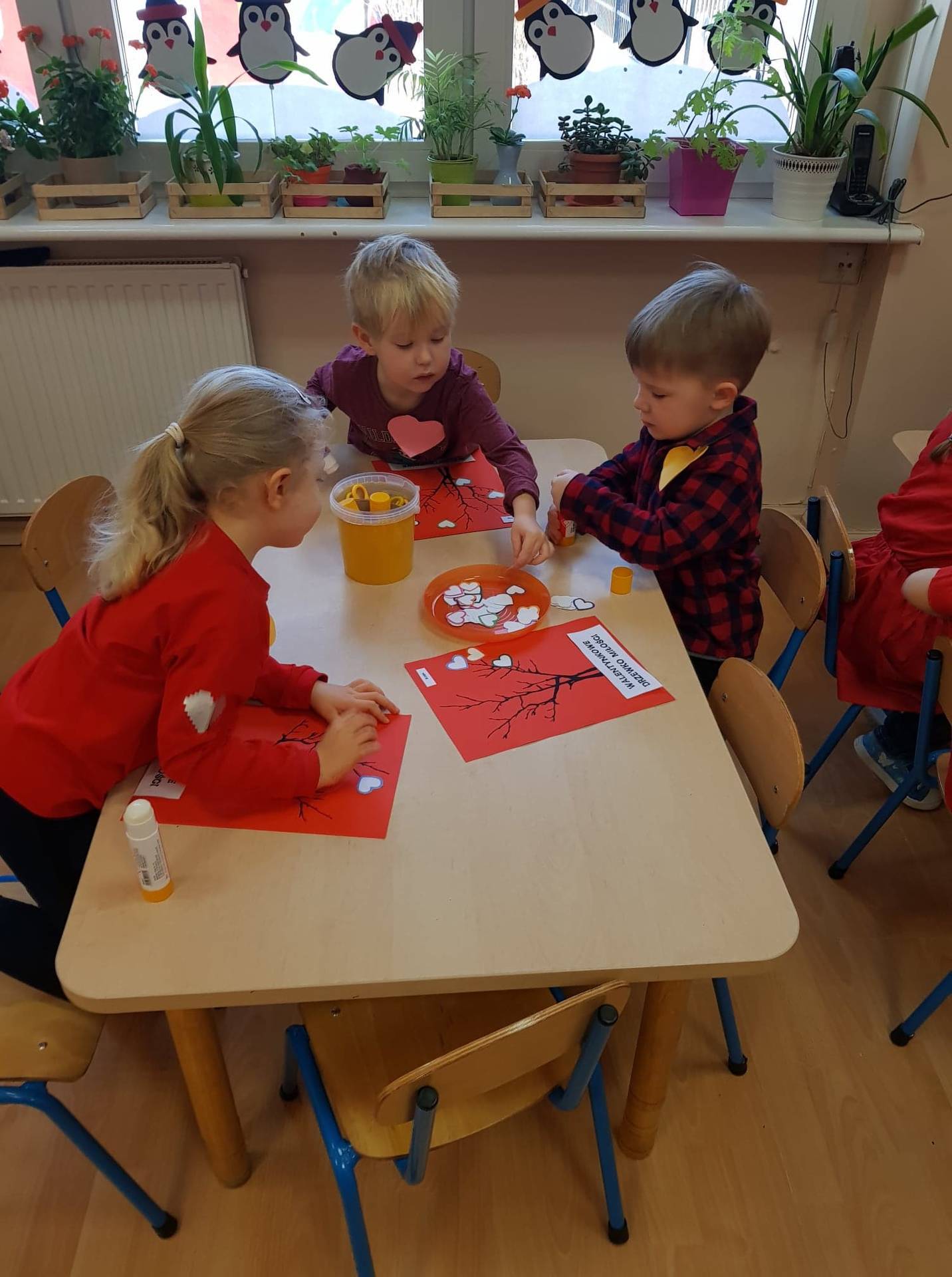 Zadaniem dzieci było samodzielnie dobrać się w pary i na "ławeczce zakochanych" powiedzieć drugiej osobie coś miłego. Stąd na niektórych twarzach zawstydzenie.......