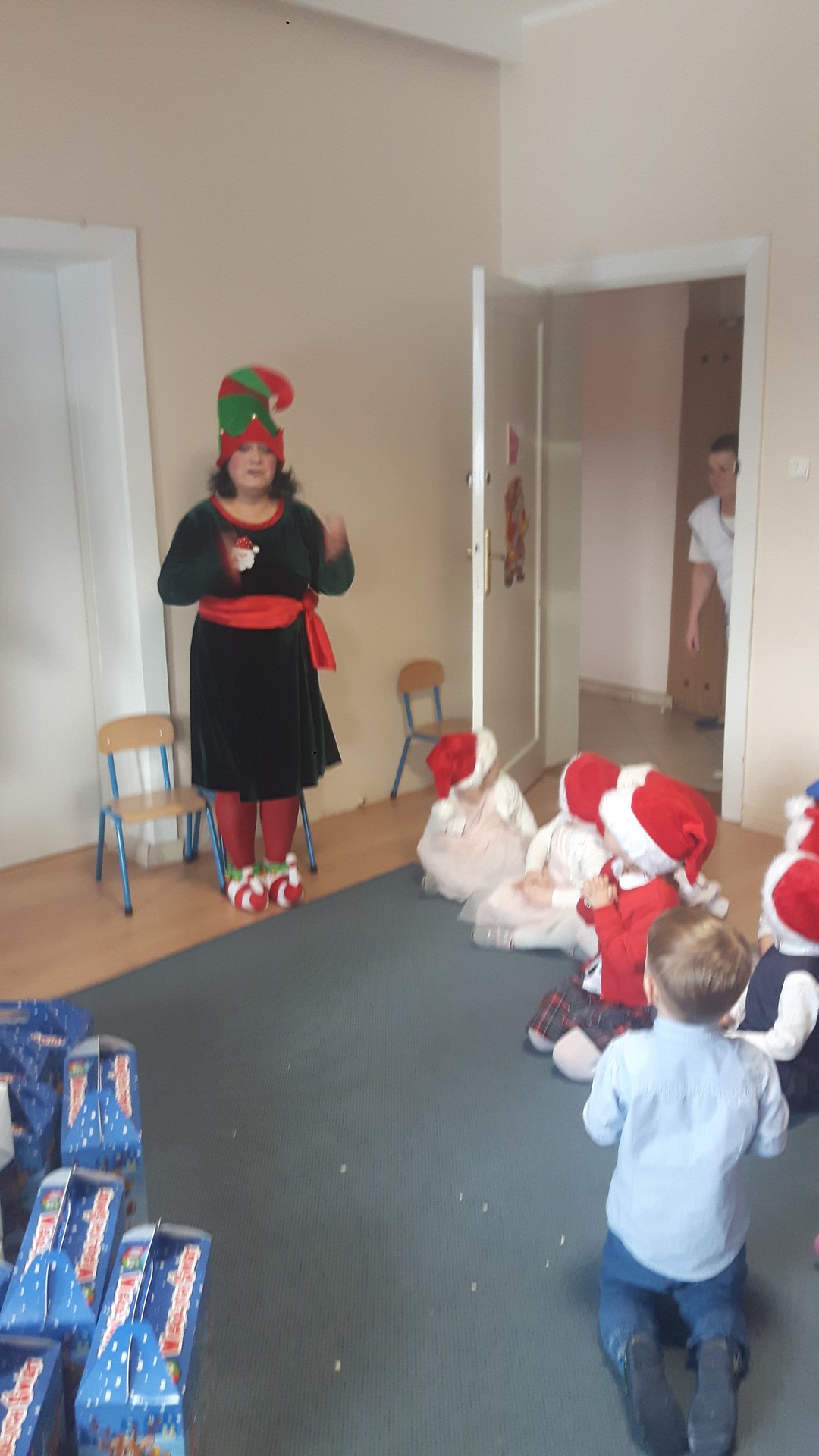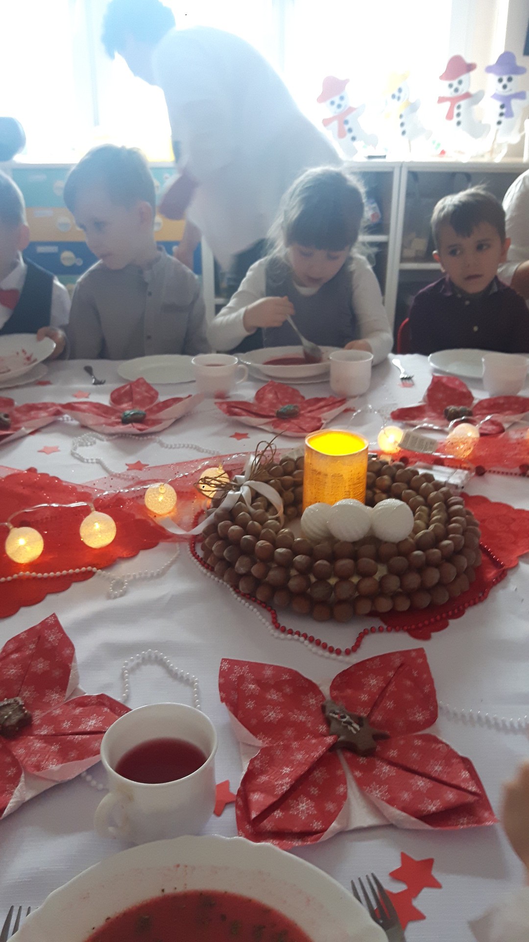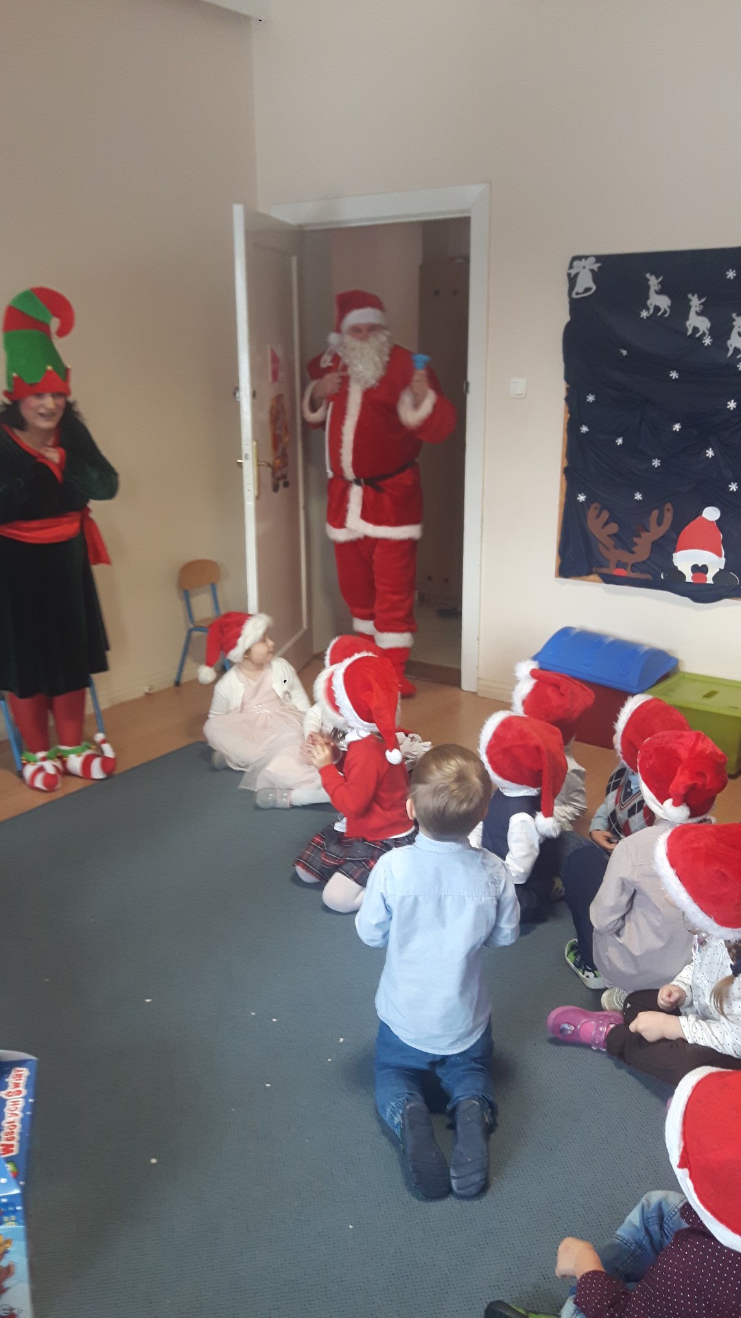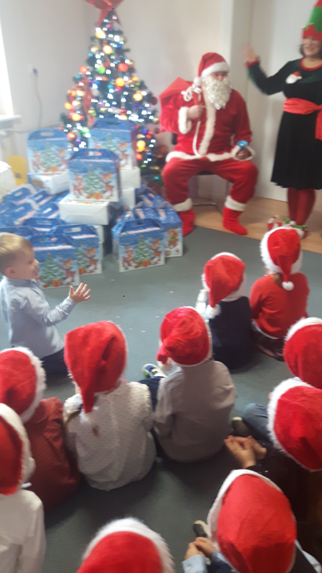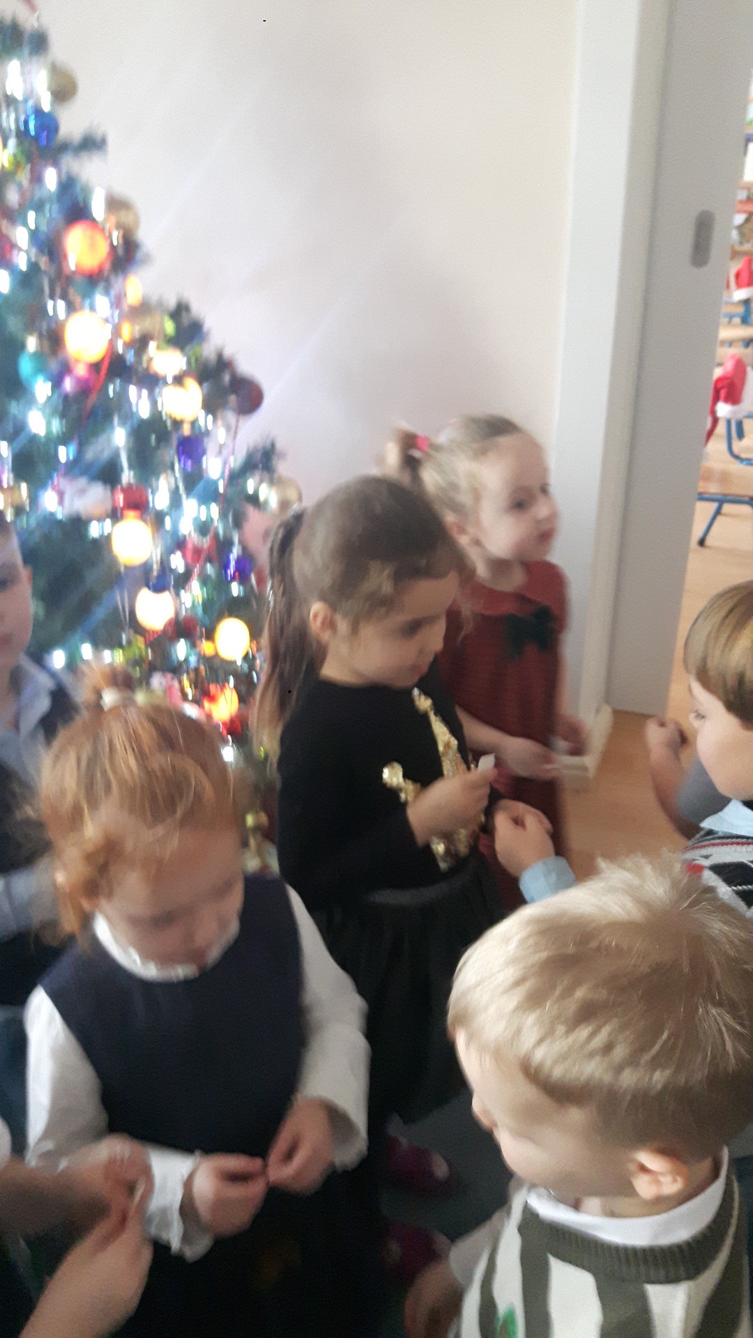 Wigilia Bożego Narodzenia to jeden z najpiękniejszych dni w roku, dlatego w naszej przedszkolnej rodzinie przeżywamy go bardzo uroczyście. Nasza przedszkolna wigilia odbyła się w piątek. Na początku dzieci zjadły wspólny posiłek. W dalszej części uroczystości dzieci odwiedził Mikołaj wraz z Elfem.Dzieliliśmy się również opłatkiem życząc sobie nawzajem wszelkiej pomyślności i Wesołych Świąt. Nasze spotkanie zakończyło się wspólnym kolędowaniem przy wigilijnym stole.