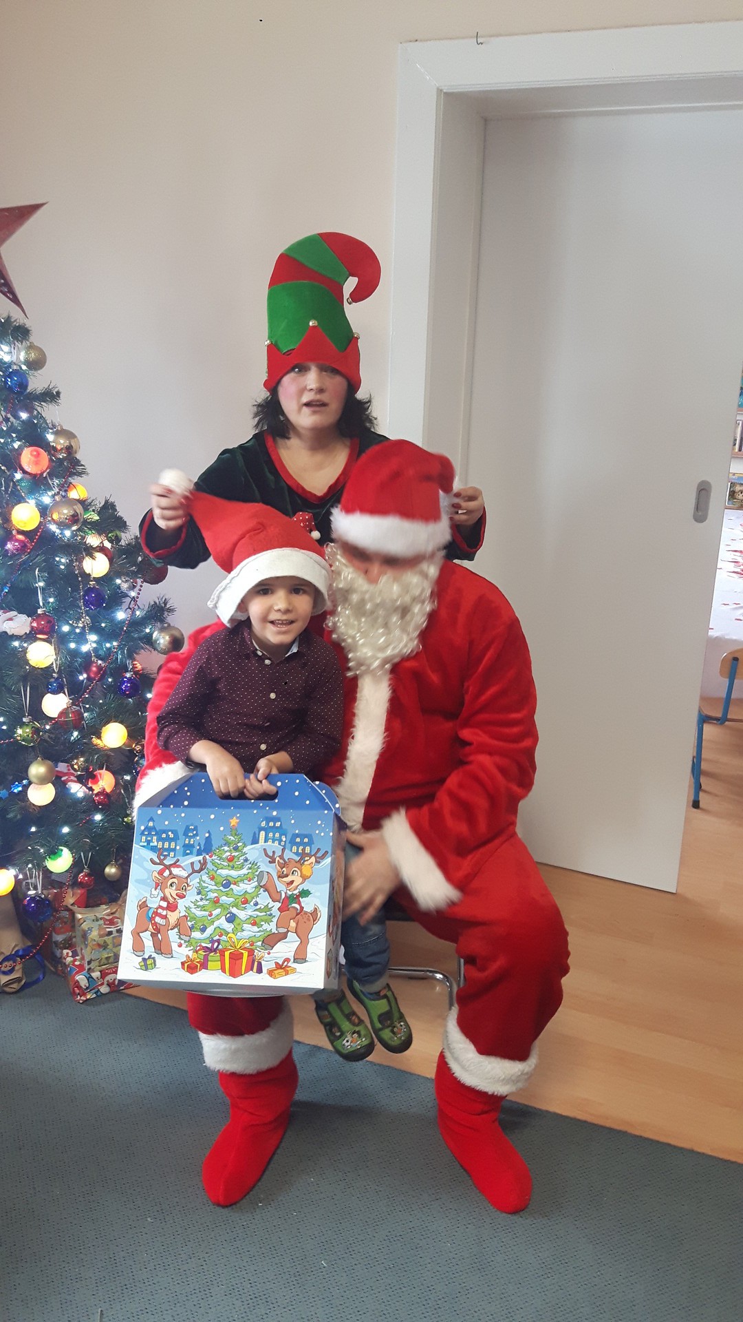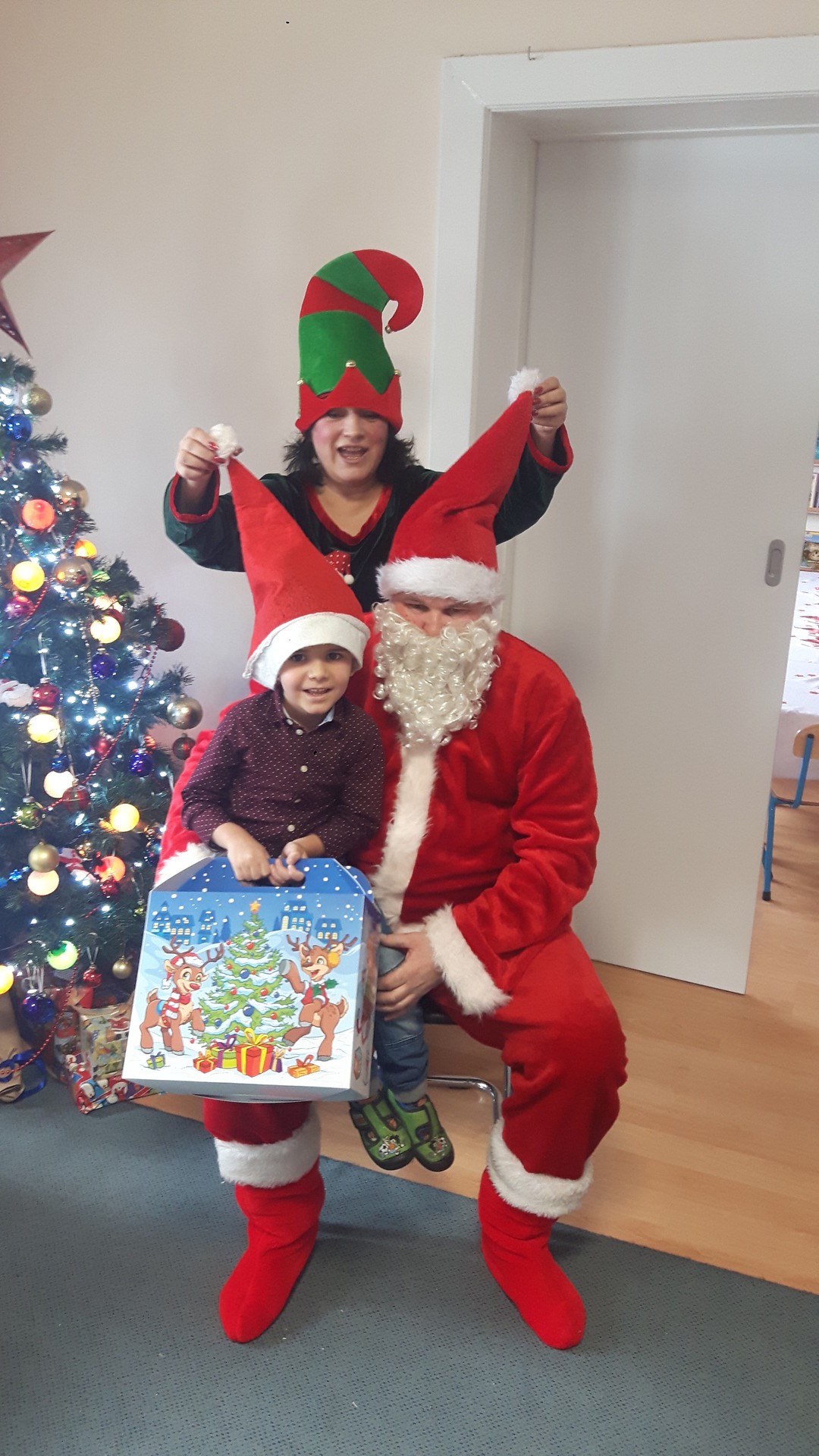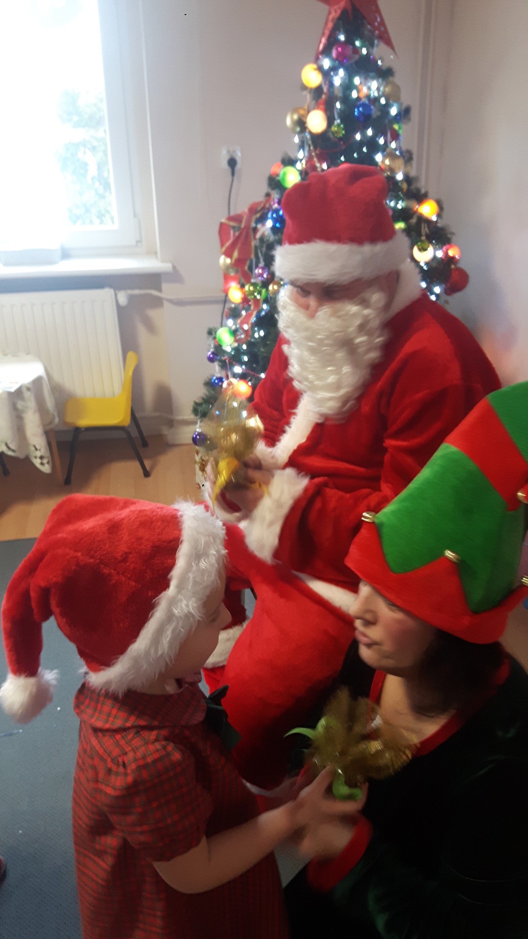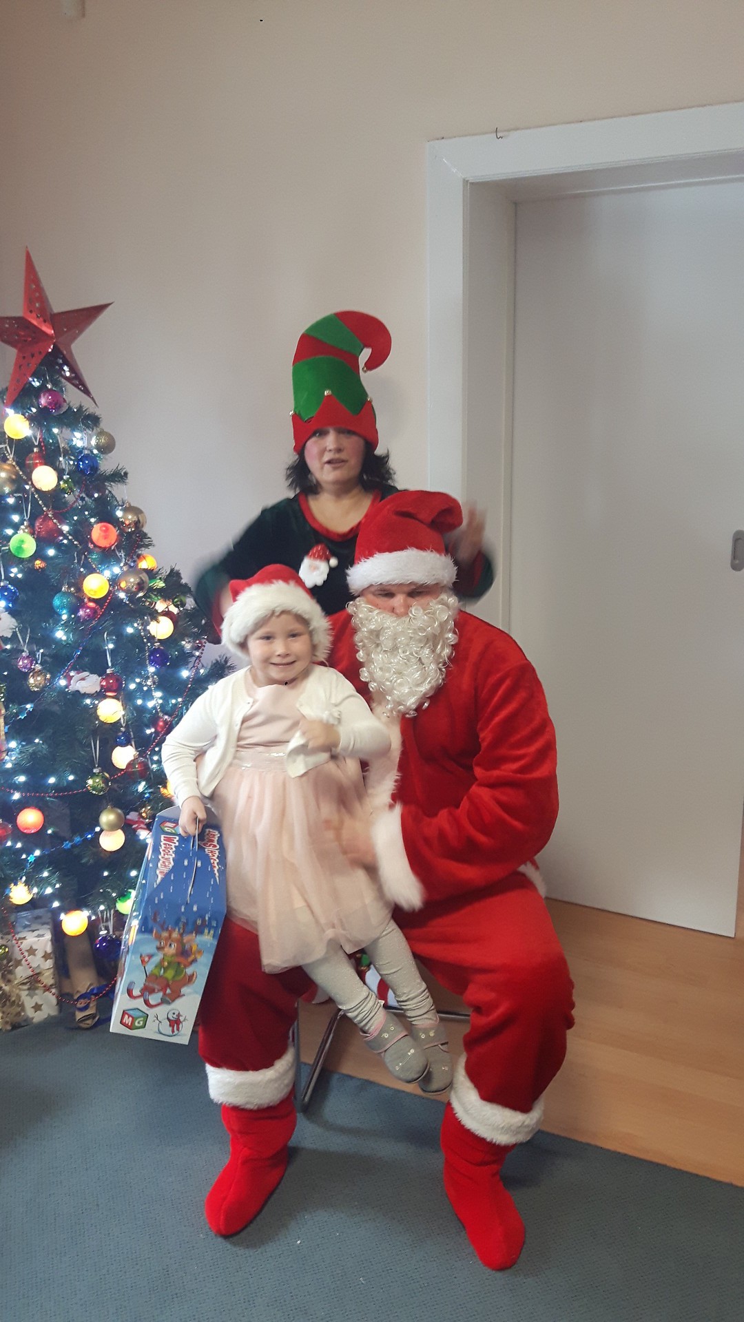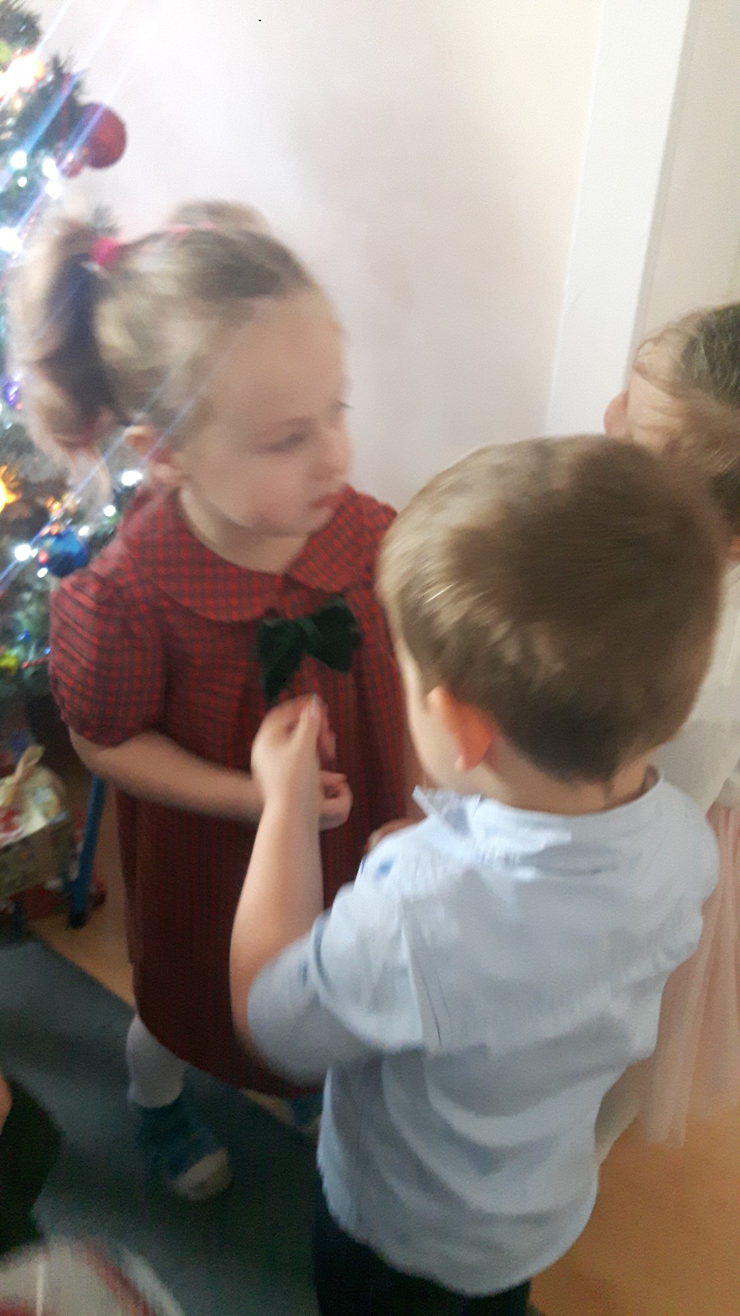 Wigilia Bożego Narodzenia to jeden z najpiękniejszych dni w roku, dlatego w naszej przedszkolnej rodzinie przeżywamy go bardzo uroczyście. Nasza przedszkolna wigilia odbyła się w piątek. Na początku dzieci zjadły wspólny posiłek. W dalszej części uroczystości dzieci odwiedził Mikołaj wraz z Elfem.Dzieliliśmy się również opłatkiem życząc sobie nawzajem wszelkiej pomyślności i Wesołych Świąt. Nasze spotkanie zakończyło się wspólnym kolędowaniem przy wigilijnym stole.
