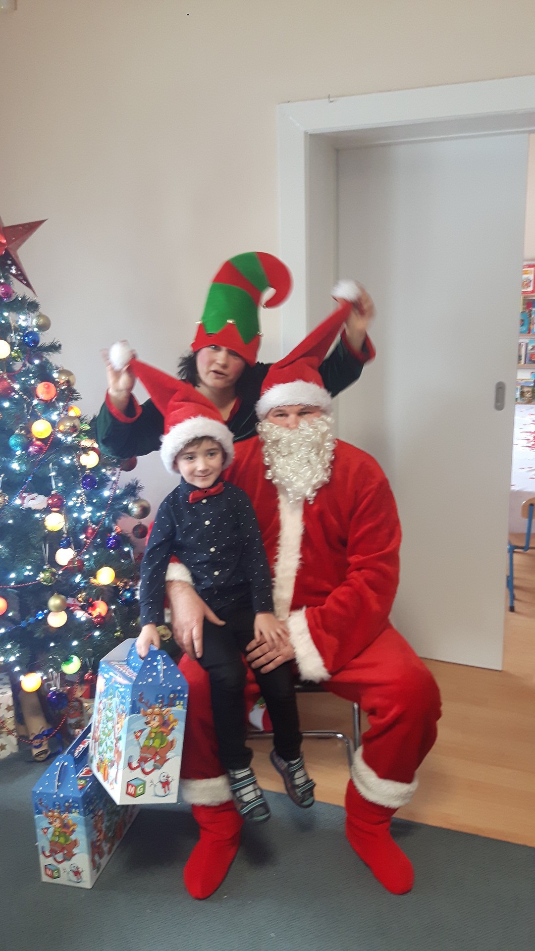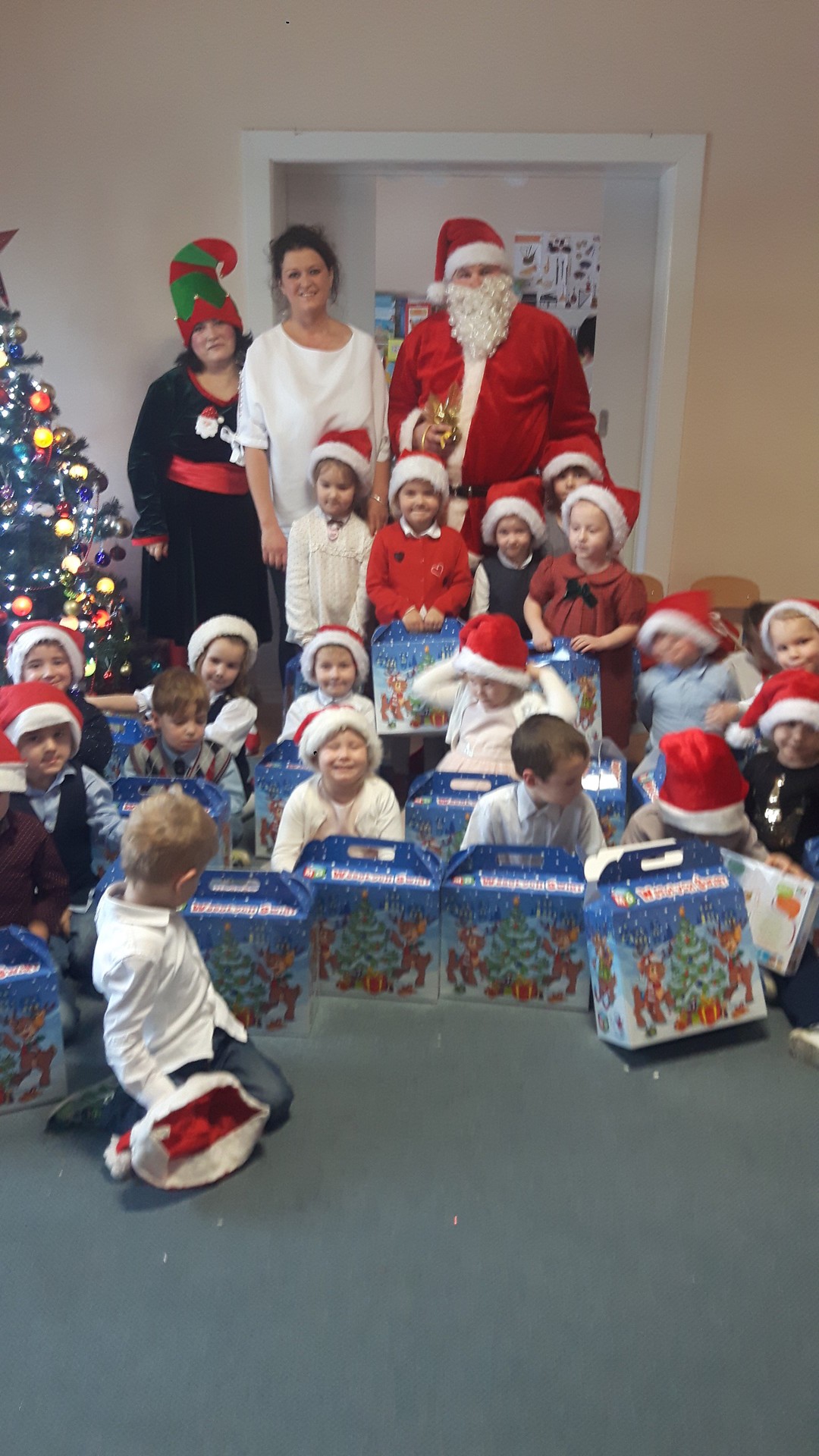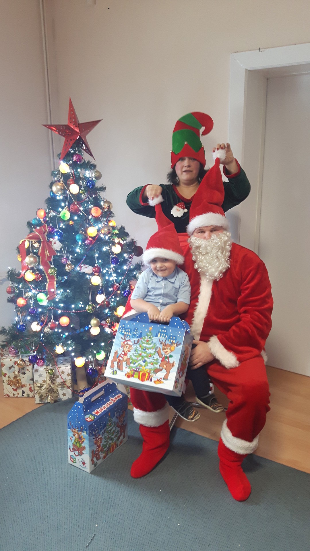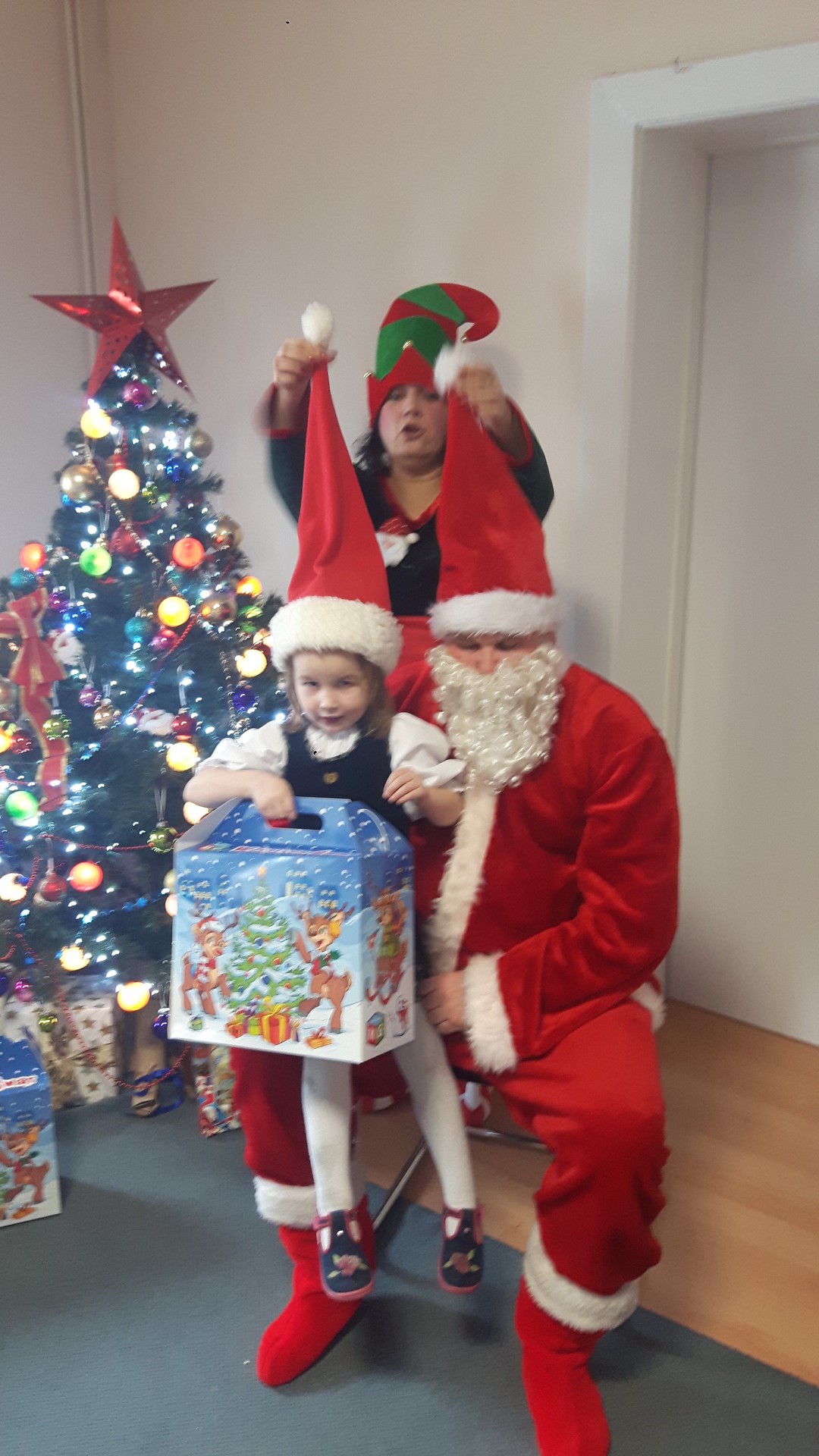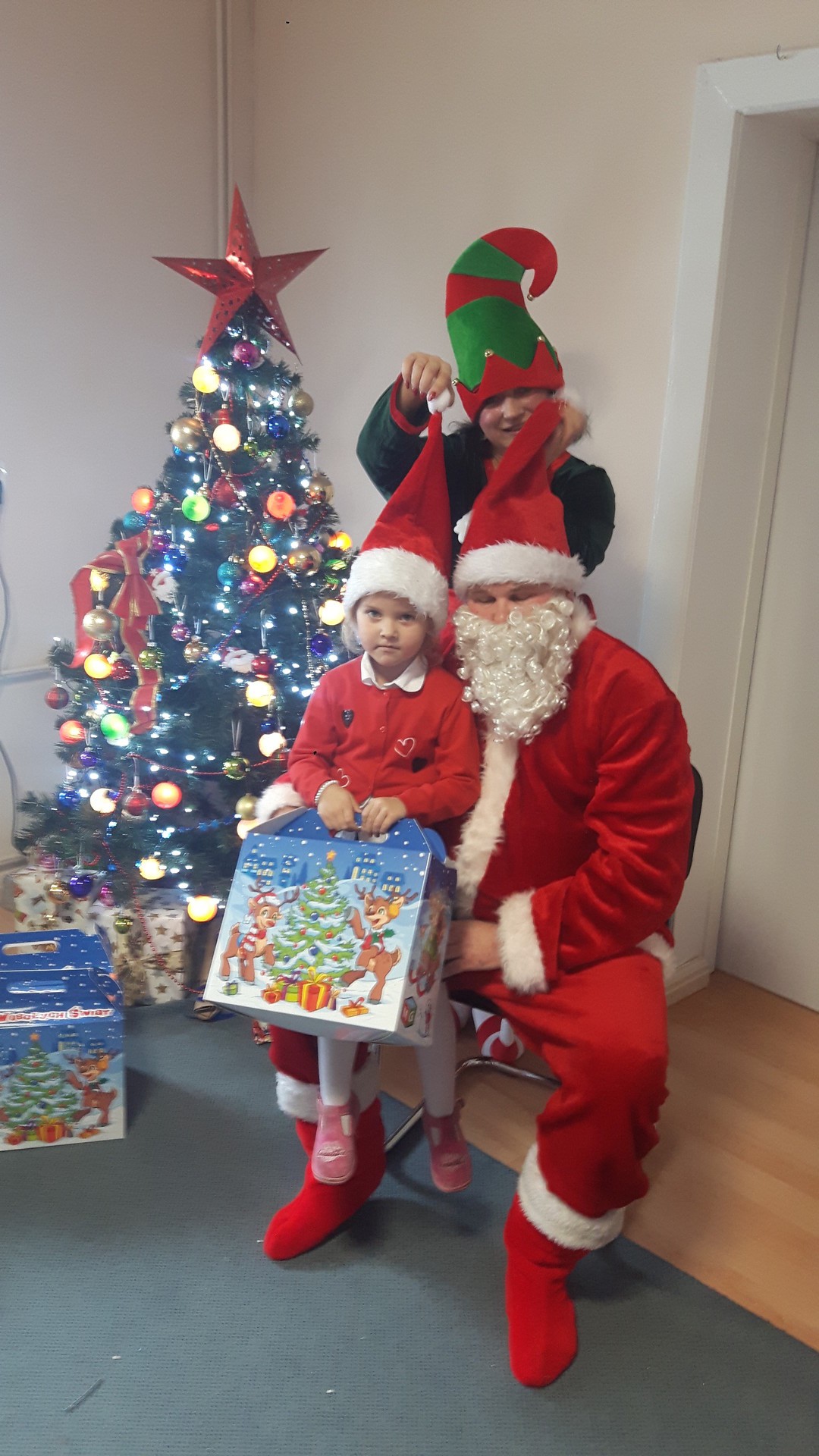 Wigilia Bożego Narodzenia to jeden z najpiękniejszych dni w roku, dlatego w naszej przedszkolnej rodzinie przeżywamy go bardzo uroczyście. Nasza przedszkolna wigilia odbyła się w piątek. Na początku dzieci zjadły wspólny posiłek. W dalszej części uroczystości dzieci odwiedził Mikołaj wraz z Elfem.Dzieliliśmy się również opłatkiem życząc sobie nawzajem wszelkiej pomyślności i Wesołych Świąt. Nasze spotkanie zakończyło się wspólnym kolędowaniem przy wigilijnym stole.