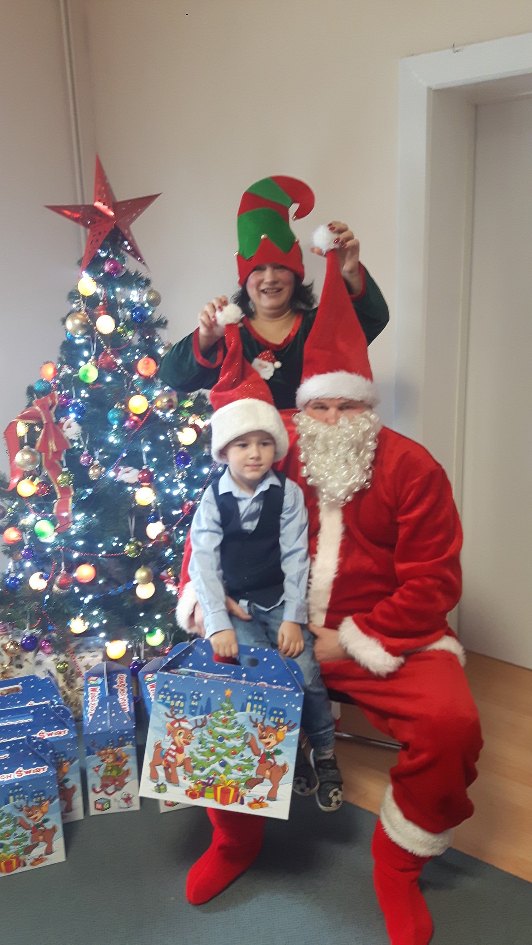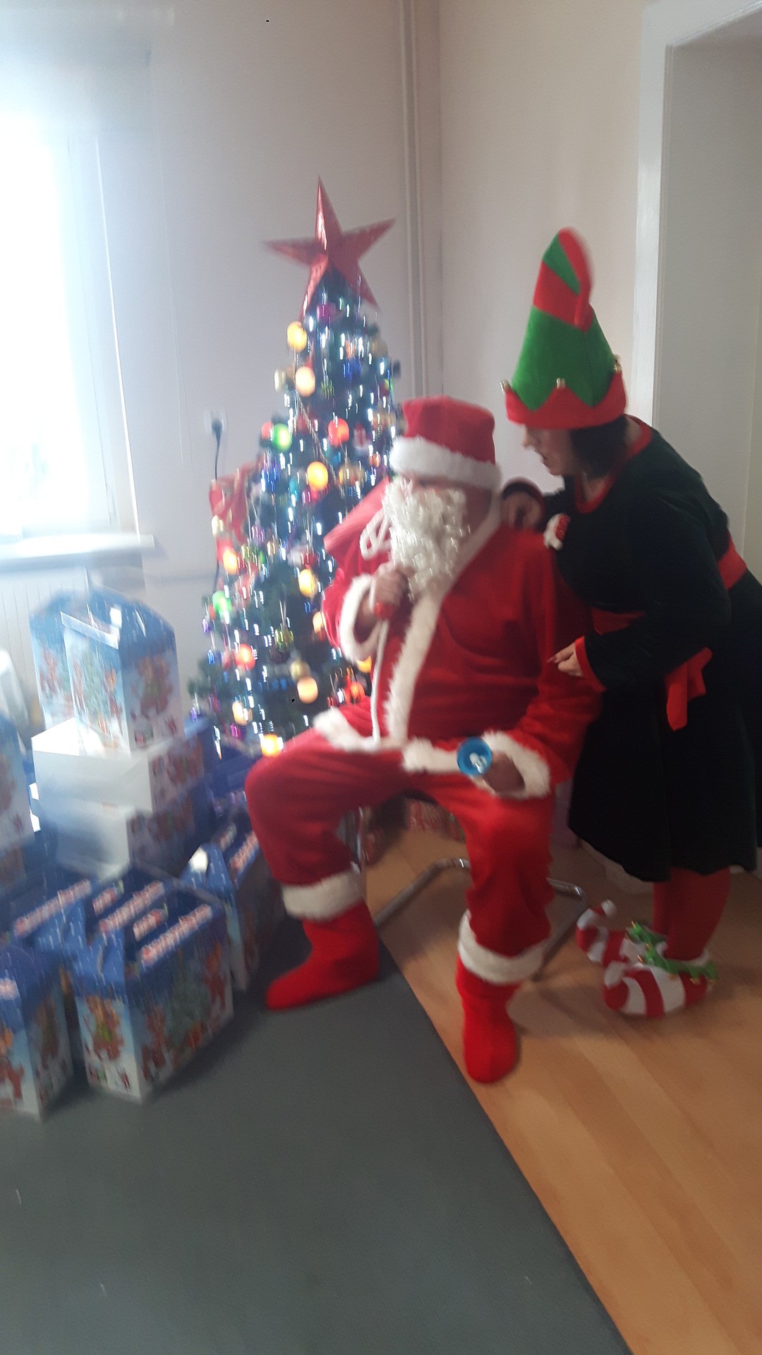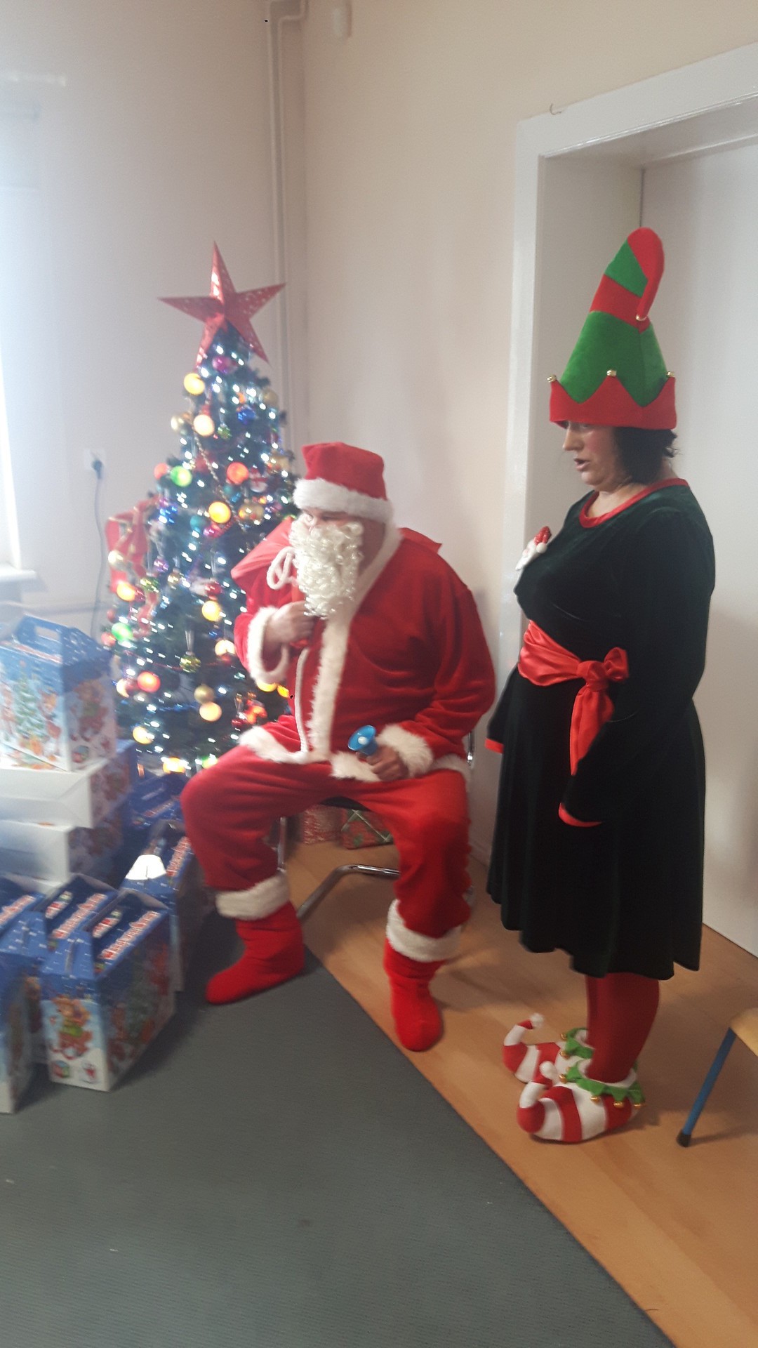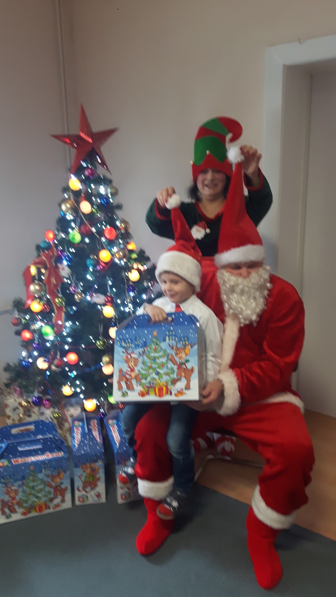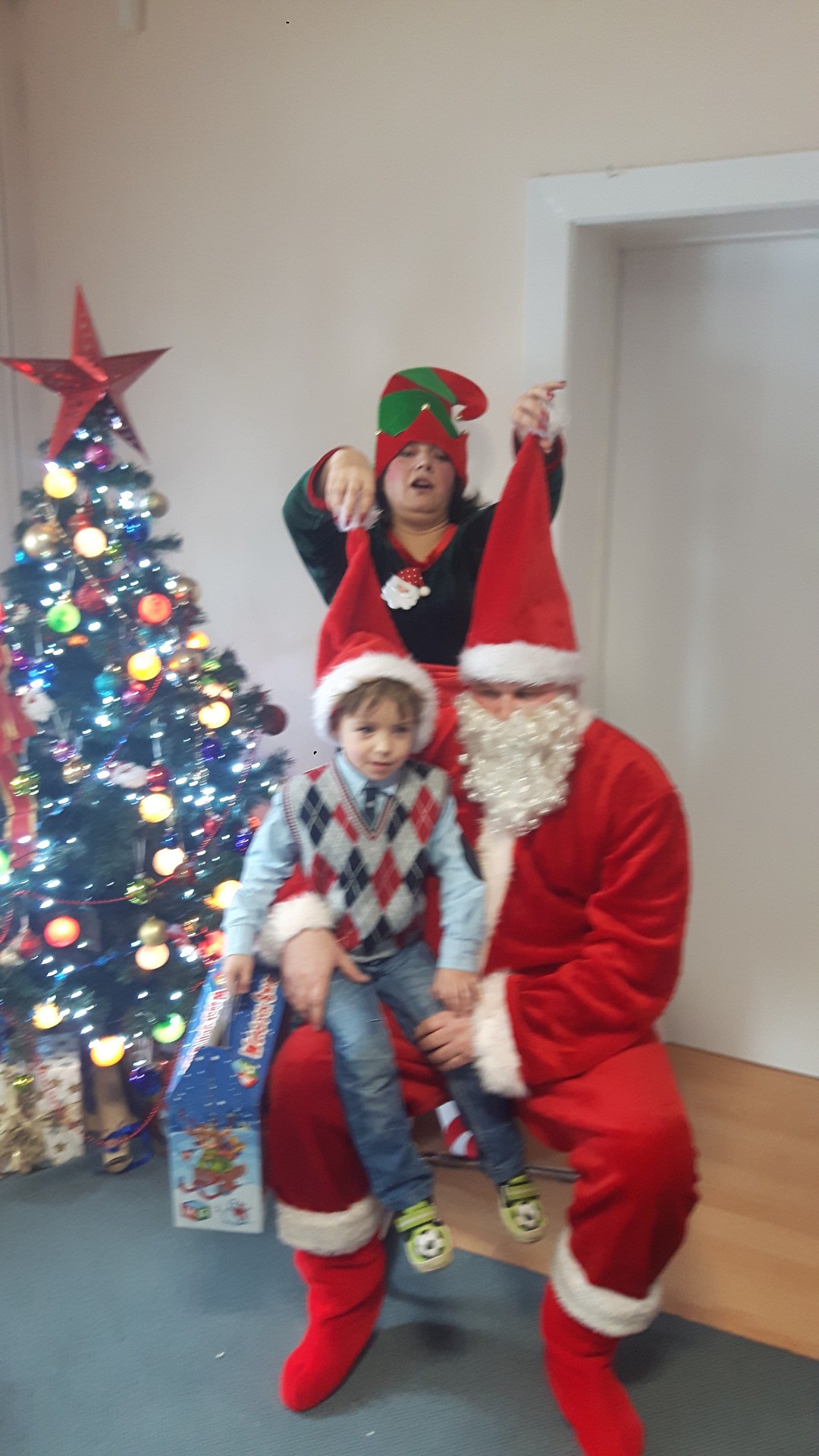 Wigilia Bożego Narodzenia to jeden z najpiękniejszych dni w roku, dlatego w naszej przedszkolnej rodzinie przeżywamy go bardzo uroczyście. Nasza przedszkolna wigilia odbyła się w piątek. Na początku dzieci zjadły wspólny posiłek. W dalszej części uroczystości dzieci odwiedził Mikołaj wraz z Elfem.Dzieliliśmy się również opłatkiem życząc sobie nawzajem wszelkiej pomyślności i Wesołych Świąt. Nasze spotkanie zakończyło się wspólnym kolędowaniem przy wigilijnym stole.