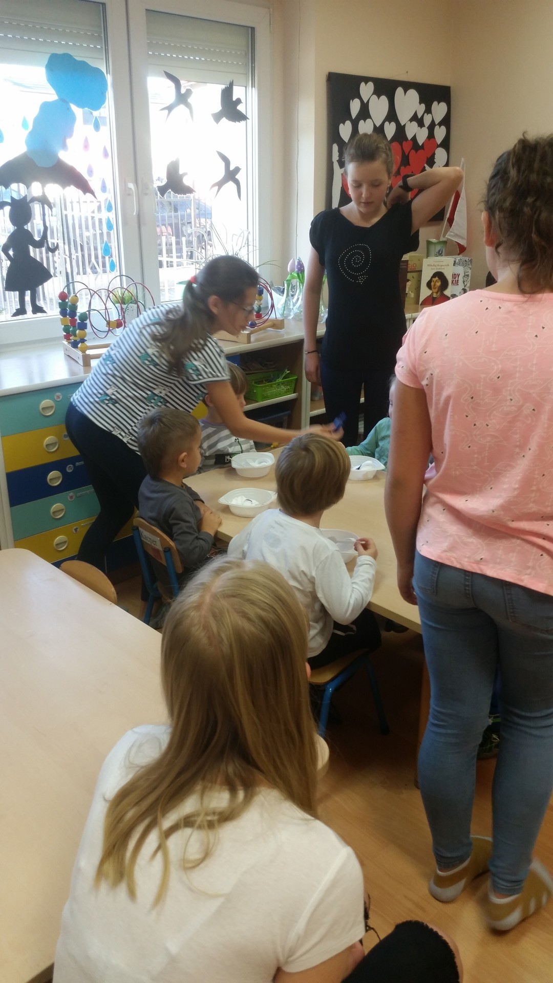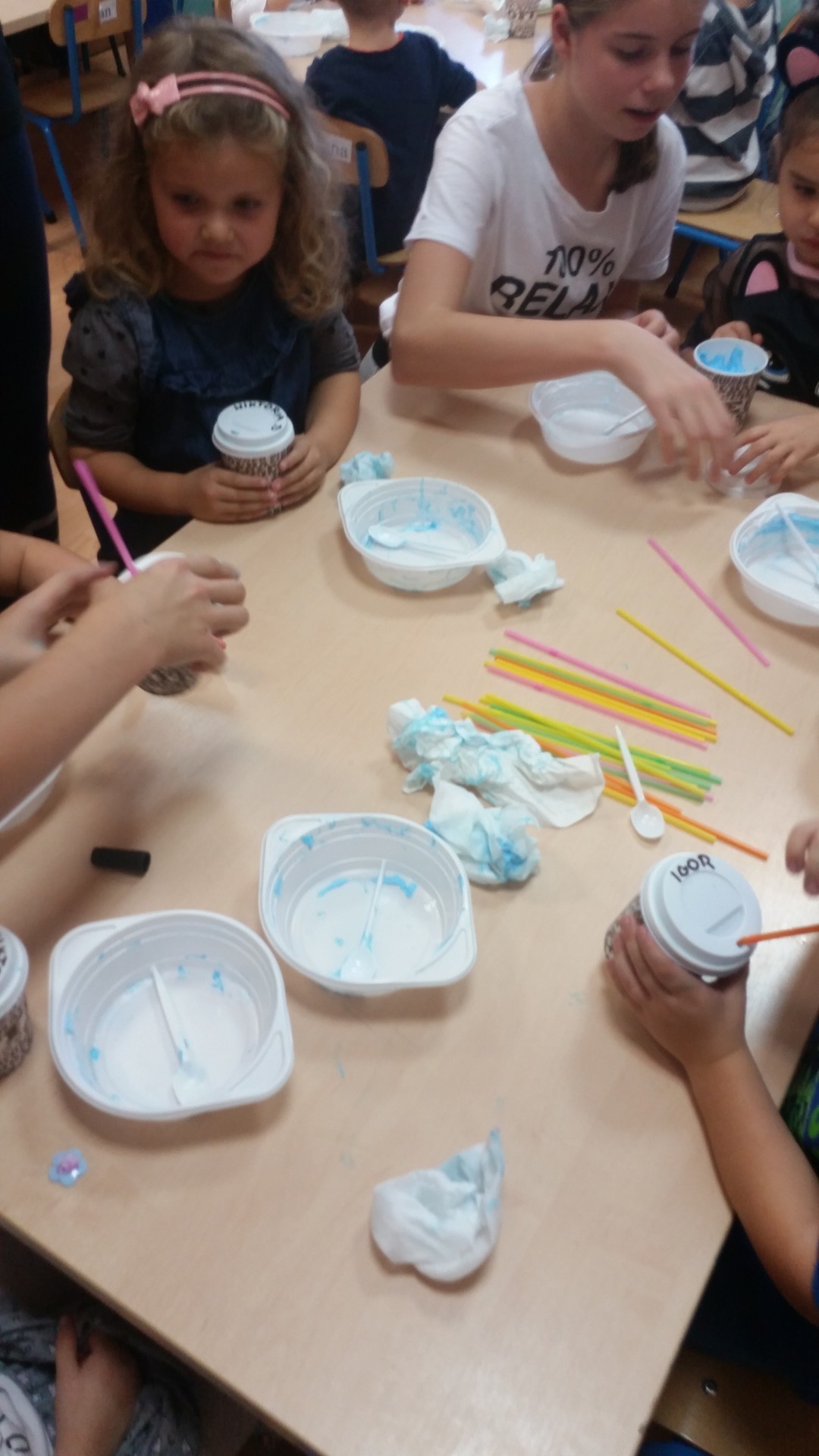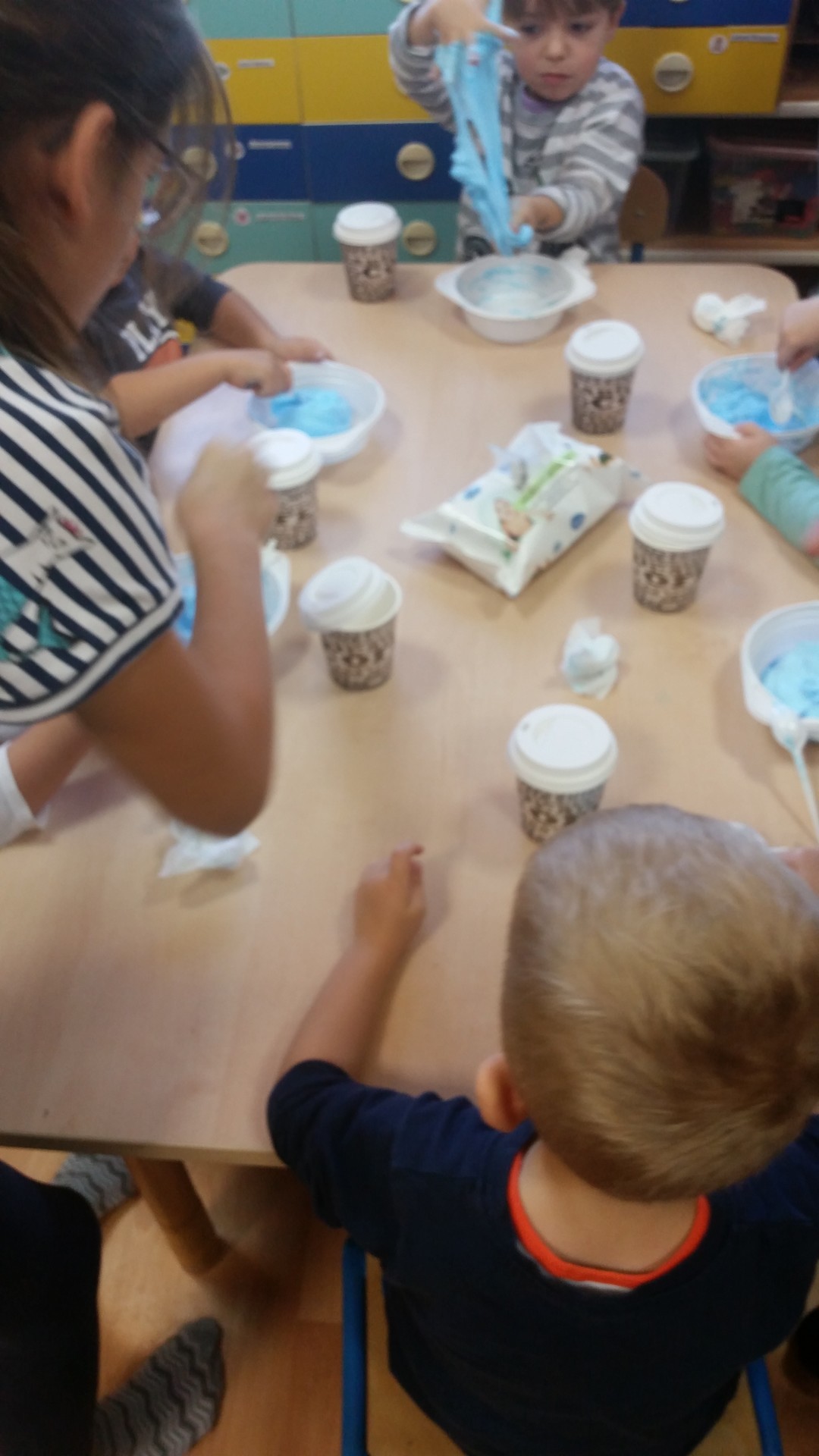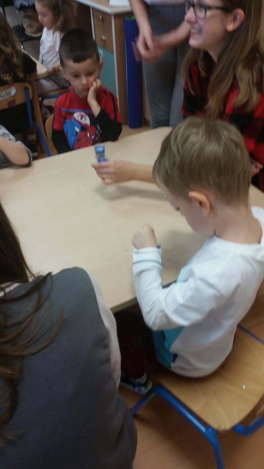 W ramach projektu "Uwolnić wiedzę" dzieci ze Szkoły Podstawowej w Wicku odwiedziły naszych przedszkolaków. Pomysłów i zapału uczniom nie brakowało. Dzieci oprócz świetnej zabawy miały możliwość przeprowadzenia kilku ciekawych eksperymentów między innymi slim'a, którego to mogły zabrać do domu.