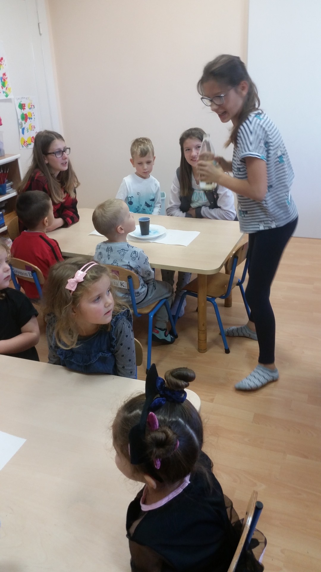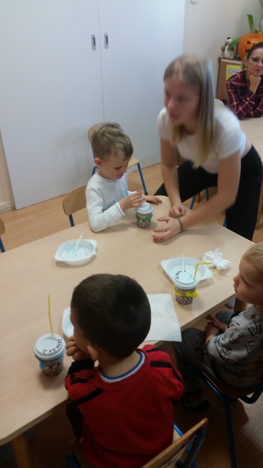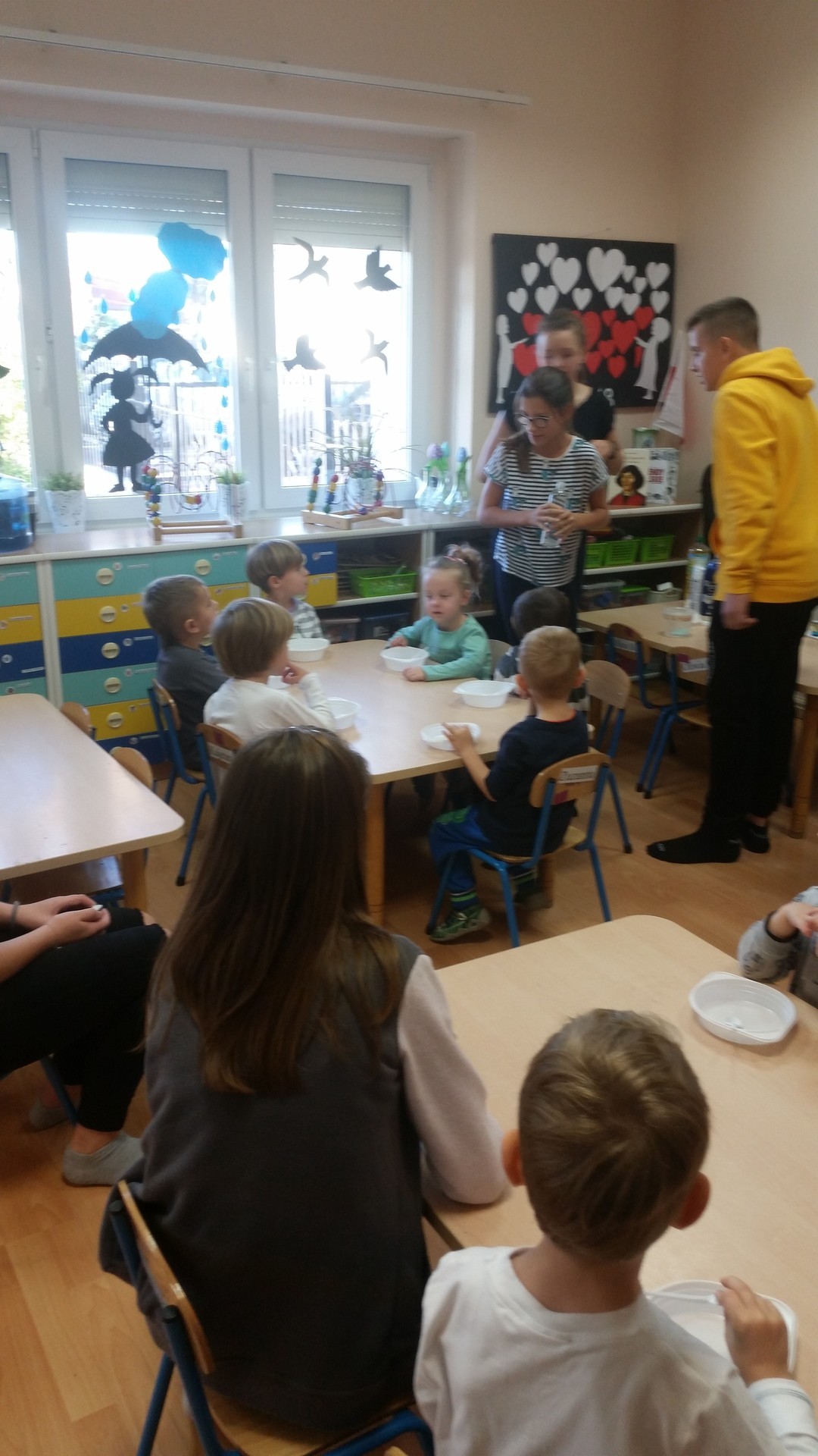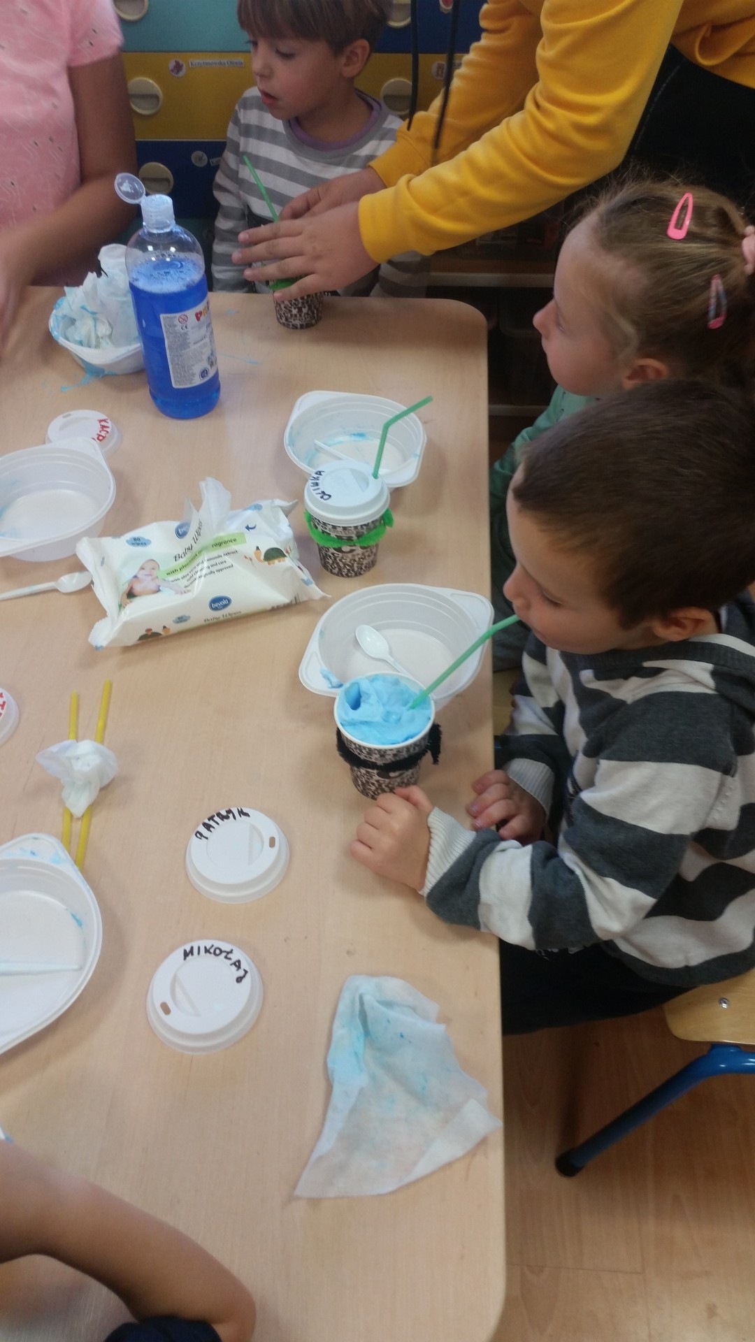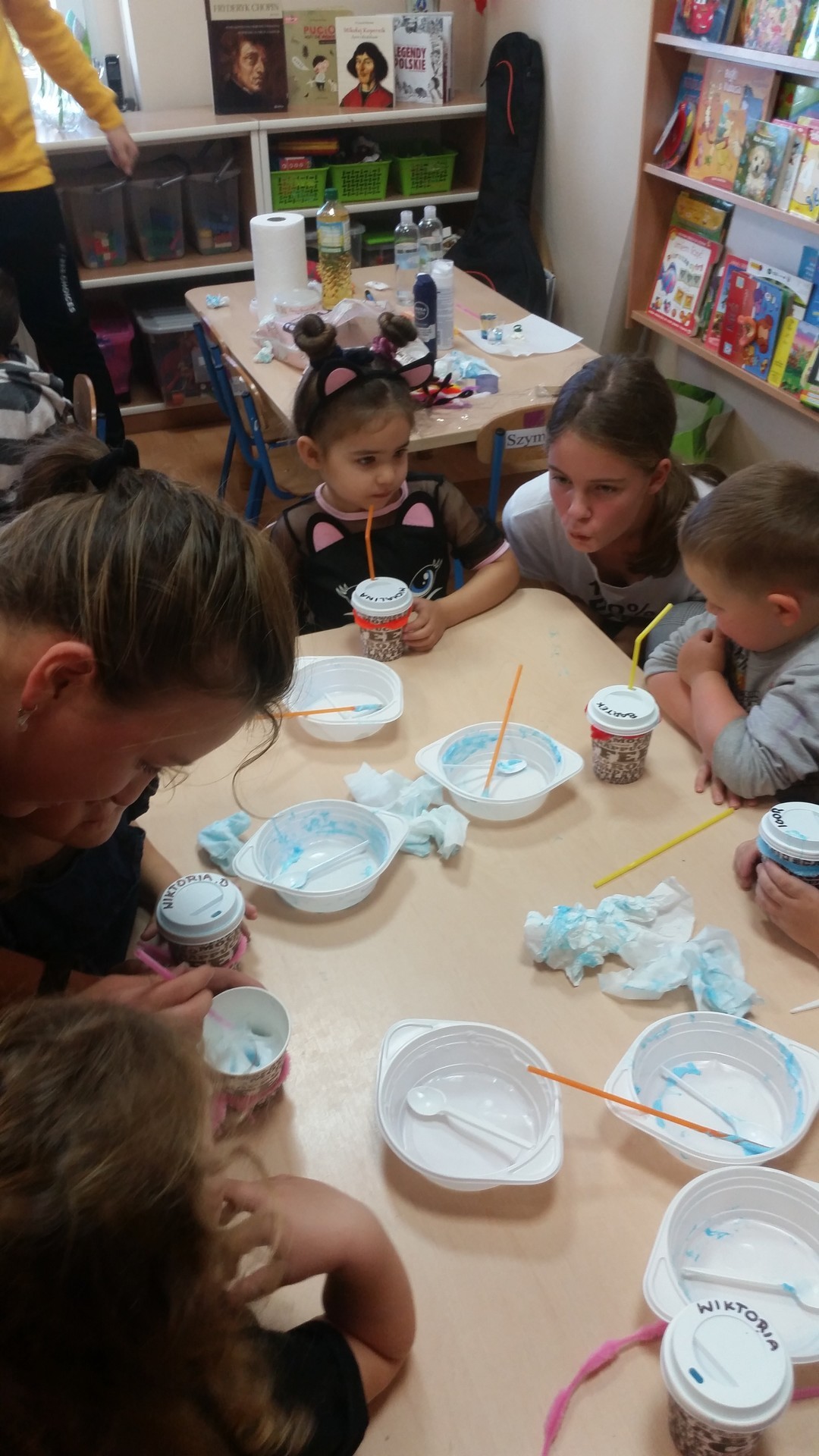 W ramach projektu "Uwolnić wiedzę" dzieci ze Szkoły Podstawowej w Wicku odwiedziły naszych przedszkolaków. Pomysłów i zapału uczniom nie brakowało. Dzieci oprócz świetnej zabawy miały możliwość przeprowadzenia kilku ciekawych eksperymentów między innymi slim'a, którego to mogły zabrać do domu.