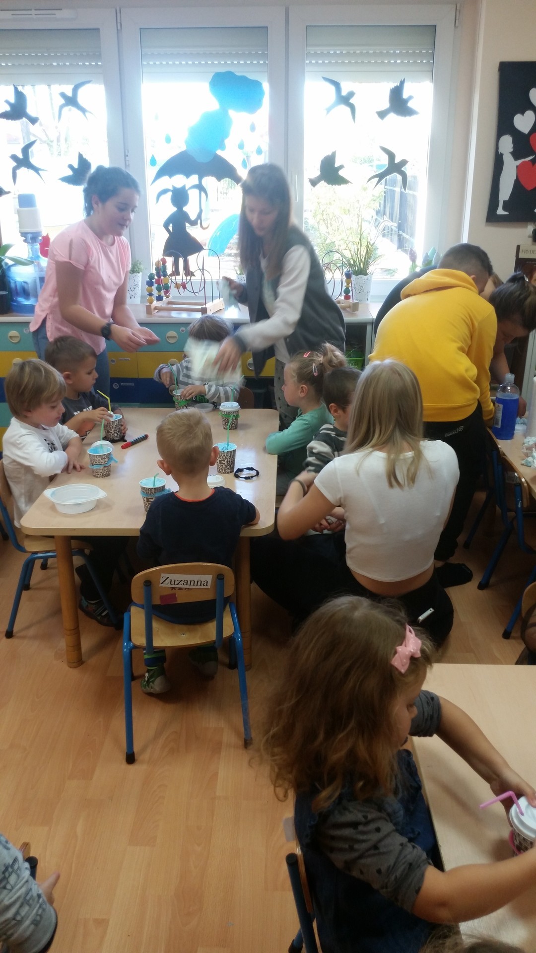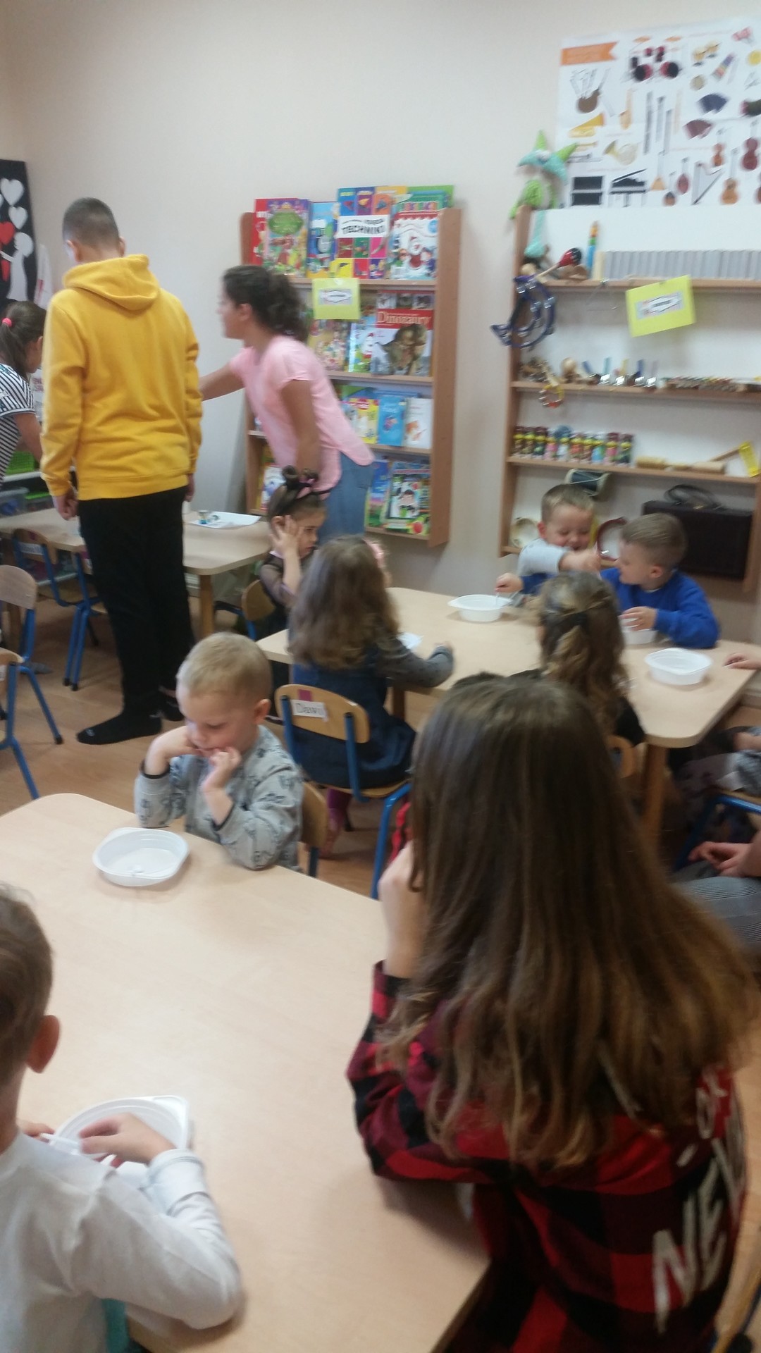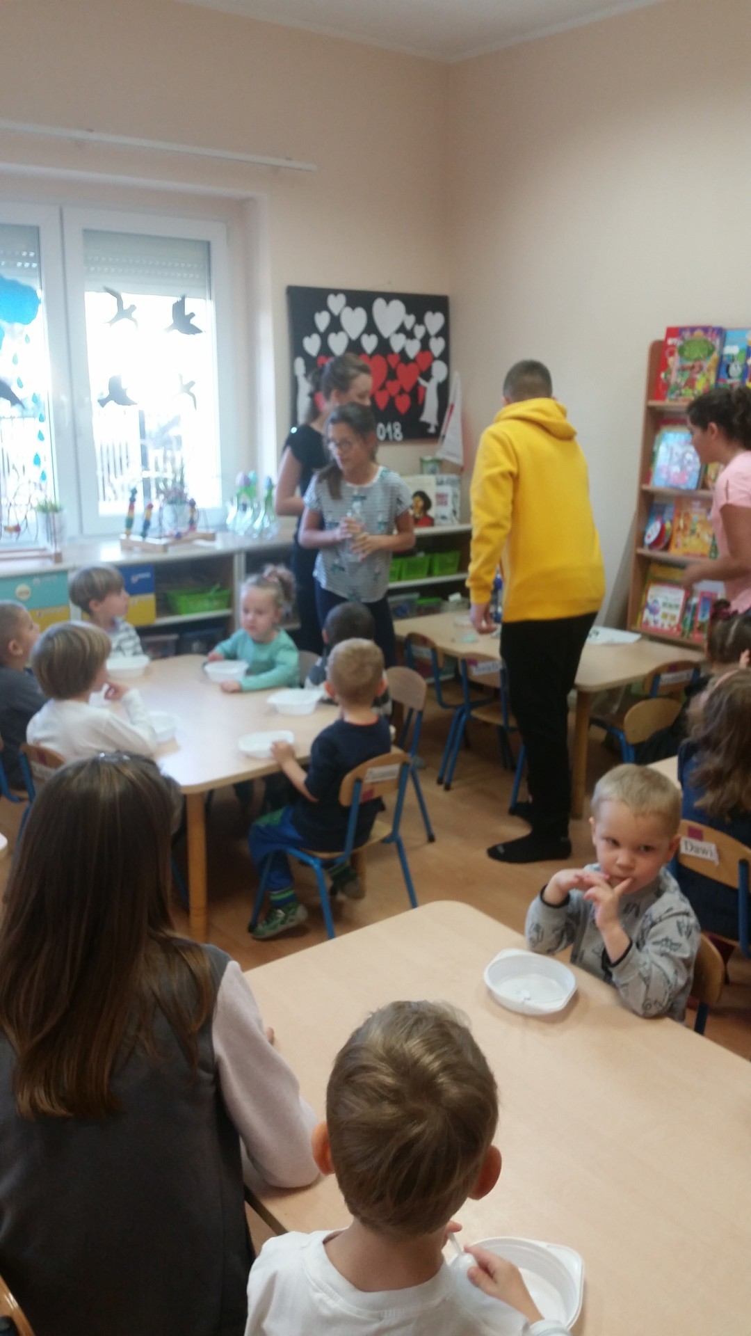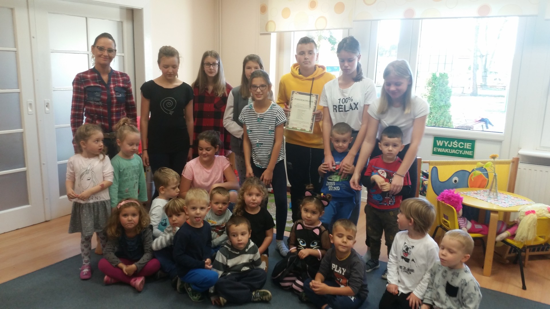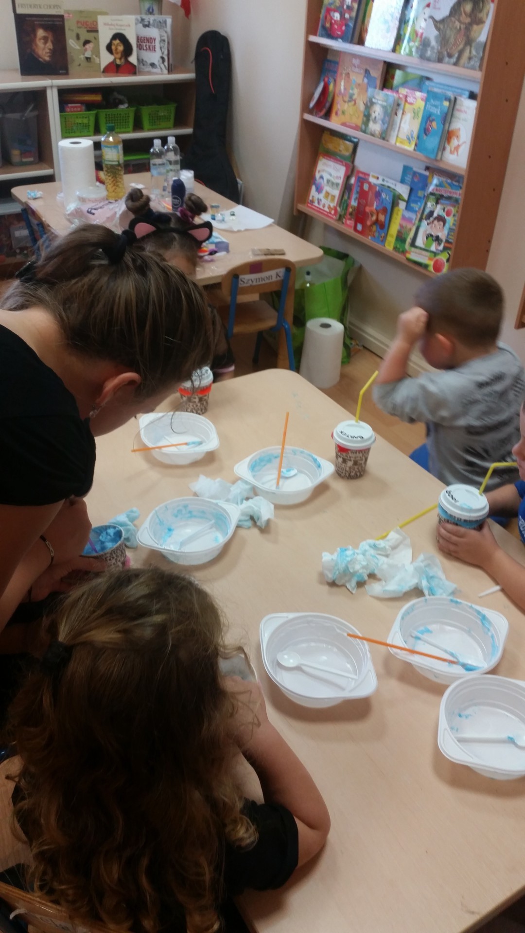 W ramach projektu "Uwolnić wiedzę" dzieci ze Szkoły Podstawowej w Wicku odwiedziły naszych przedszkolaków. Pomysłów i zapału uczniom nie brakowało. Dzieci oprócz świetnej zabawy miały możliwość przeprowadzenia kilku ciekawych eksperymentów między innymi slim'a, którego to mogły zabrać do domu.