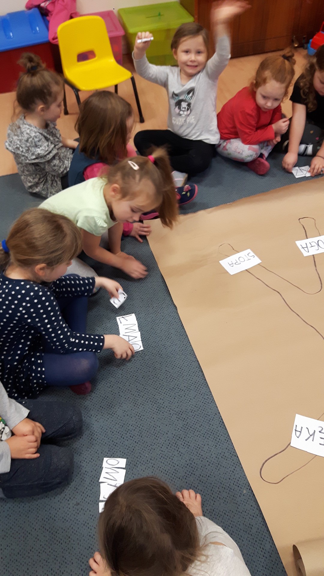 Oprócz wspaniałej zabawy literkowej, dzieci miały okazję popracować w mniejszych grupkach gdzie od razu ujawnili się liderzy.