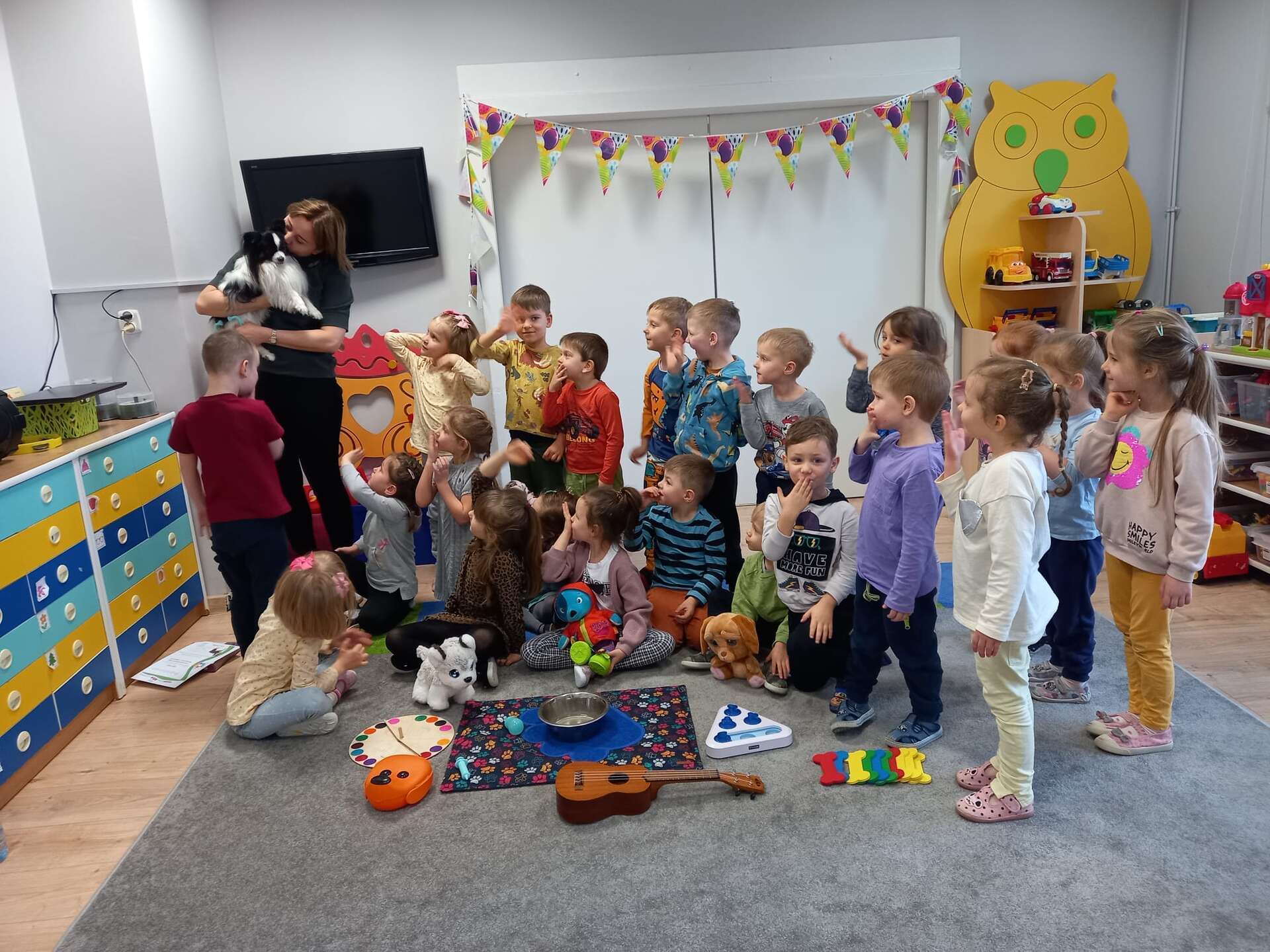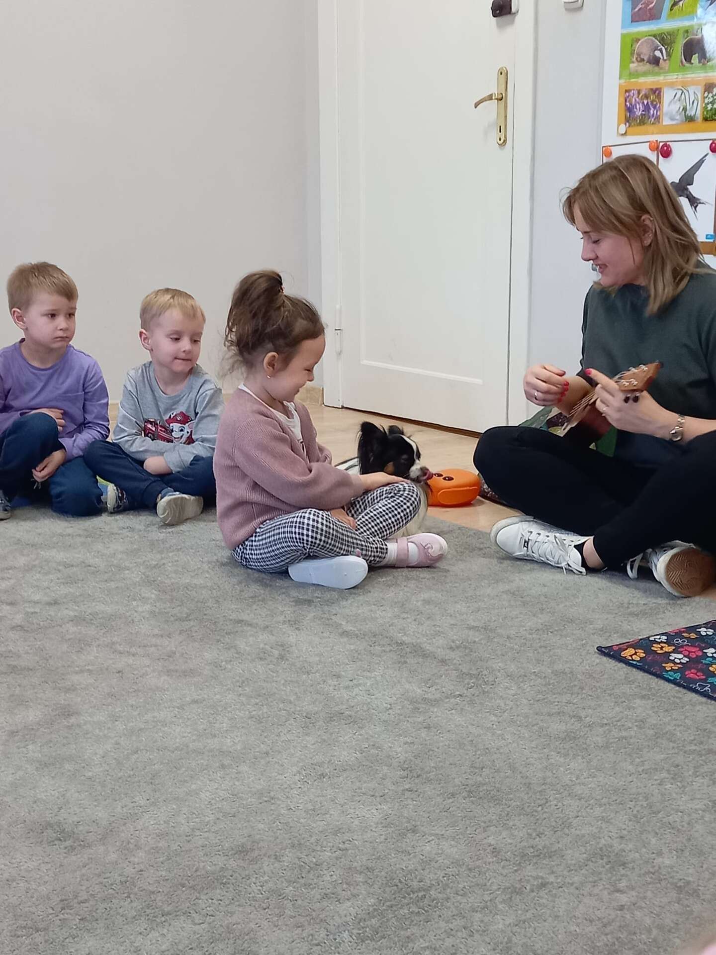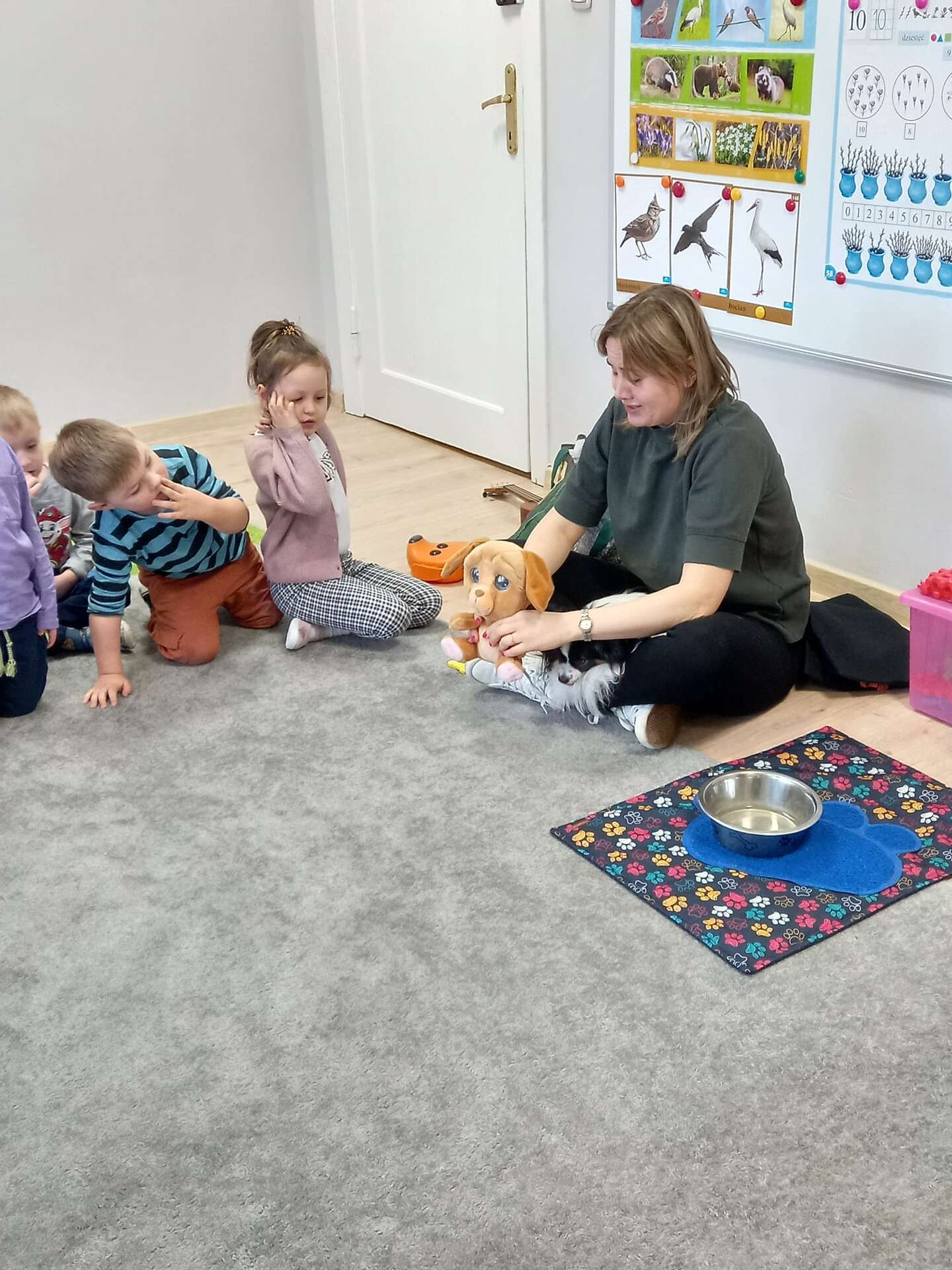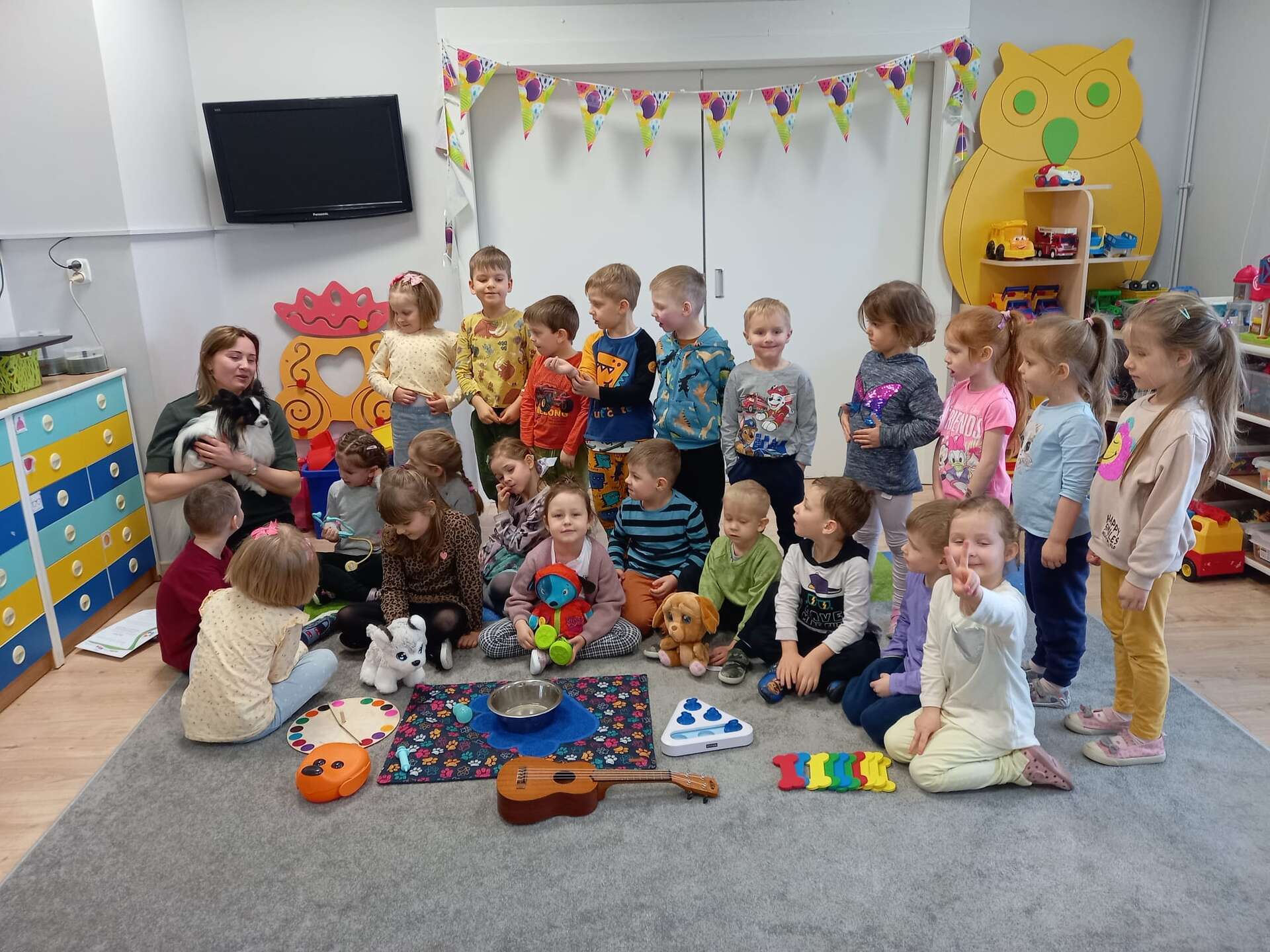 Zajęcia dla dzieci poprowadziła p. Liliana Gałaman. Towarzyszył jej niezwykle przyjazny piesek Ozi. Podczas zajęć dzieci dowiedziały się o psich upodobaniach, potrzebach, pielęgnacji. Przedszkolaki uczestniczyły również w interaktywnych zabawach. Pozytywnych wrażeń było mnóstwo !