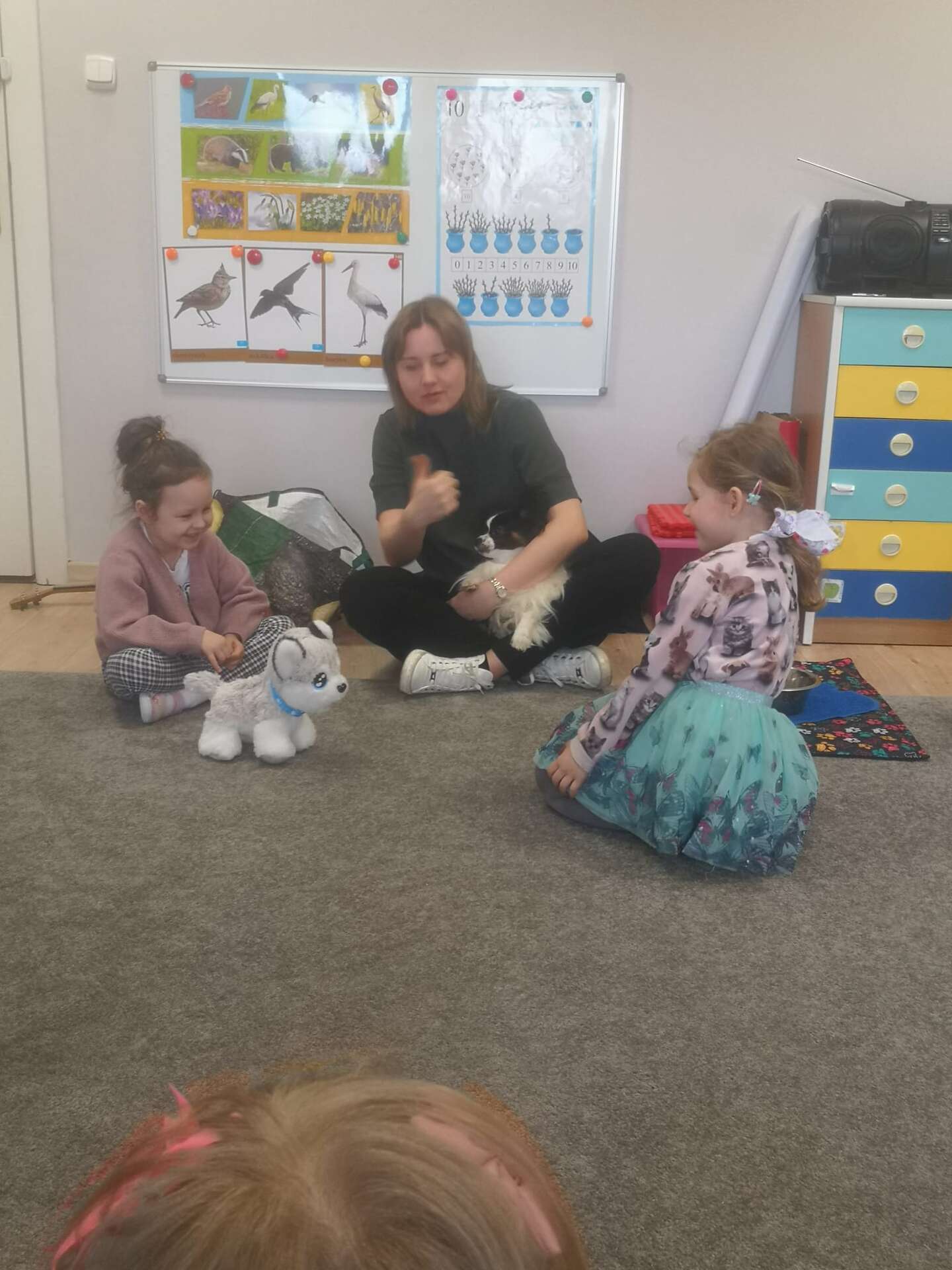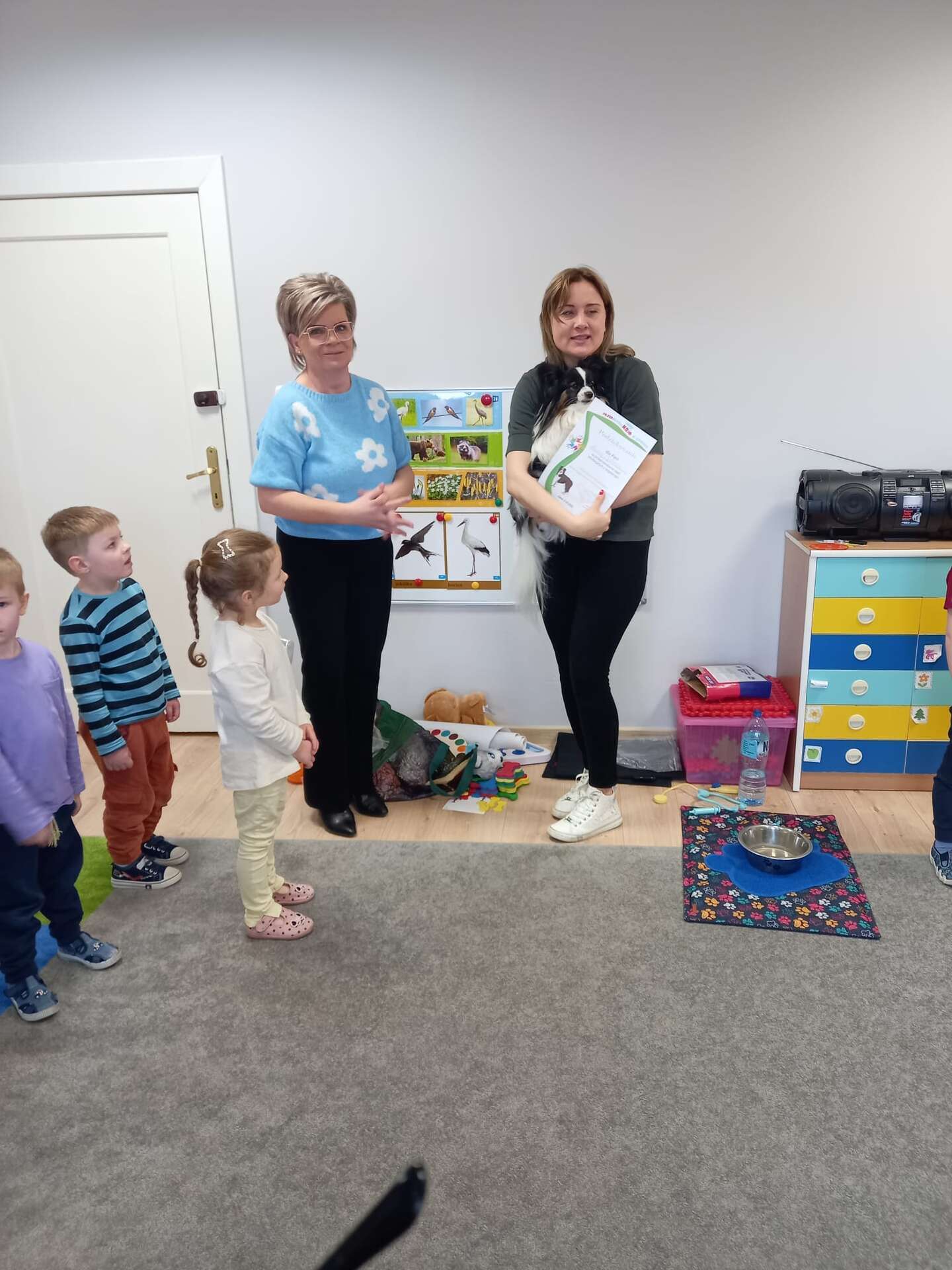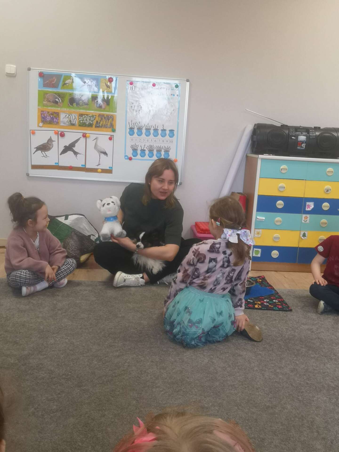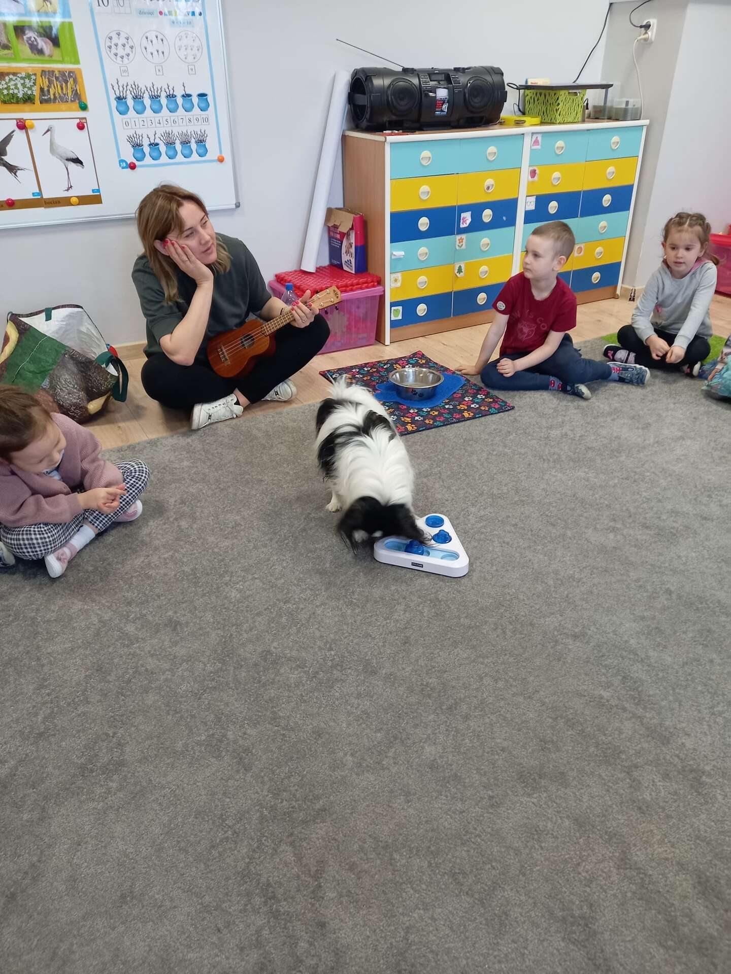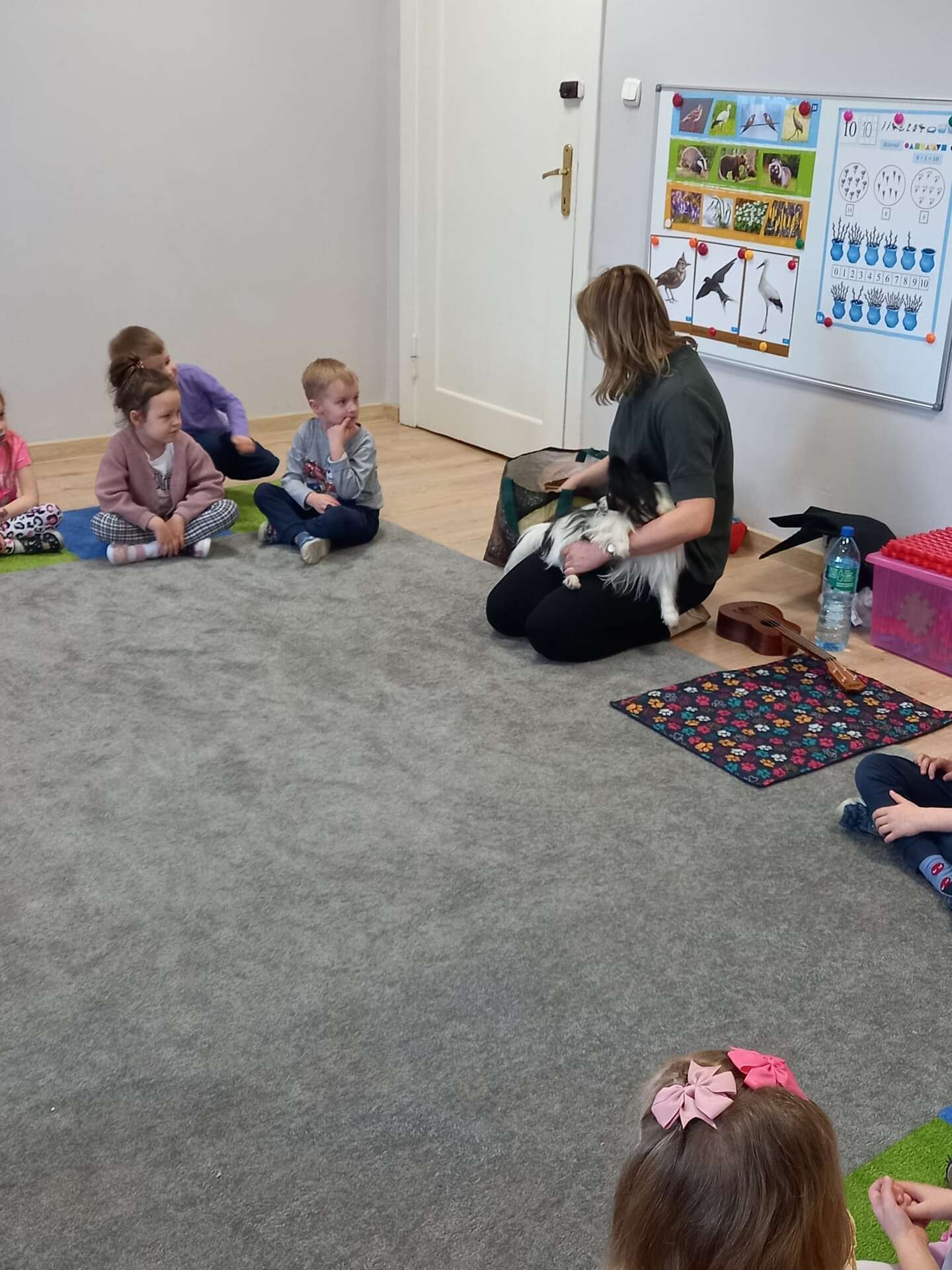 Zajęcia dla dzieci poprowadziła p. Liliana Gałaman. Towarzyszył jej niezwykle przyjazny piesek Ozi. Podczas zajęć dzieci dowiedziały się o psich upodobaniach, potrzebach, pielęgnacji. Przedszkolaki uczestniczyły również w interaktywnych zabawach. Pozytywnych wrażeń było mnóstwo !