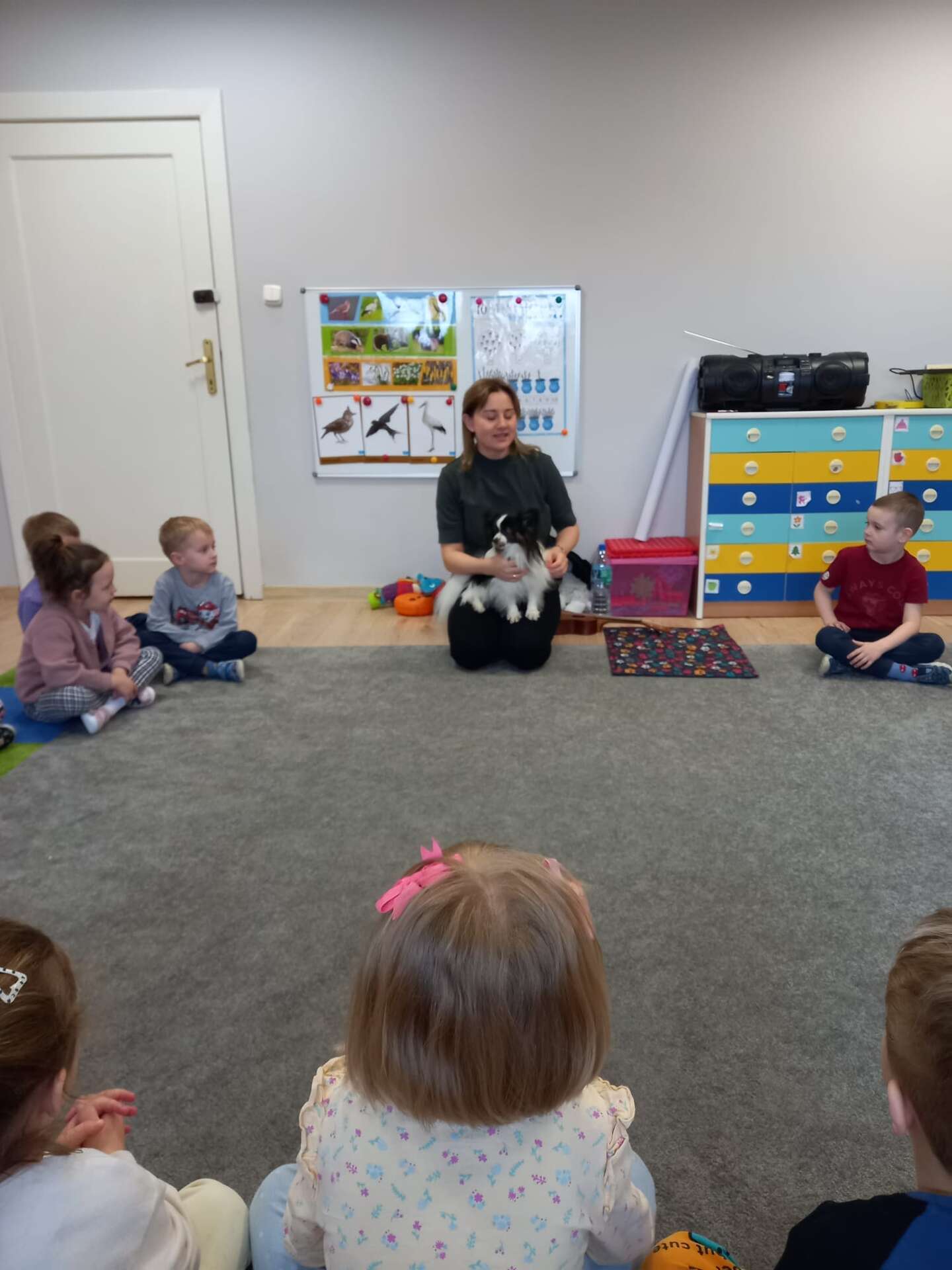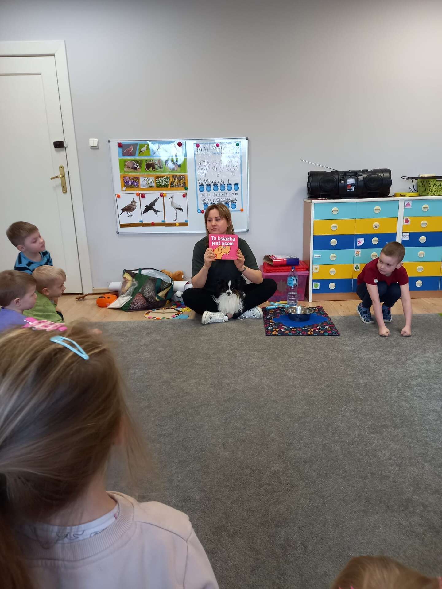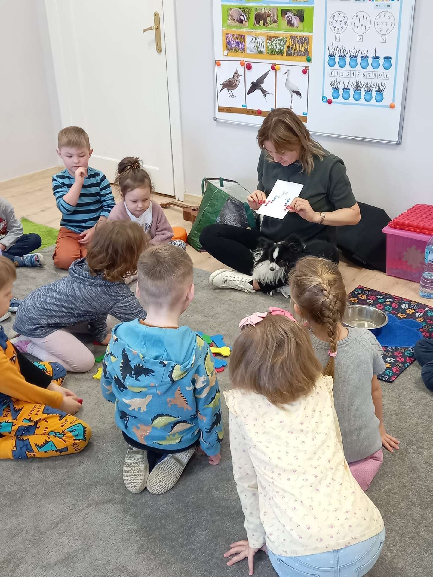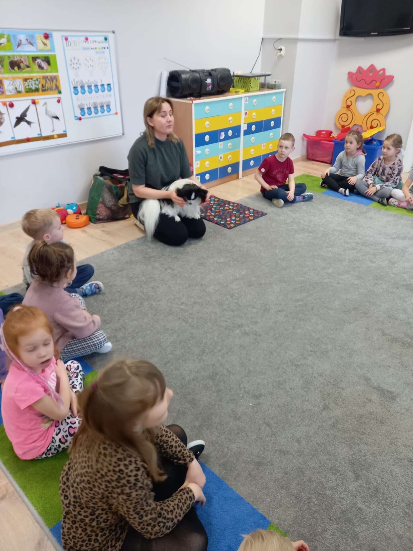 Zajęcia dla dzieci poprowadziła p. Liliana Gałaman. Towarzyszył jej niezwykle przyjazny piesek Ozi. Podczas zajęć dzieci dowiedziały się o psich upodobaniach, potrzebach, pielęgnacji. Przedszkolaki uczestniczyły również w interaktywnych zabawach. Pozytywnych wrażeń było mnóstwo !