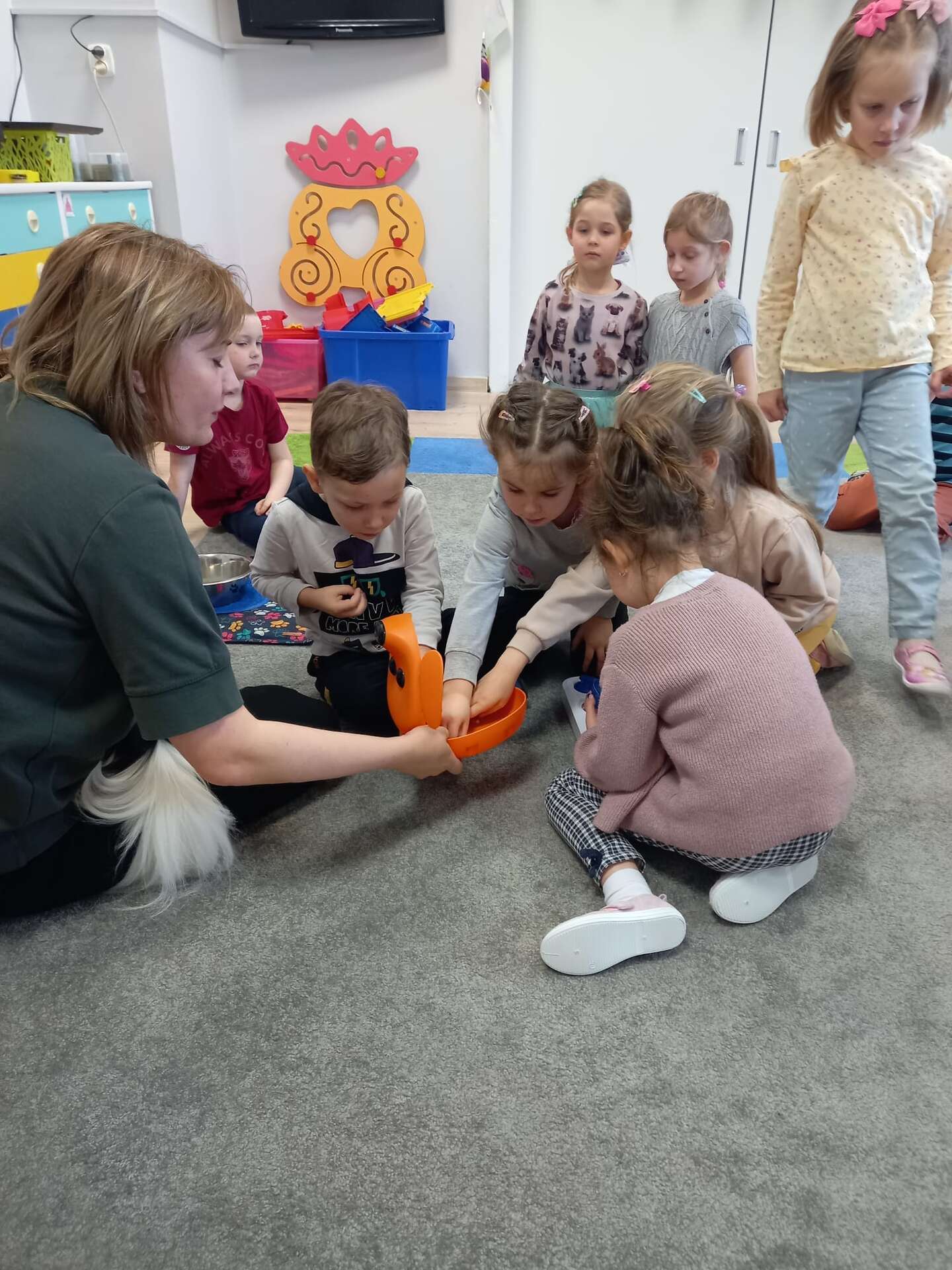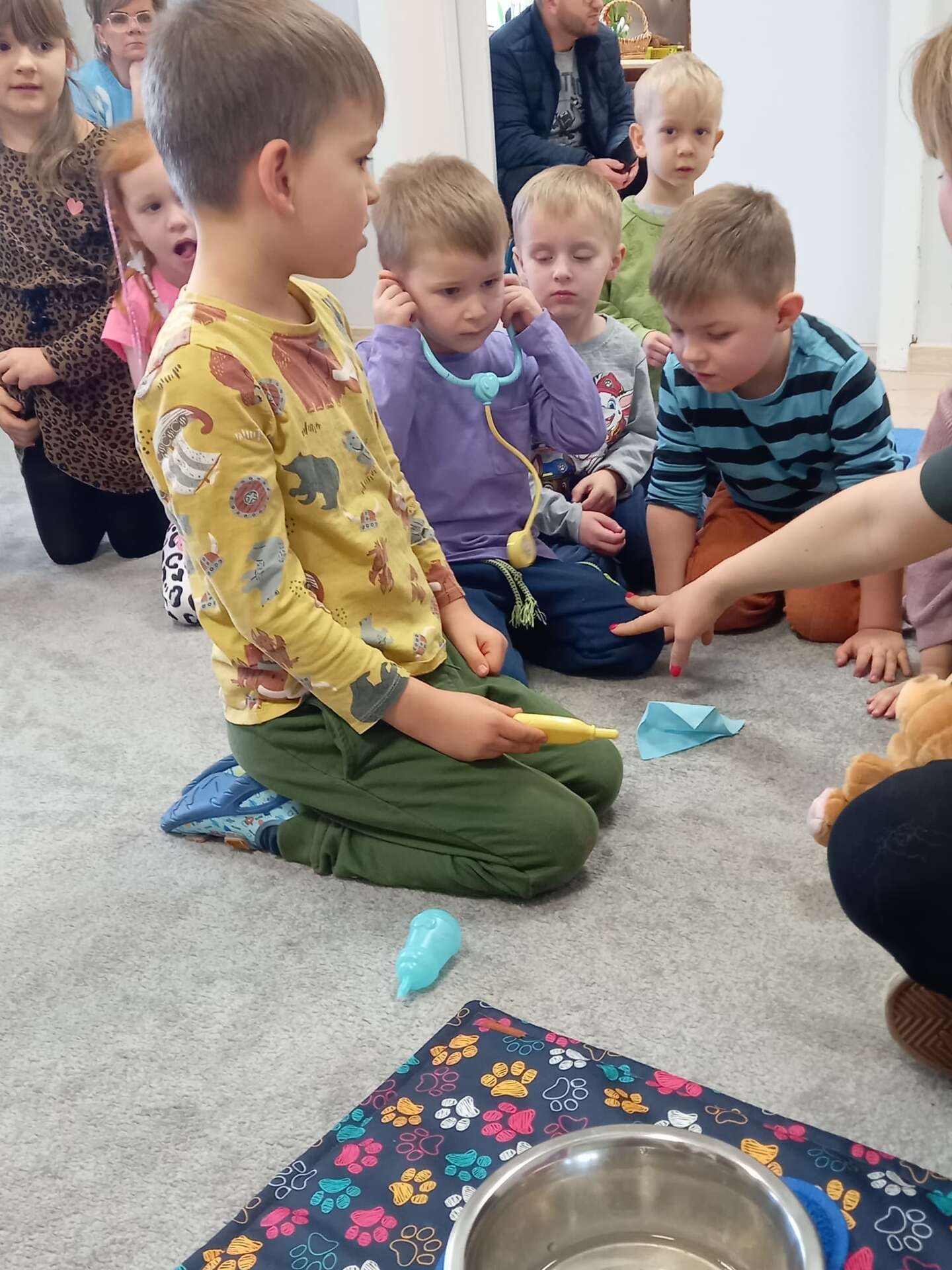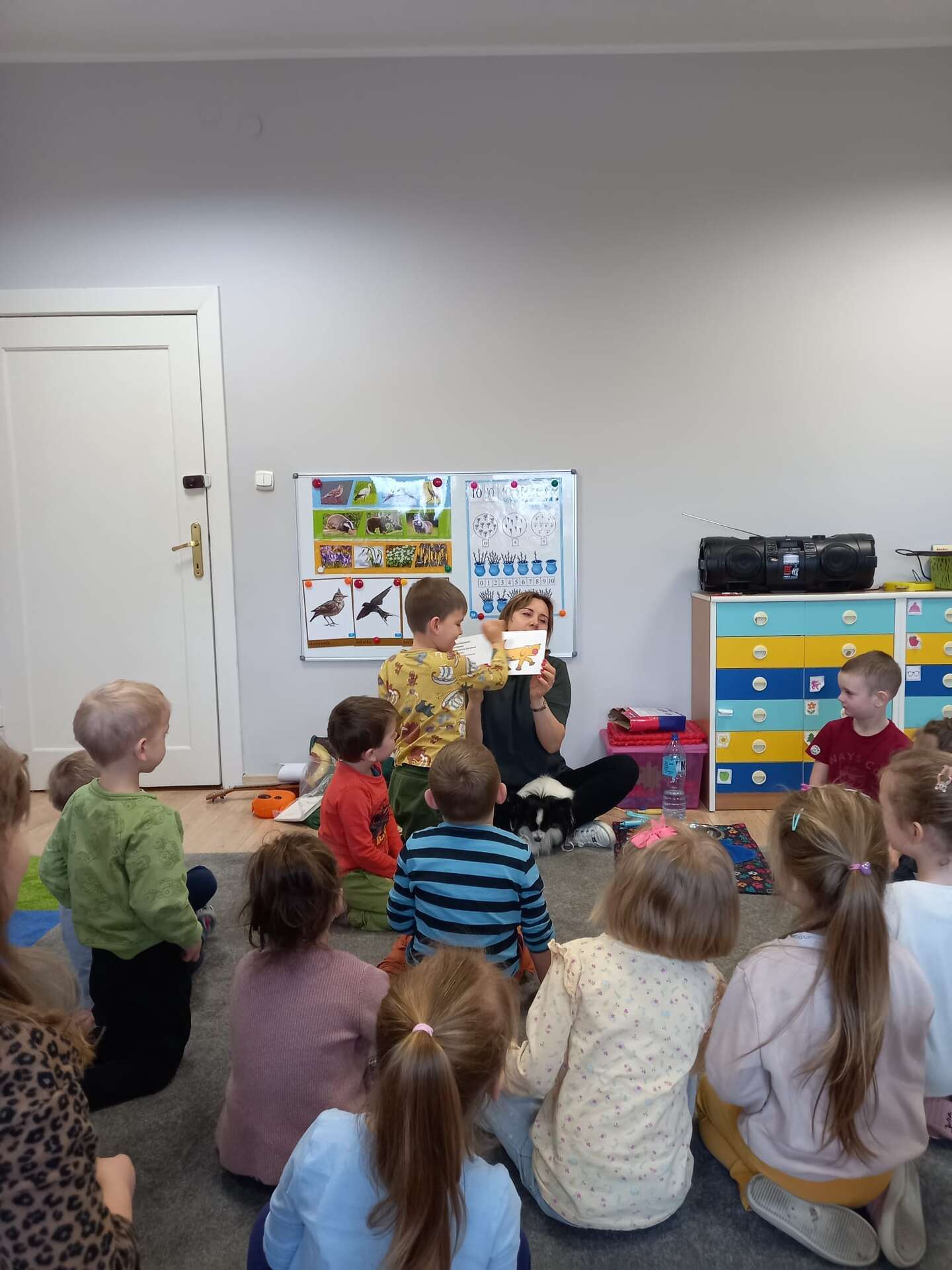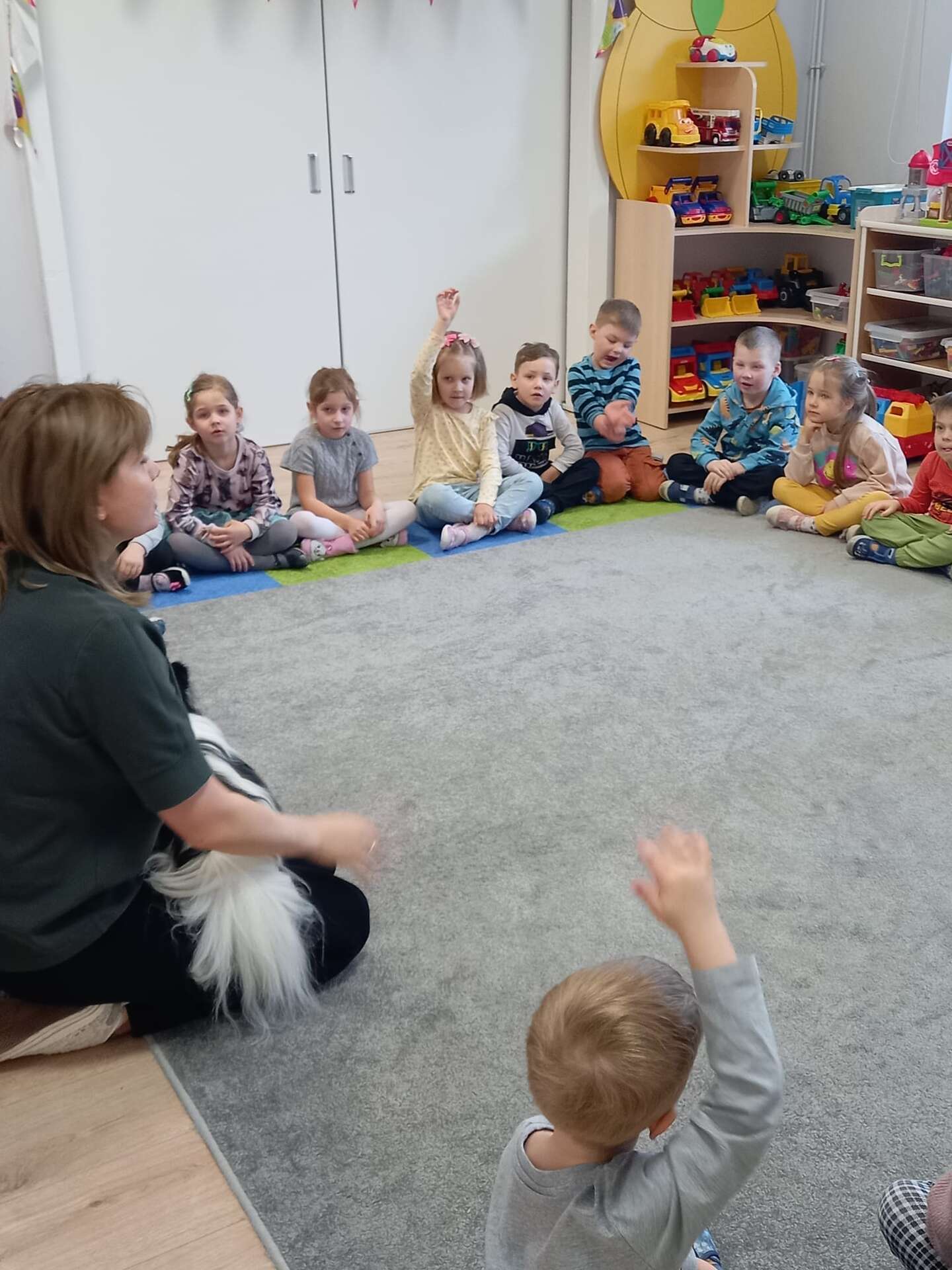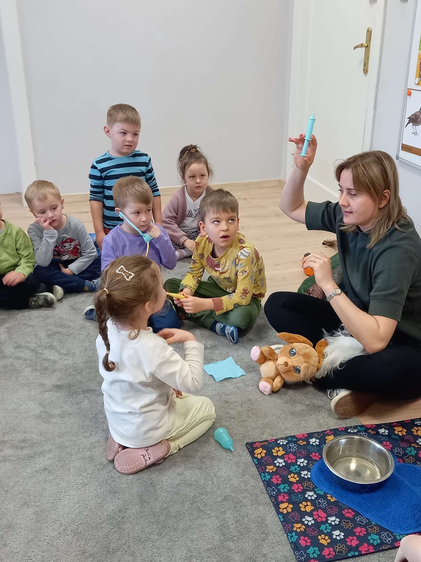 Zajęcia dla dzieci poprowadziła p. Liliana Gałaman. Towarzyszył jej niezwykle przyjazny piesek Ozi. Podczas zajęć dzieci dowiedziały się o psich upodobaniach, potrzebach, pielęgnacji. Przedszkolaki uczestniczyły również w interaktywnych zabawach. Pozytywnych wrażeń było mnóstwo !