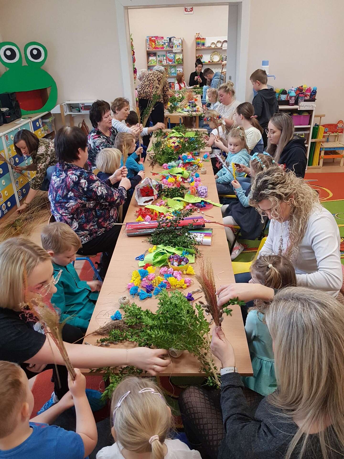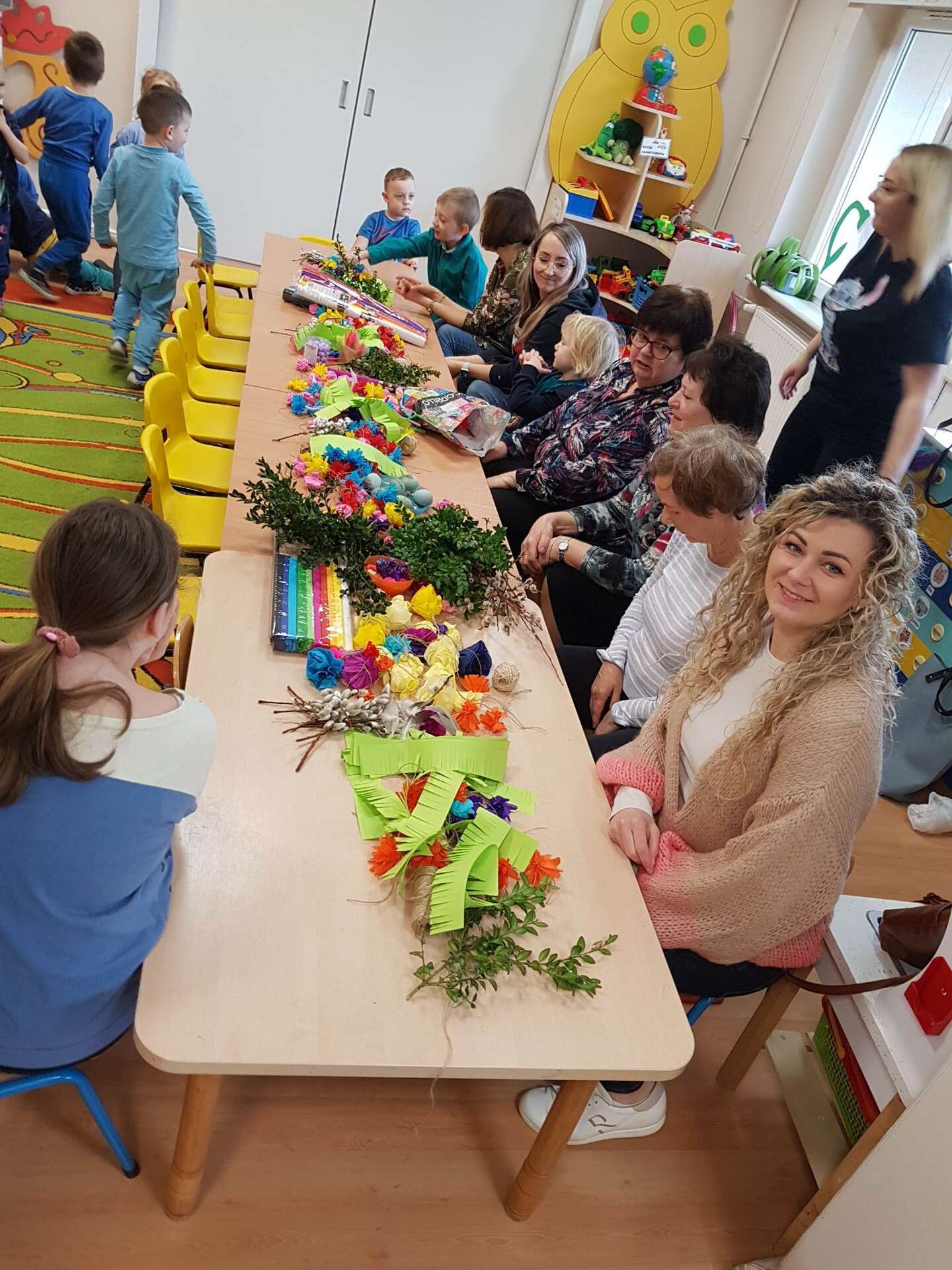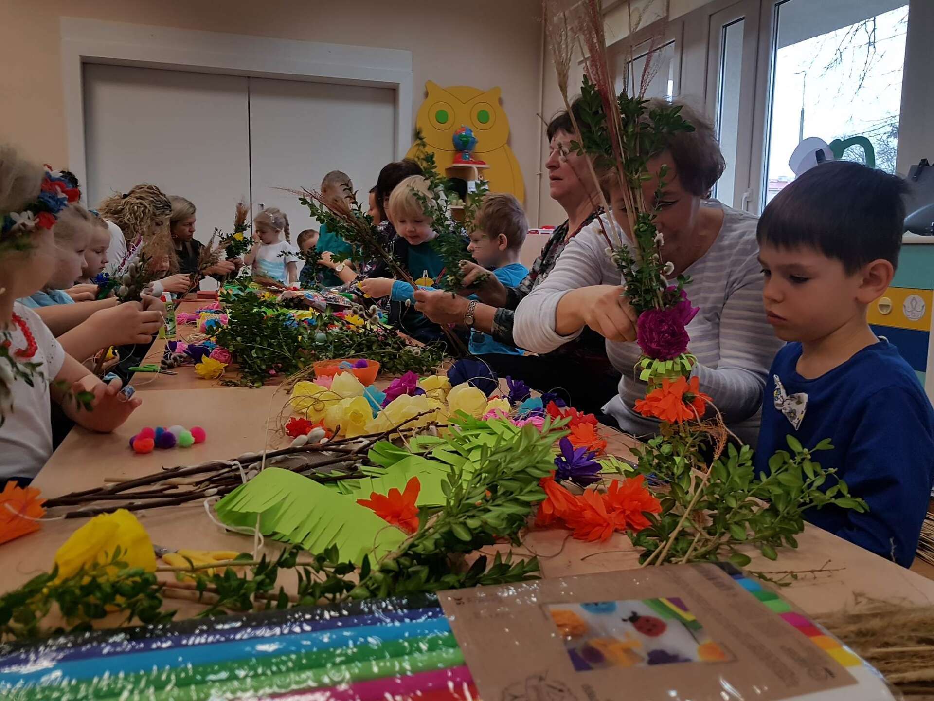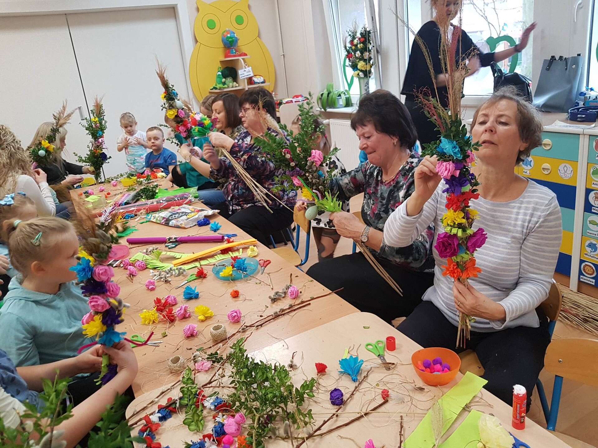 Dzisiaj w grupie II odbyły się zajęcia otwarte. Dzieci wspólnie z rodzicami i babciami wykonywały palmy wielkanocne. Wspólne spotkanie z bliskimi dostarczyło dzieciom wielu pozytywnych emocji. Wykonane, przepiękne palmy przeznaczone zostaną na charytatywny kiermasz.