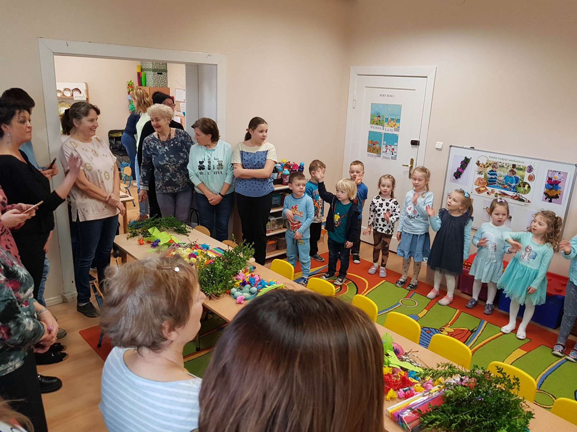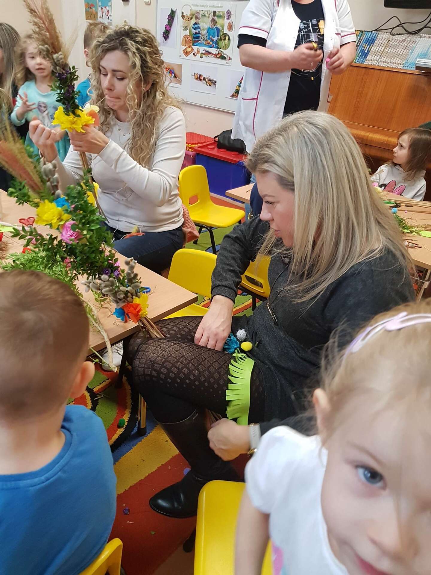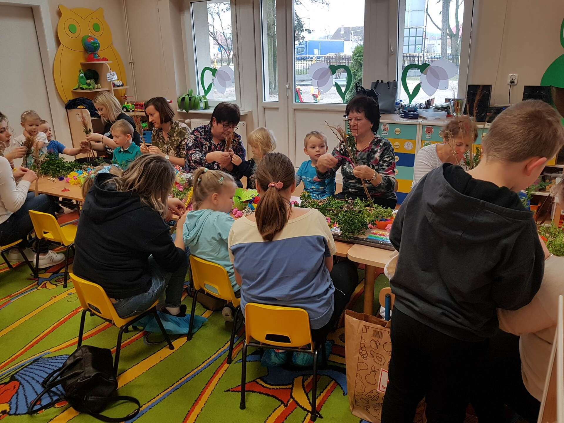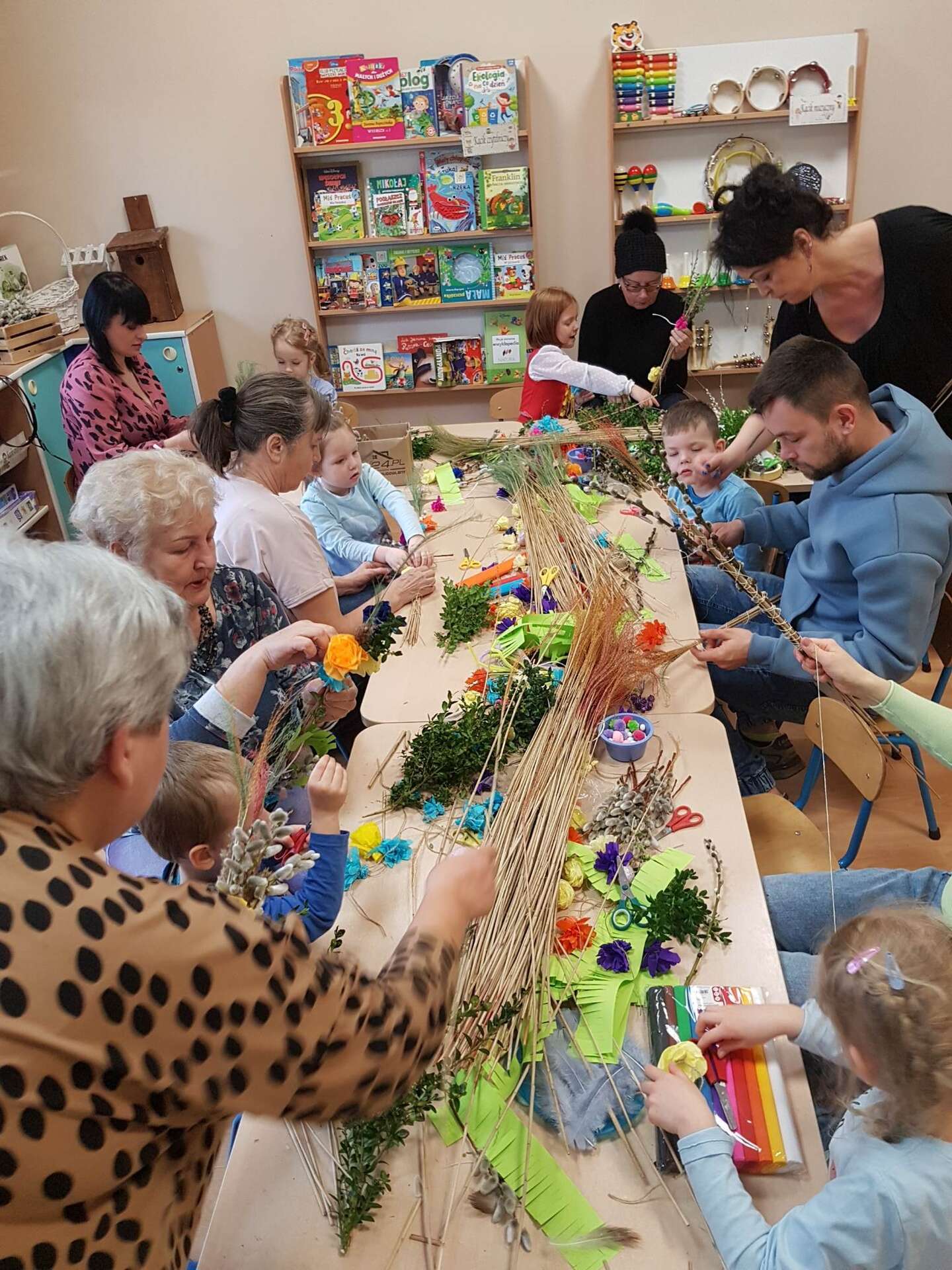 Dzisiaj w grupie II odbyły się zajęcia otwarte. Dzieci wspólnie z rodzicami i babciami wykonywały palmy wielkanocne. Wspólne spotkanie z bliskimi dostarczyło dzieciom wielu pozytywnych emocji. Wykonane, przepiękne palmy przeznaczone zostaną na charytatywny kiermasz.