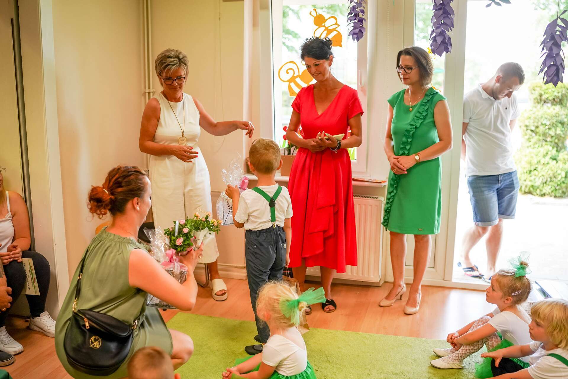 Chłopiec daje Paniom Kwiaty