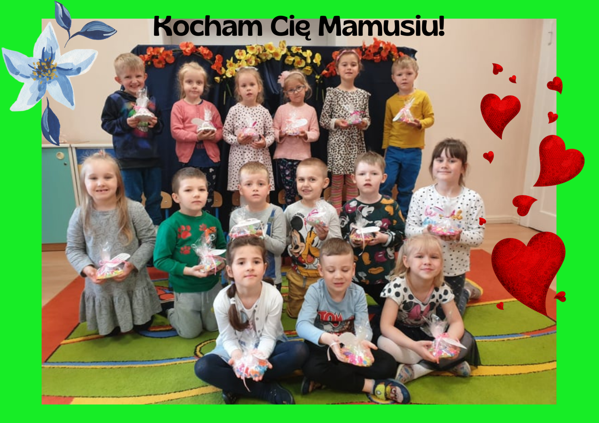 Przyjmij Kochana Mamusiu te oto z serca płynące życzenia: dużo zdrowia, szczęścia i uśmiechu wiele, niech Ci się spełni każde Twoje skryte marzenie!