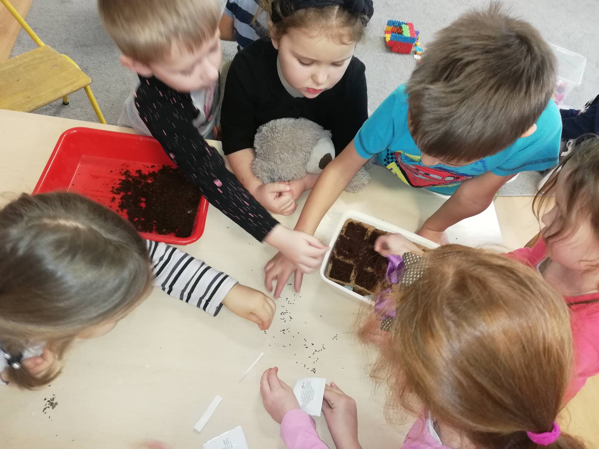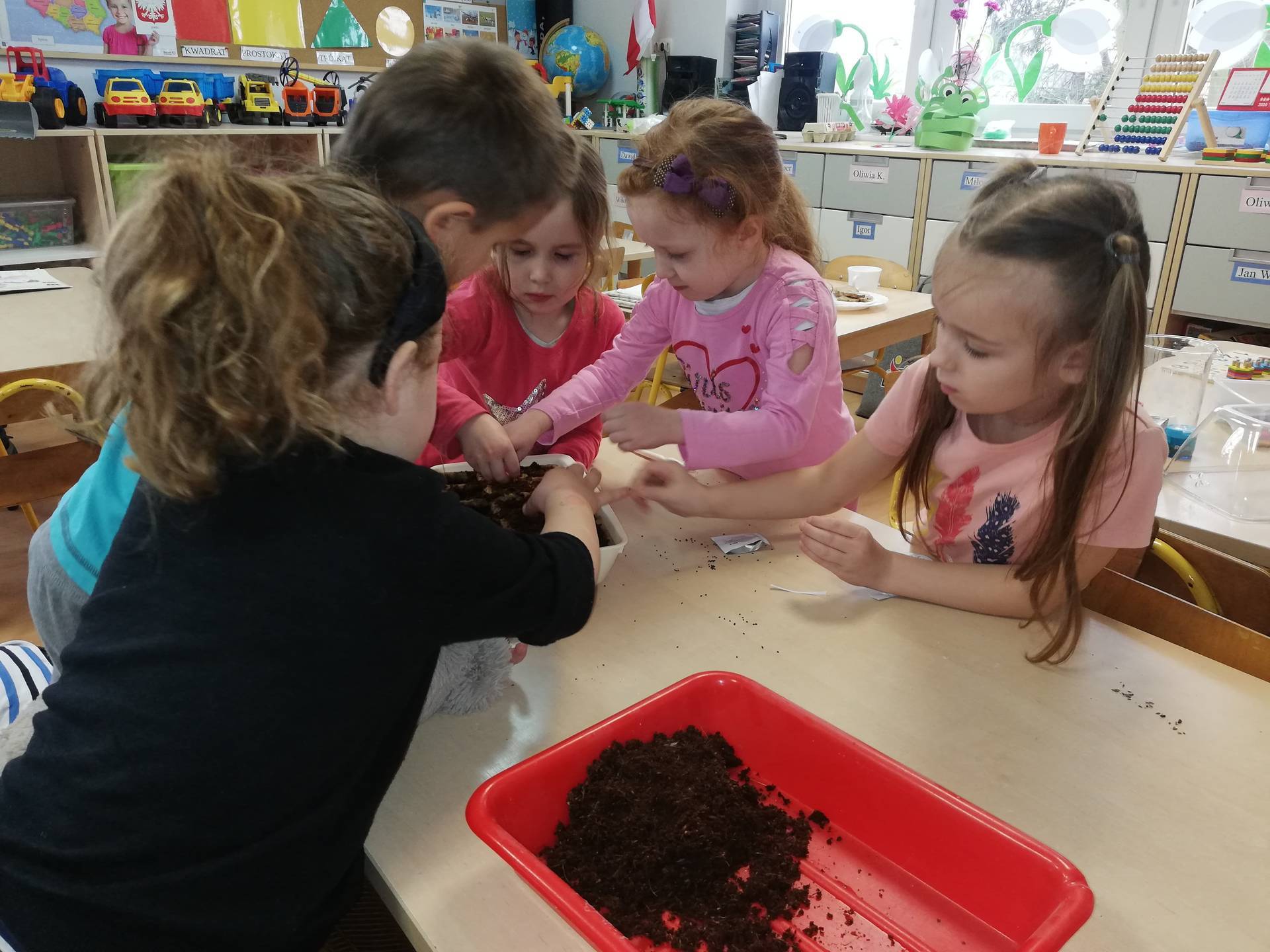 Wiosna już prawie za oknem. To najlepszy czas na sadzenie. Dzisiaj wspólnie z naszą Panią zasadziliśmy koperek, szczypiorek, bazylię. Zobaczymy co wyrośnie.