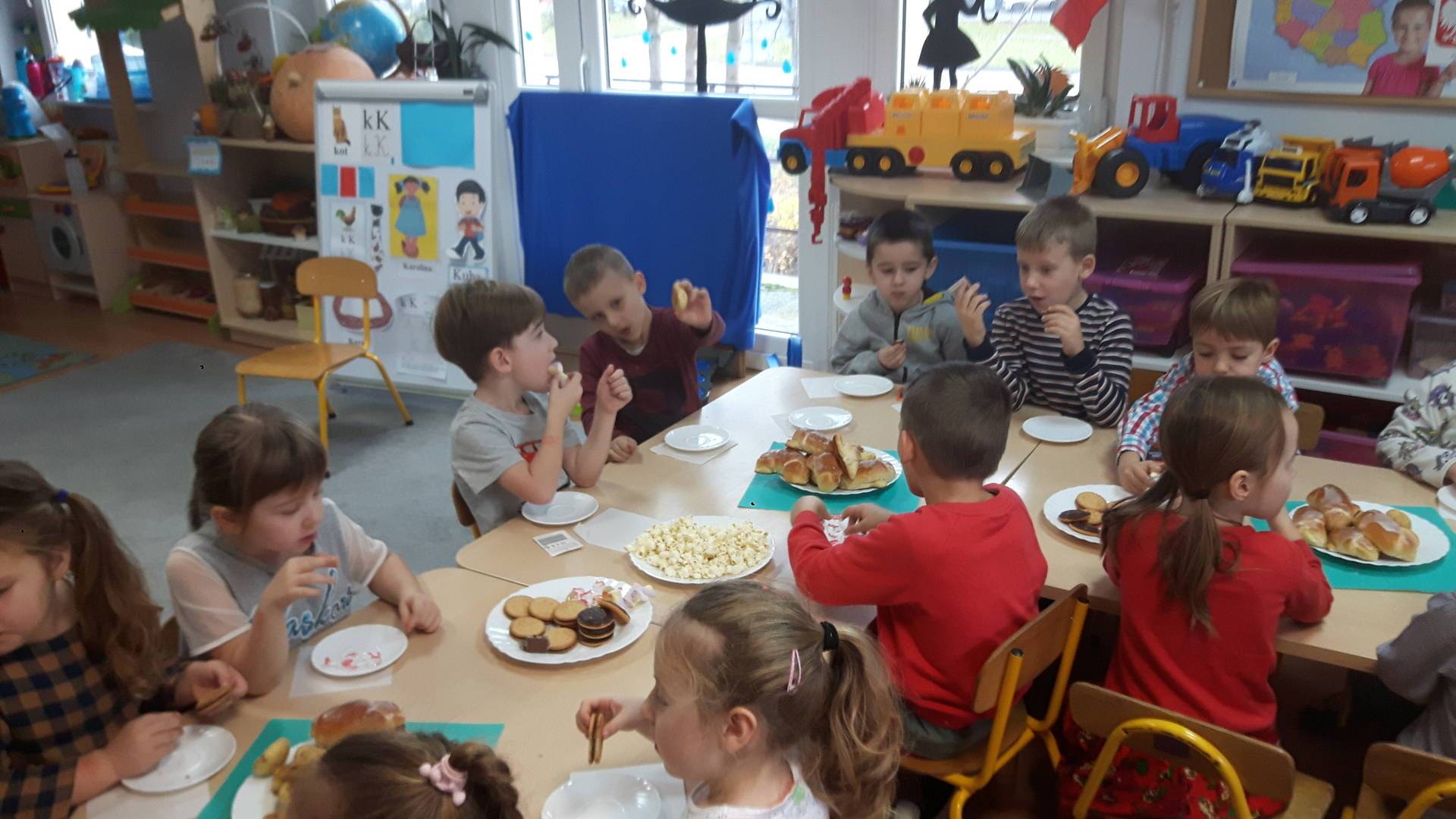 W miniony piątek nasze Przedszkolaki przeniosły się w magiczny świat wróżb i zabaw andrzejkowych. Dzieci mogły „poznać swoją przyszłość” – tą bliską „co dostanę od Gwiazdora” i tą daleką… „kim będę w przyszłości”. Wśród atmosfery tańca i zabawy znalazł się również czas na słodki poczęstunek. Ten magiczny dzień był okazją do zapoznania się z tradycją andrzejkową, radości oraz integracji grupy.