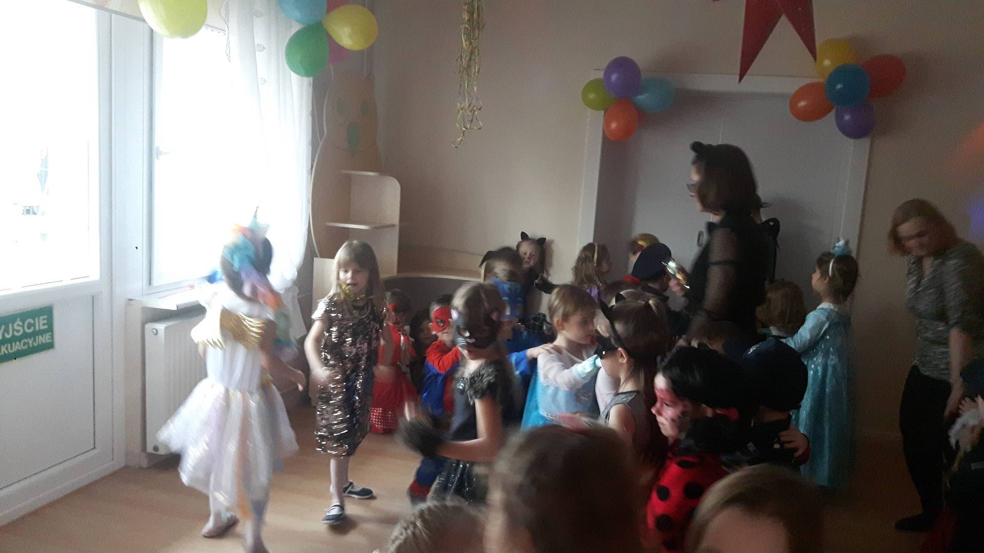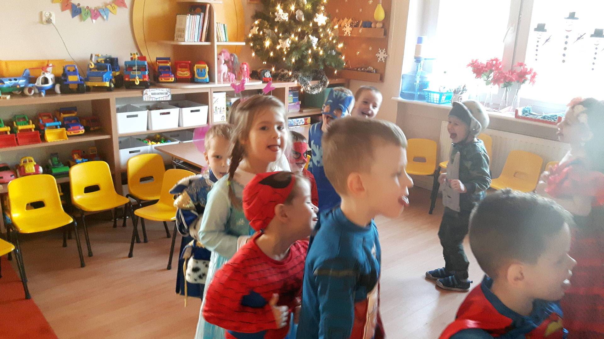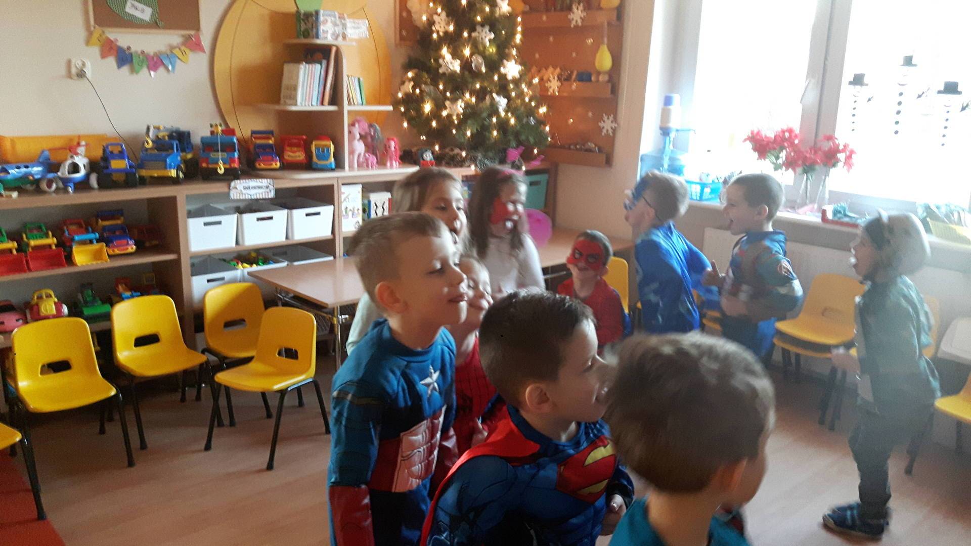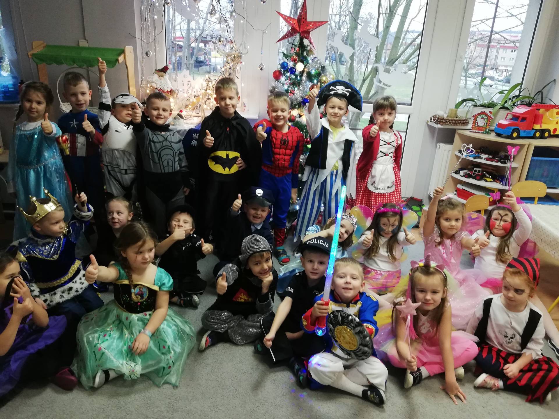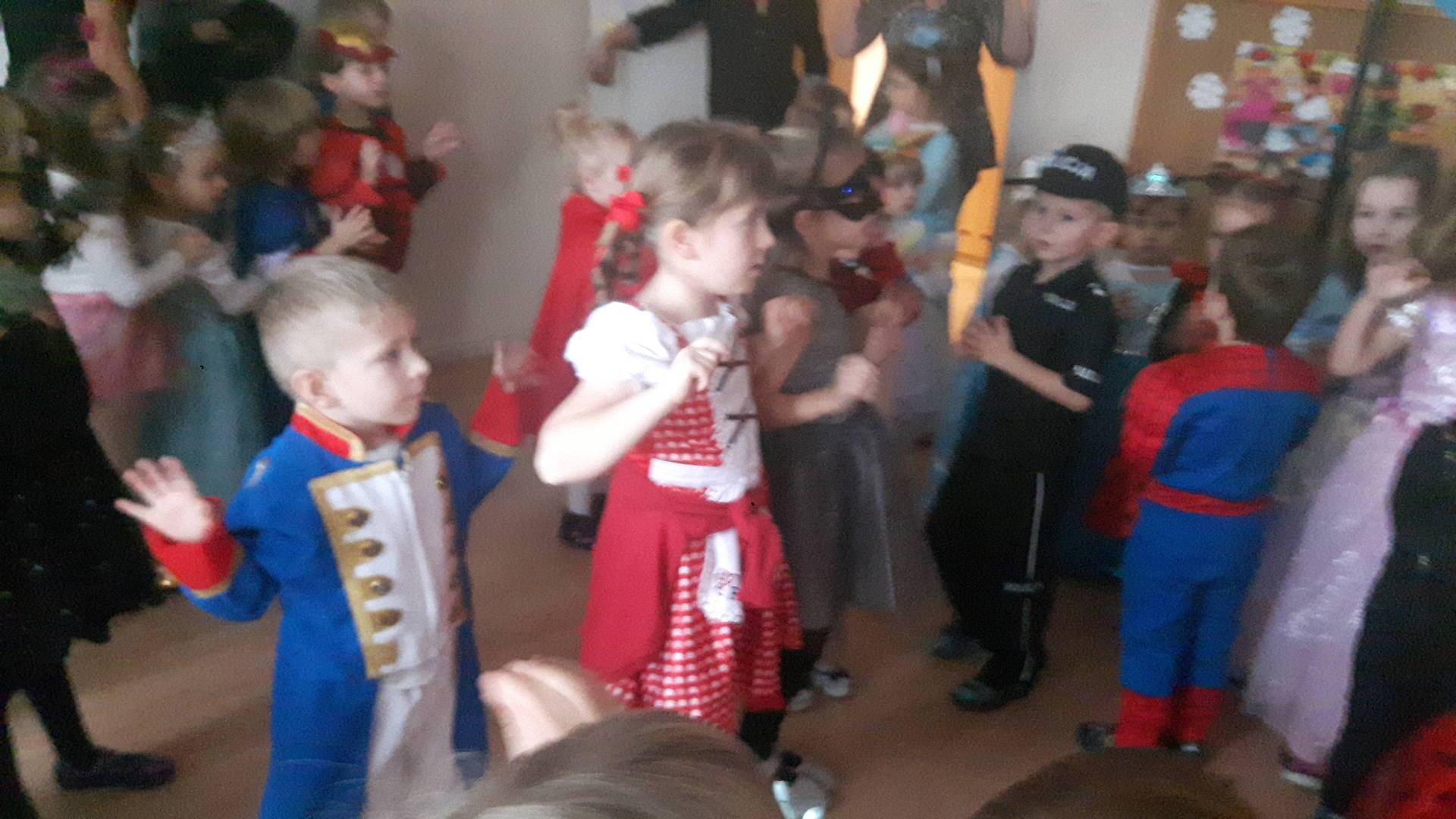 W dniu 03.01.2020r. w naszym przedszkolu odbył się bal karnawałowy. Wszystkie dzieci już od rana były podekscytowane czekającą ich zabawą. W tym dniu przedszkolaki przemieniły się w królewny, księżniczki, wróżki, policjantów, spider-menów oraz wiele innych postaci. Rozpoznać dzieci było trudno. Kiedy pojawiły się pierwsze rytmy wesołej muzyki, to wszystkie przedszkolaki z wielką ochotą rozpoczęły pląsy i tańce. Wszyscy bawili się znakomicie. Były „tańce – łamańce”, „pociąg”, „kaczuchy”, „labada” i wiele innych wesołych utworów. Jednym słowem zabawa na 102!!!. Bal był niezapomnianym przeżyciem dla naszych przedszkolaków i na pewno na długo pozostanie w naszej pamięci.