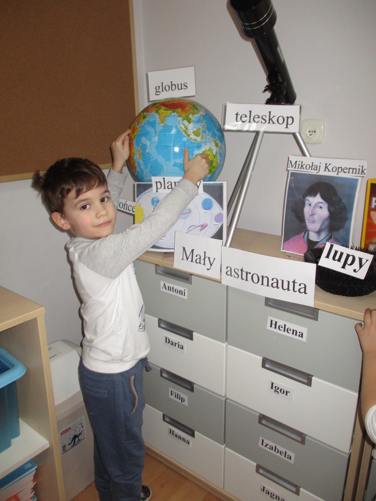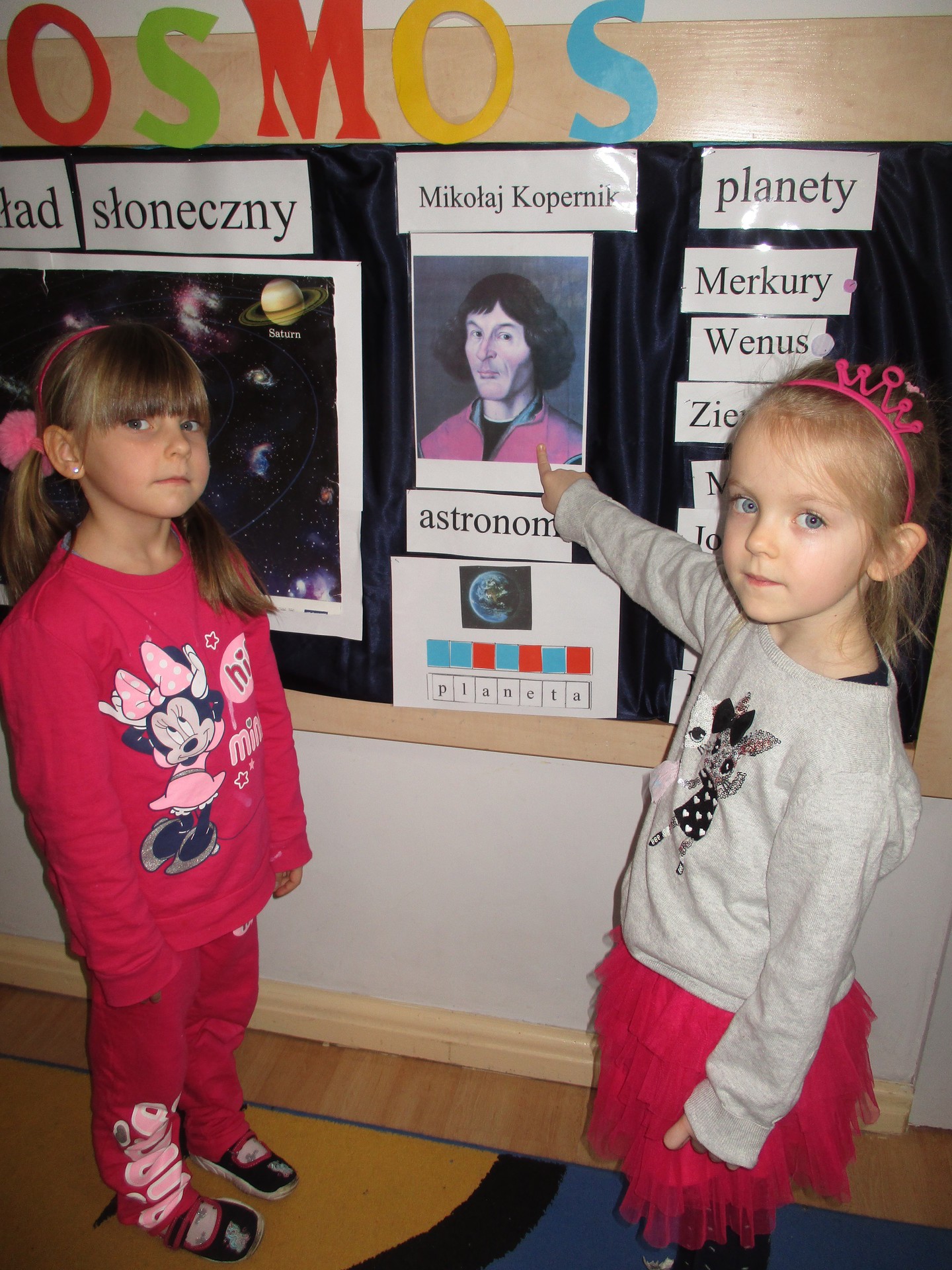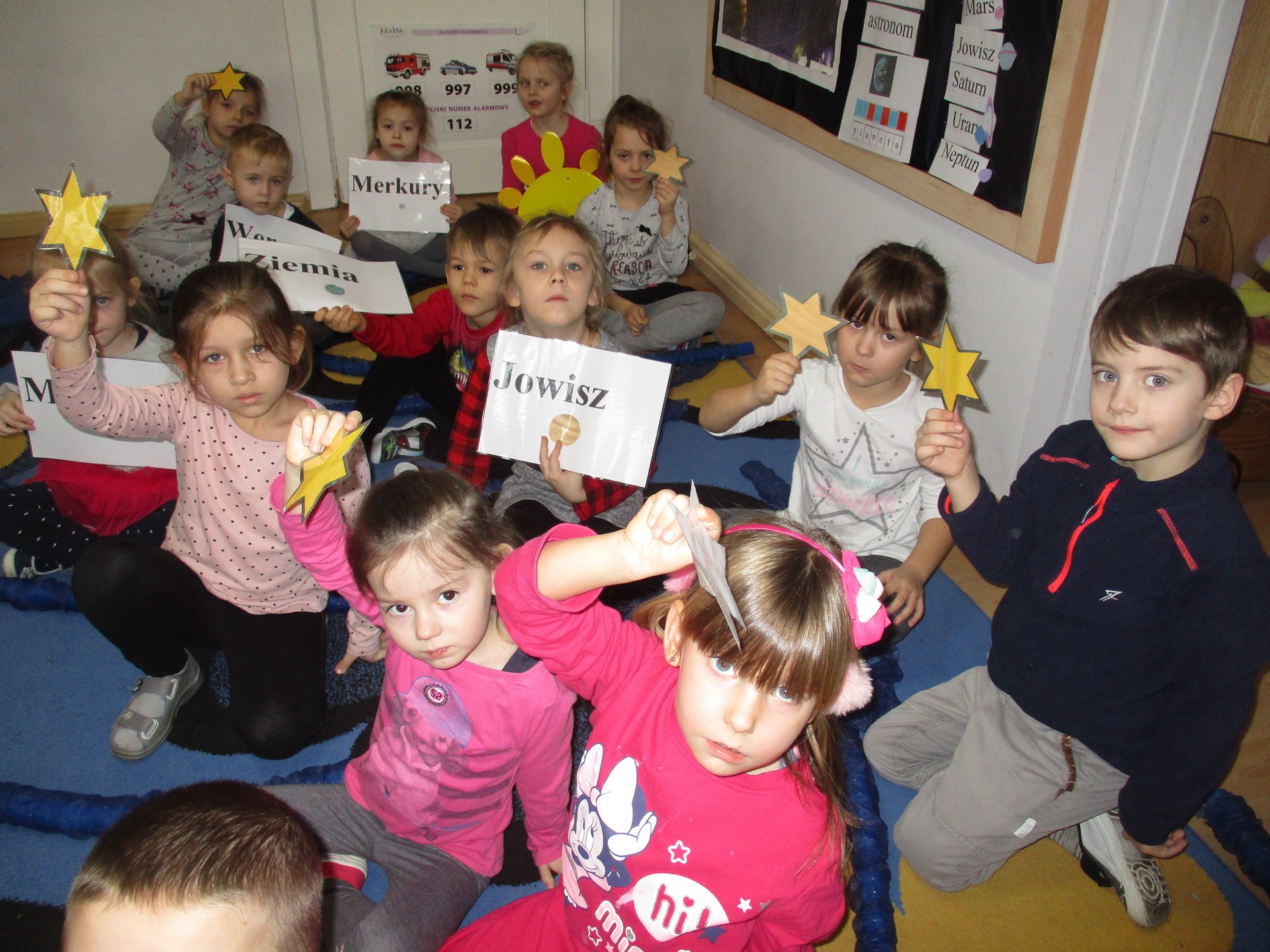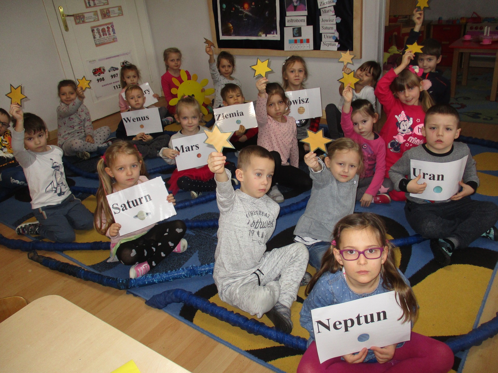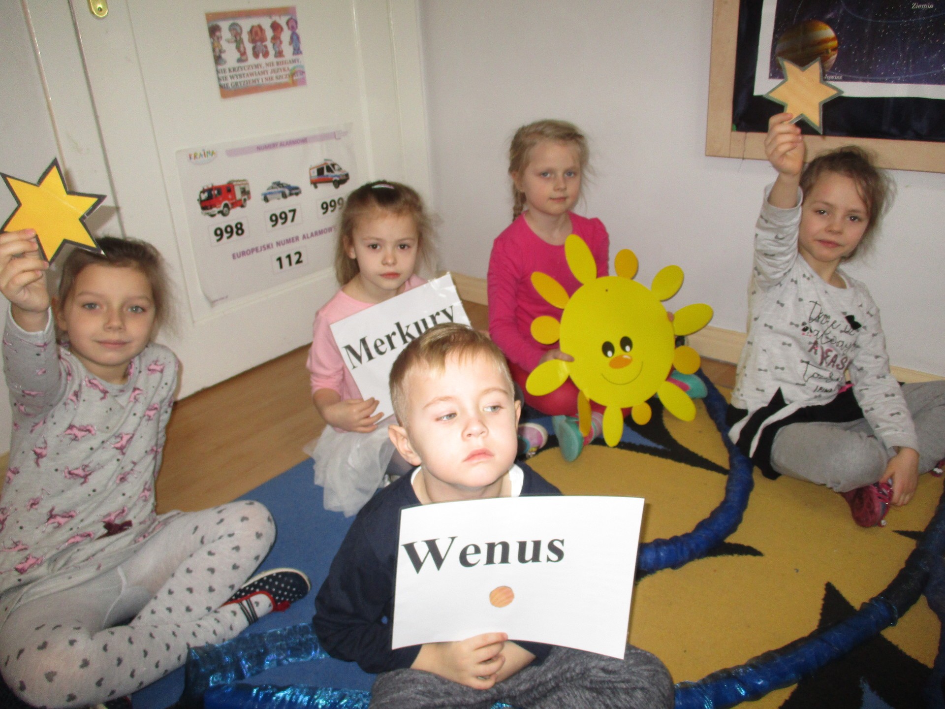 Czym jest kosmos? Jak wygląda? Gdzie on jest? Na te i inne pytania nasze przedszkolaki znają już odpowiedź ;) Przedszkolaki poznały planety Układu Słonecznego, dowiedziały się kim jest astronom, a kim astronauta. Dzieci uczestniczyły w licznych zabawach ruchowych m.in. chodziły po nieznanej planecie pokrytej kraterami. Przedszkolaki oglądały fotografie w encyklopediach i poszukiwały informacji o pojazdach kosmicznych. Pojawiły się również nowe prace plastyczne przedszkolaków, związane z tematyką kosmosu, czyli kolorowe planety i rakiety. Podczas zajęć dzieci wzbogaciły swoją wiedzę i słownictwo o wyrazy związane tematem kosmosu i wszechświata. Nauka przez zabawę - to najlepsza nauka na świecie :)
