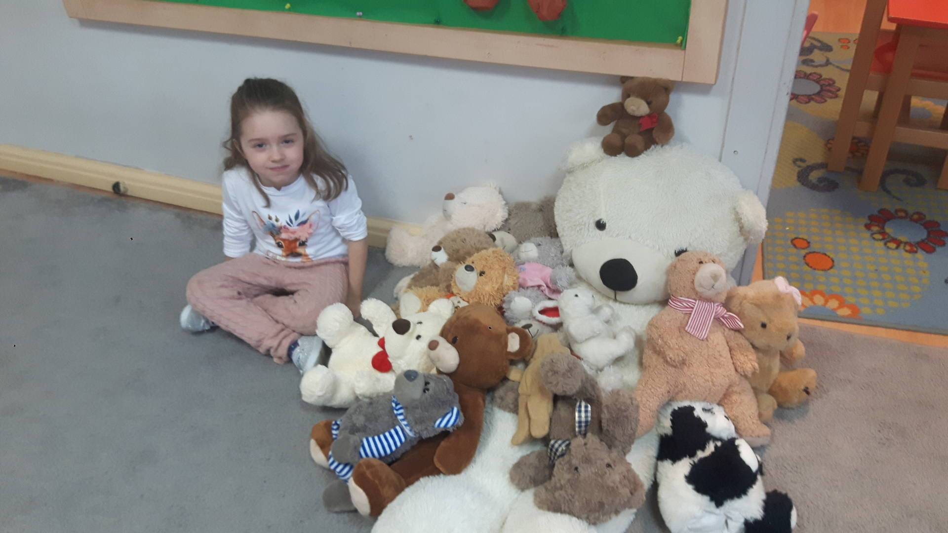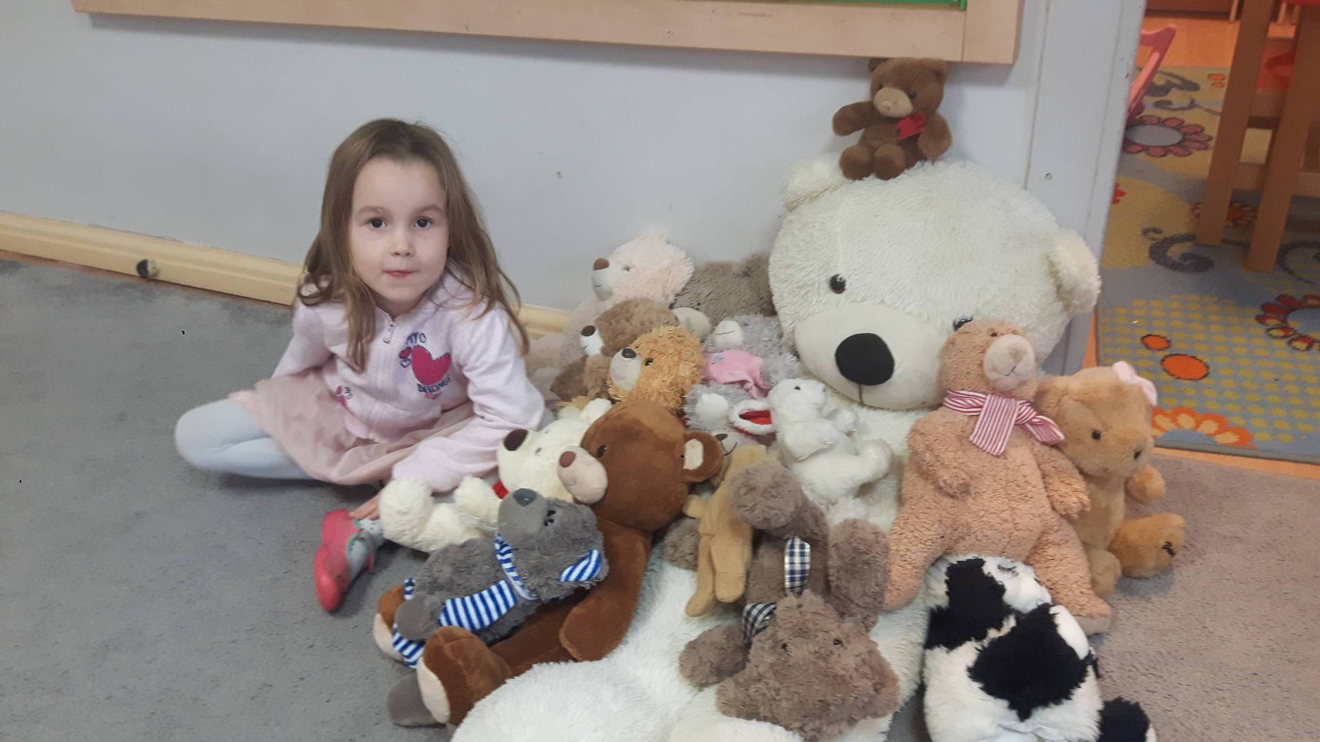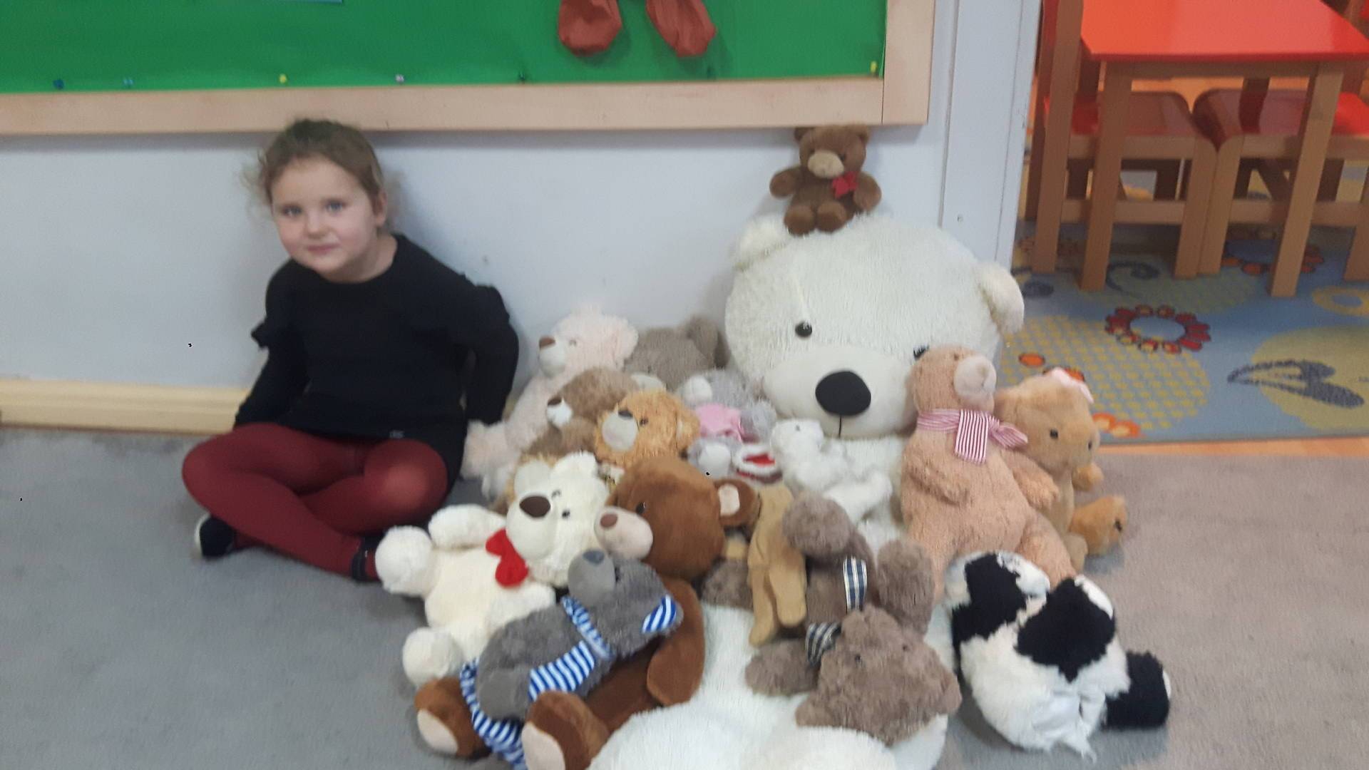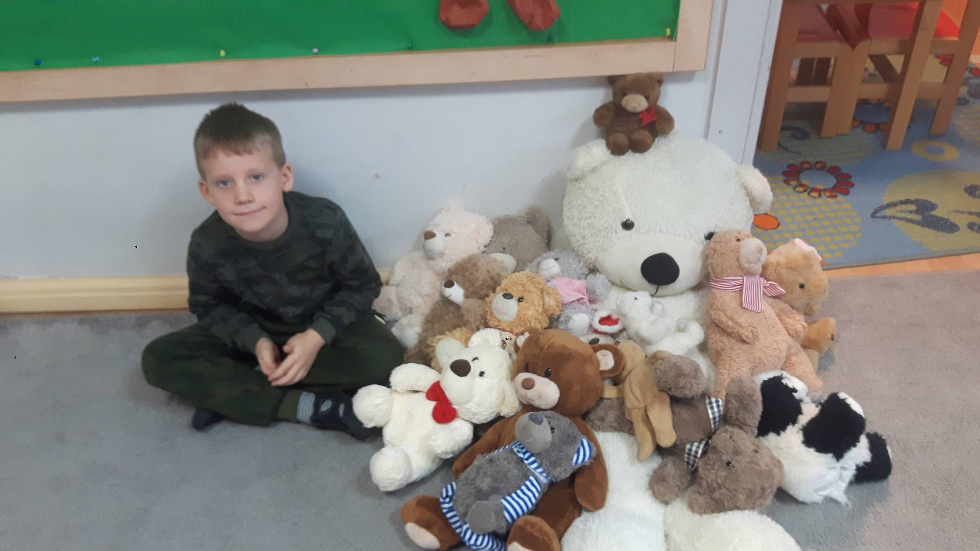 Nasze przedszkolaki w tym dniu przybyły do przedszkola ze swoimi ulubionymi pluszowymi przytulankami. Misie tego dnia opanowały nasze Przedszkole, misie były po prostu wszędzie na krzesełkach, stolikach, parapetach, półeczkach. Przybyły misie małe, średnie i bardzo duże, białe, brązowe itd.