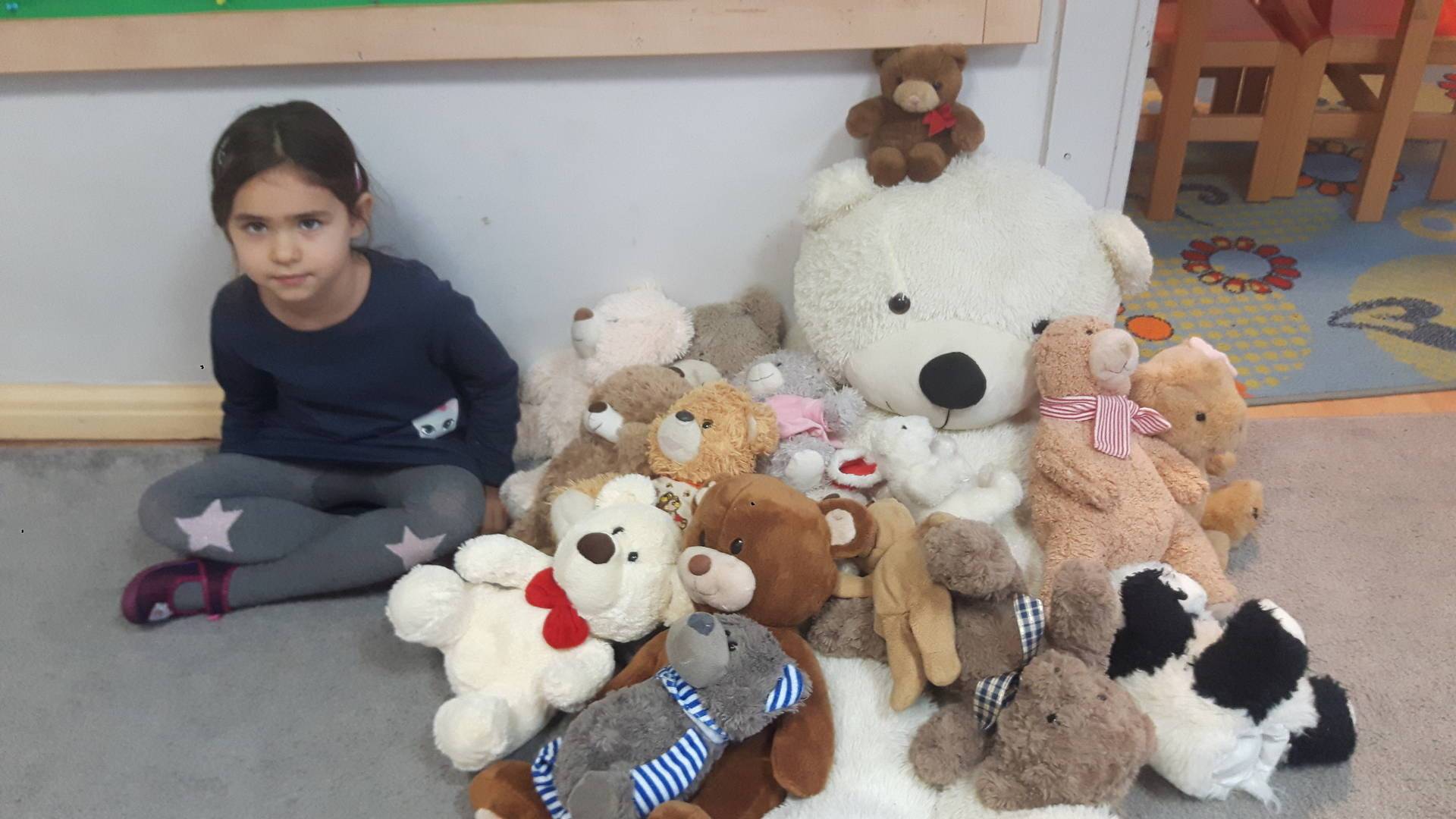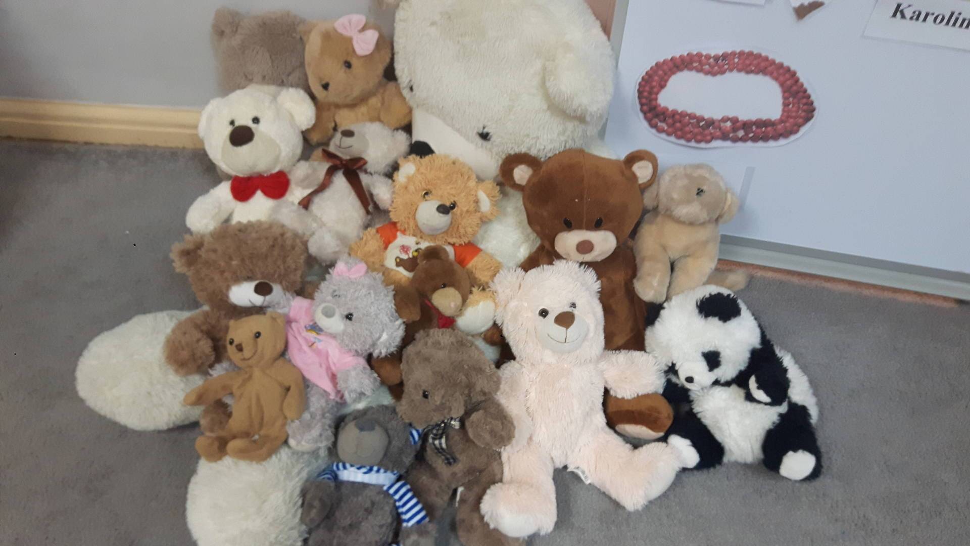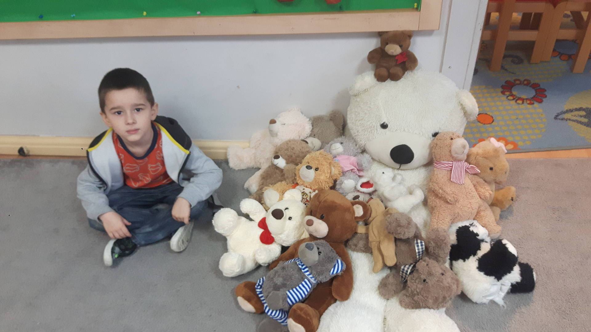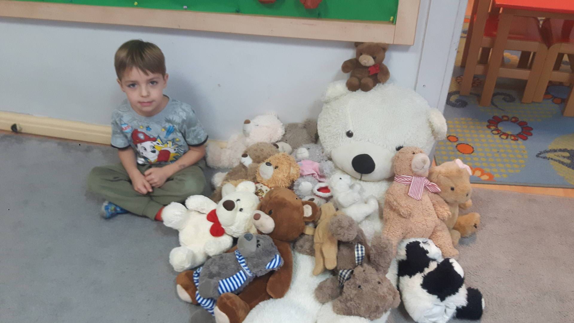 Nasze przedszkolaki w tym dniu przybyły do przedszkola ze swoimi ulubionymi pluszowymi przytulankami. Misie tego dnia opanowały nasze Przedszkole, misie były po prostu wszędzie na krzesełkach, stolikach, parapetach, półeczkach. Przybyły misie małe, średnie i bardzo duże, białe, brązowe itd.