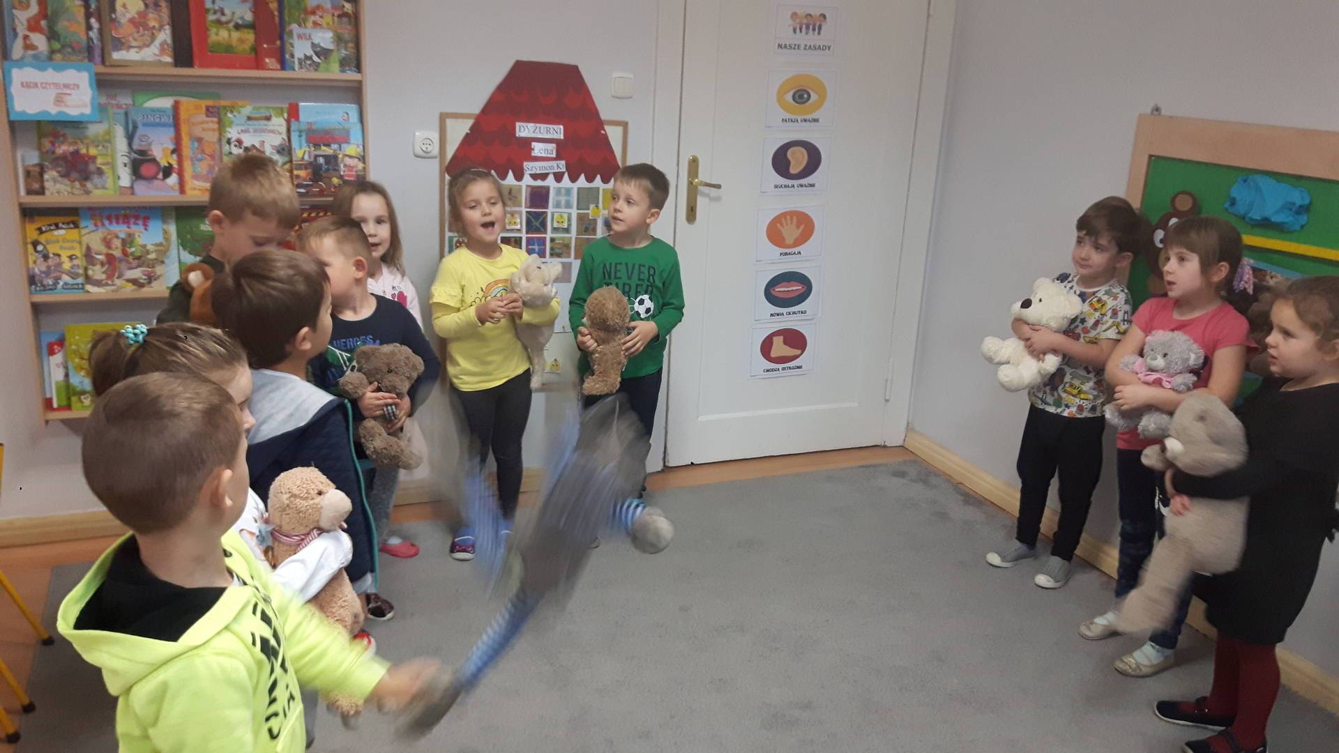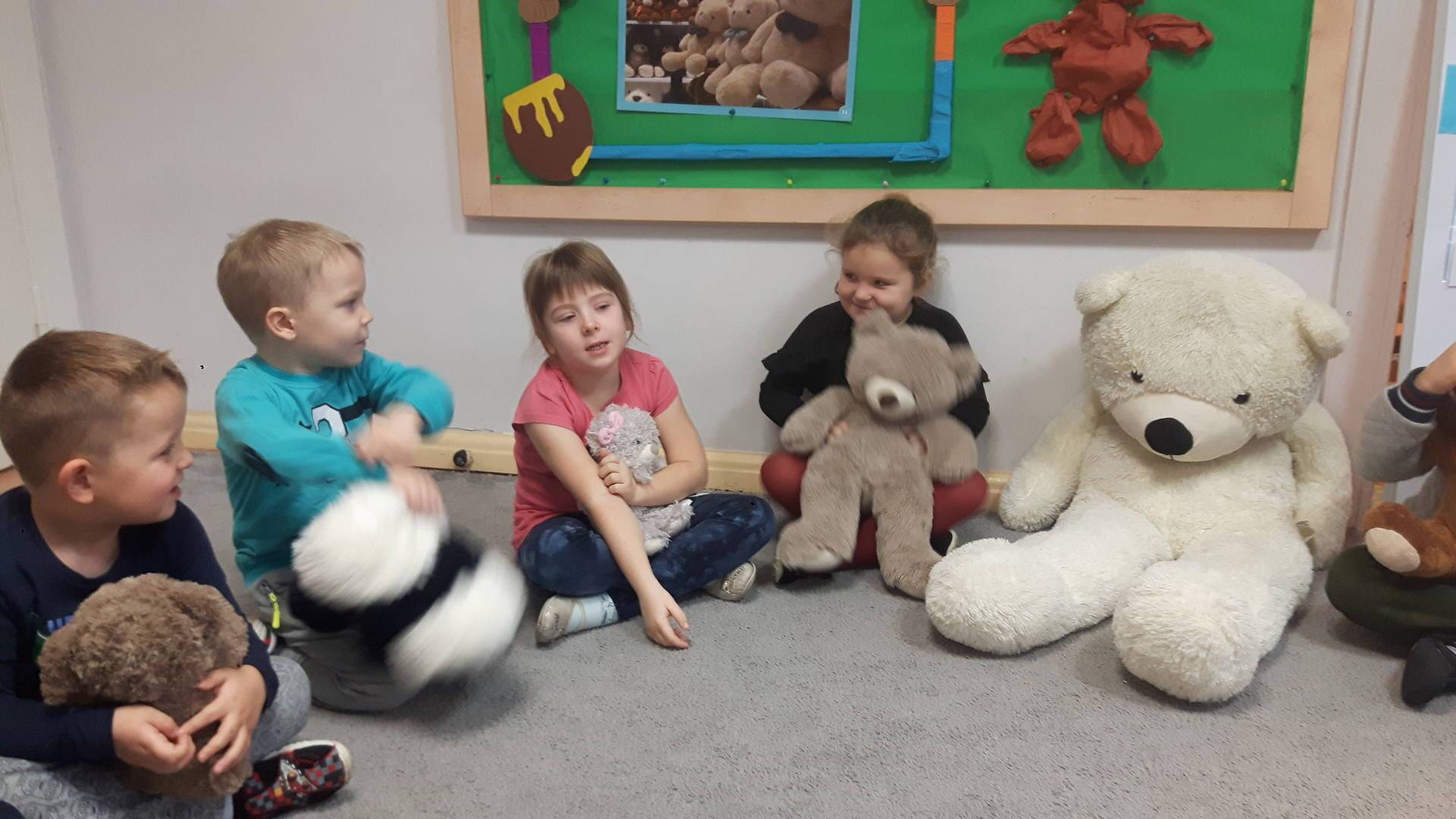 Zaraz po śniadaniu wszystkie dzieci zostały zaproszone do wspólnej zabawy w misiowej krainie.
