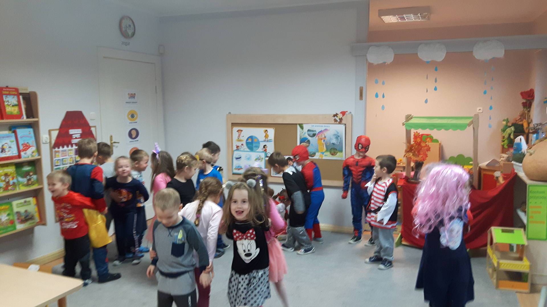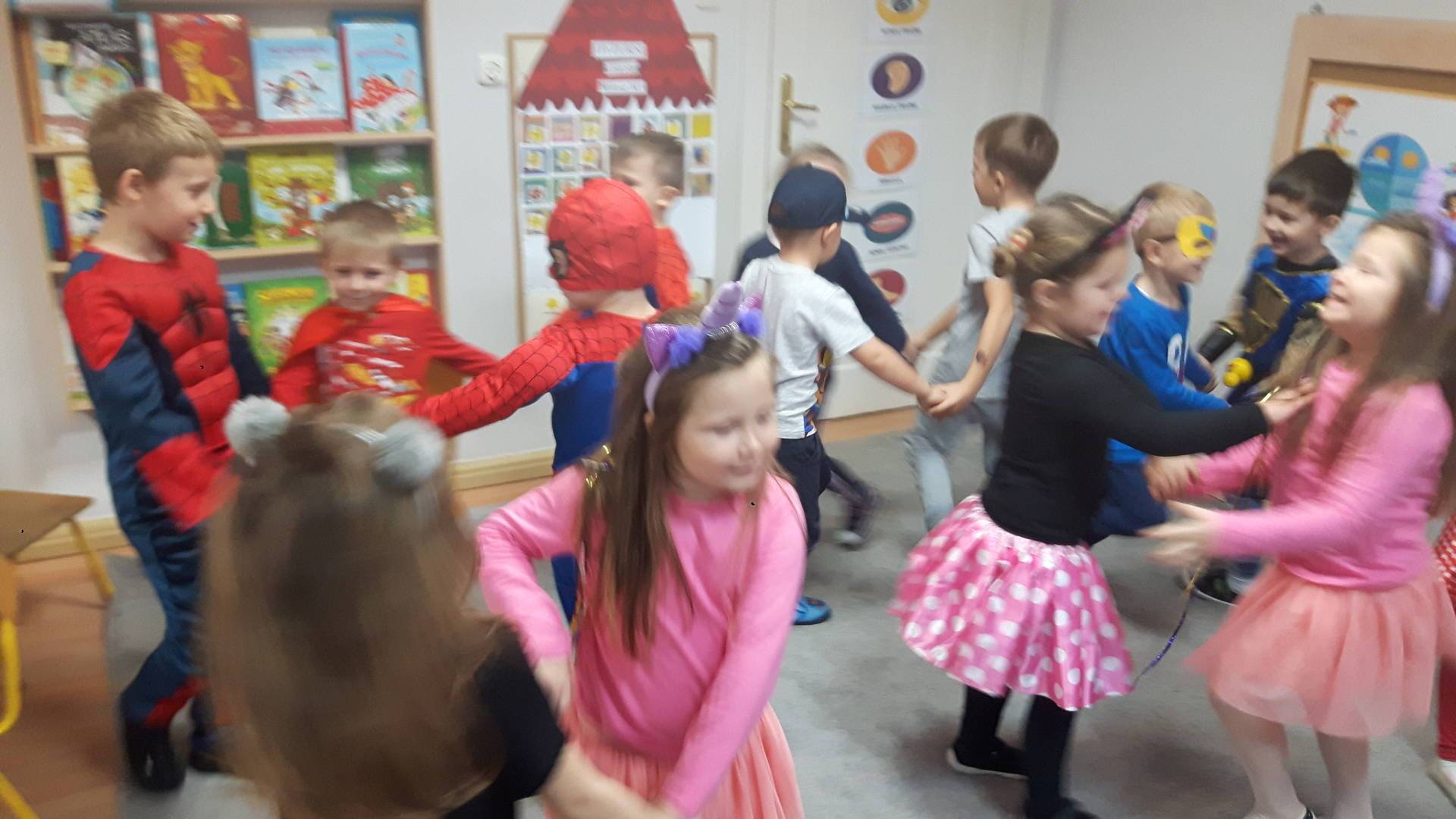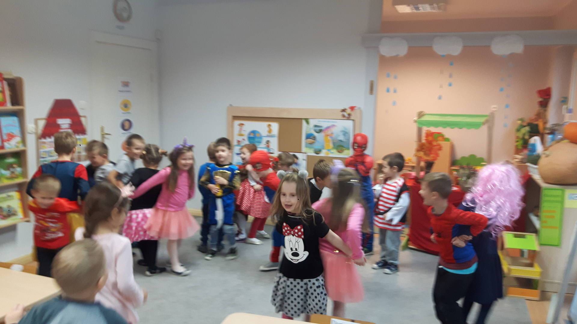 W dniu 05 listopada przedszkolaki z grupy III przyszły do przedszkola przebrane za swoją ulubioną postać z bajki i wzięły udział we wspólnej zabawie w rytmie bajkowej muzyki. Odbył się Bajkowy pokaz mody oraz Quiz znawcy bajek. Zapraszamy do miejsca, w którym mieszkają wszystkie bajkowe postacie - do Biblioteki. To właśnie tutaj na półkach każdy odnajdzie wróżki, księżniczki, krasnale i wiele wiele innych bajkowych postaci.
