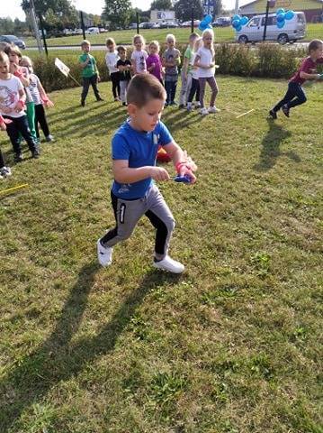 We wtorek 22 września dzieci z naszego Przedszkola miały swoje święto – Dzień Przedszkolaka, a w jego ramach wiele atrakcji pod hasłem „Baw się zdrowo na sportowo”. Tego dnia dzieci brały udział w różnych sportowych konkurencjach, przygotowanych przez swoje panie. Na koniec dzieci malowały farbami na stretchu. Każdy Przedszkolak w tym dniu dostał medal "Super Przedszkolaka" oraz inne upominki. Sponsorem święta było Stowarzyszenie Przyjaciół Siatkówki Lębork. W tym dniu nie zabrakło zaproszonych gości Burmistrza Miasta Lęborka -Pana Witolda Namyślaka, Sekretarza Miasta Lęborka - Pana Mariana Kurzydły, Prezesa Stowarzyszenia Przyjaciół Siatkówki Lębork -Pani Agnieszki Dawidowskiej oraz Przewodniczącego Rady Rodziców Pana -Tomasza Litwina. Zaangażowanym jeszcze raz dziękujemy. :-)