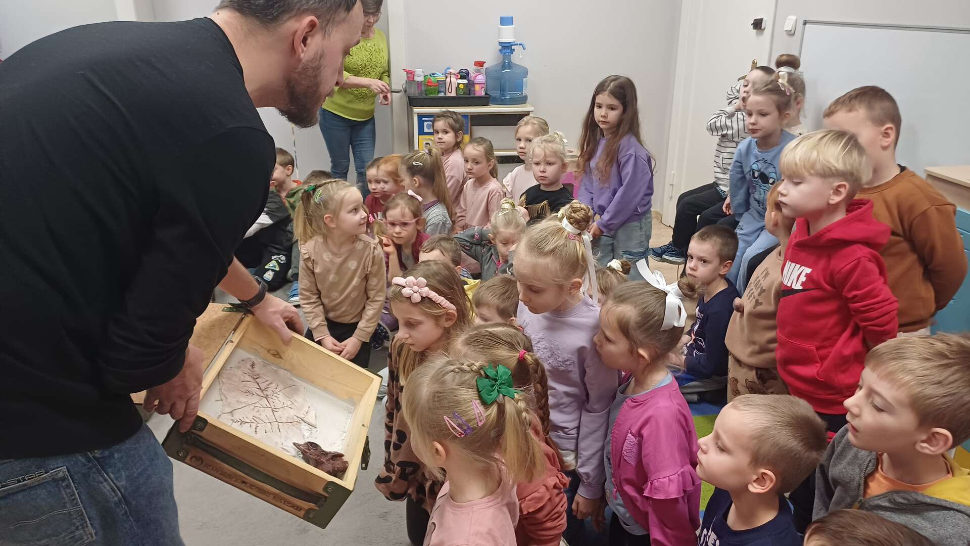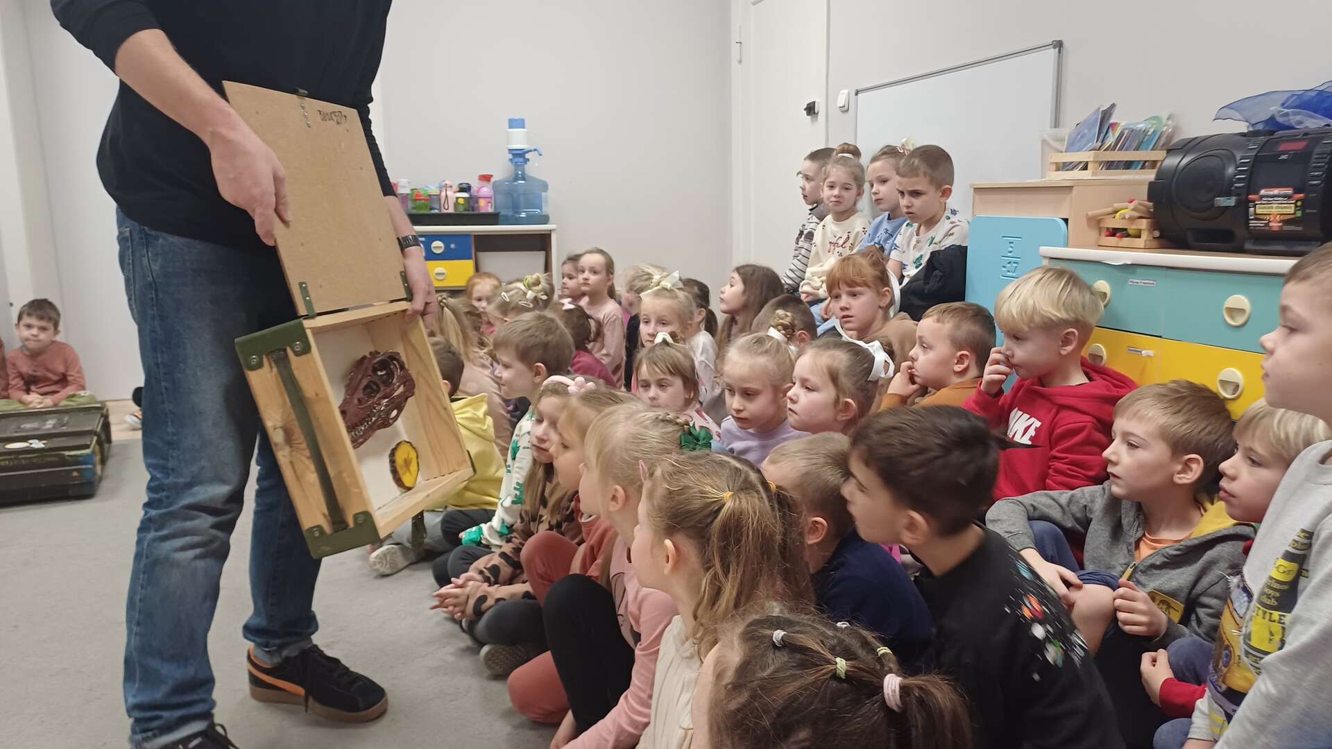 To nie żart ! To niesamowita przygoda z dinozaurami !! Dzieci uczestniczyły w warsztatach z cyklu " Z ciekawości..". Pan Paweł zabrał naszych przedszkolaków w podróż po krainie dinozaurów. Zajęcia z użyciem nowoczesnych technik audiowizualnych pozwoliły dzieciom znaleźć się w prehistorycznym świecie, w prawdziwej jurajskiej krainie. Warsztaty wywołały wiele pozytywnych emocji zarówno u dzieci jak i nauczycieli.