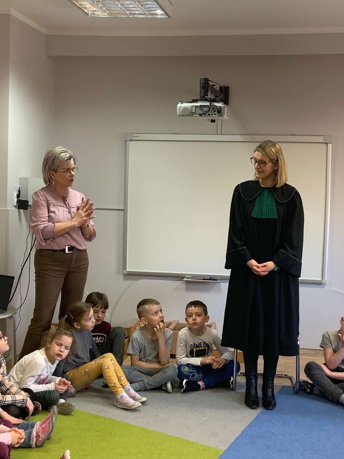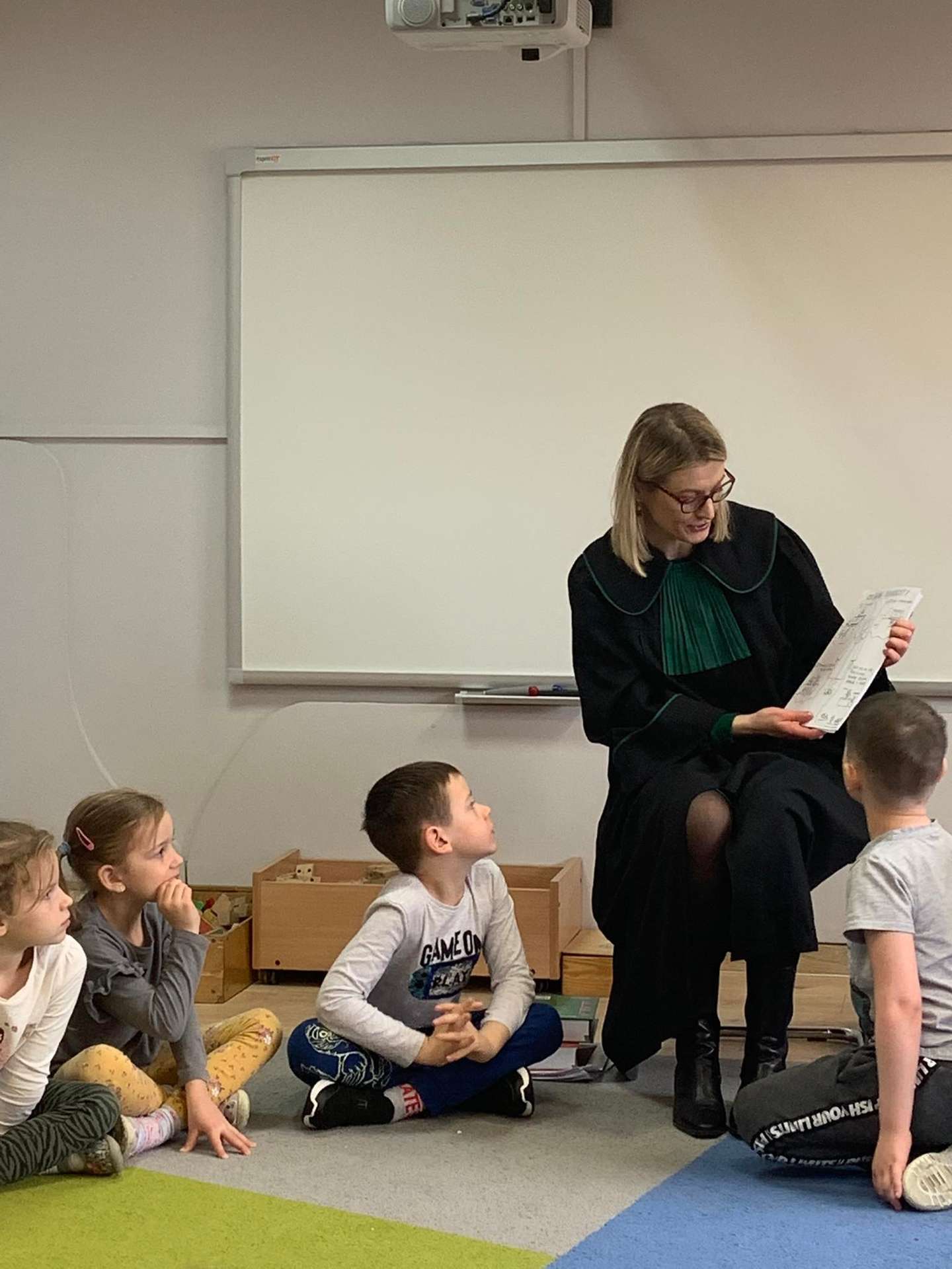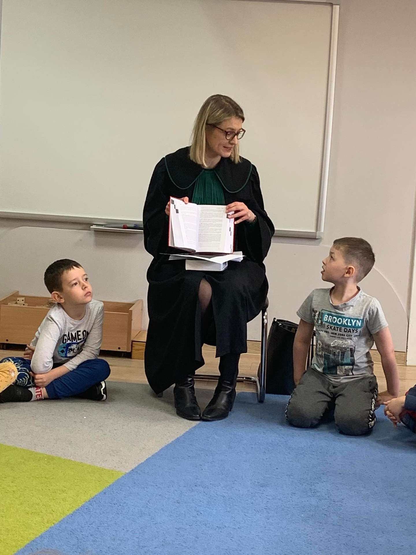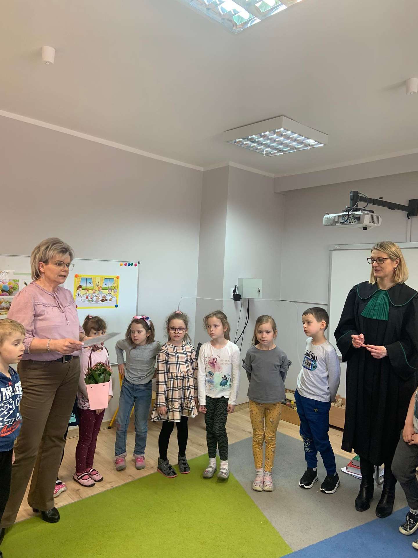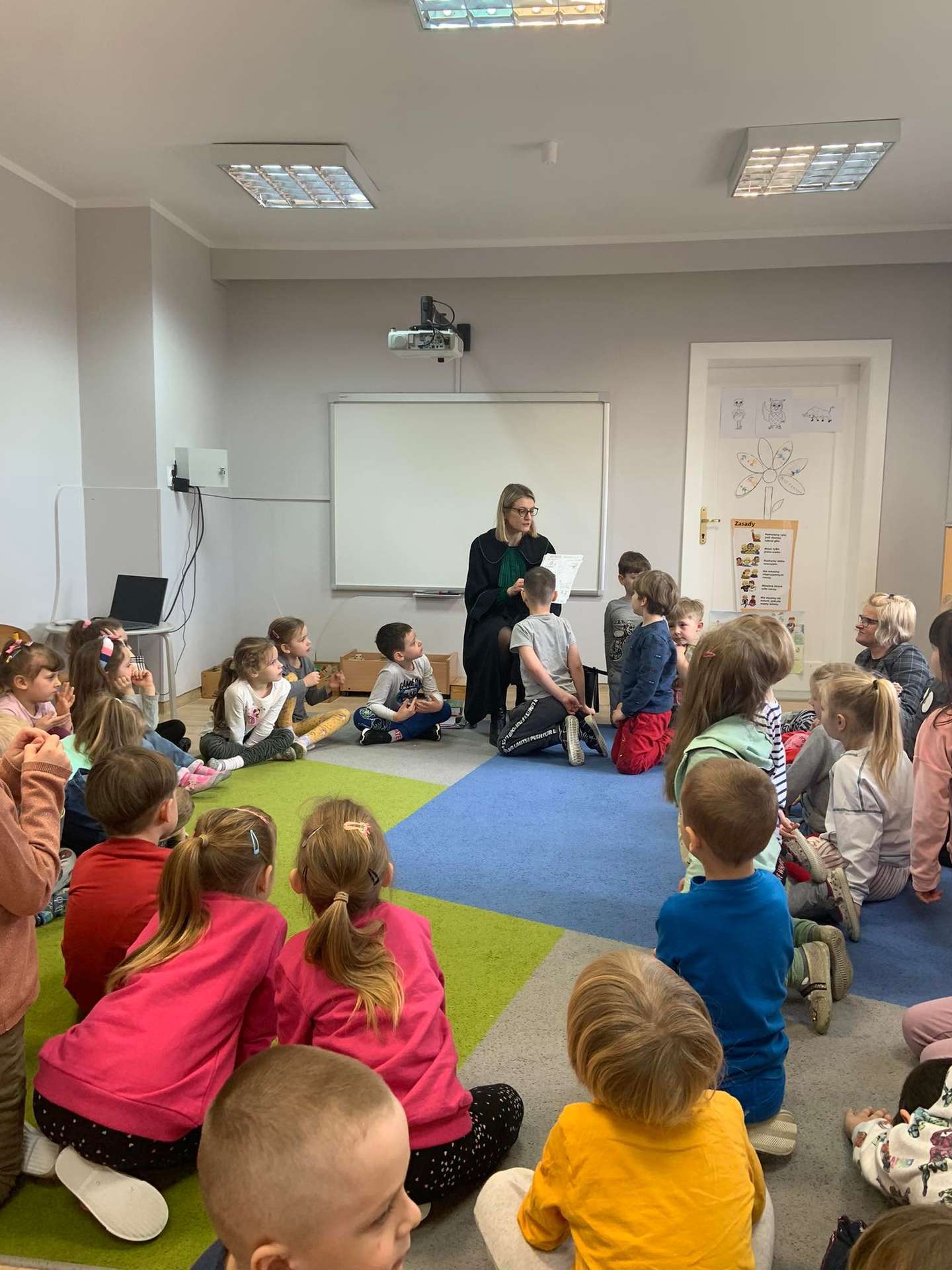 Dzisiaj gościliśmy w naszym przedszkolu p. adwokat Kamillę Kasprzak. To było bardzo ciekawe spotkanie. Dzieci dowiedziały się, jak długo trzeba się uczyć żeby zostać adwokatem i na czym polega praca adwokata. Poznały szereg pojęć związanych z w/w zawodem. Dużą atrakcją była zabawa w sąd, którą przeprowadziła p. adwokat. Dzieci przekonały się, jak trudno jest się bronić, oskarżać i orzekać o winie. Na zakończenie zajęć przedszkolaki otrzymały od gościa upominki w postaci kolorowanek.