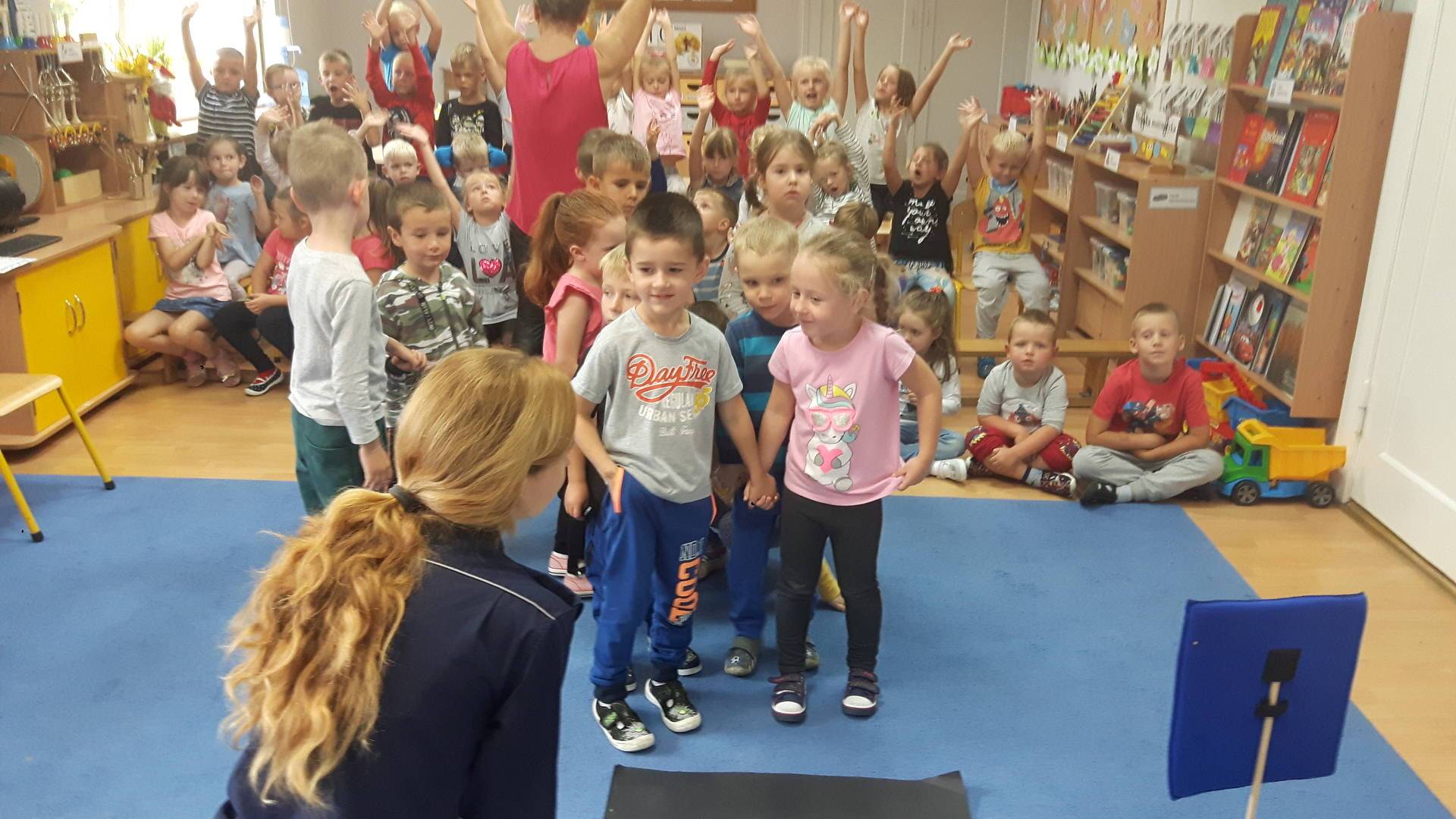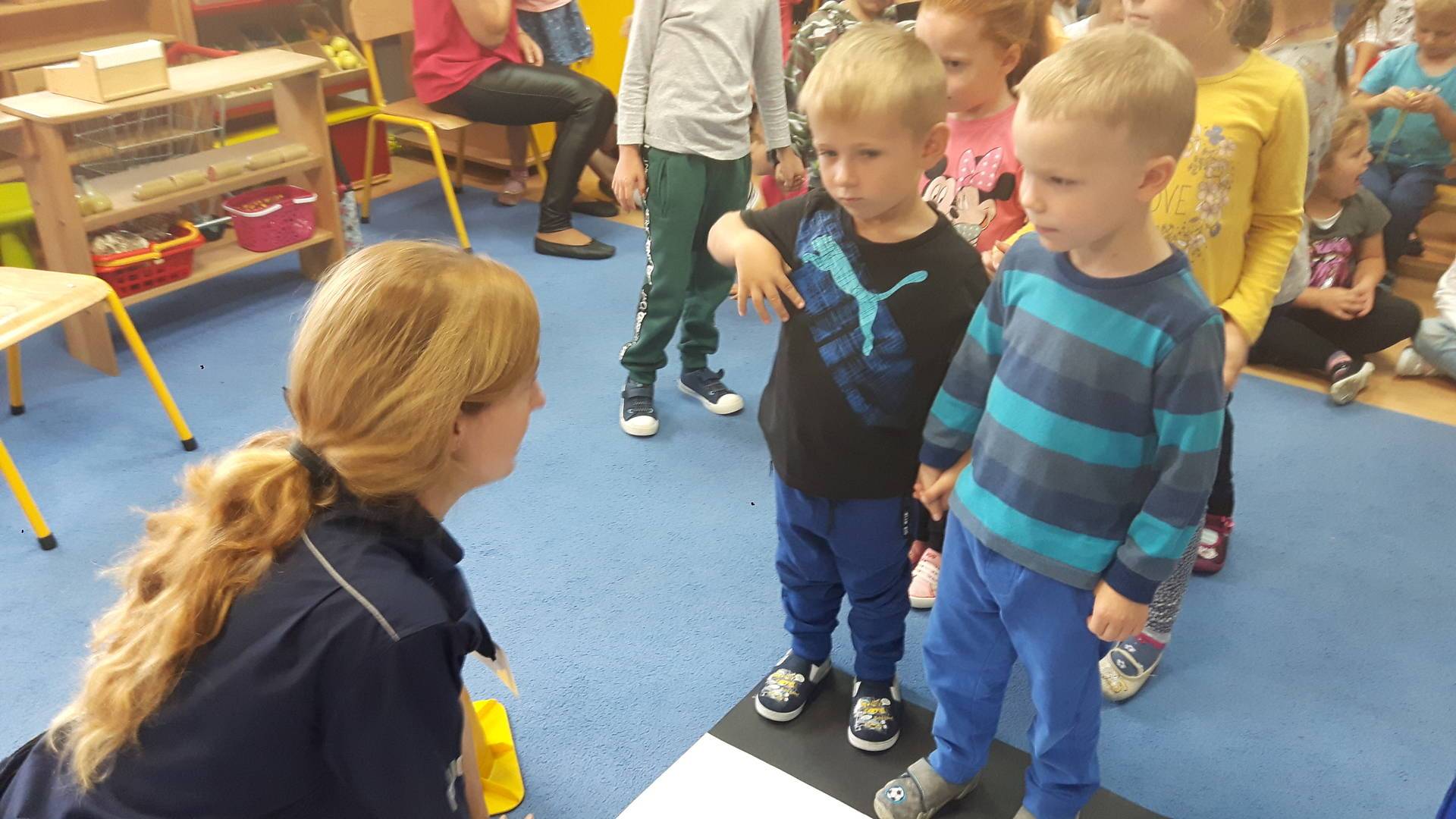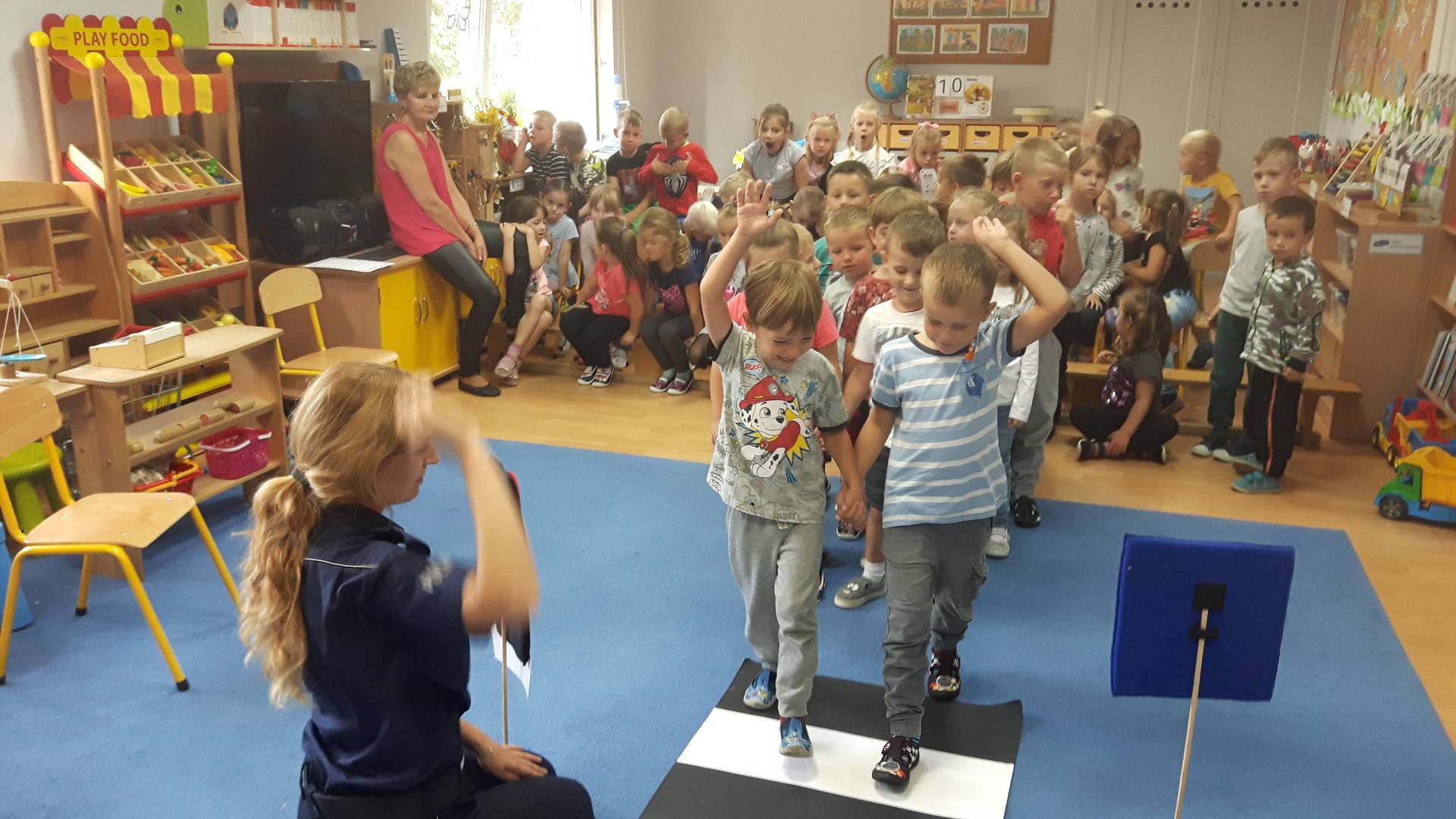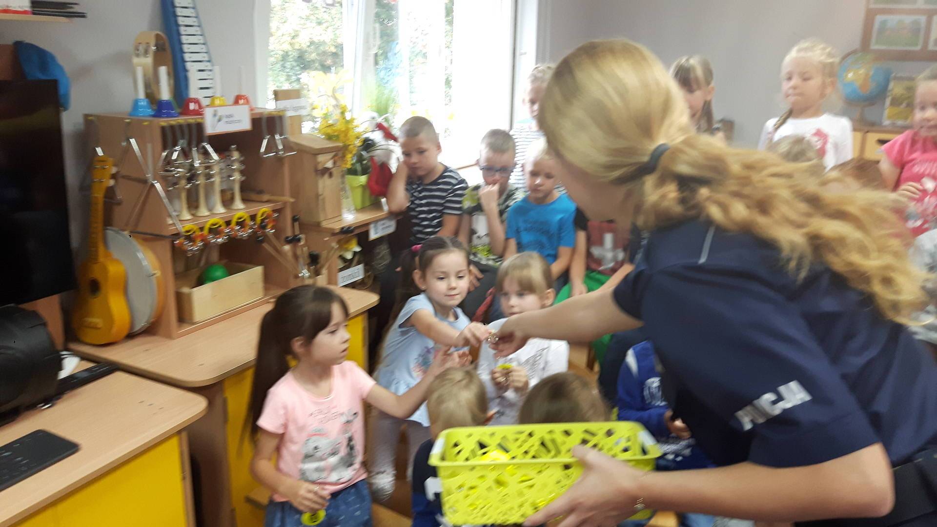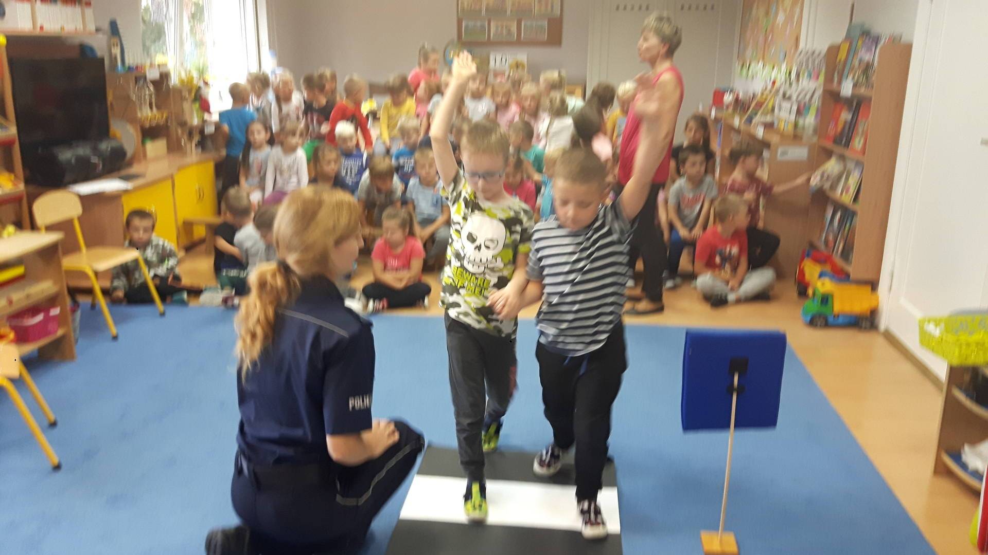 09września 2019r. w naszym przedszkolu odbyło się spotkanie z Panią policjantką z Komisariatu Policji w Lęborku. Tematem spotkania było utrwalenie z dziećmi zasad ruchu drogowego oraz przypomnienie zagadnień dotyczących bezpieczeństwa dzieci w przedszkolu i w domu. Pani policjantka, w formie praktycznej, przypomniała podstawowe zasady zachowania się podczas przechodzenia przez jezdnię. Następnie wytłumaczyła jak należy zachować się w kontaktach z obcymi ludźmi, jak dbać o bezpieczeństwo własne i innych oraz do kogo zwracać się o pomoc w sytuacji zagrożenia. Dzieci z dużym zainteresowaniem słuchały rad i wskazówek zaproszonego gościa. Na zakończenie wizyty przedszkolaki wręczyły Pani policjantce podziękowanie.