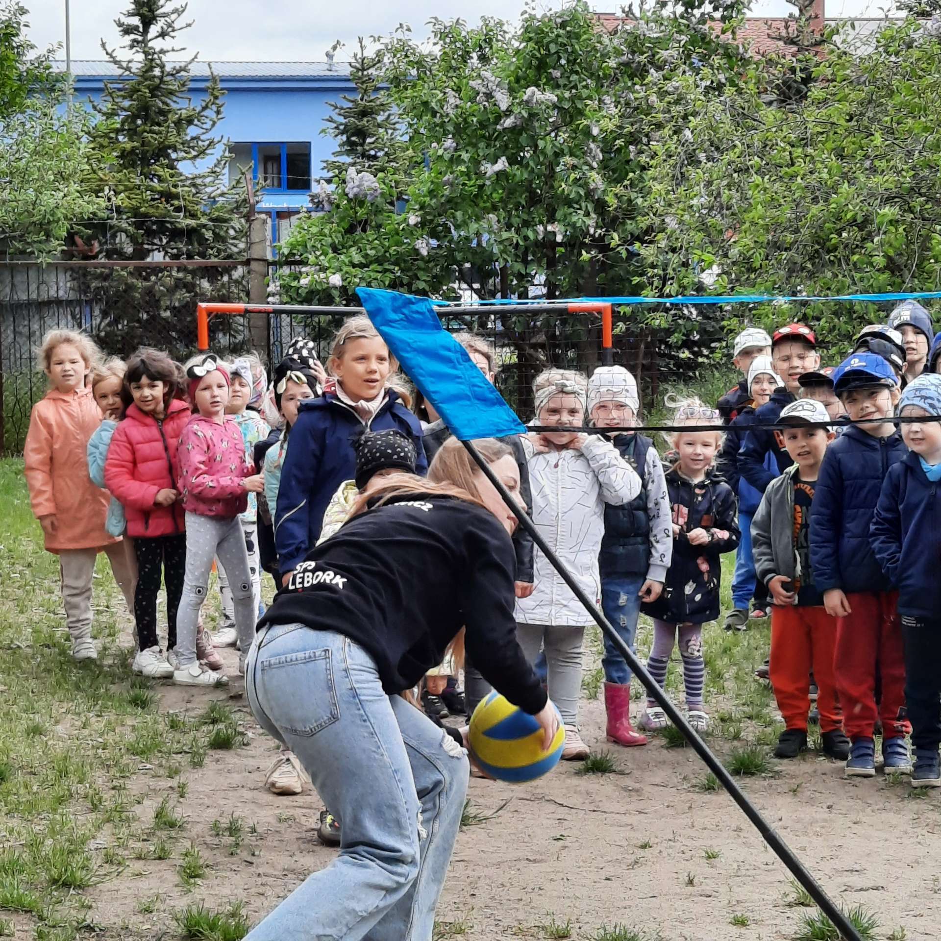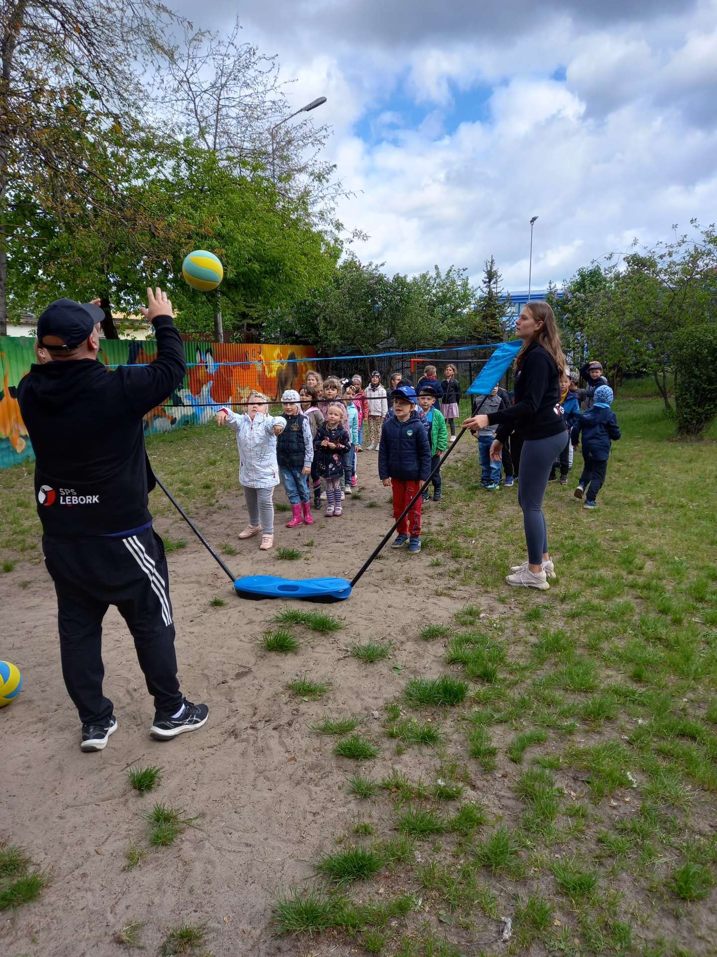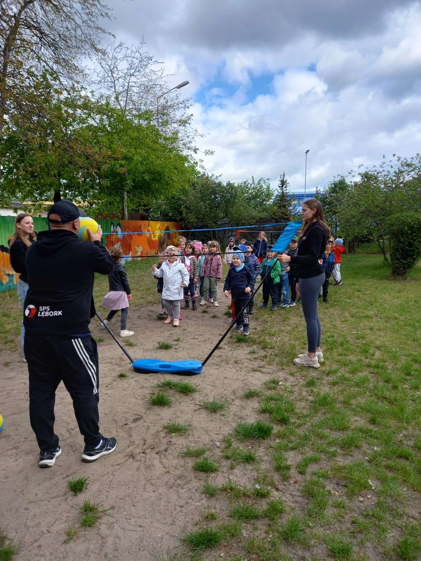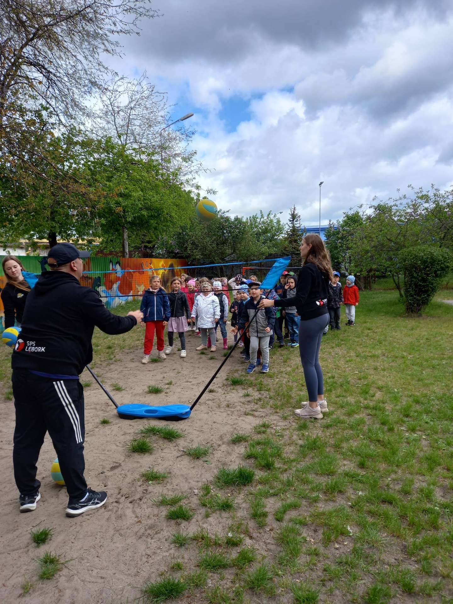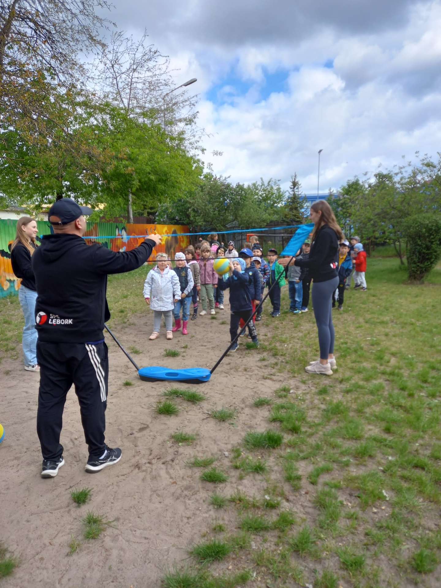 W ramach cyklu " Aktywnie spędzamy czas wolny" dzieci z grup najstarszych uczestniczyły w zajęciach sportowych. Zajęcia poprowadził trener piłki siatkowej SPS Lębork p. Marcin Dawidowski oraz dwie zawodniczki SPS -u. Trener opowiedział o najważniejszych elementach treningów, o systematyczności, obowiązkowości oraz korzyściach płynących z uprawiania "siatkówki" i aktywnego spędzania wolnego czasu. Zawodniczki z kolei przeprowadziły konkurencje sportowe. Zwycięzcy otrzymali nagrody - czapki sportowe. Dużą atrakcją dla dzieci były wspólne tańce rozgrzewające. Na zakończenie zajęć trener przekazał upominki dla przedszkola - przenośne boisko do piłki siatkowej oraz piłkę. To było niesamowite spotkanie !
